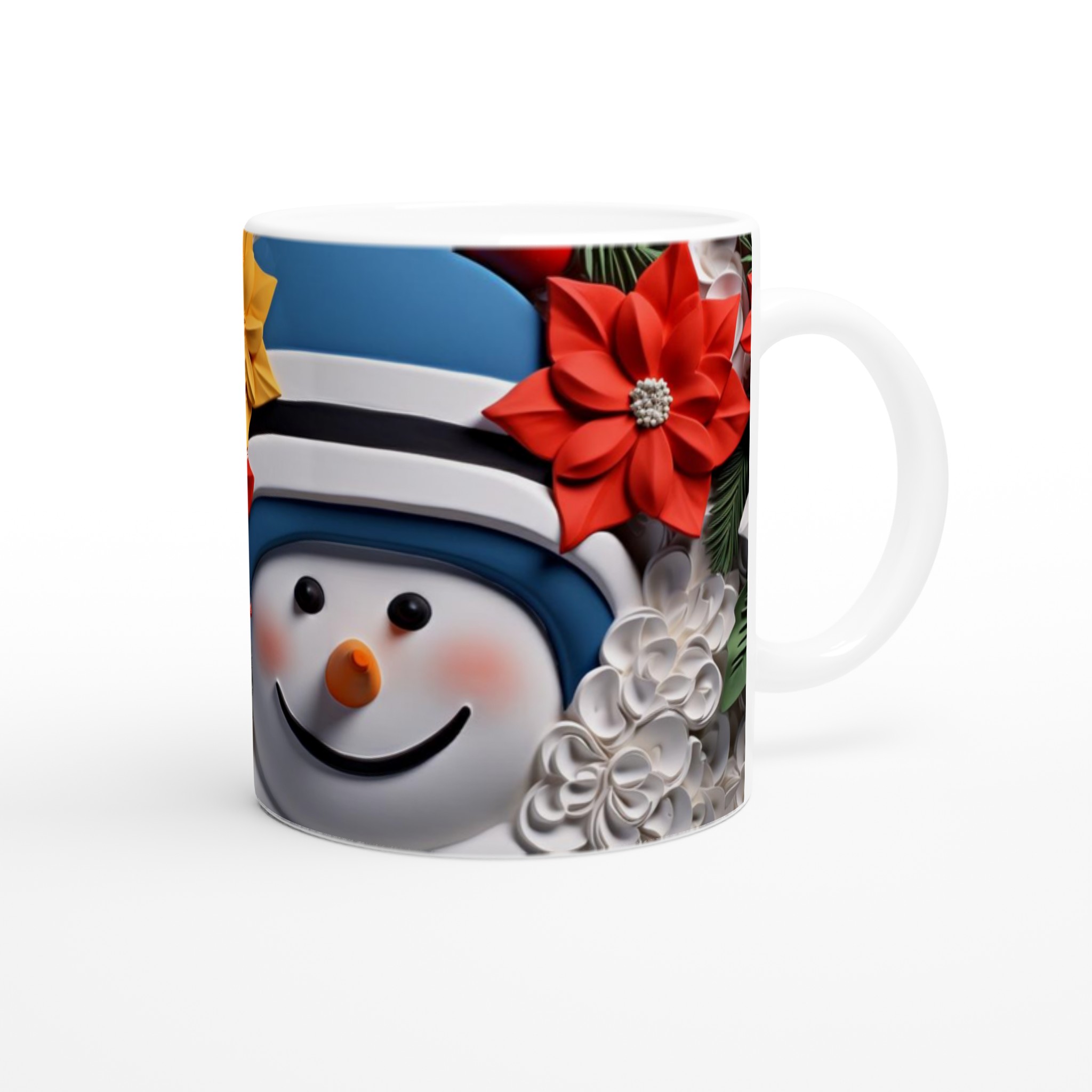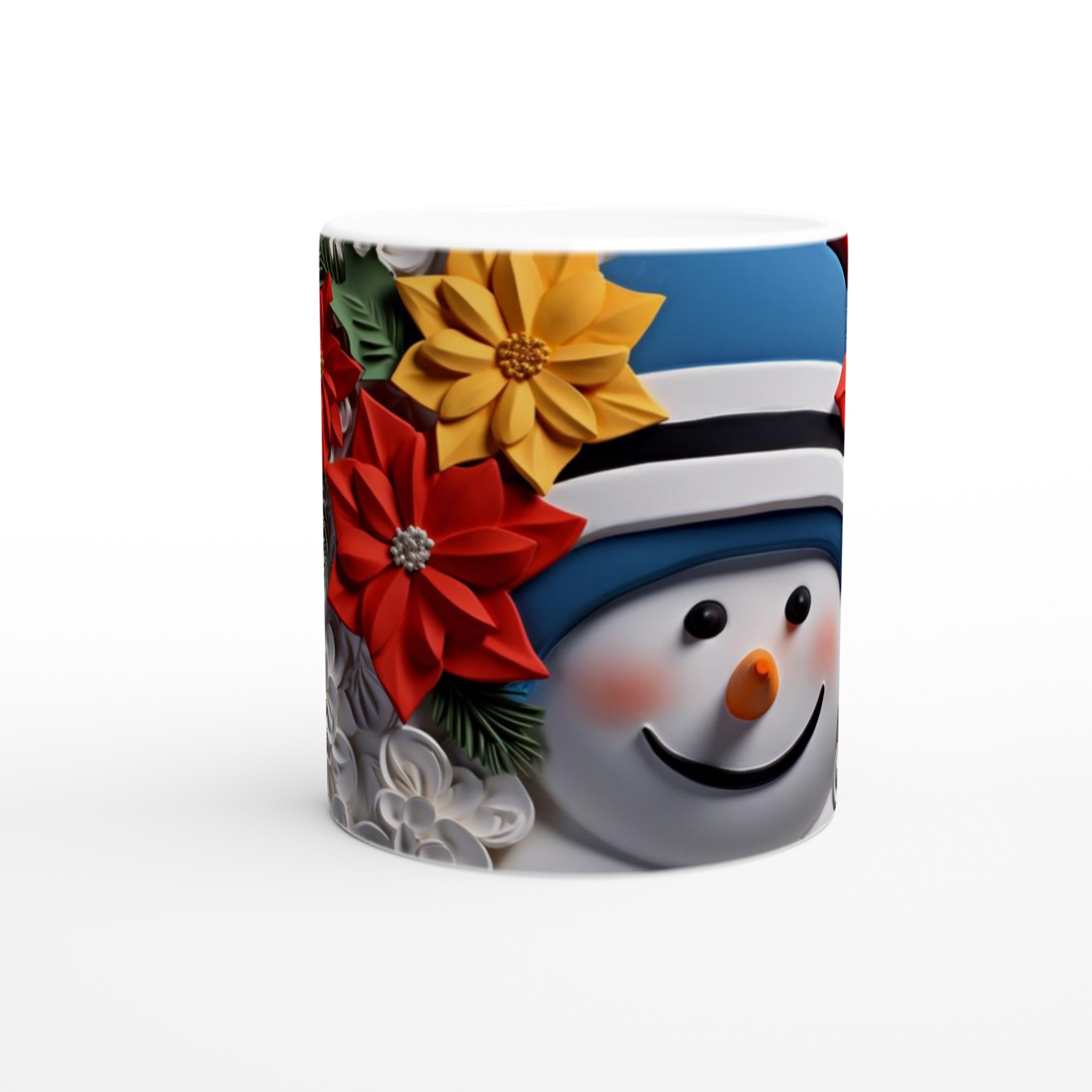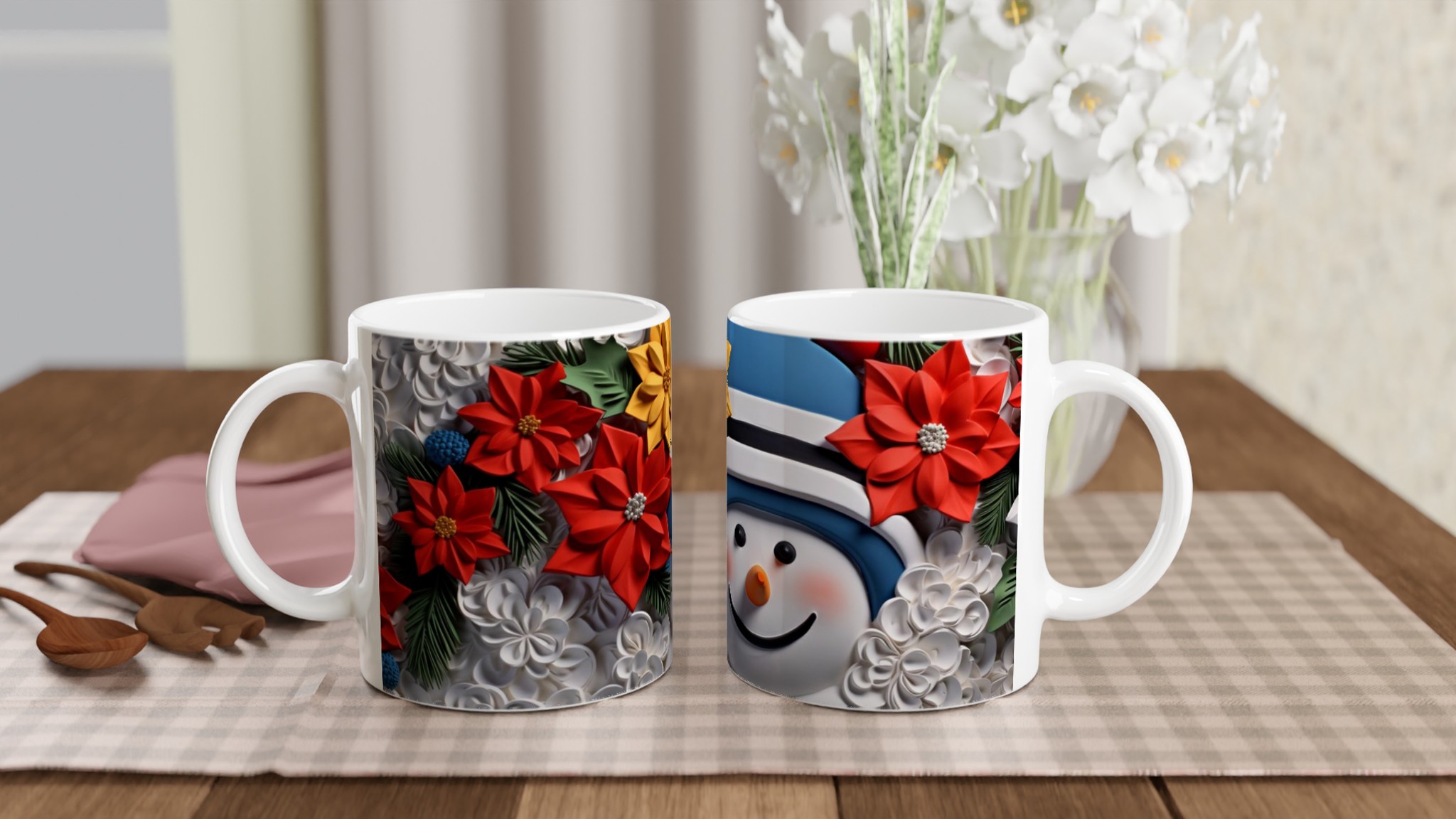 Jolly Snowman & Poinsettia 11oz Ceramic Mug – Perfect for Festive Sips & Holiday Cheer