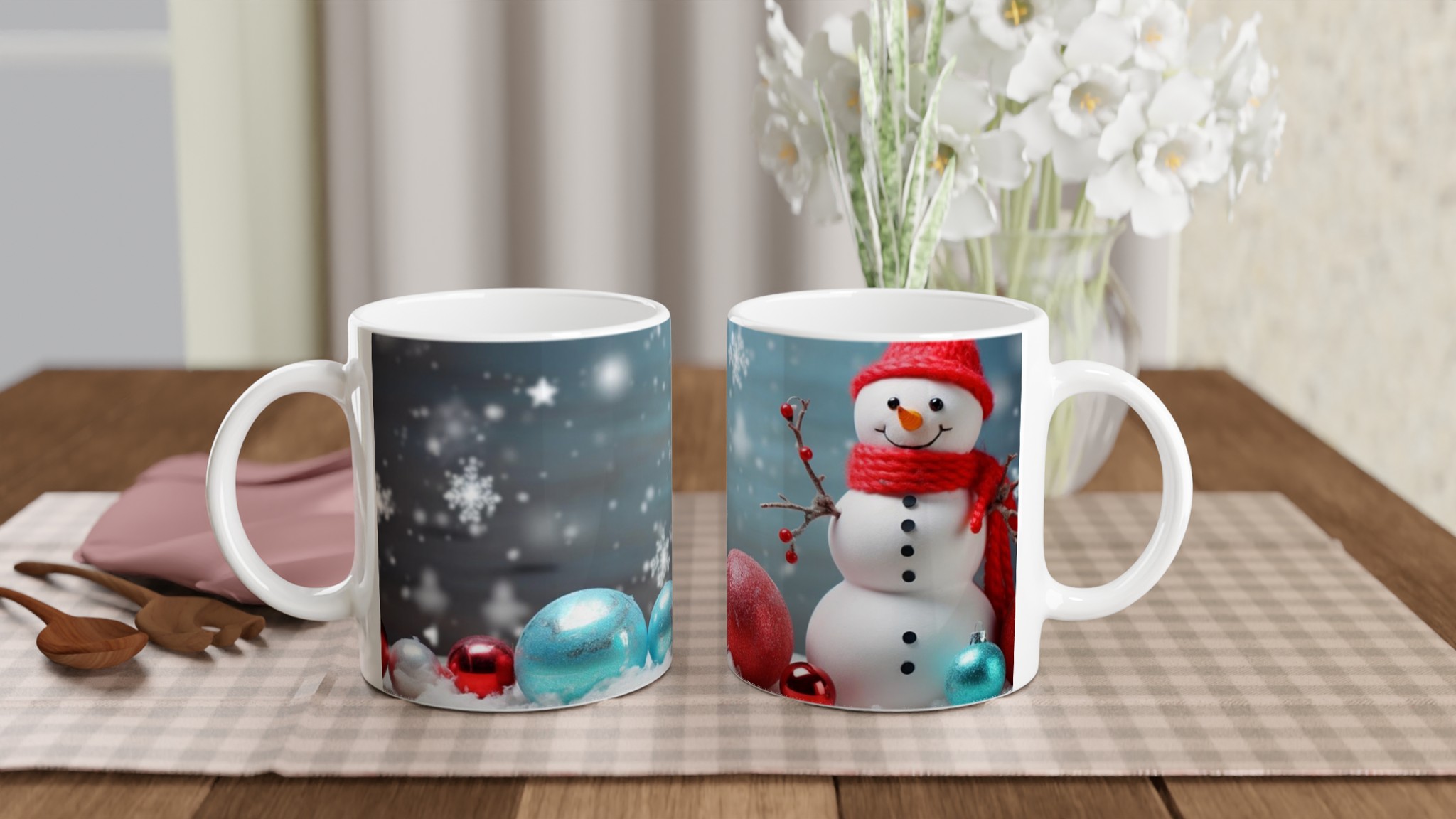 Festive Snowman Wonderland 11oz Ceramic Mug – Choose Your Holiday Hue!