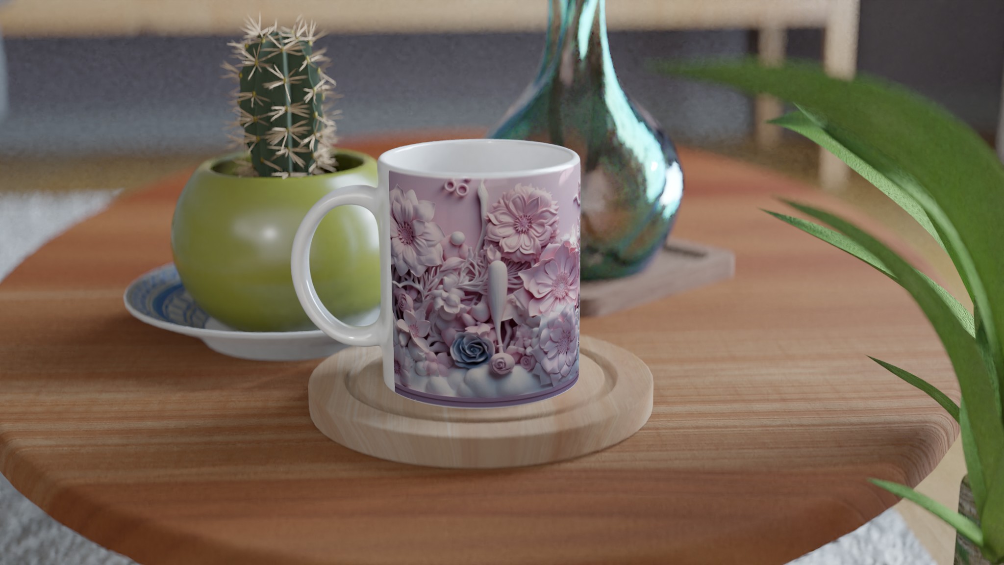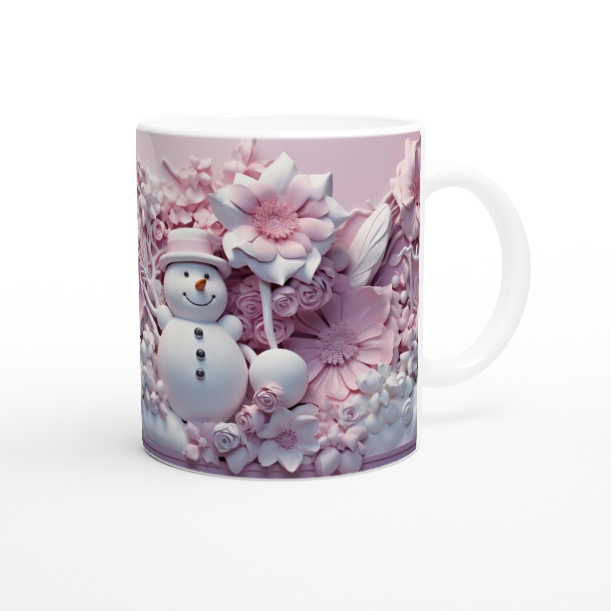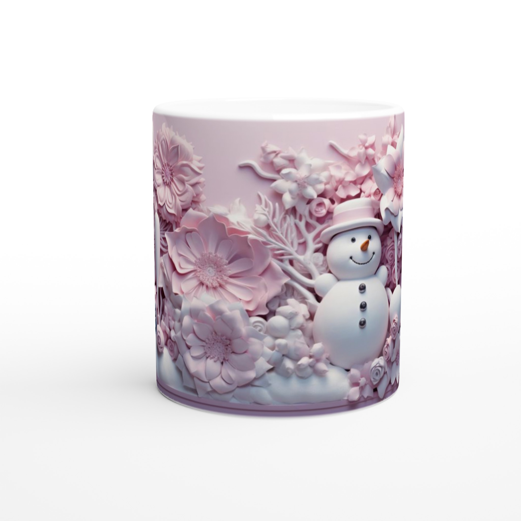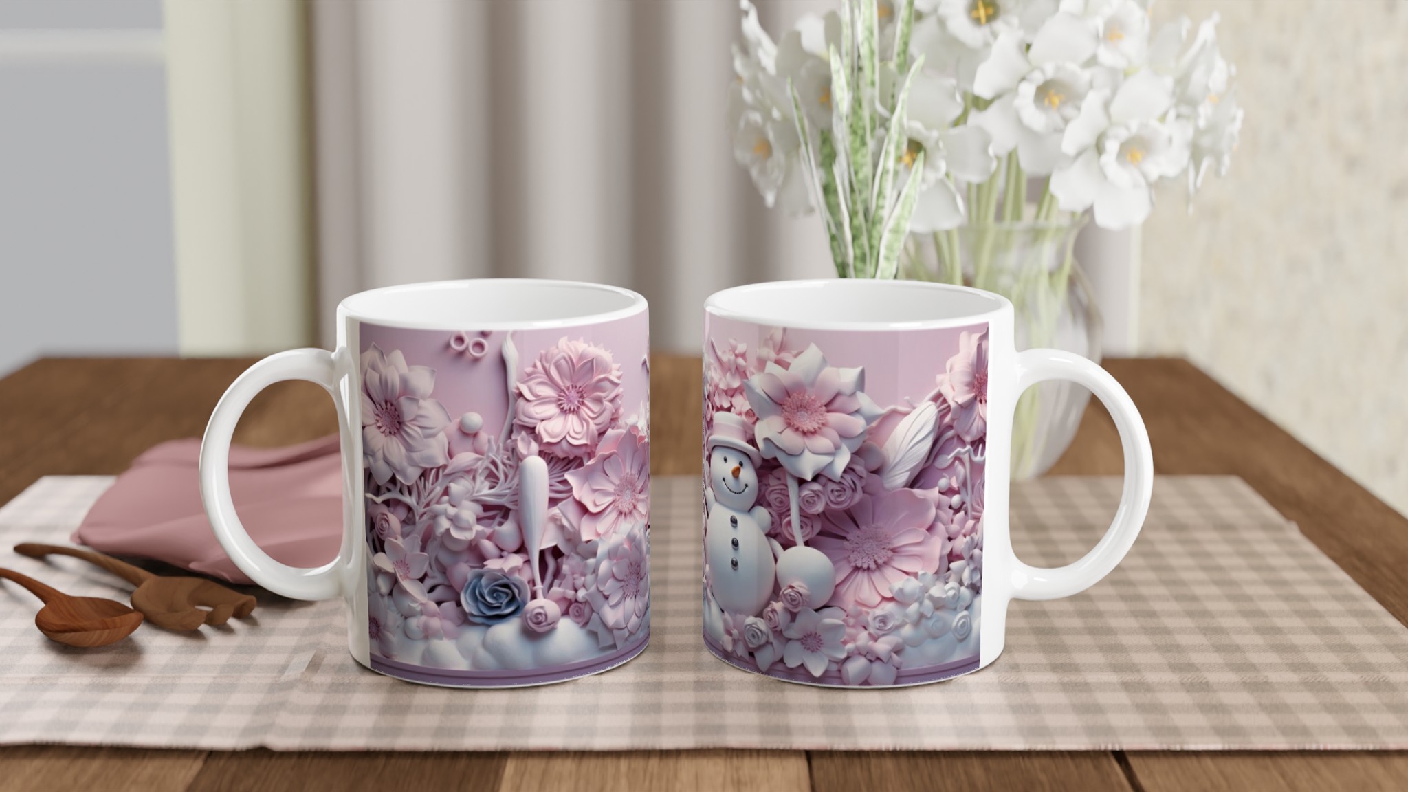 Charming Pink Floral Snowman 11oz Ceramic Mug – Choose Your Hue!