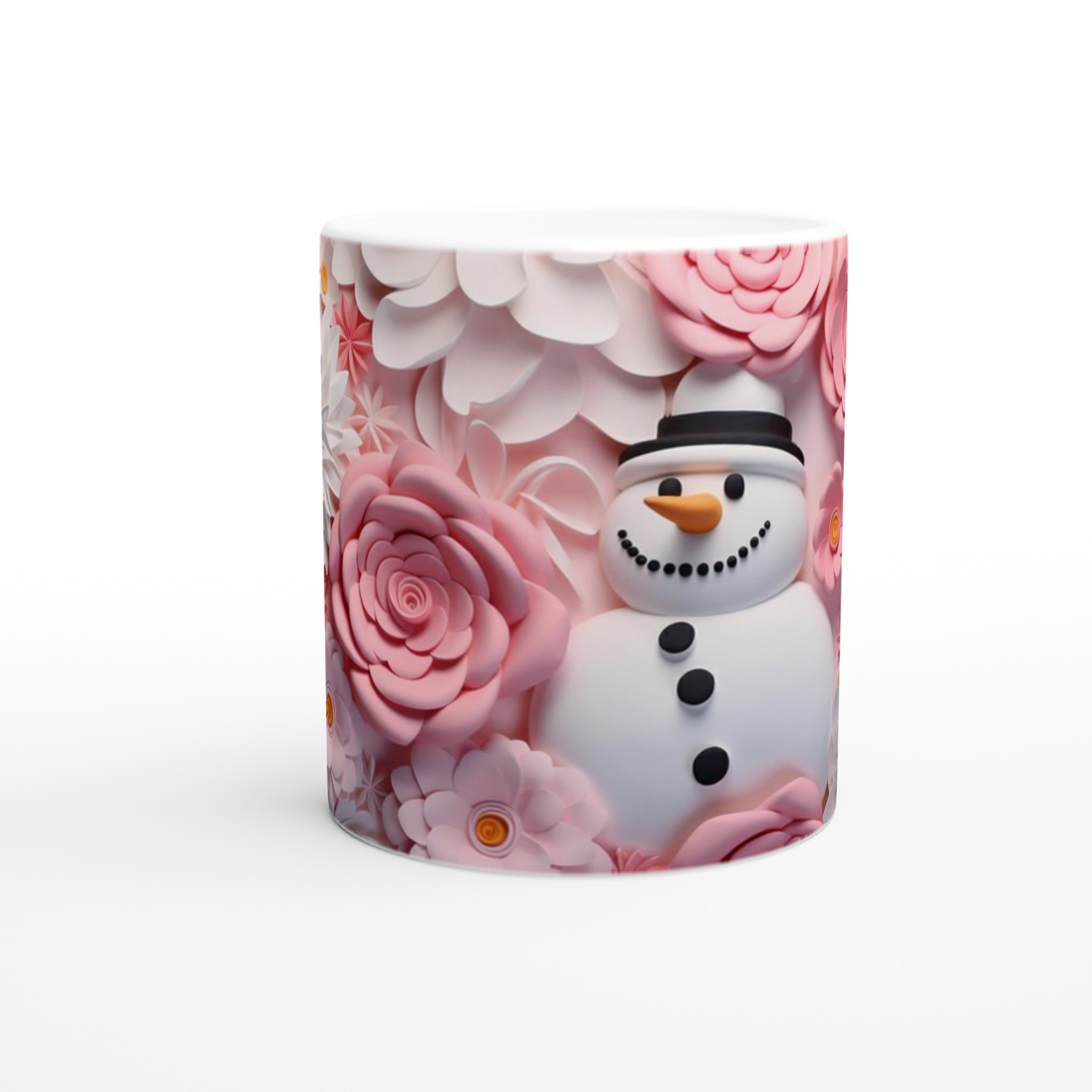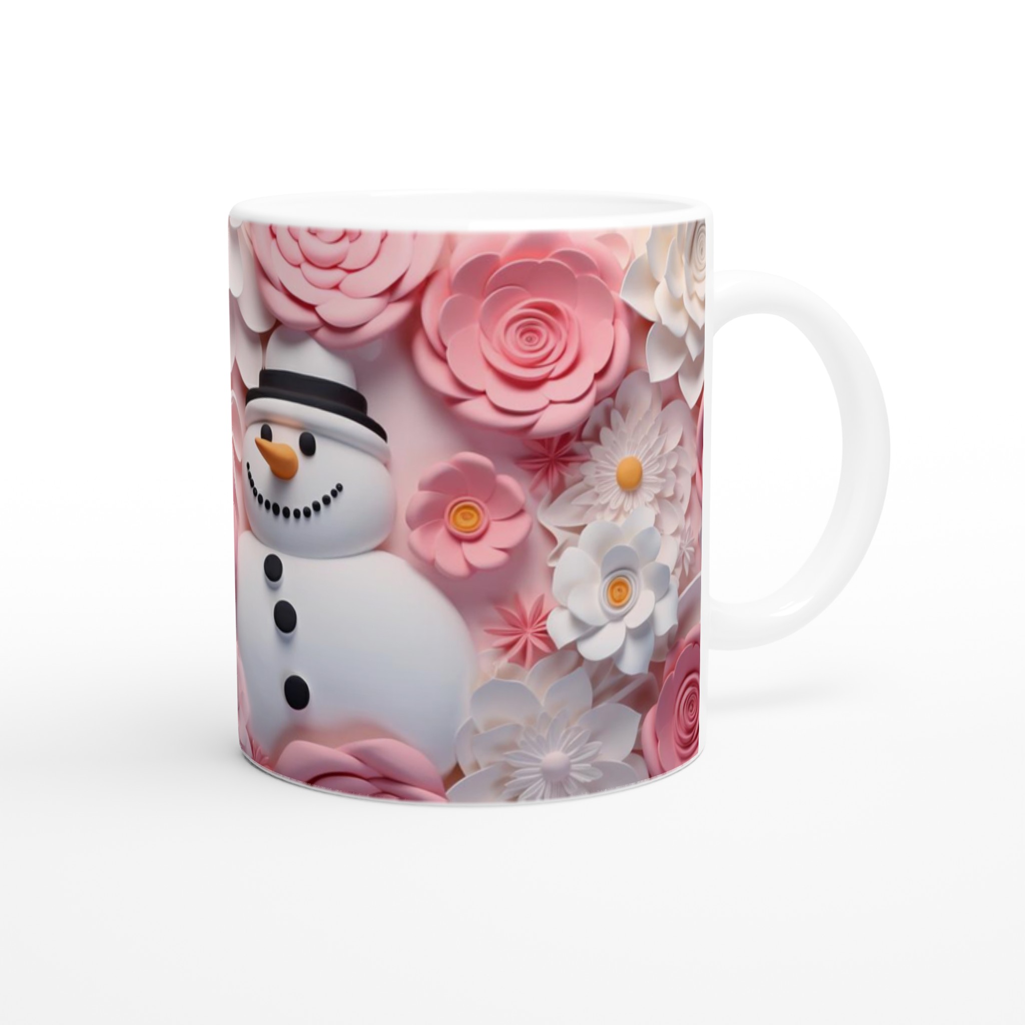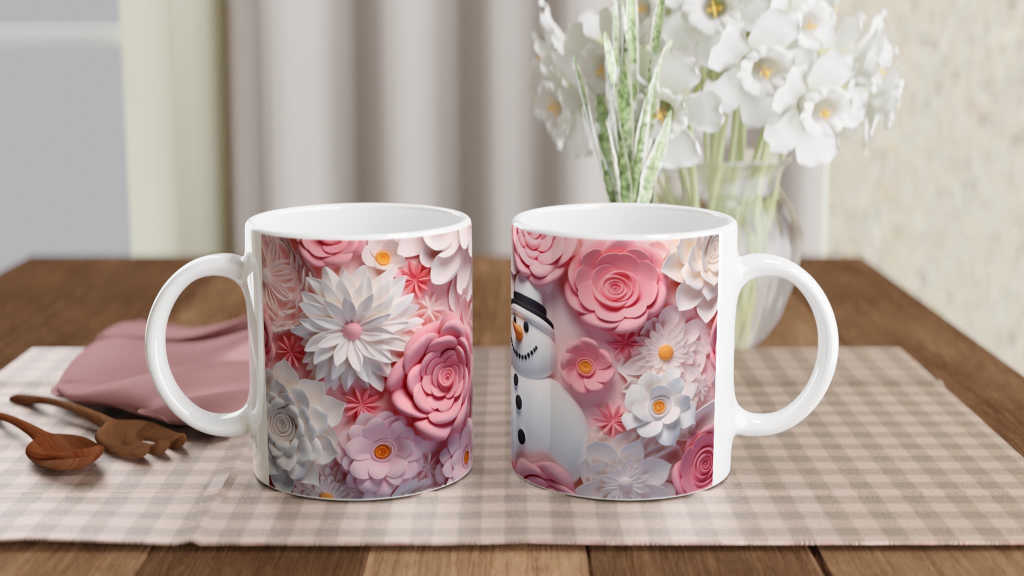 Charming Snowman & Floral 11oz Ceramic Mug – Winter Bliss in Your Choice of Seven Hues