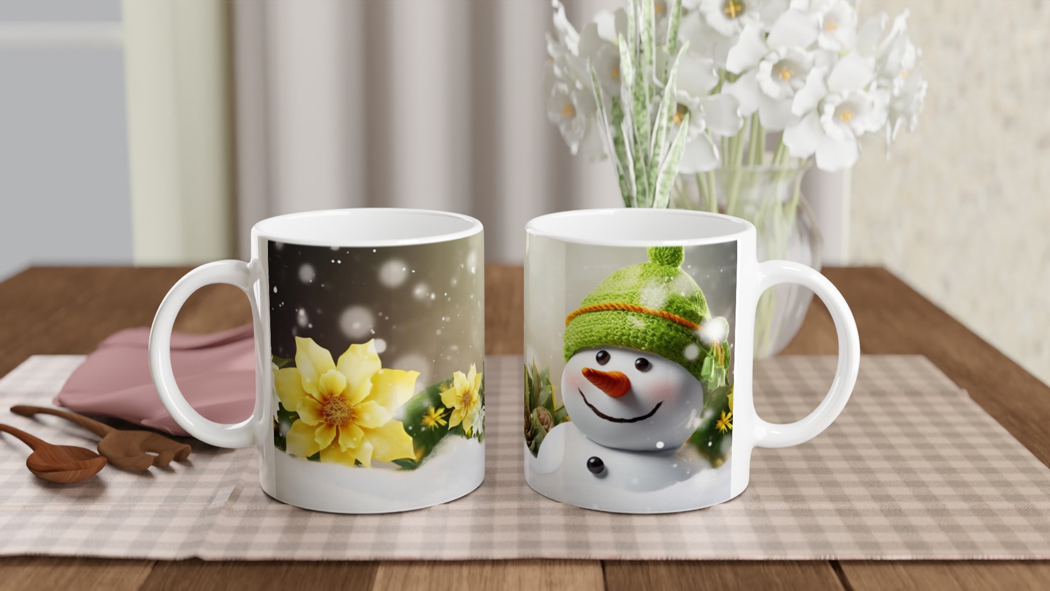Charming Snowman Winter Wonderland 11oz Ceramic Mug – Choose Your Holiday Hue!