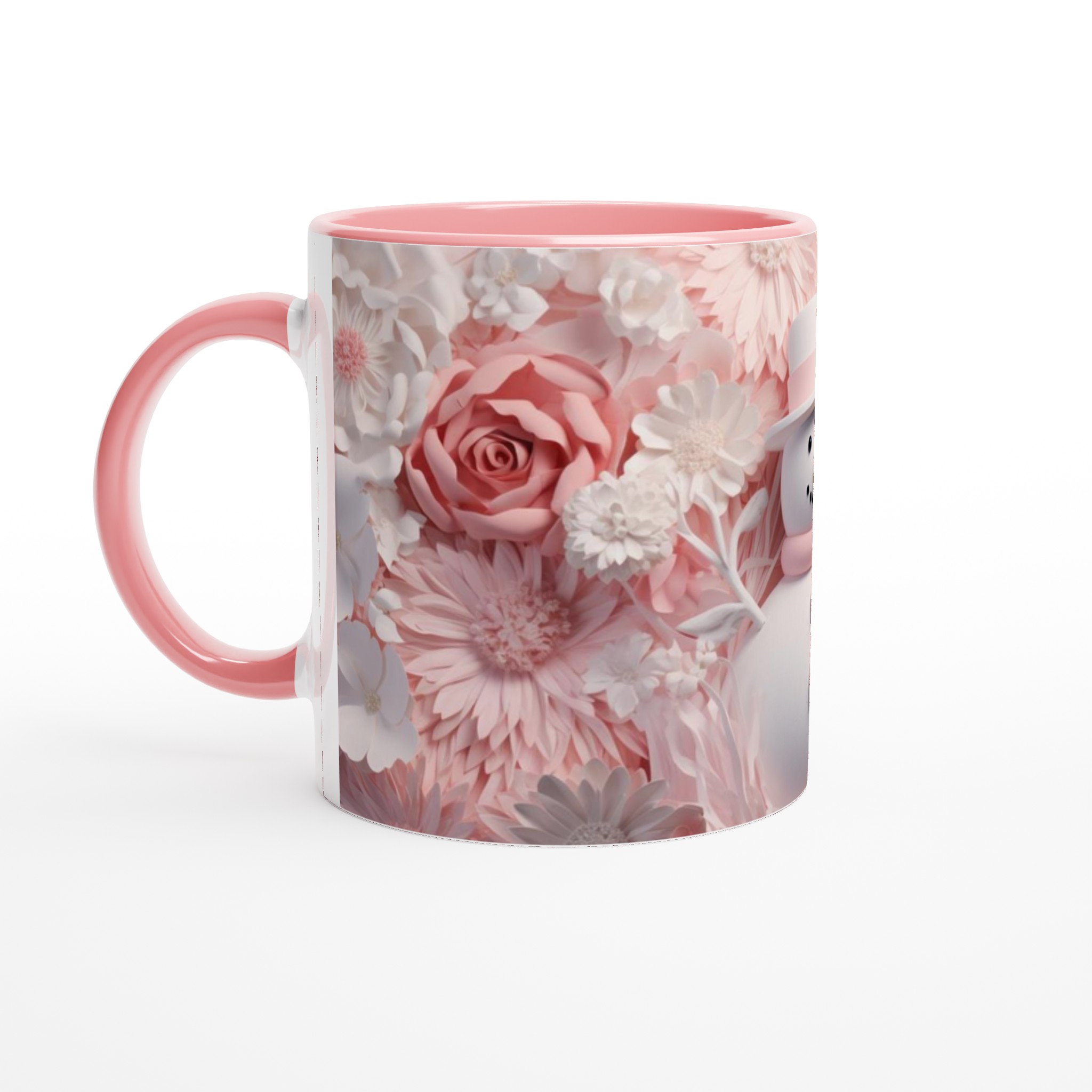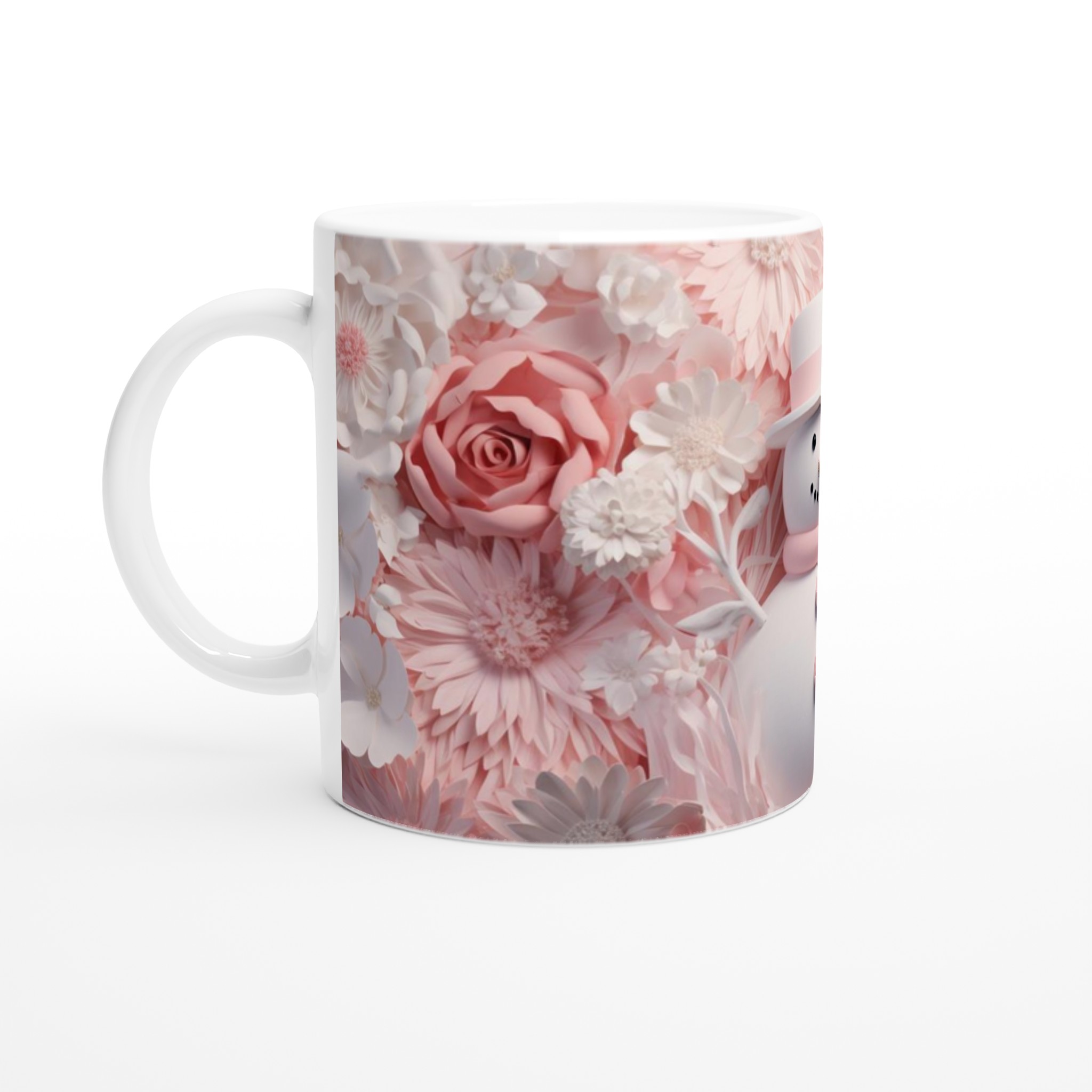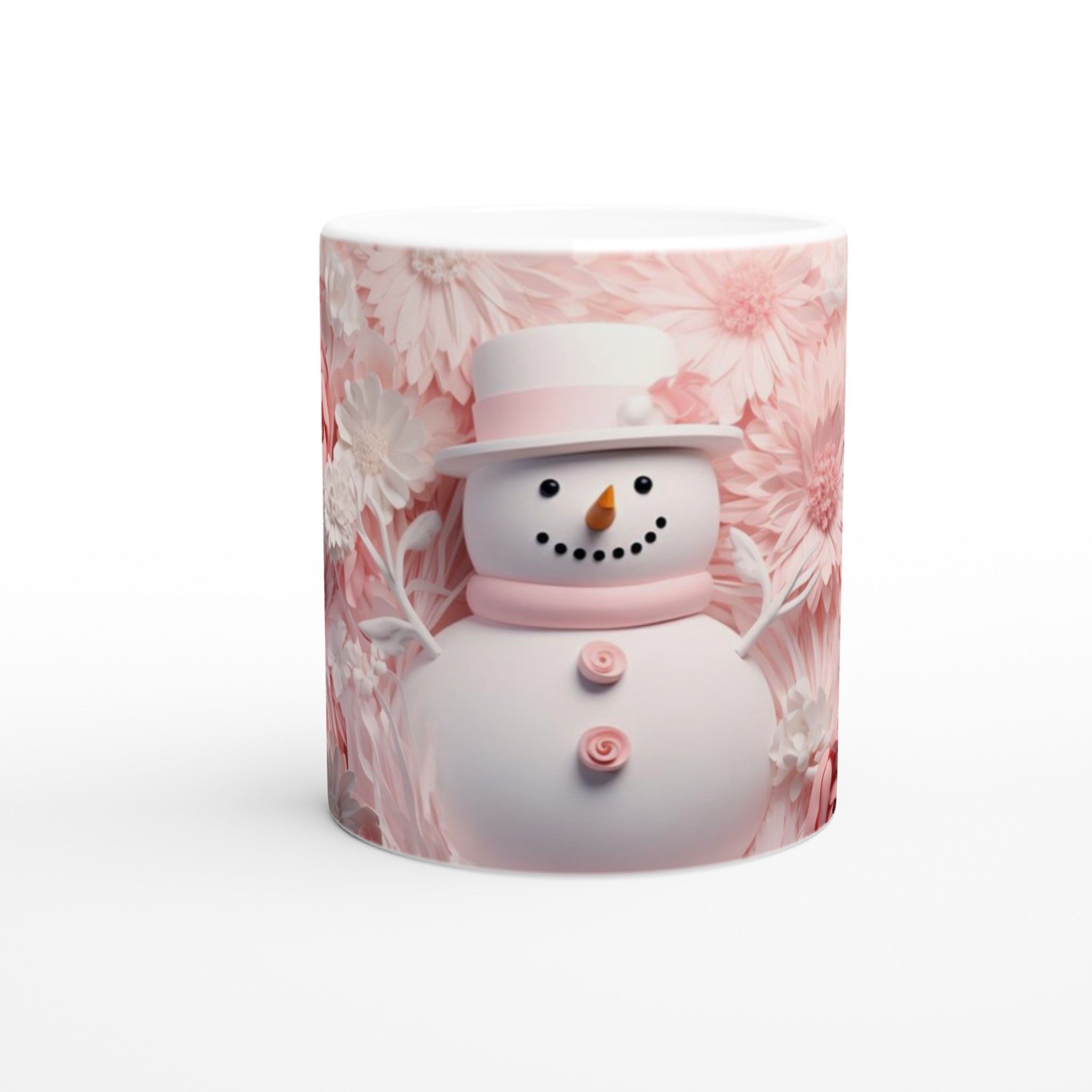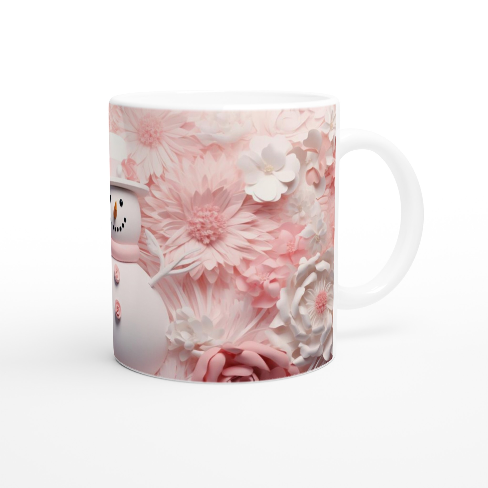 Charming Pink Floral Snowman 11oz Ceramic Mug – Perfect for Cozy Sips & Festive Decor