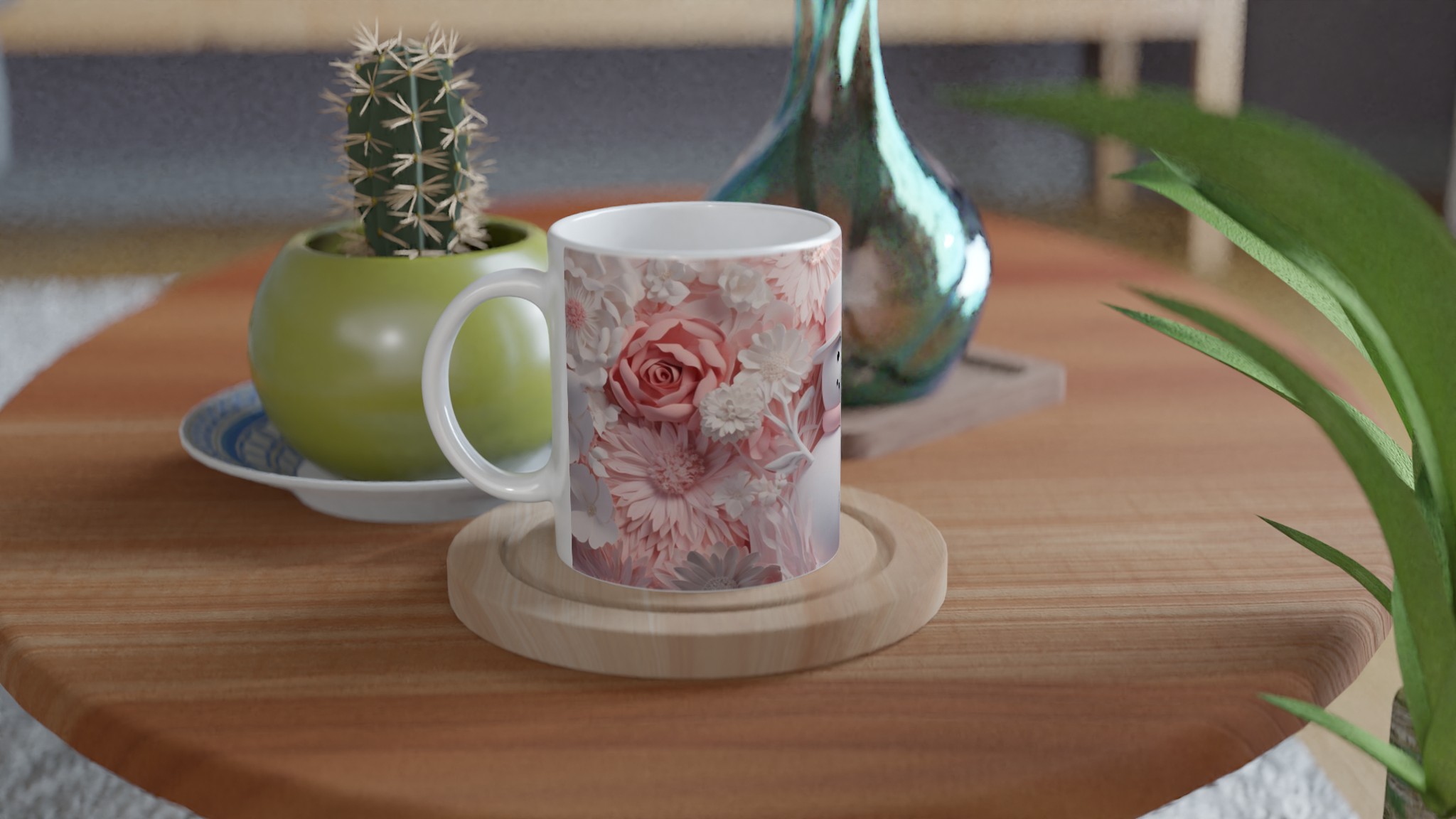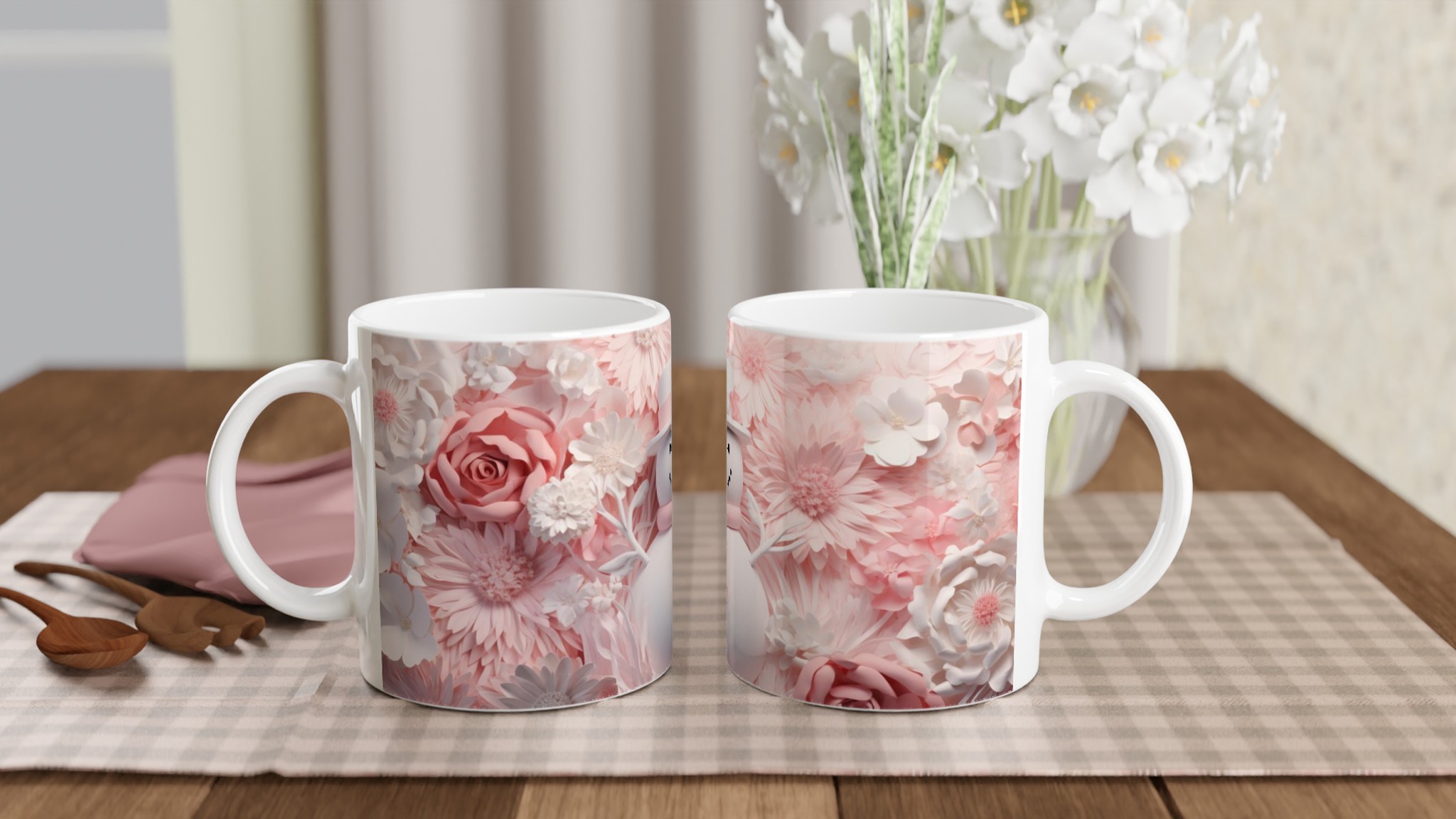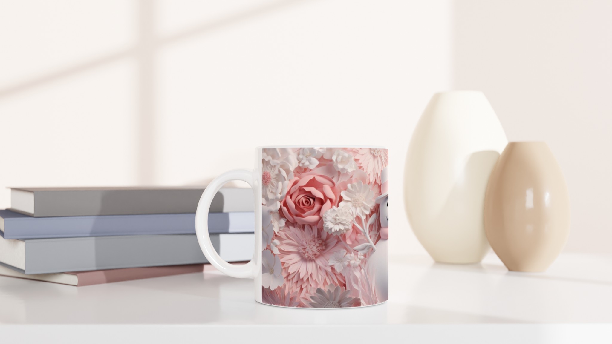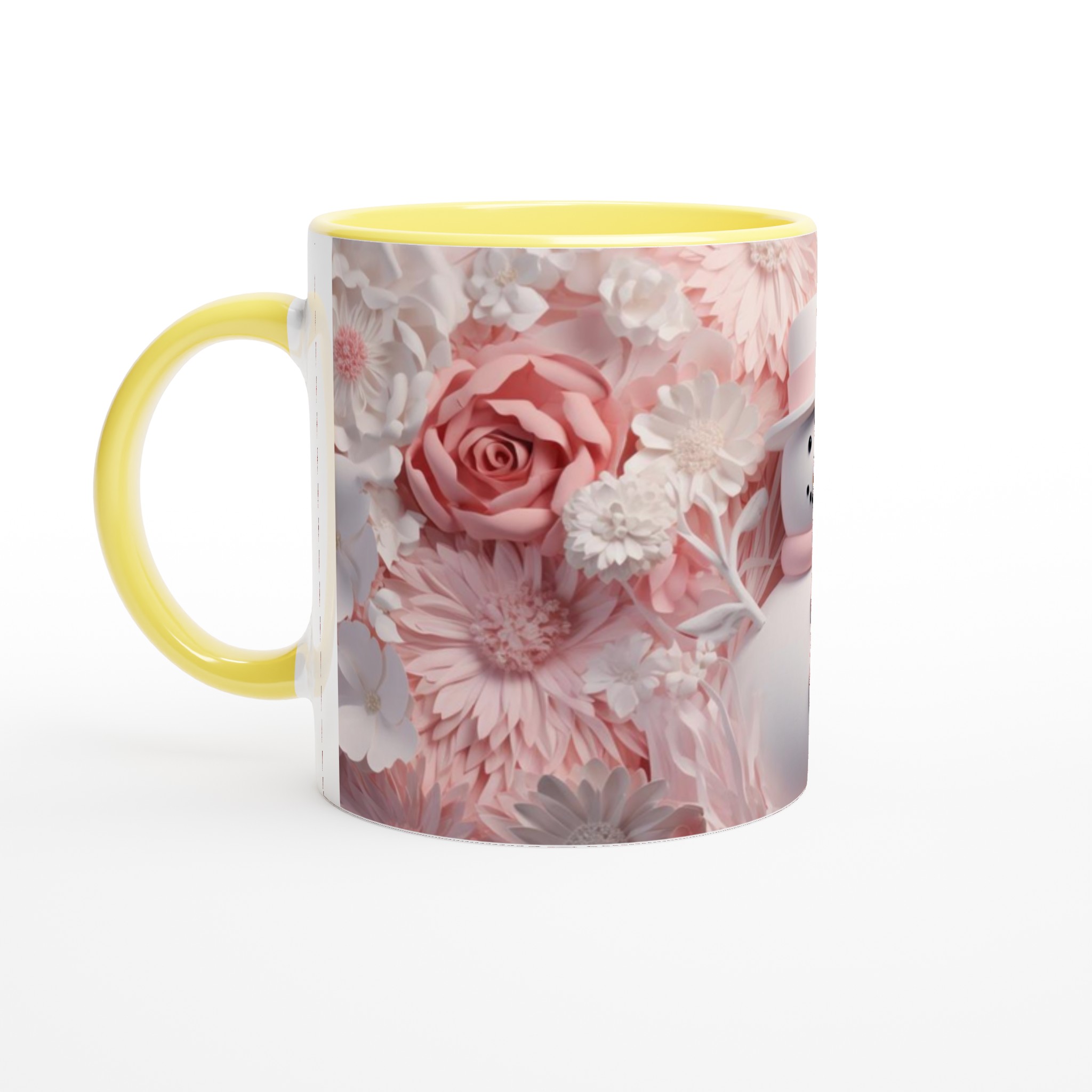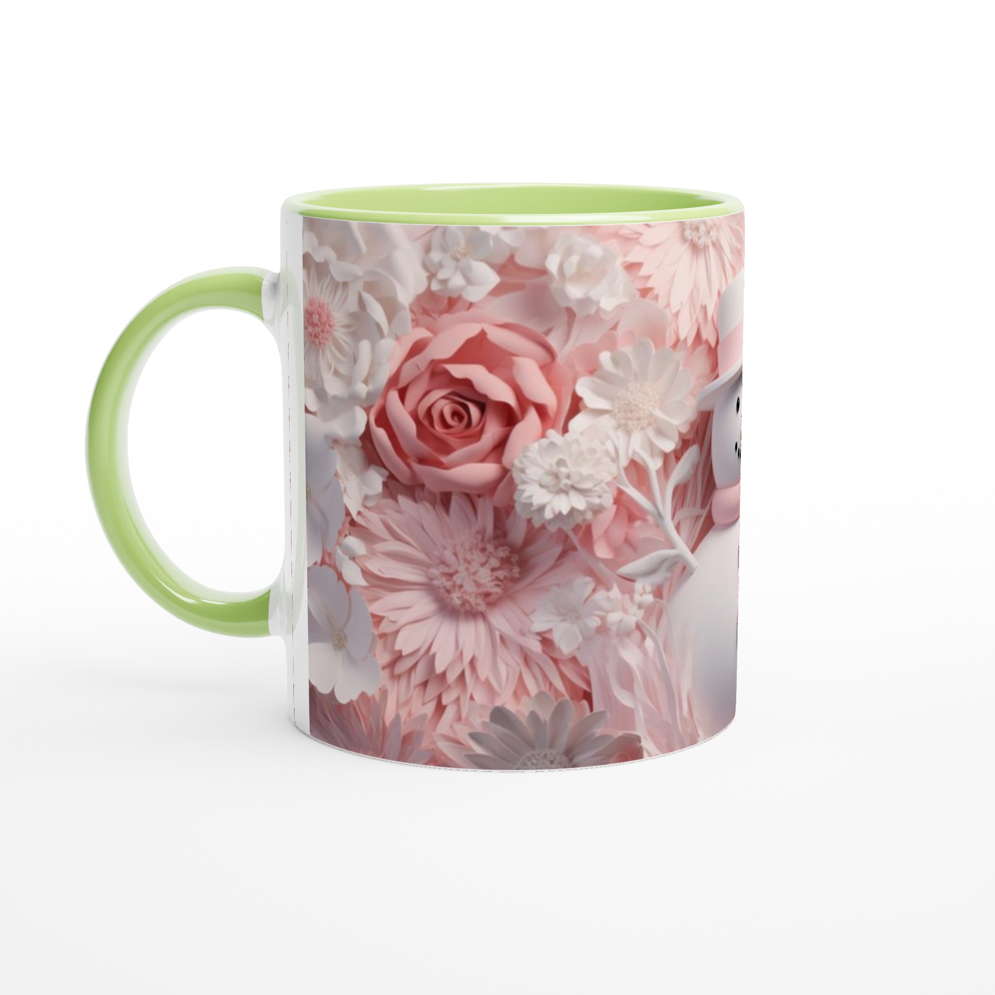 Charming Pink Floral Snowman 11oz Ceramic Mug – Perfect for Cozy Sips & Festive Decor