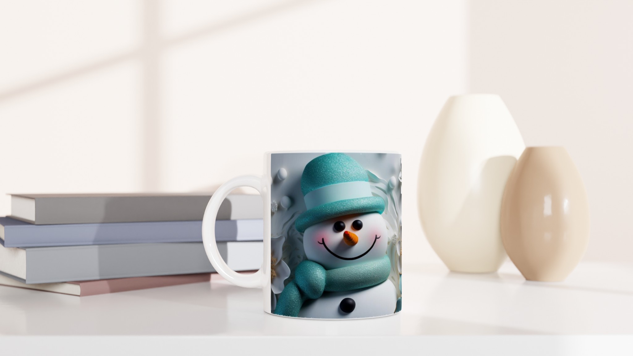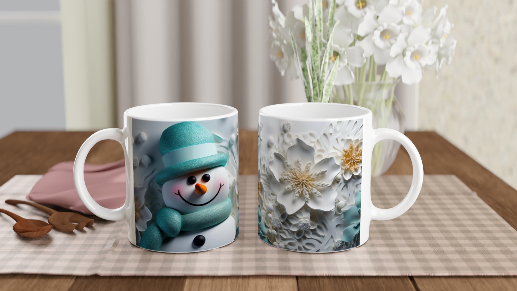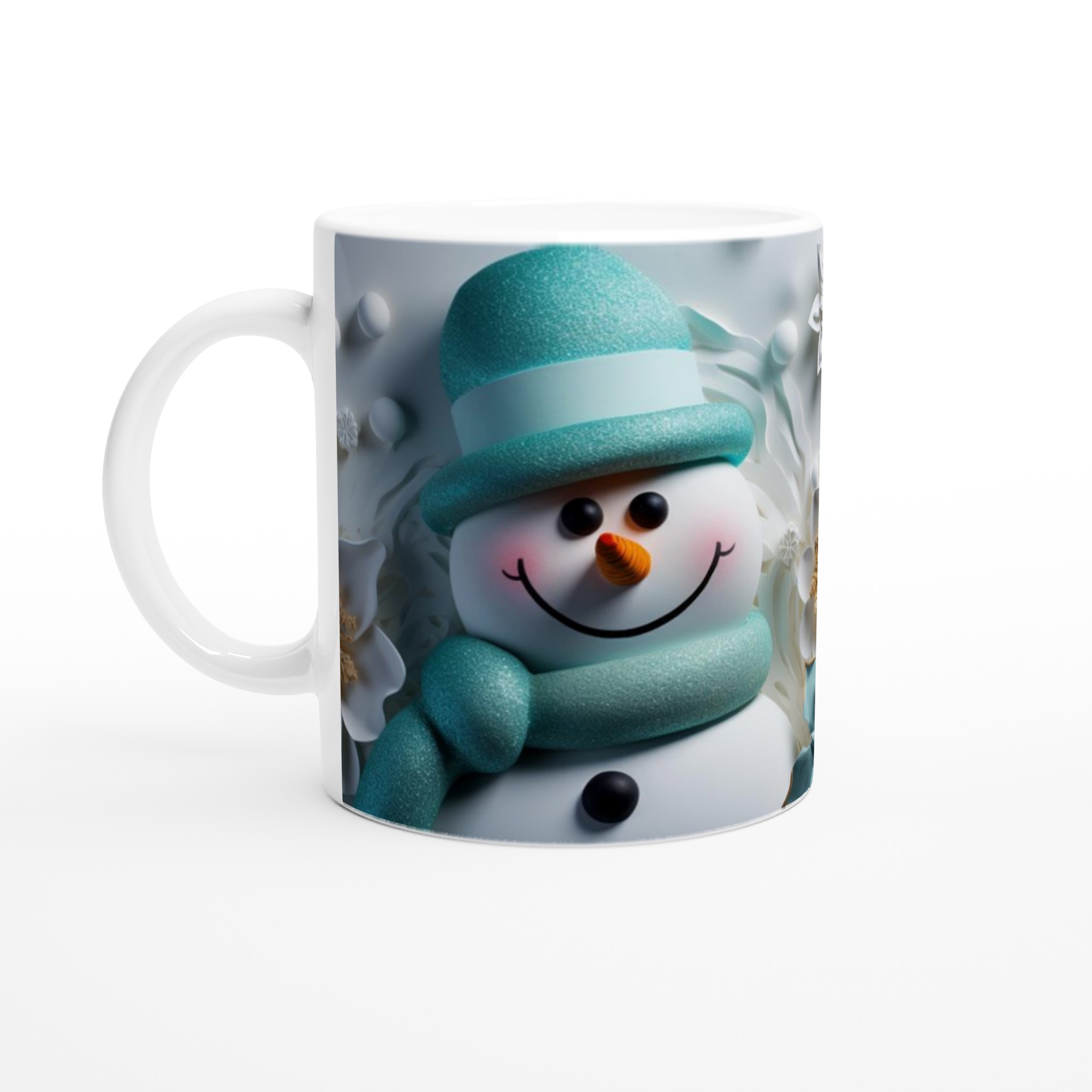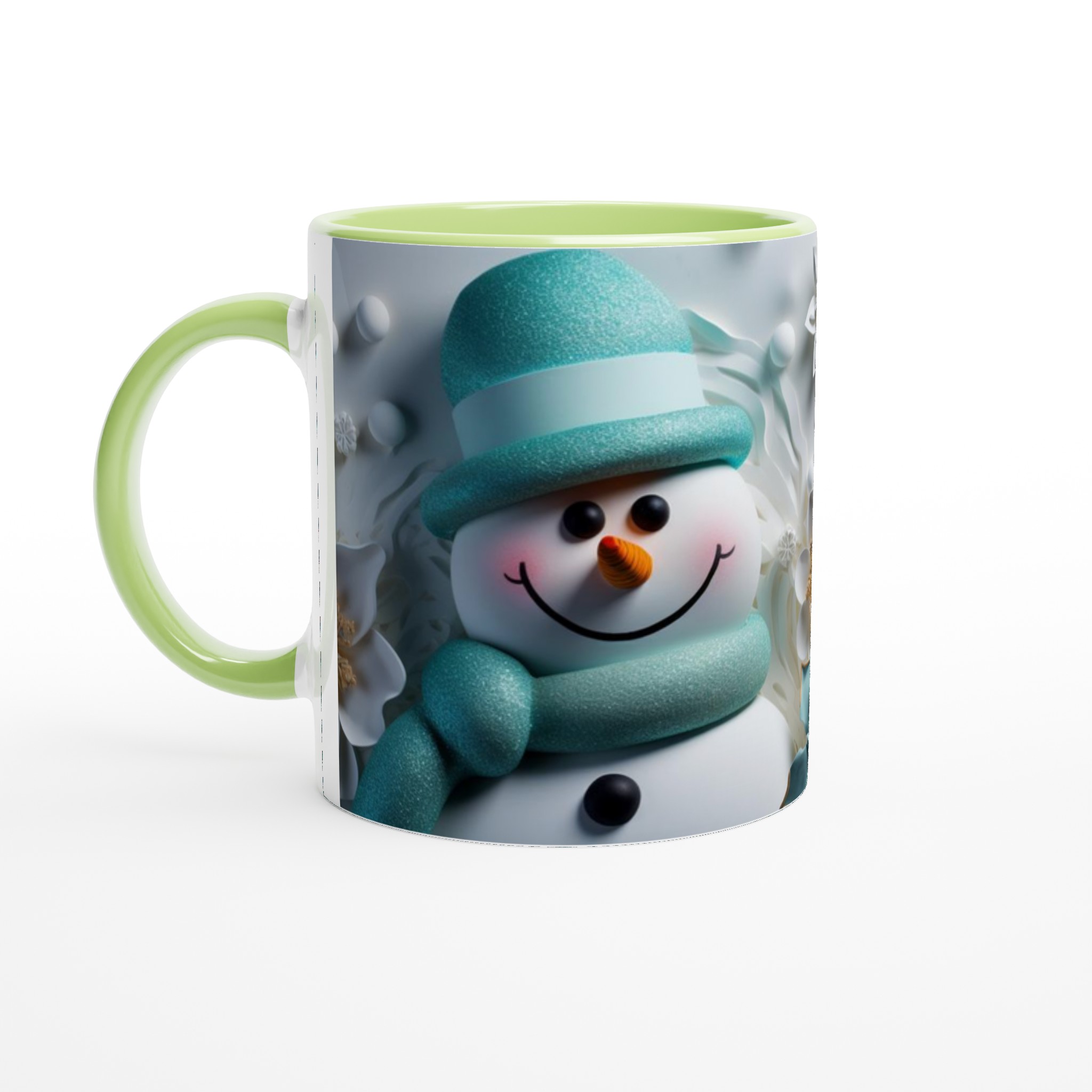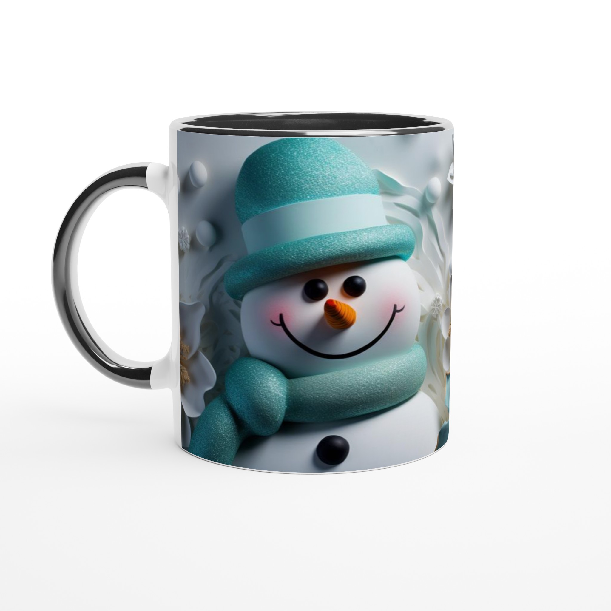 Charming Snowman Winter Wonderland White 11oz Ceramic Mug in Your Choice of Seven Vibrant Hues