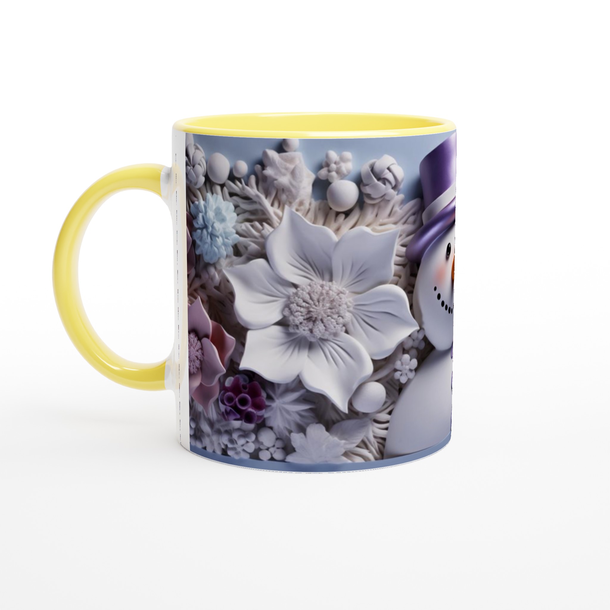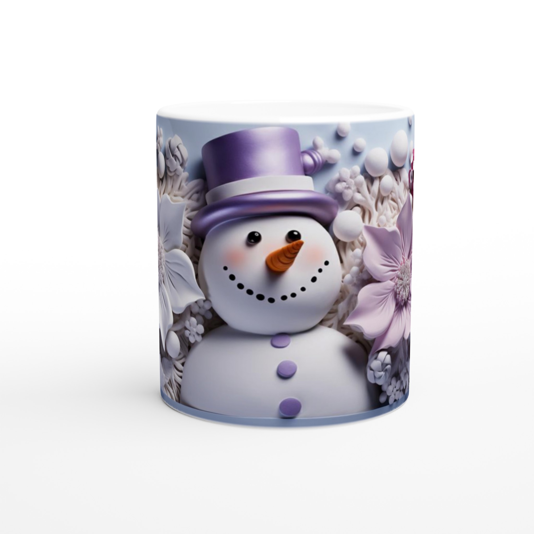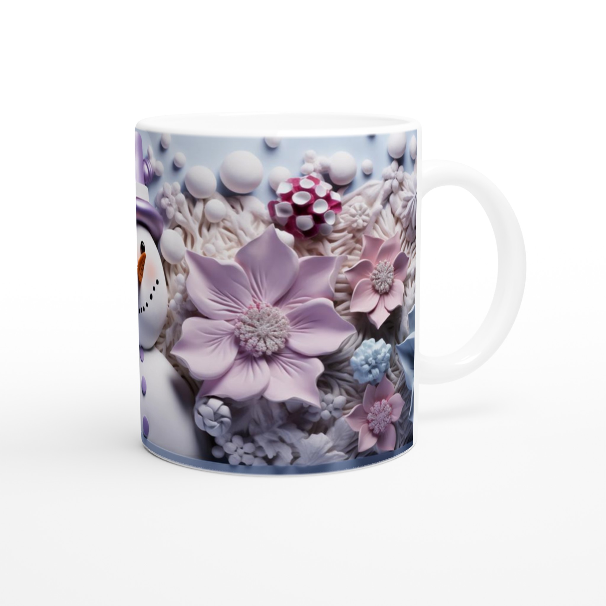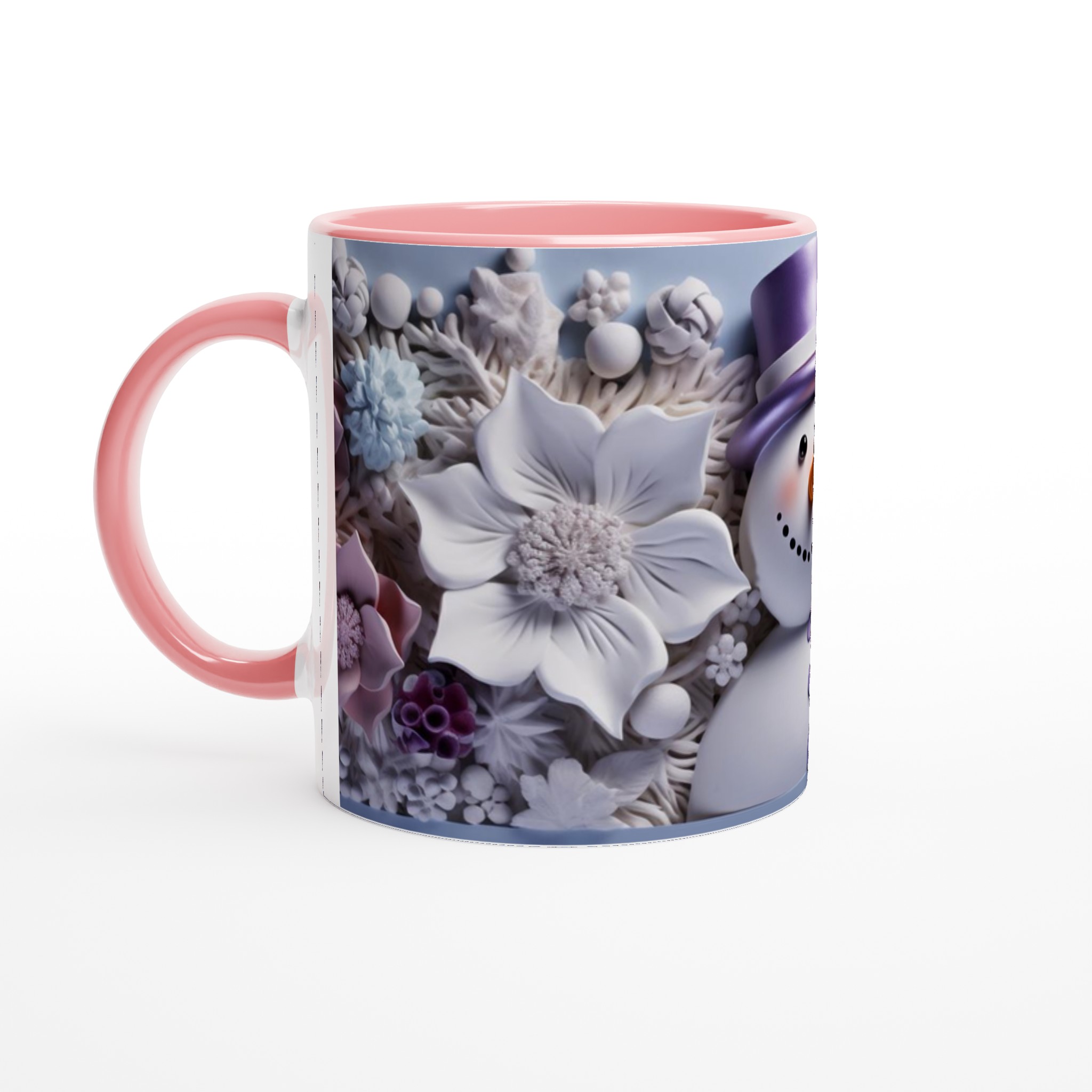 Charming Snowman with Pastel Floral 11oz Ceramic Mug – Choose Your Hue!