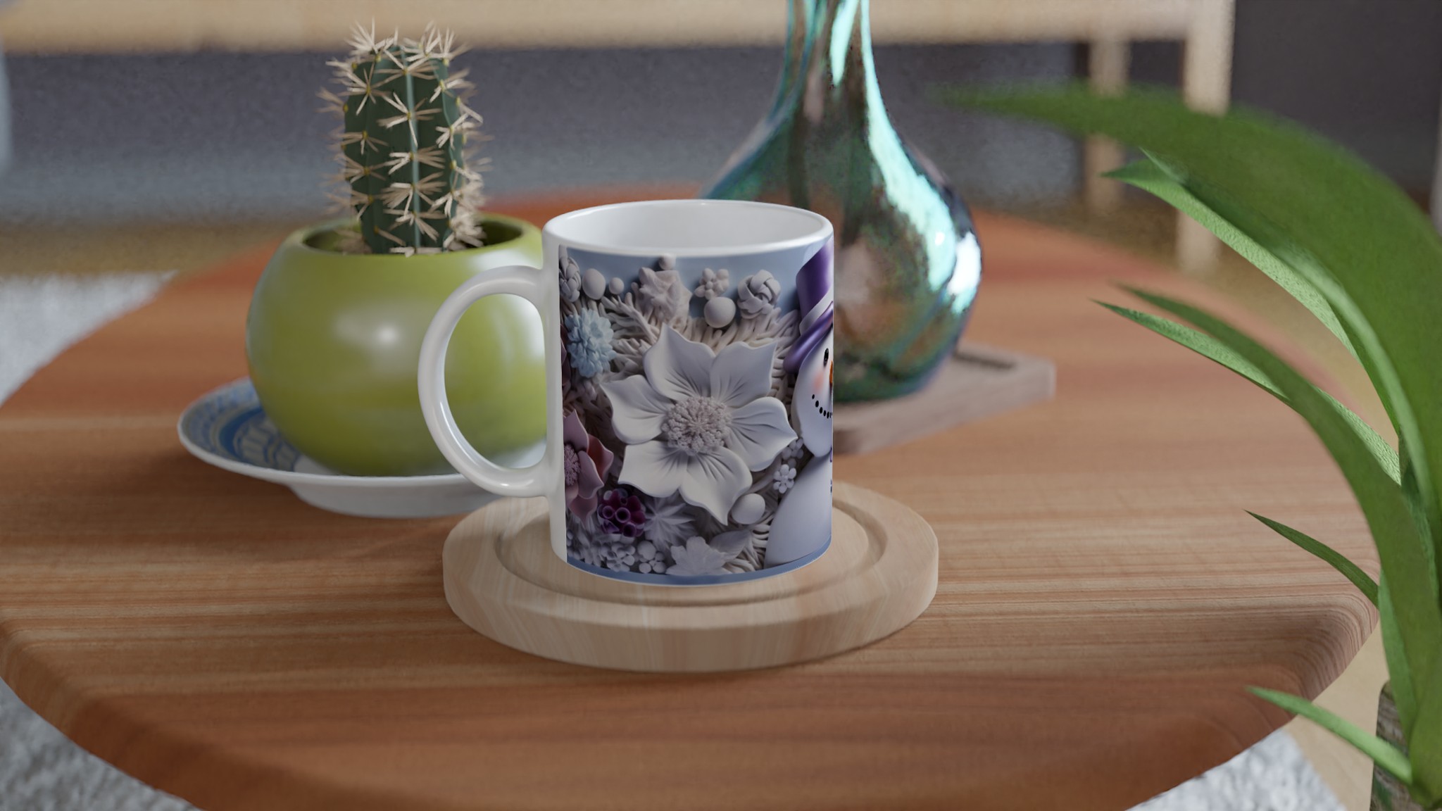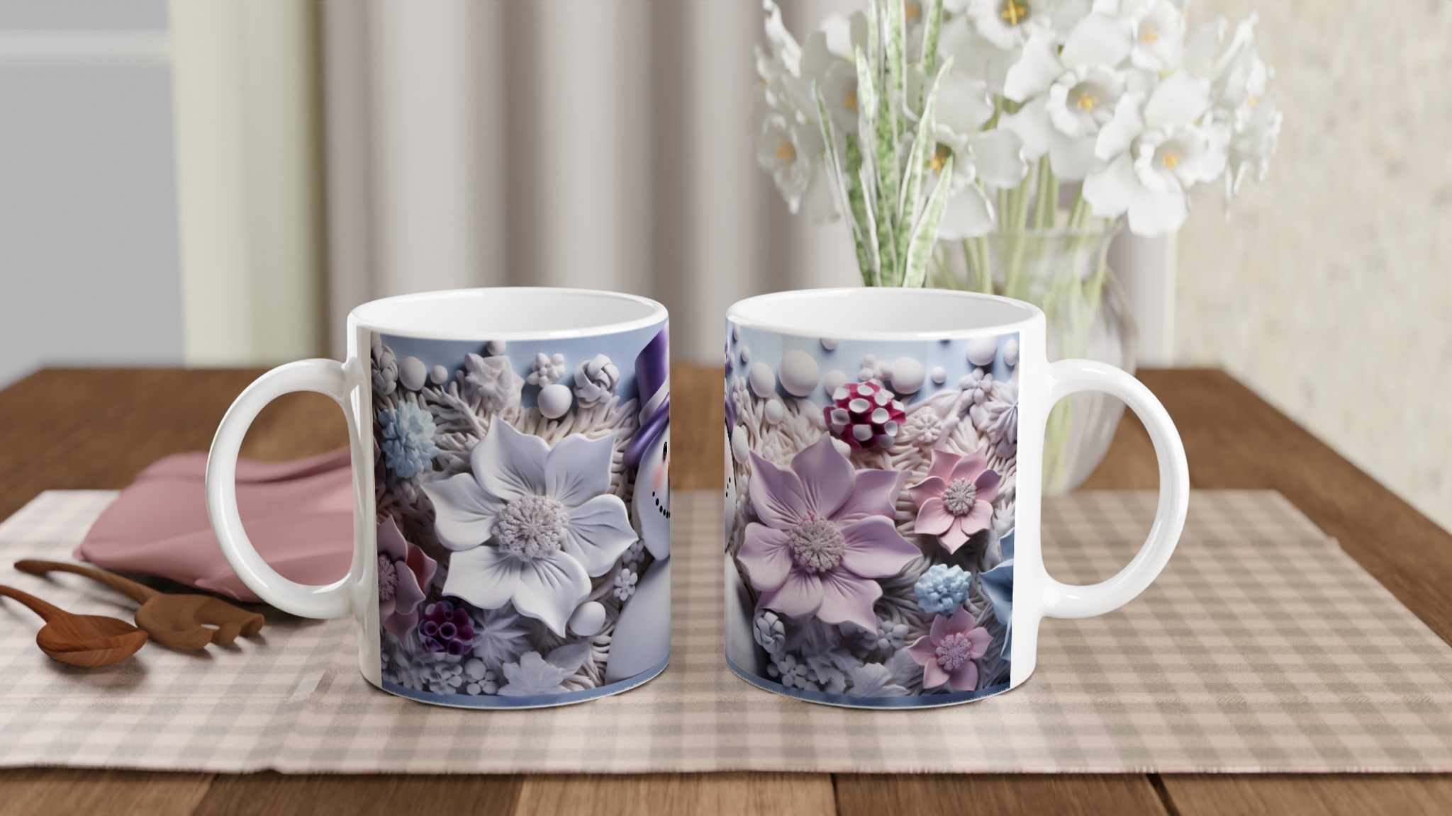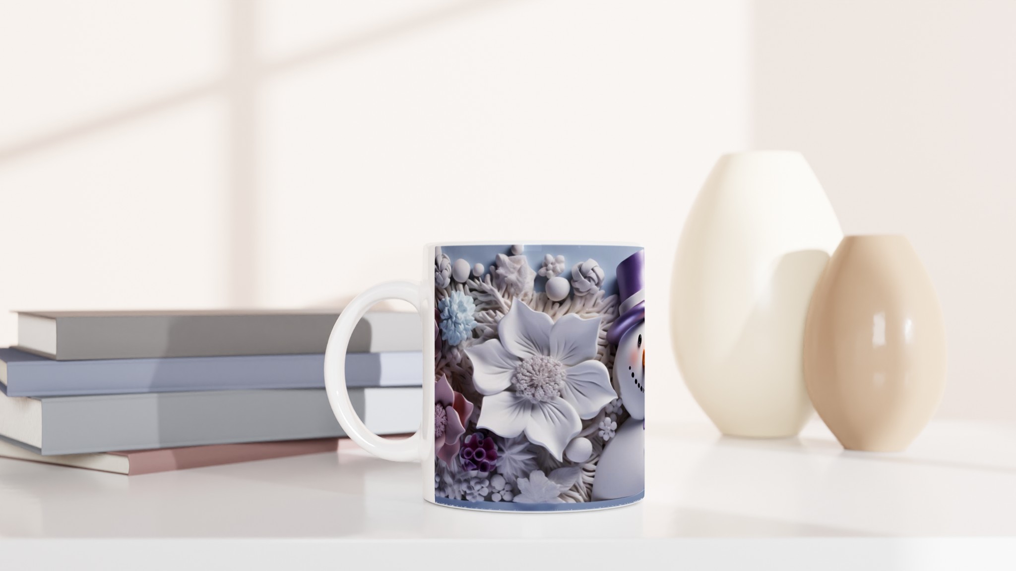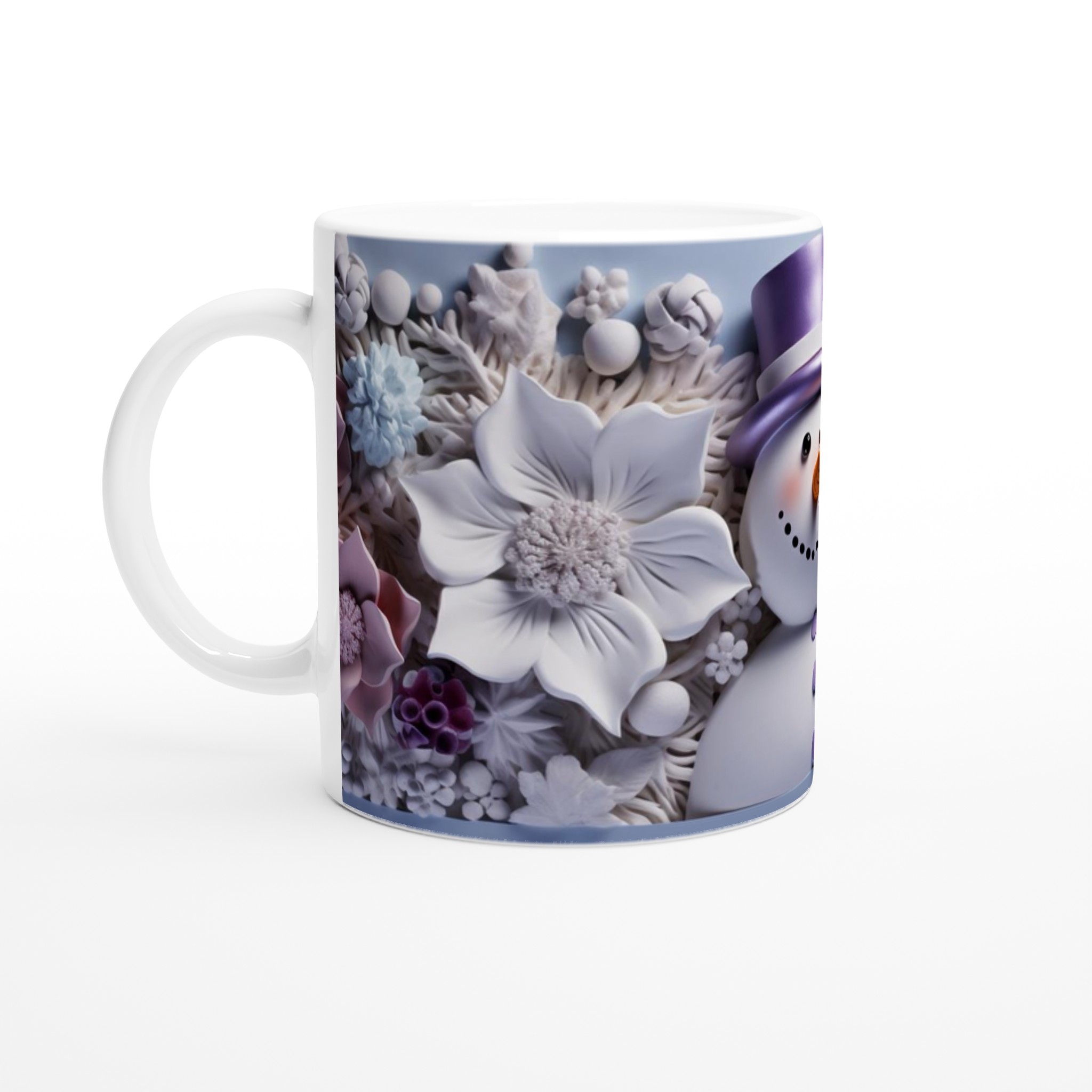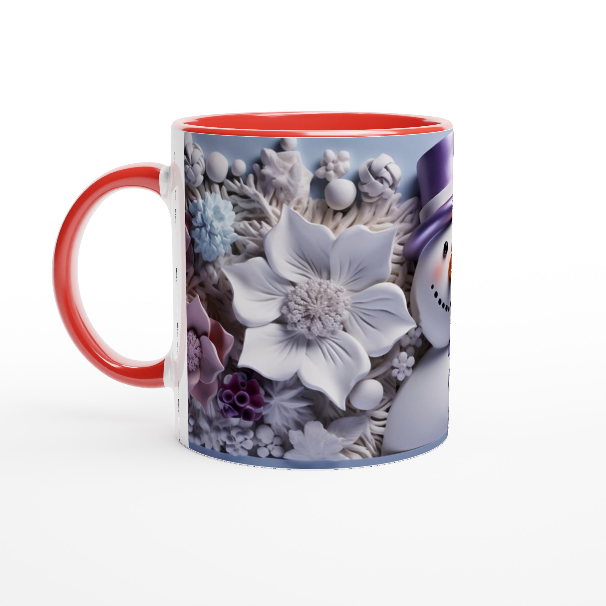 Charming Snowman with Pastel Floral 11oz Ceramic Mug – Choose Your Hue!