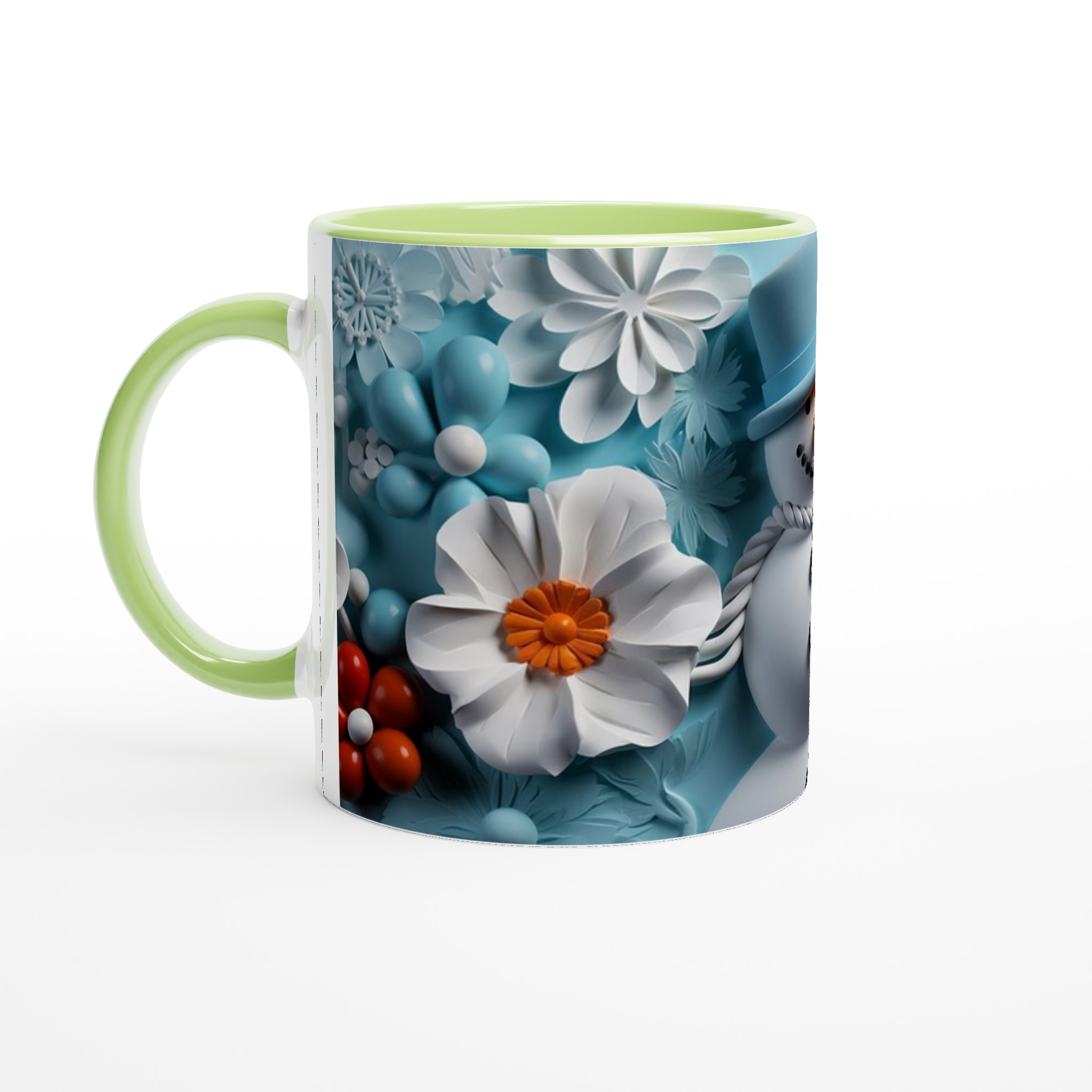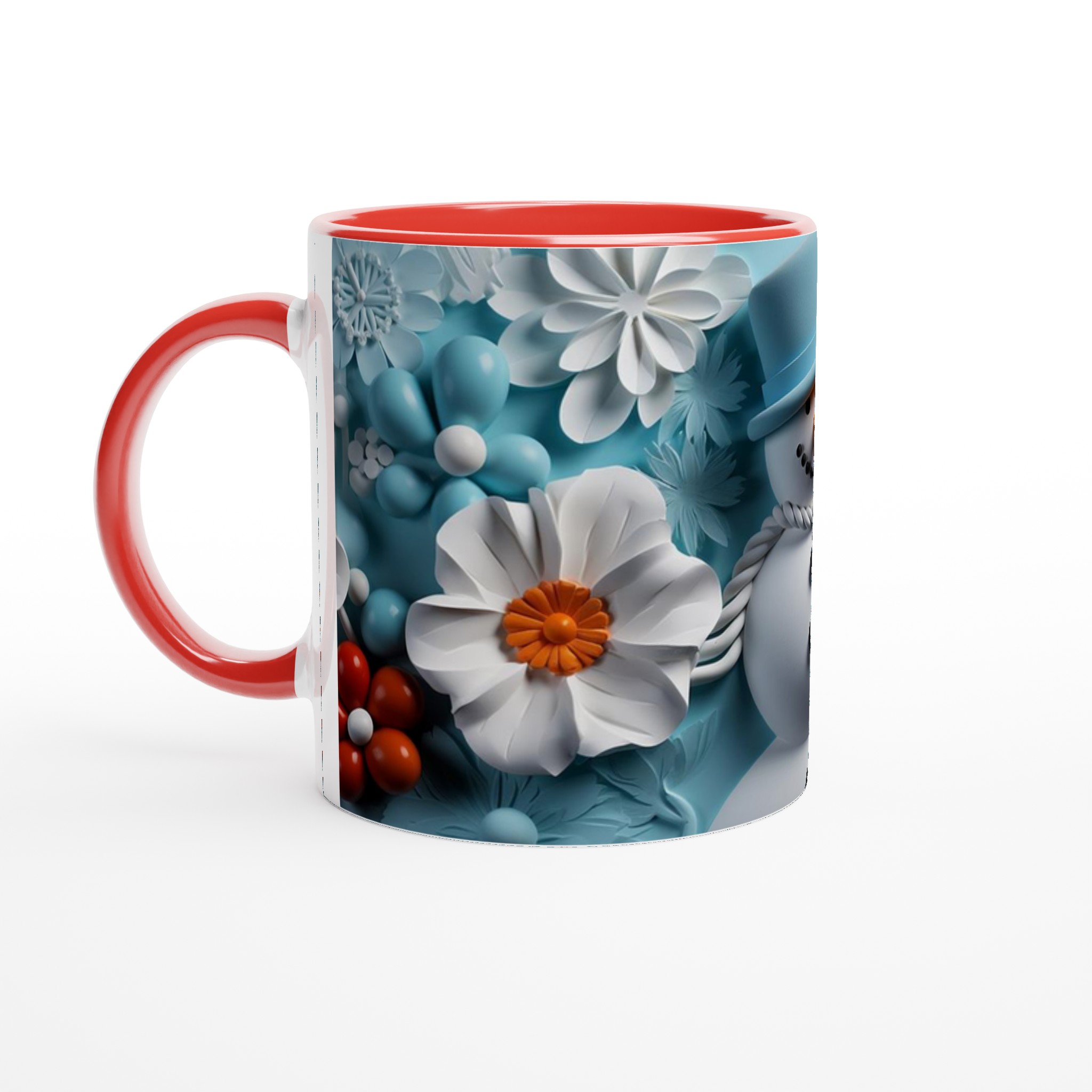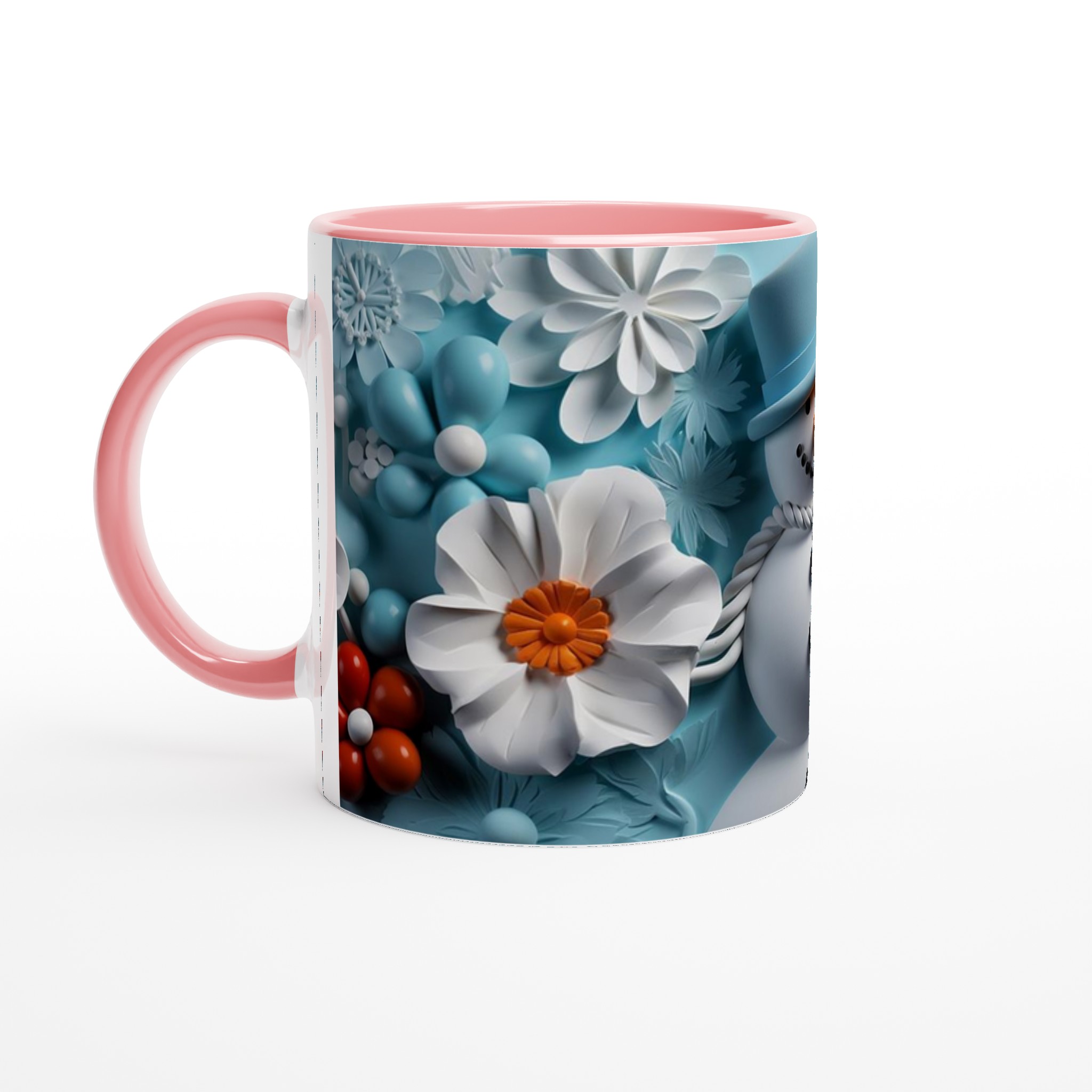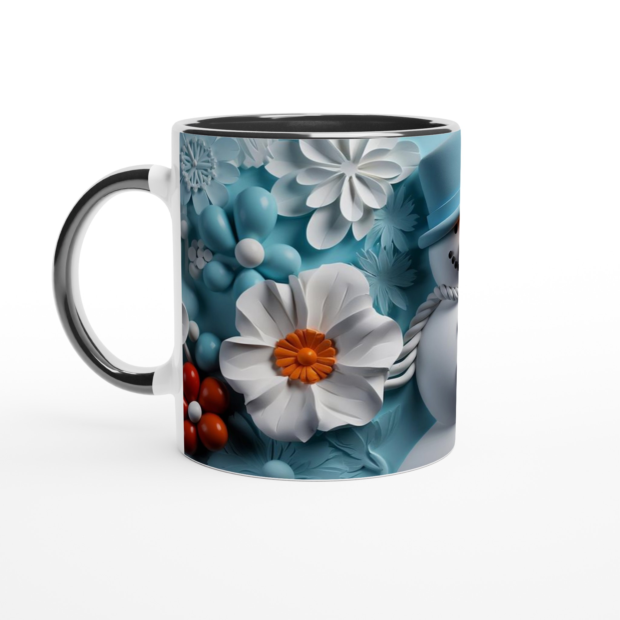 Charming Snowman Winter Blossom 11oz Ceramic Mug – Choose Your Hue!