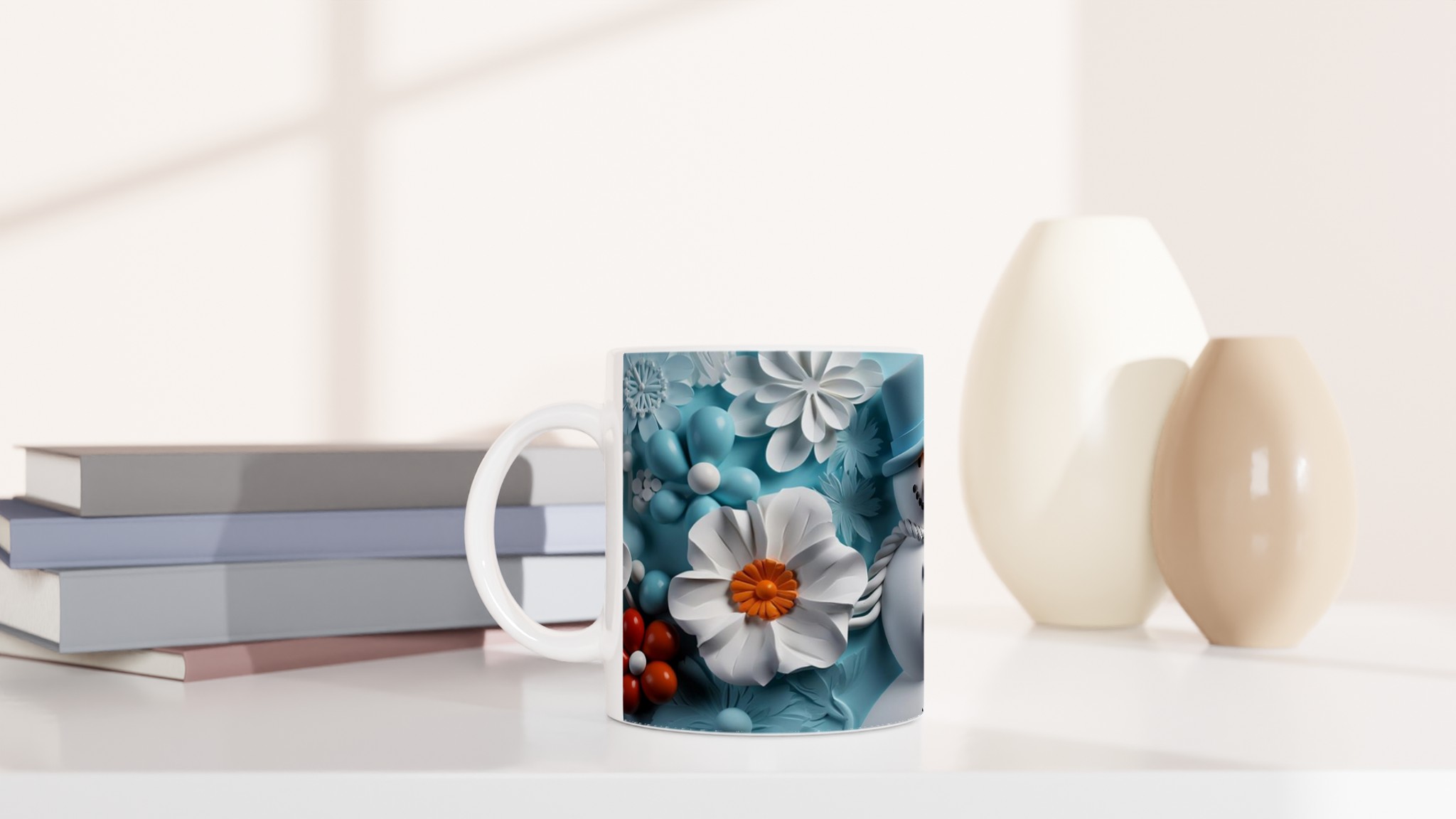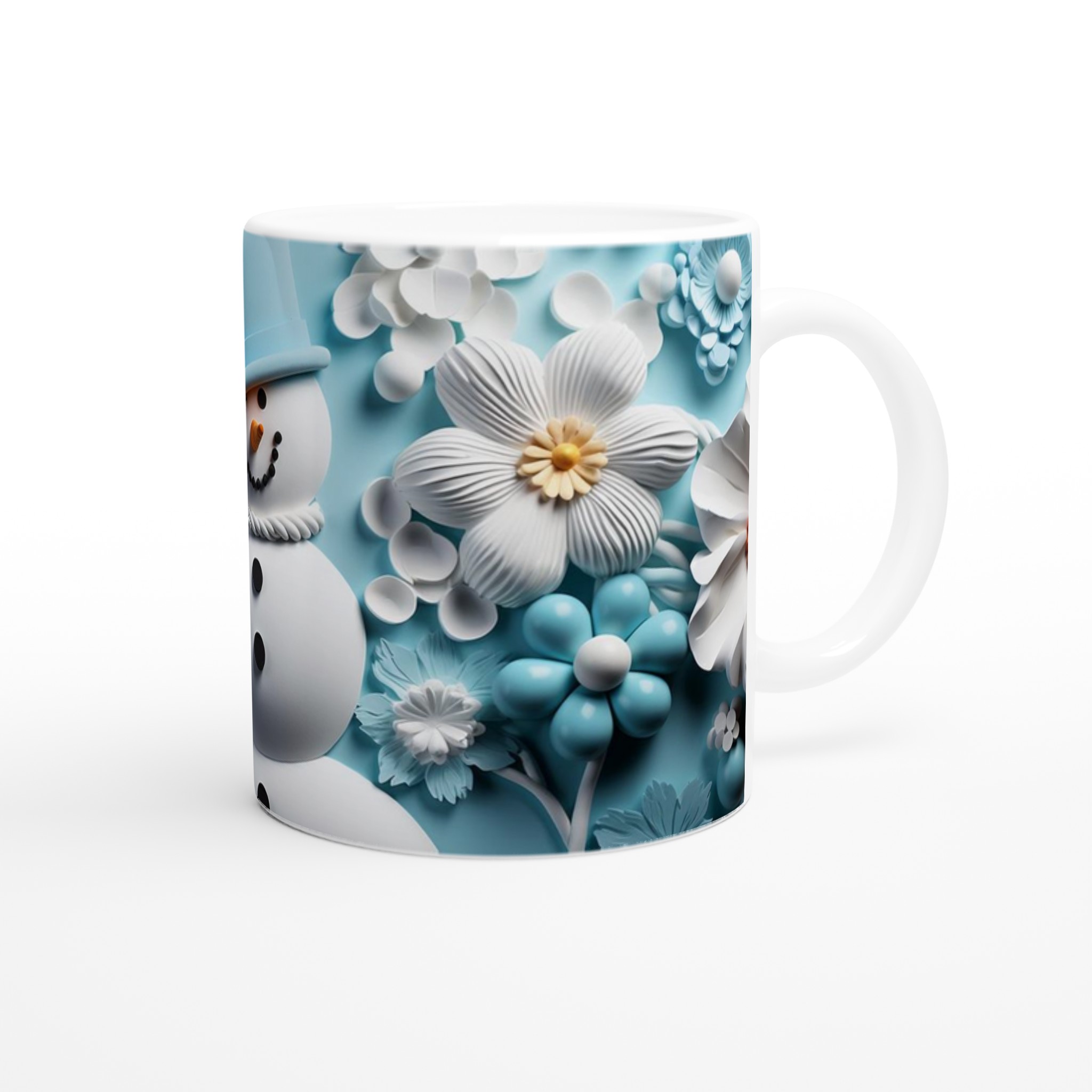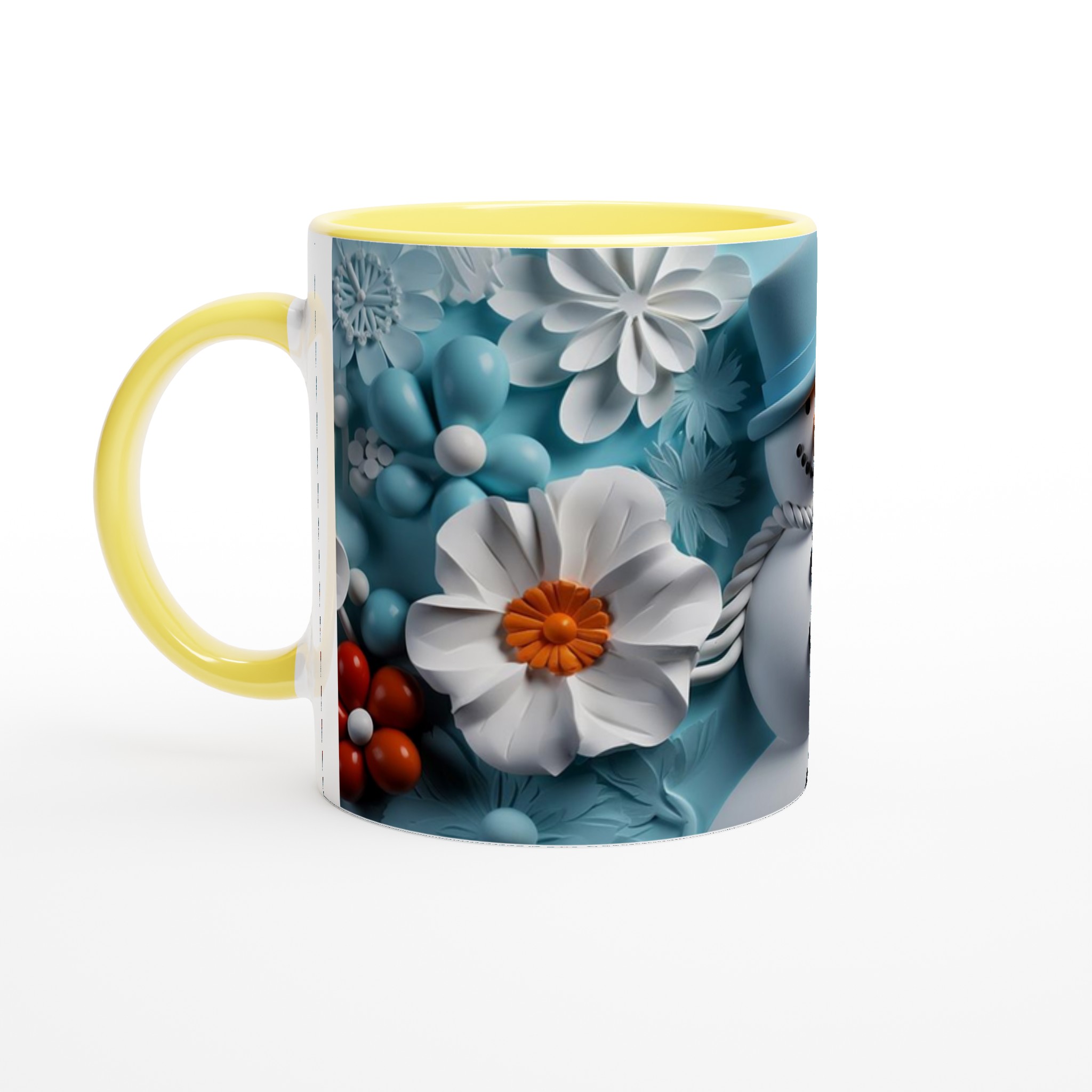 Charming Snowman Winter Blossom 11oz Ceramic Mug – Choose Your Hue!