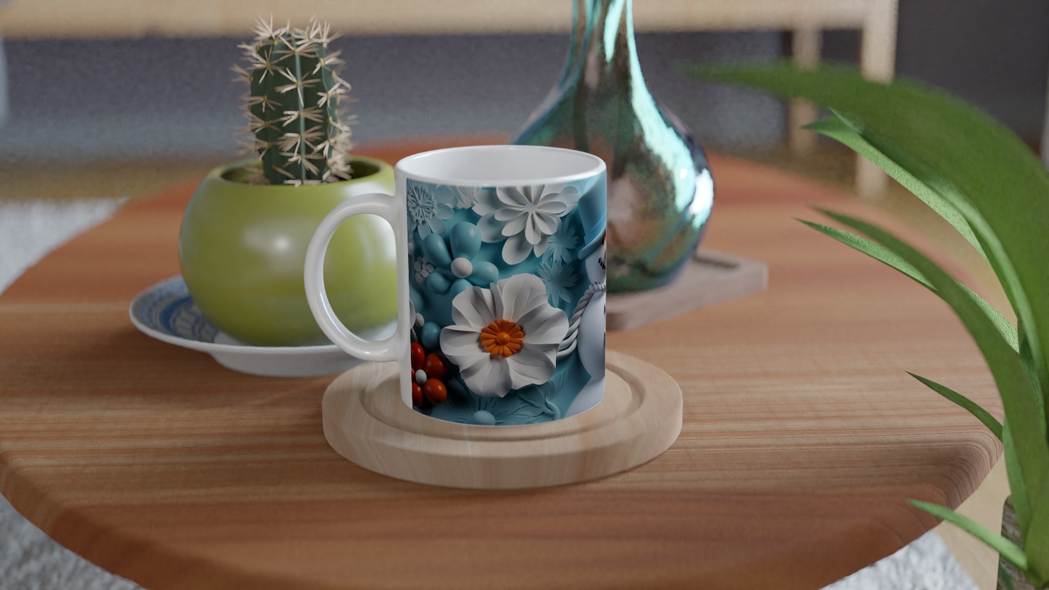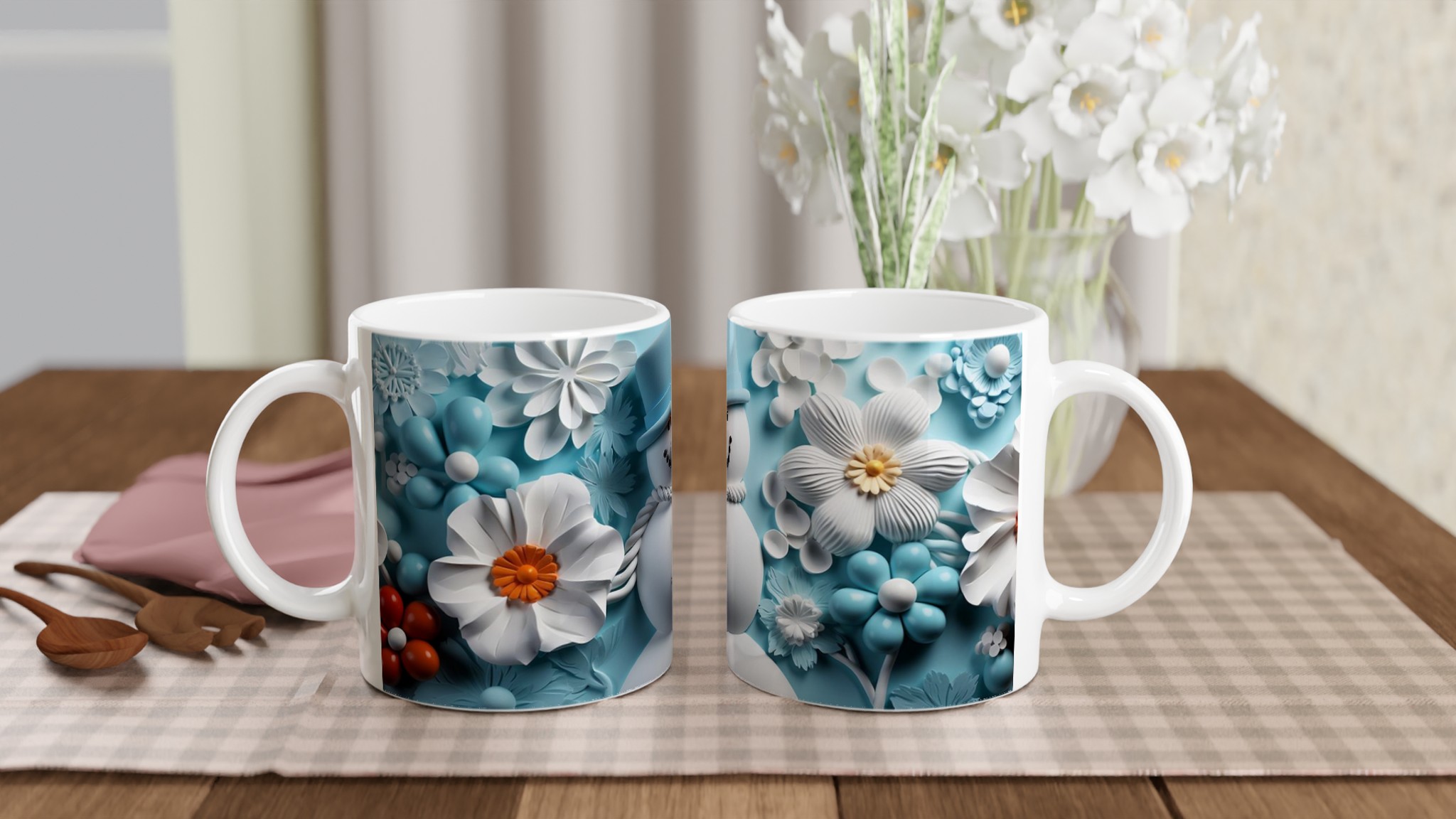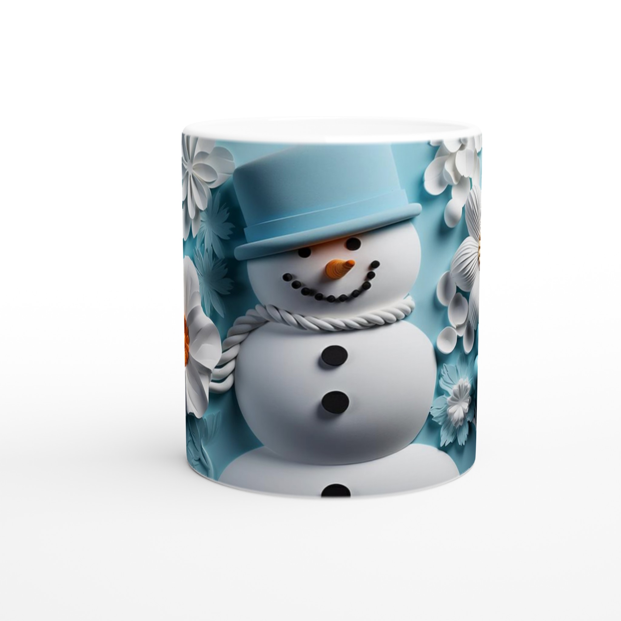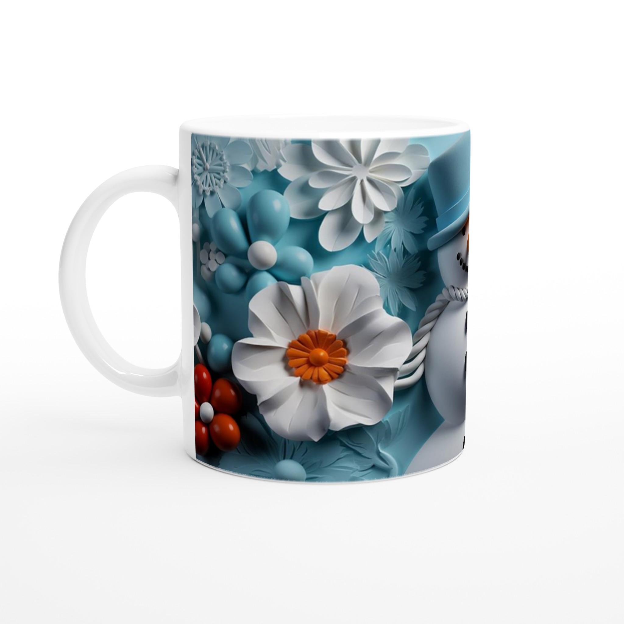 Charming Snowman Winter Blossom 11oz Ceramic Mug – Choose Your Hue!