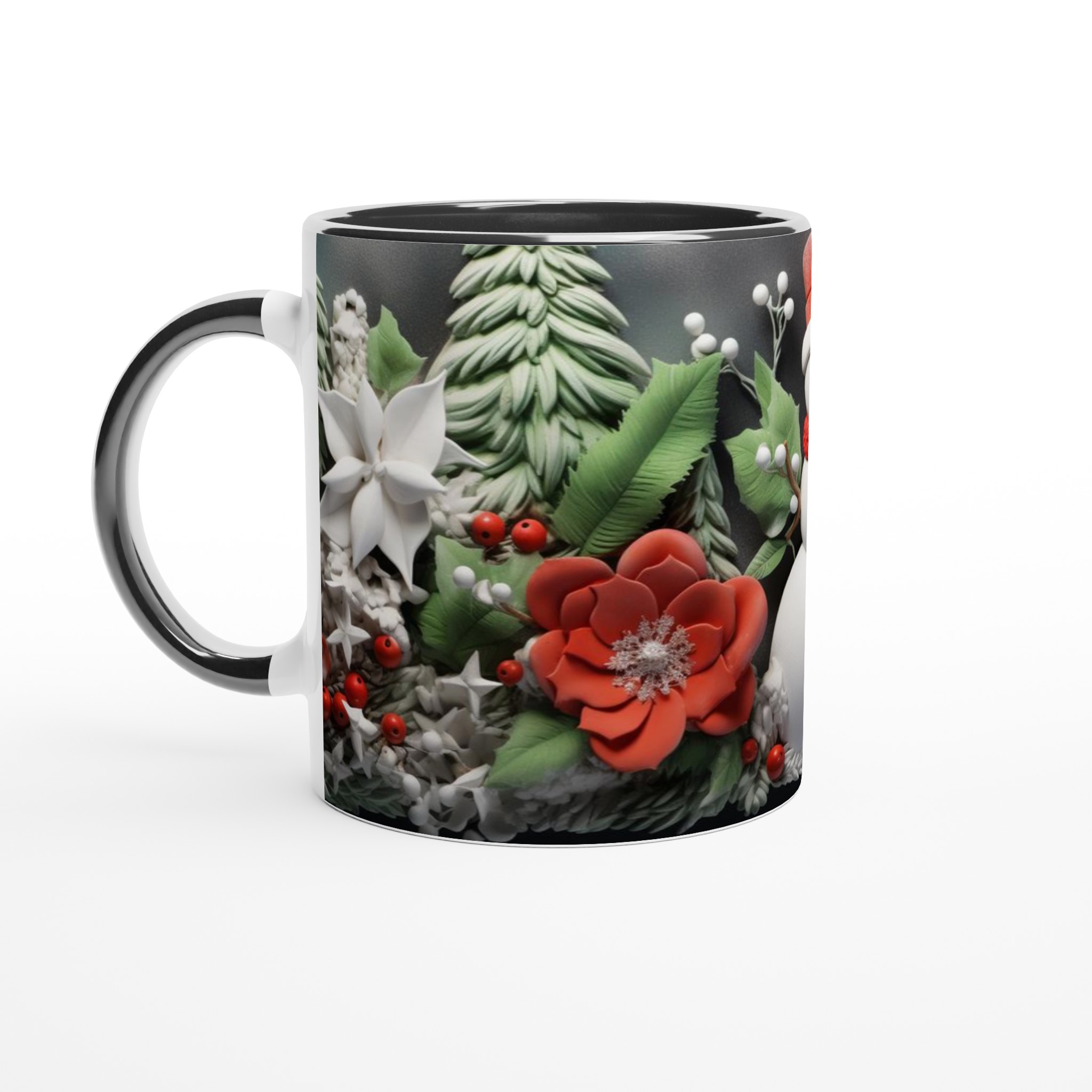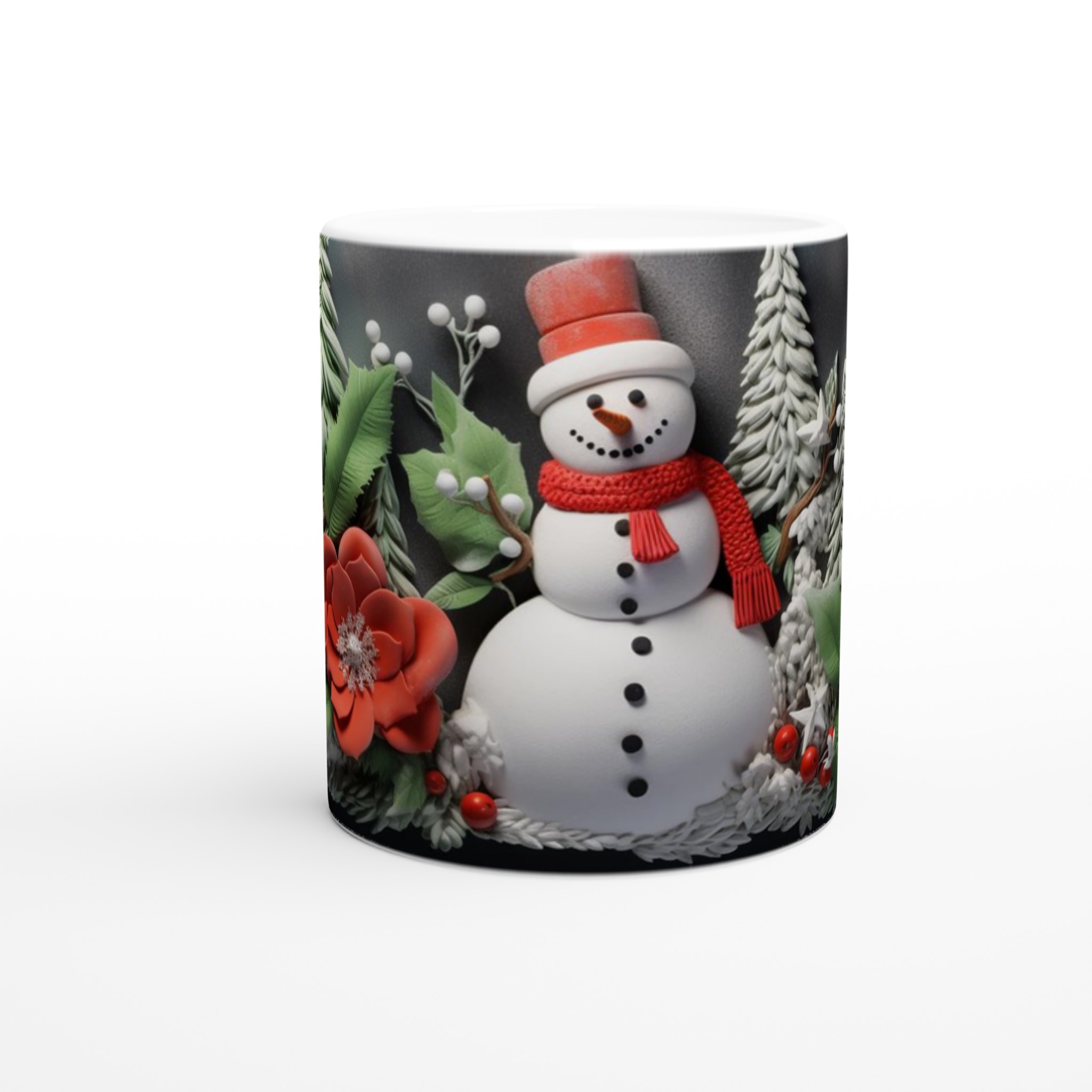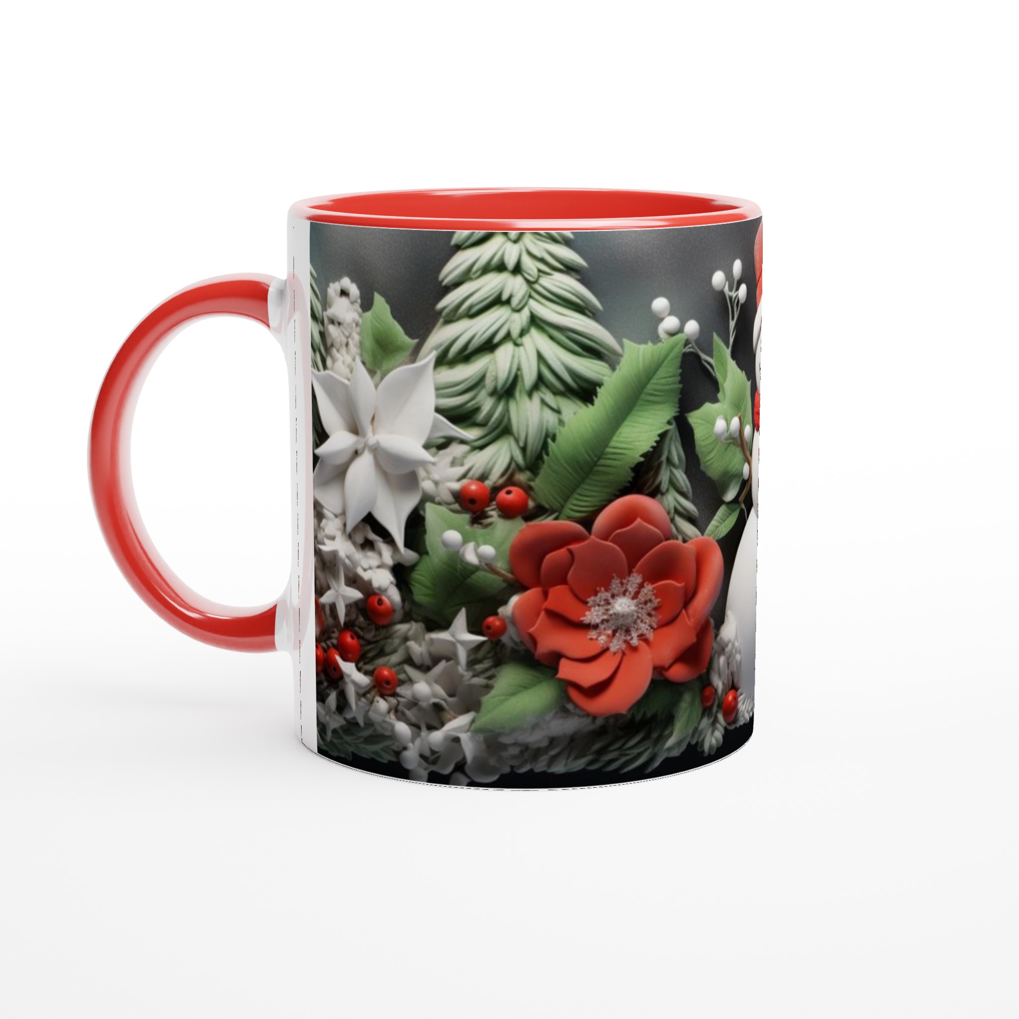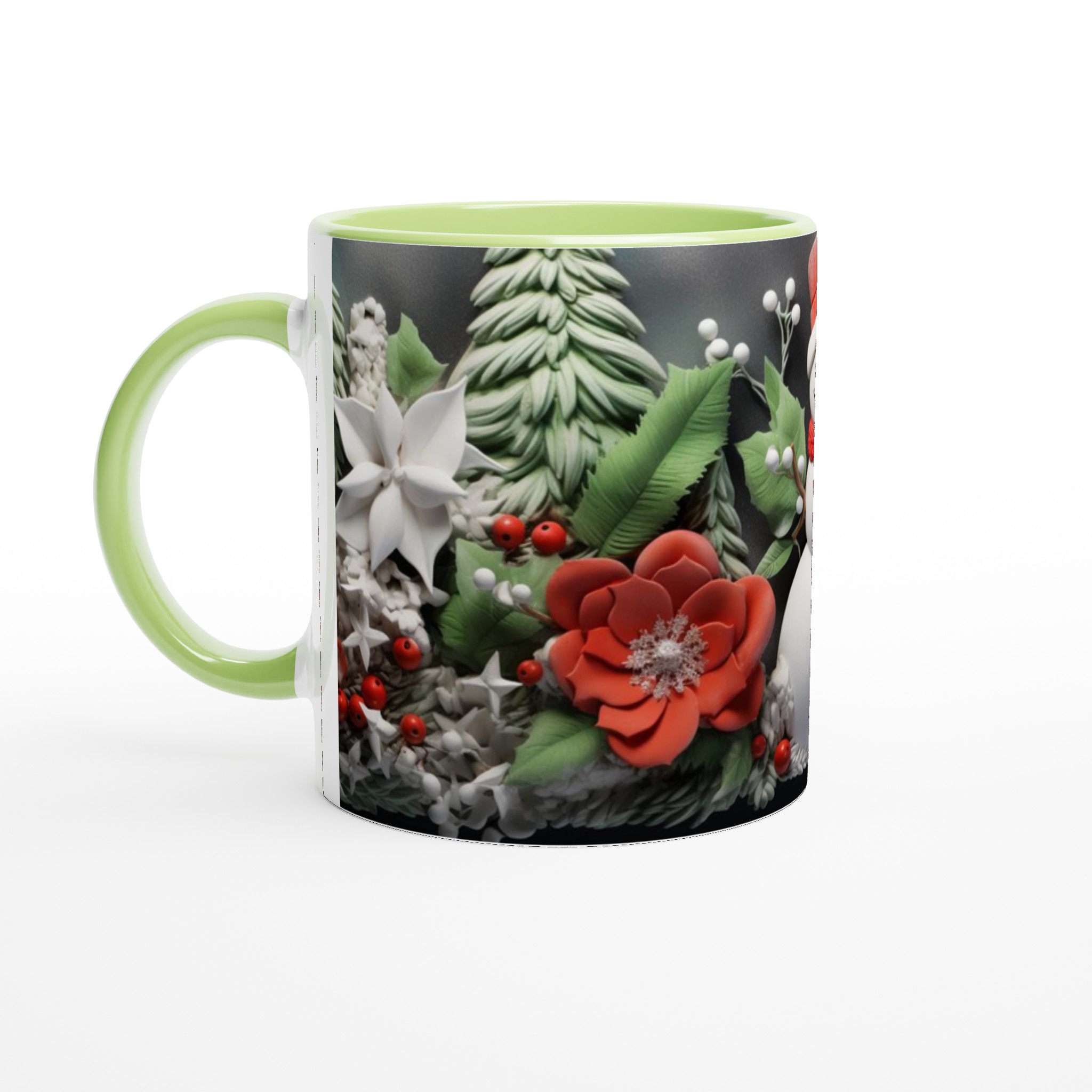 Charming Holiday Snowman & Festive Foliage Ceramic Mug – Your Choice of 7 Vibrant Colors