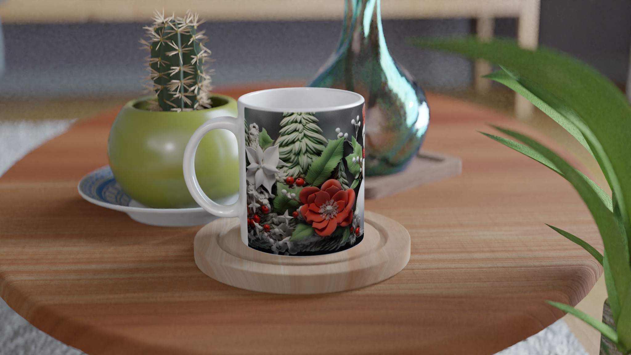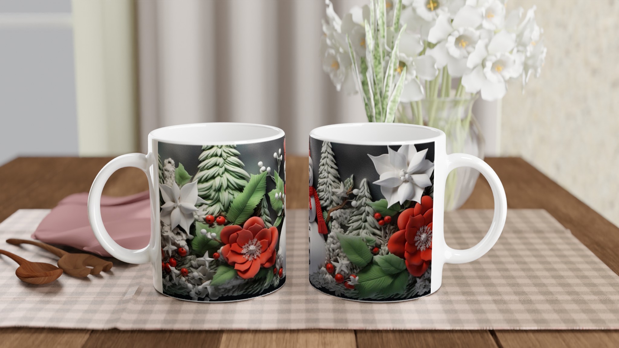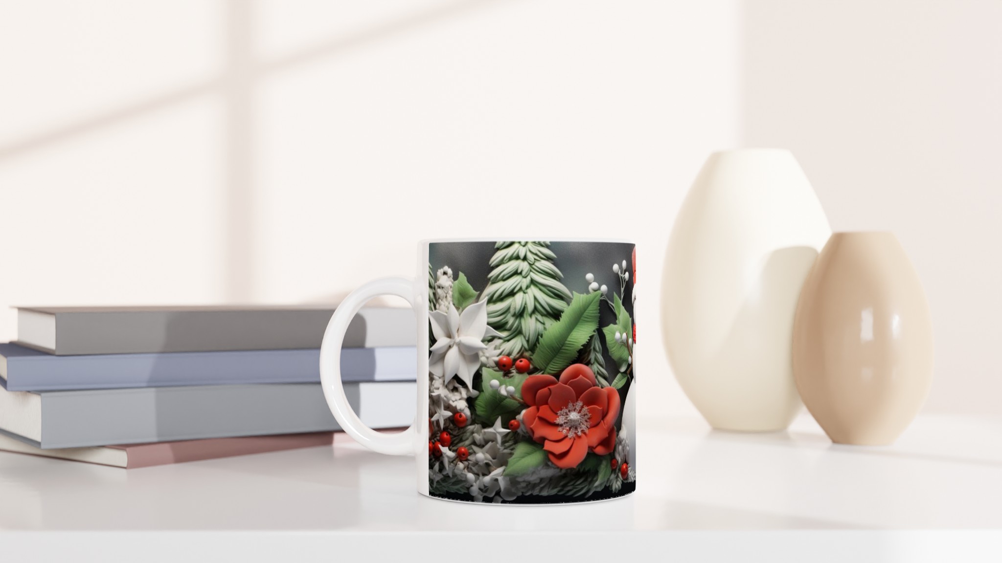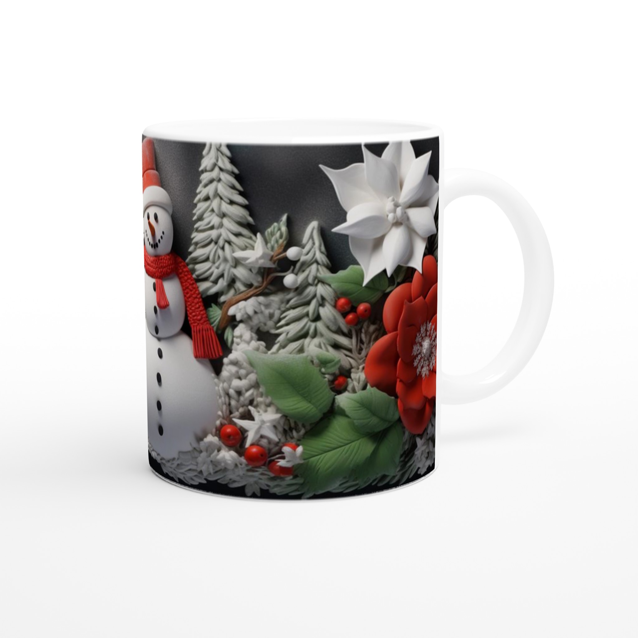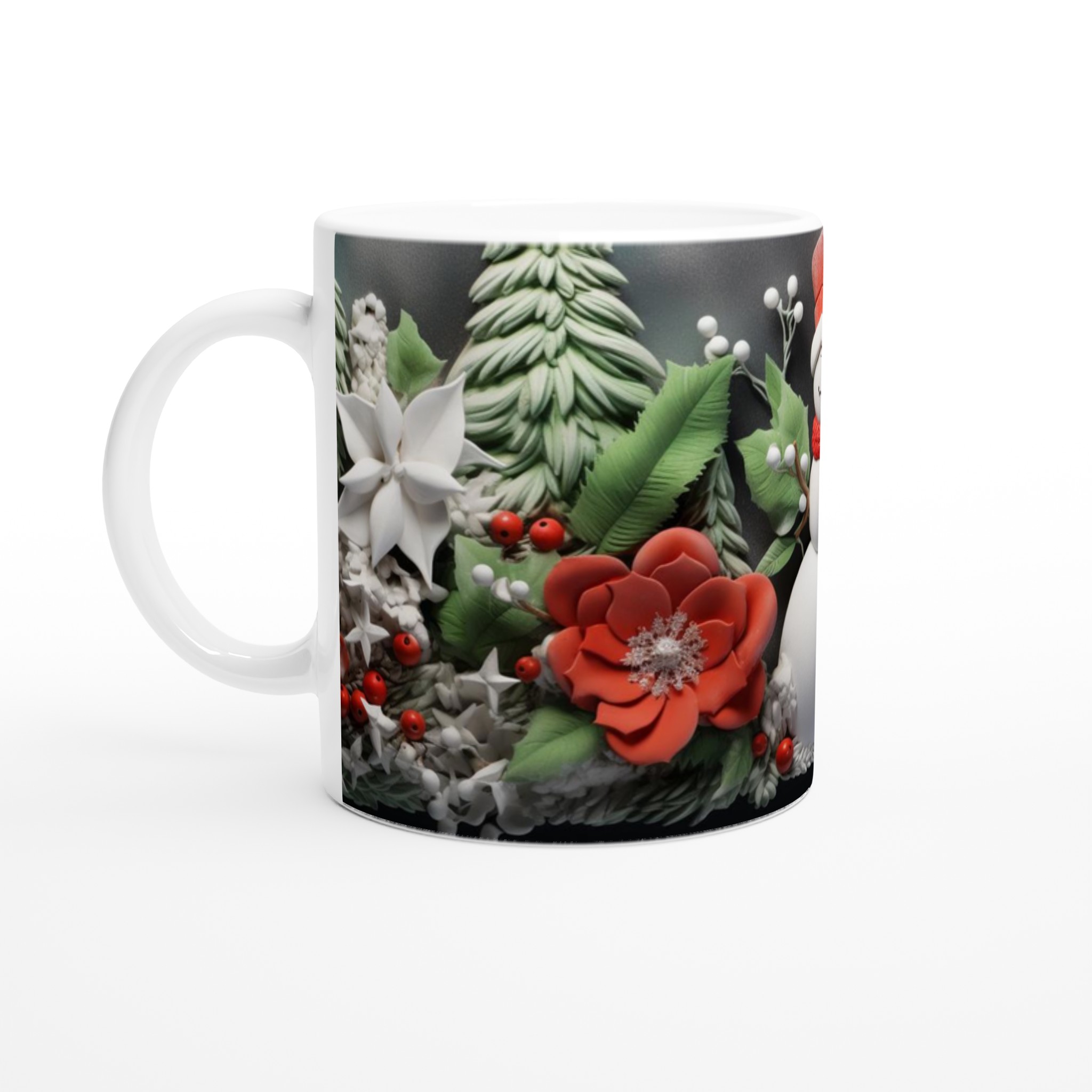 Charming Holiday Snowman & Festive Foliage Ceramic Mug – Your Choice of 7 Vibrant Colors