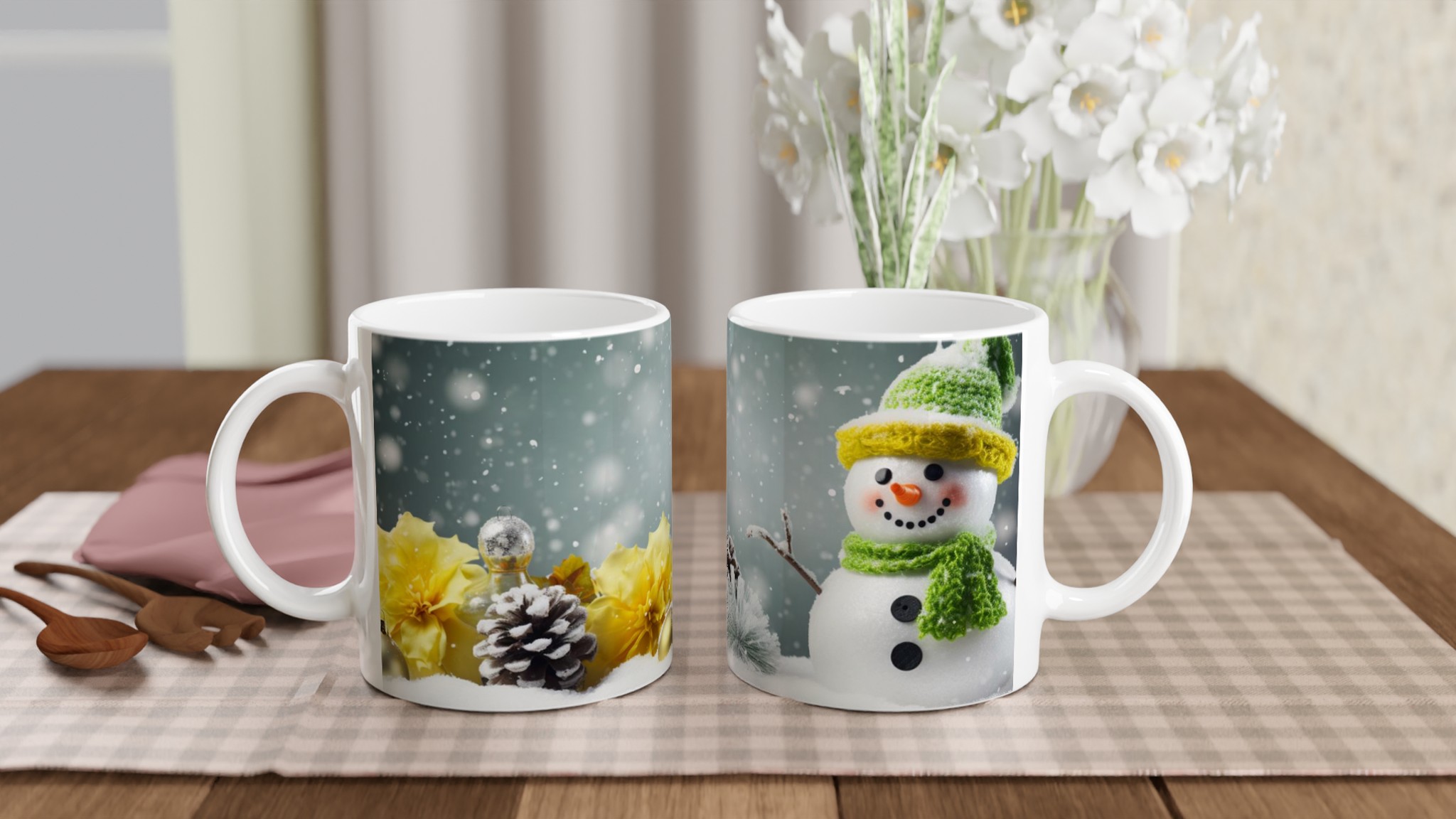Charming Snowman Winter Wonderland Ceramic Mug – 11oz, Perfect for Cozy Holiday Sips