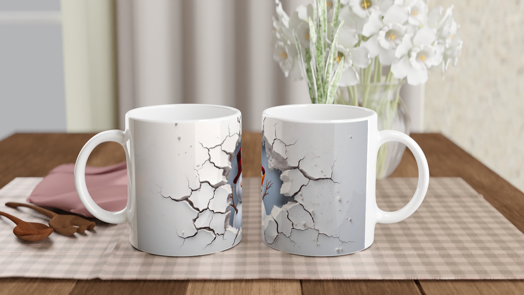 Winter Wonderland Snowman Ceramic Mug – Festive 11oz Drinkware in Your Choice of 7 Vibrant Colors