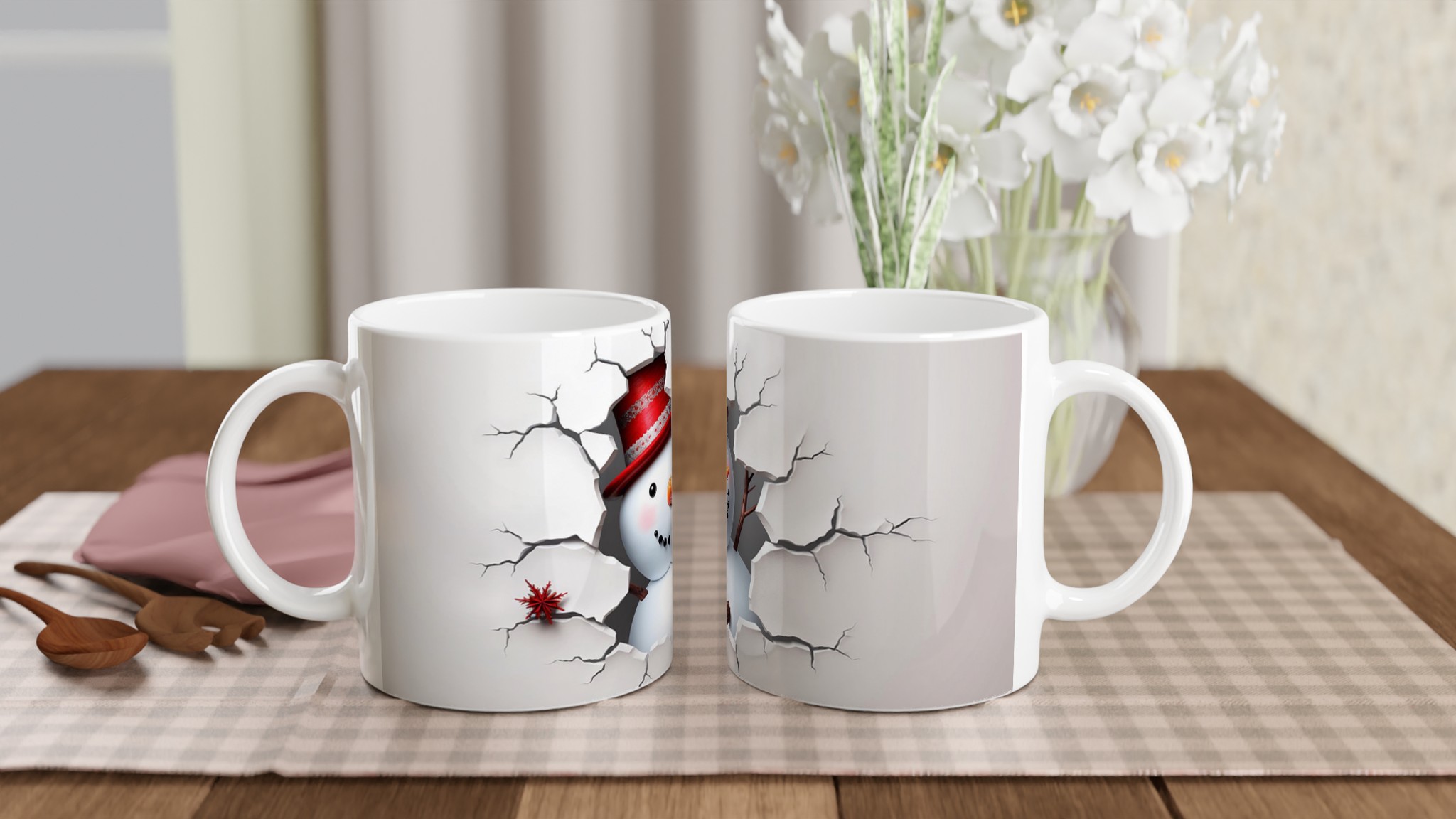 Festive Snowman Surprise 11oz Ceramic Mug – Perfect Holiday Gift in Your Choice of 7 Vibrant Colors