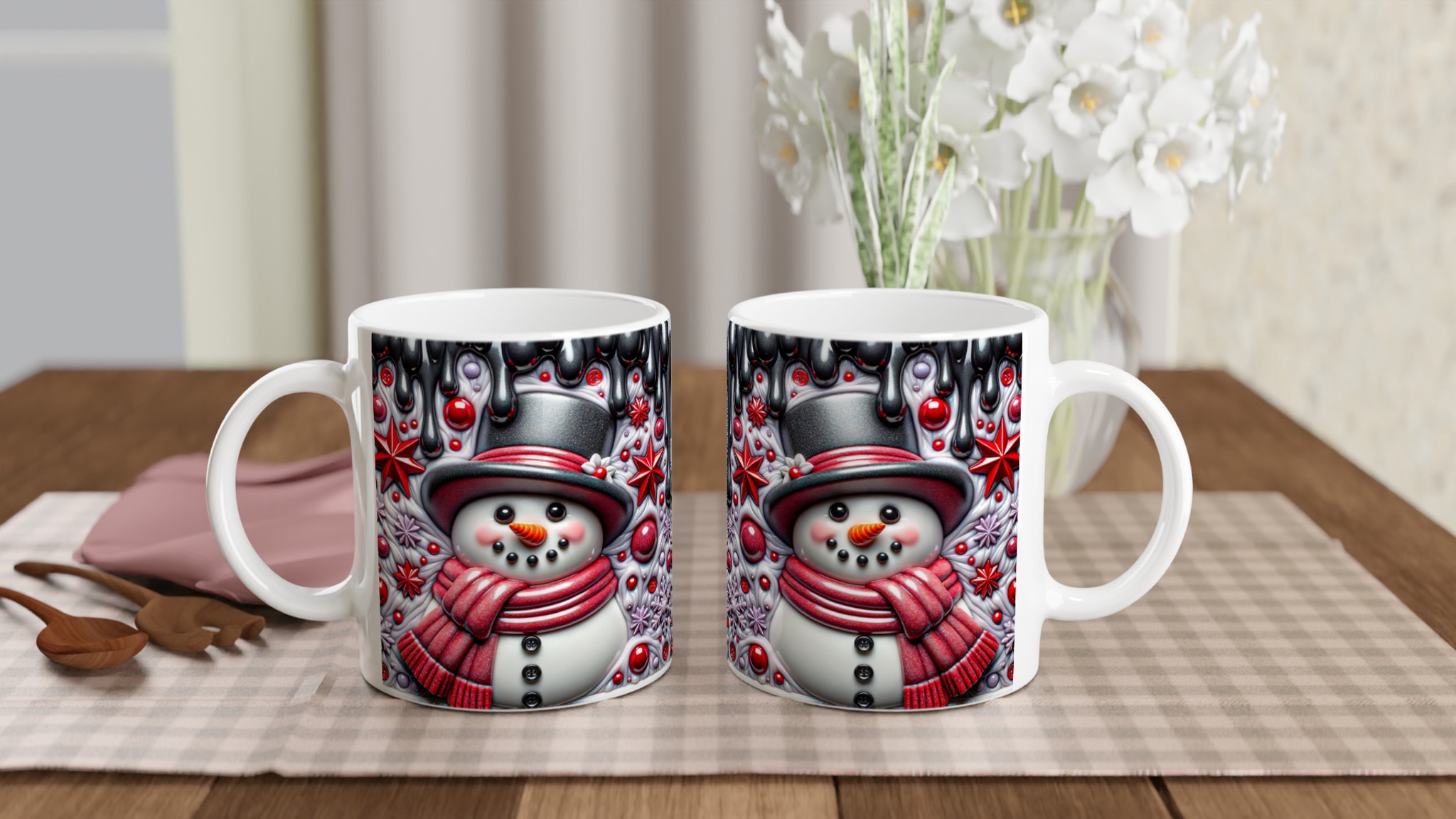 Charming Snowman Winter Wonderland 11oz Ceramic Mug – Choose Your Holiday Hue