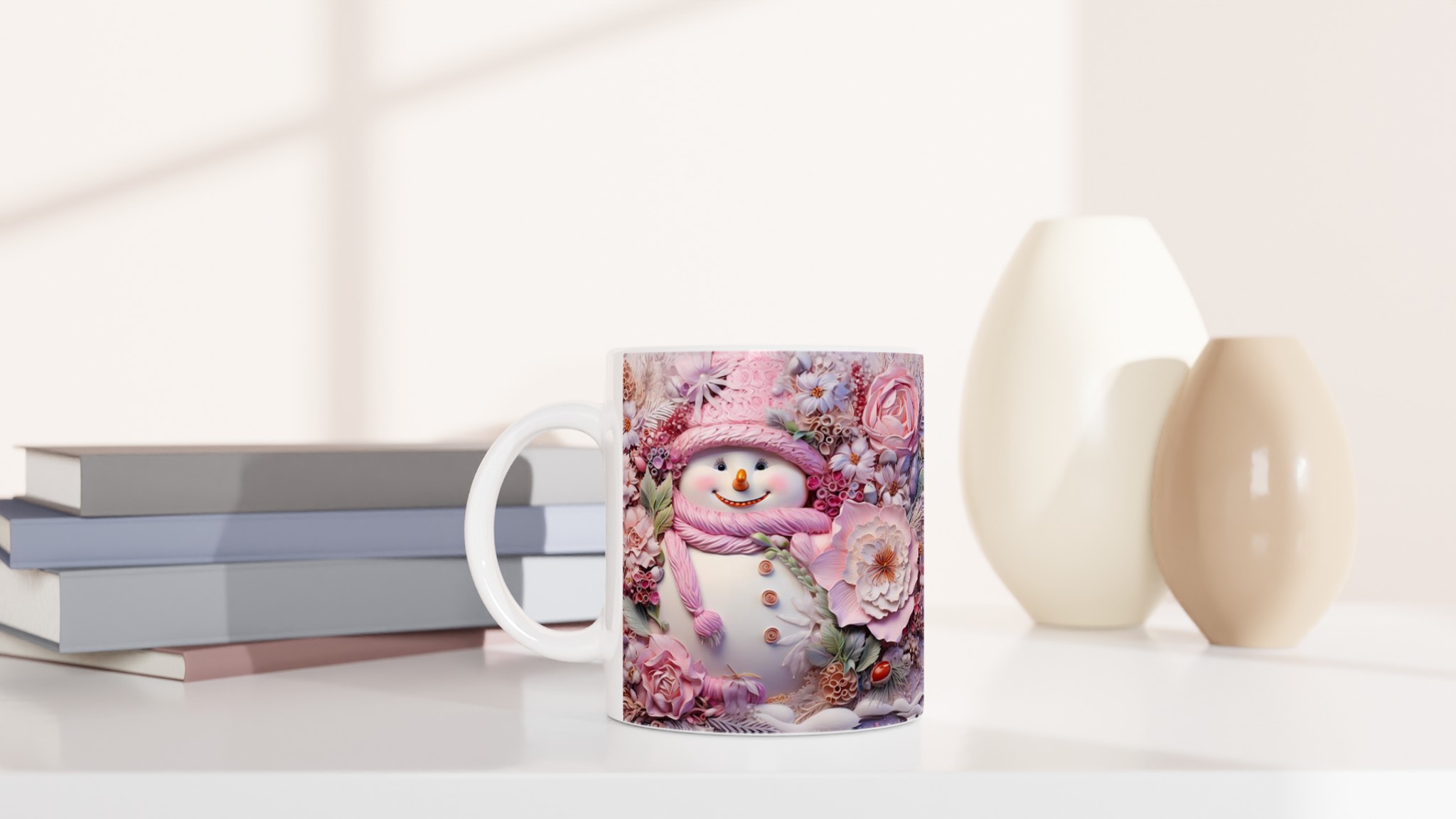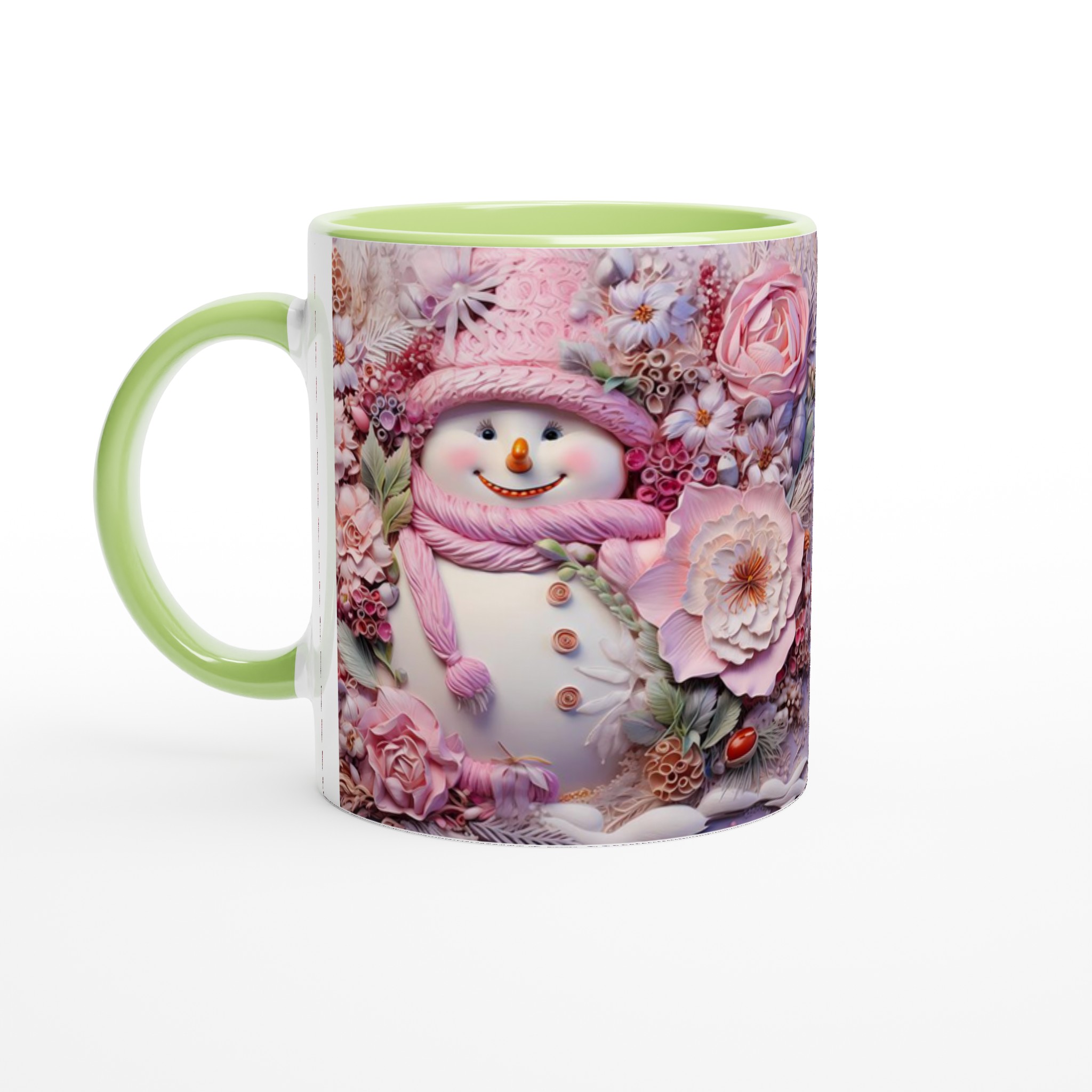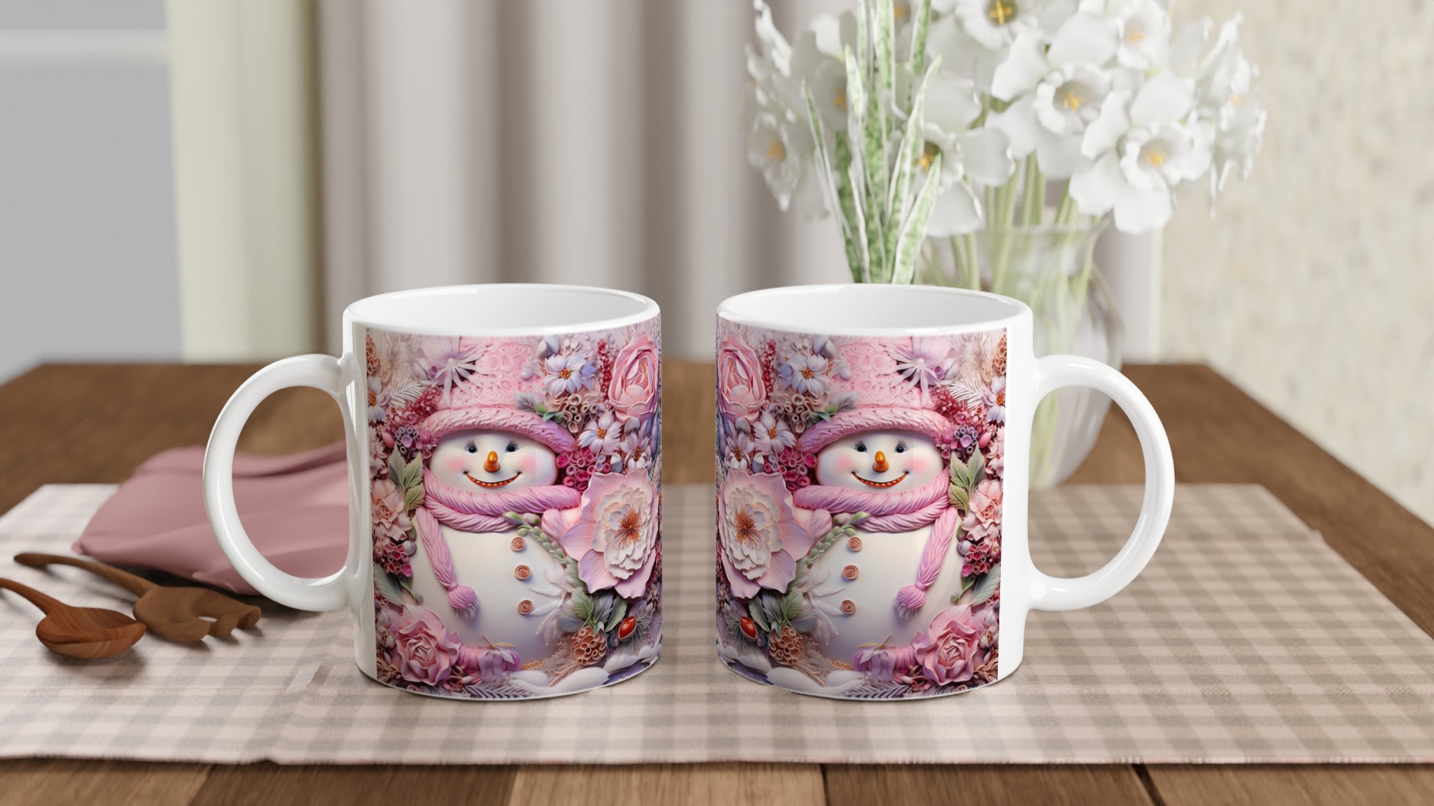 Charming Blush Snowman Dreamscape 11oz Ceramic Mug – Perfect for Cozy Sips in Your Choice of Seven Hues