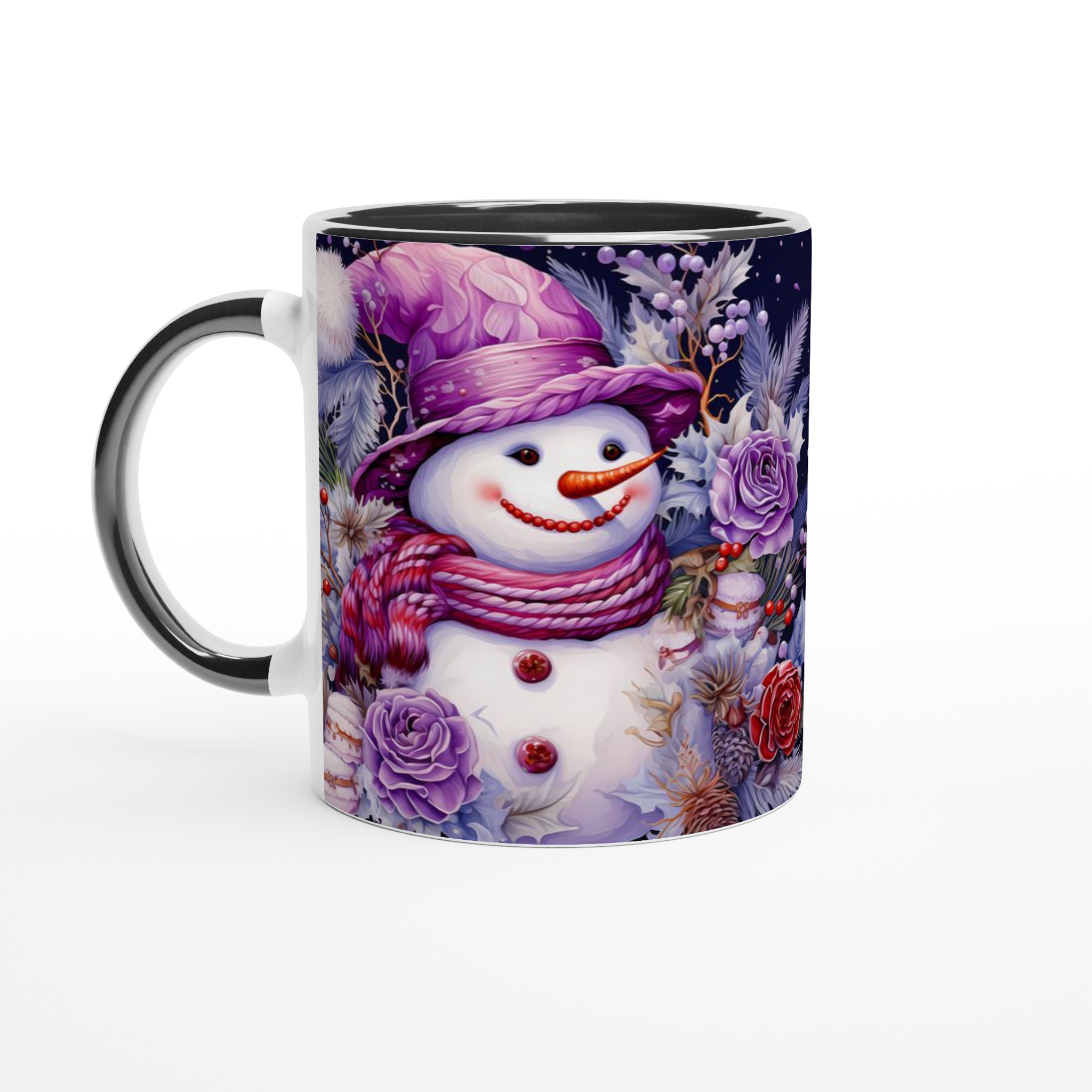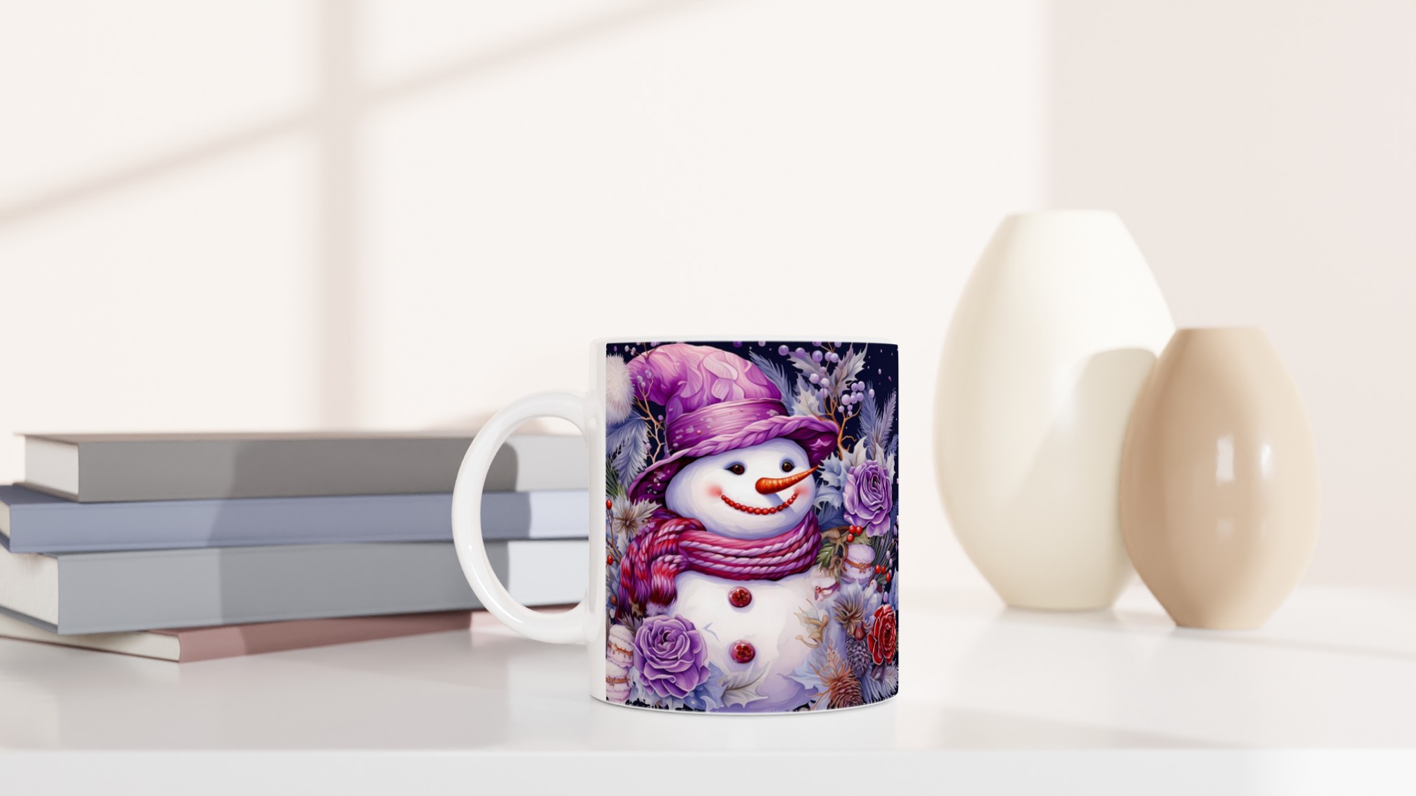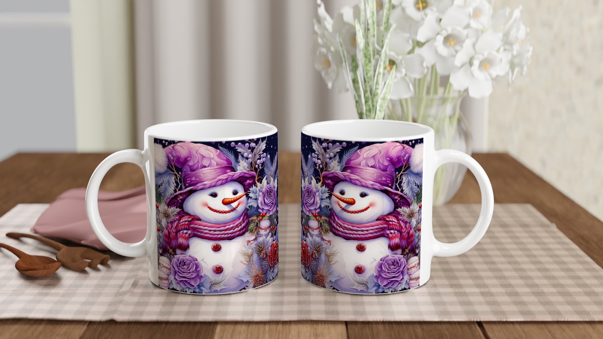 Winter Frost Snowman 11oz Ceramic Mug – Perfect for Cozy Holiday Drinks in Your Choice of Seven Hues