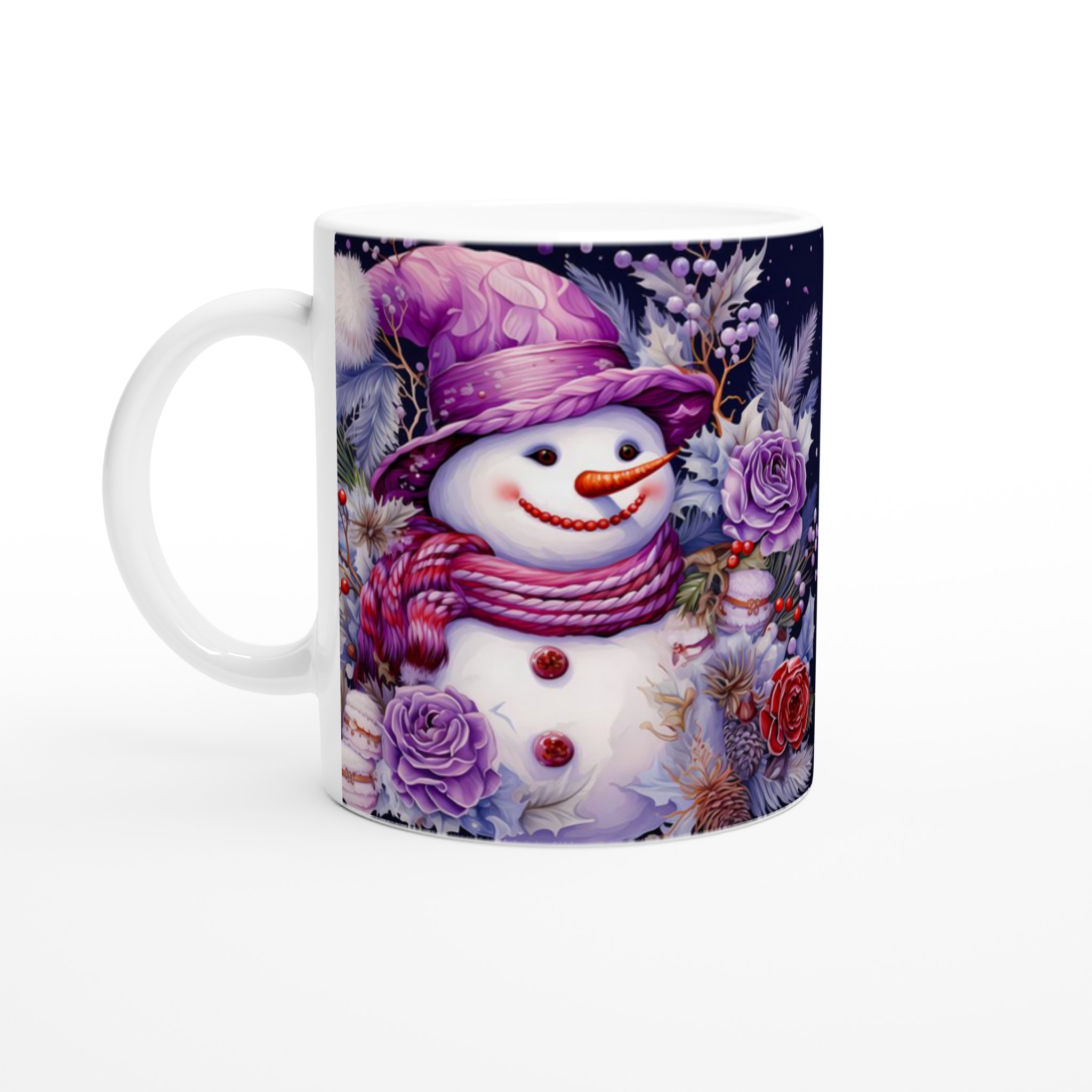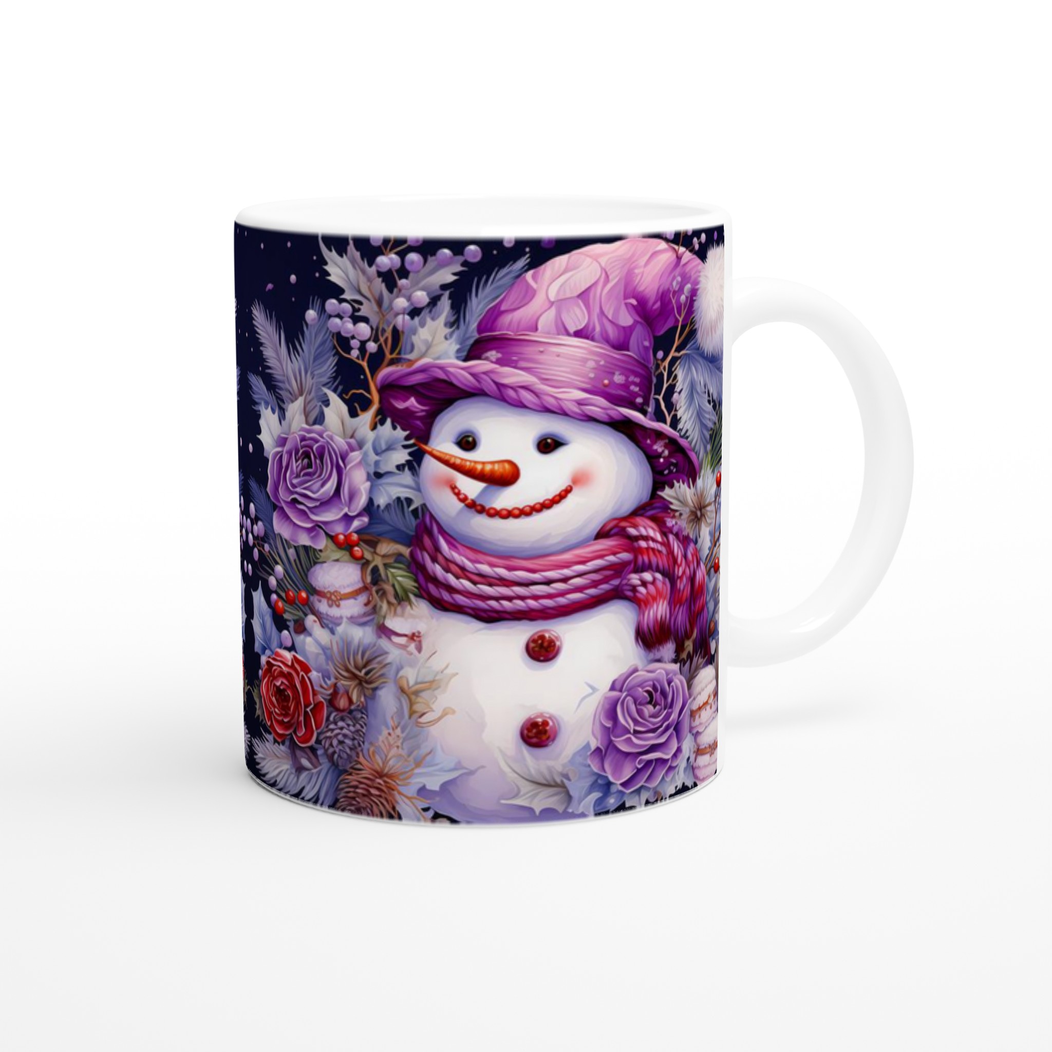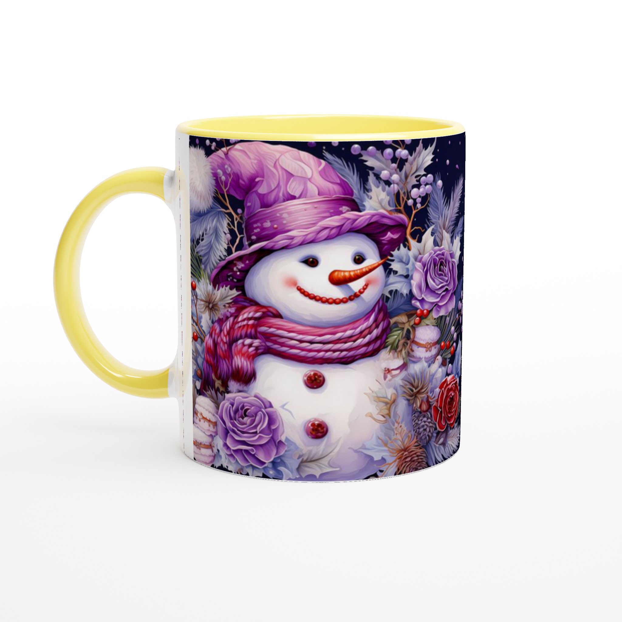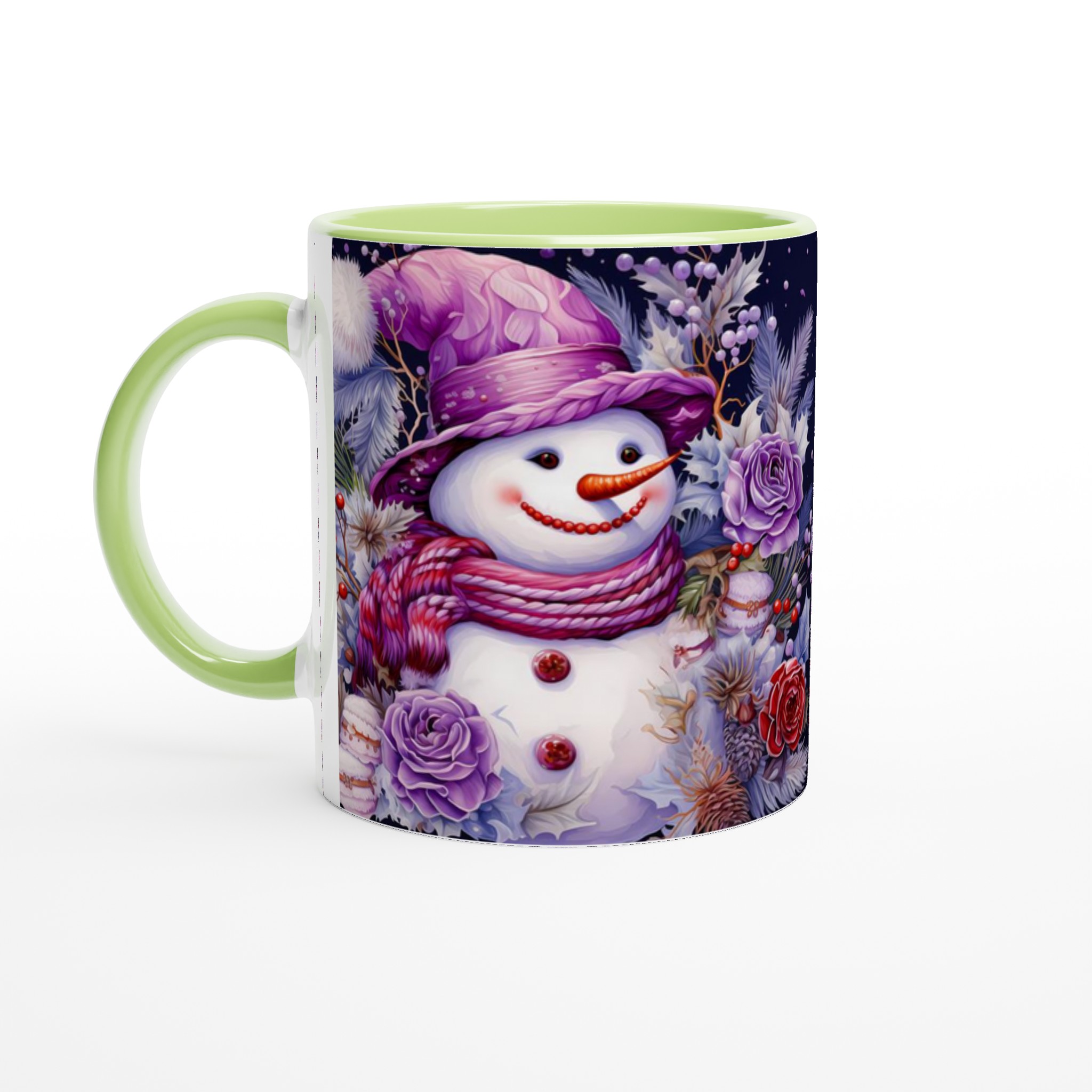 Winter Frost Snowman 11oz Ceramic Mug – Perfect for Cozy Holiday Drinks in Your Choice of Seven Hues