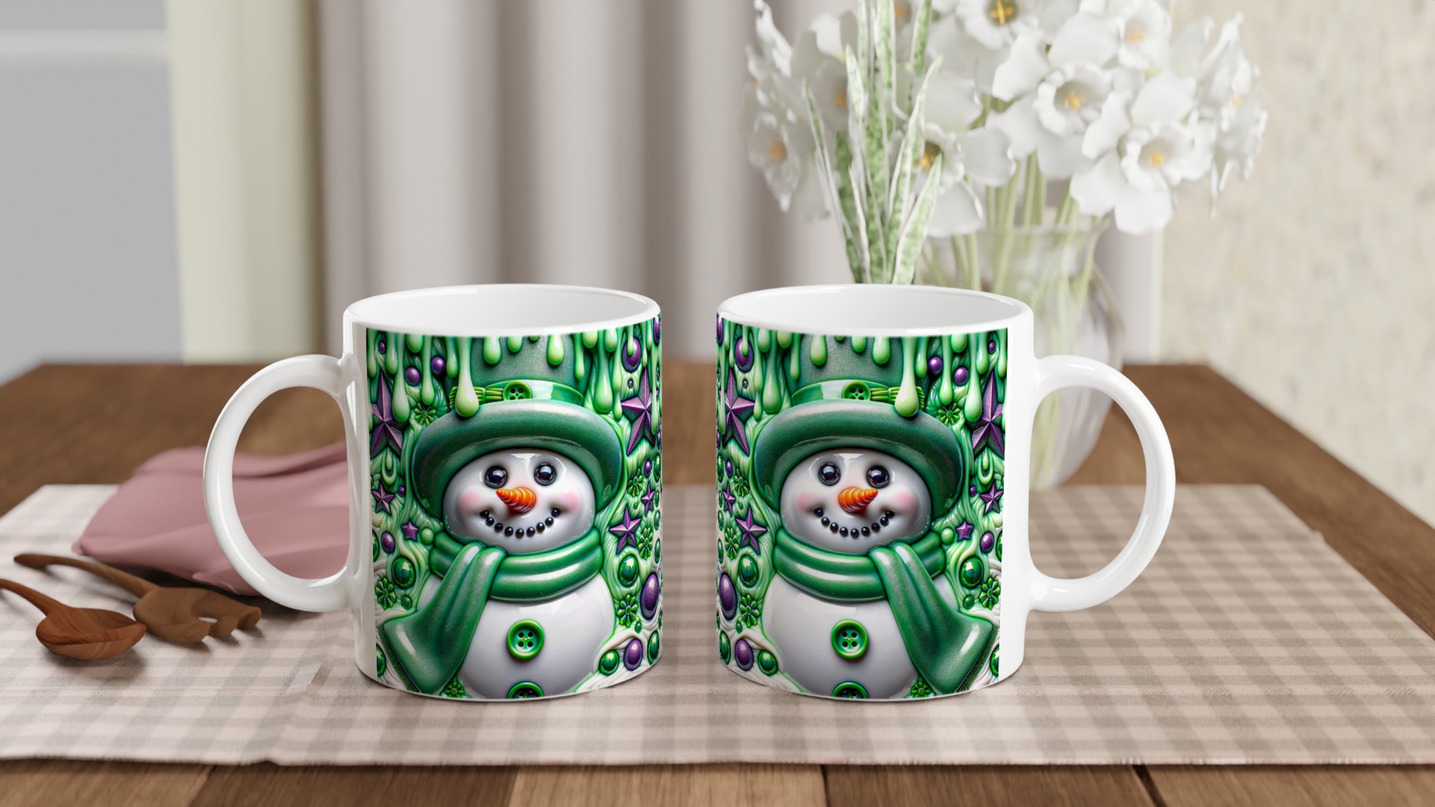 Charming Snowman Art 11oz Ceramic Mug – Whimsical Winter Wonderland Design