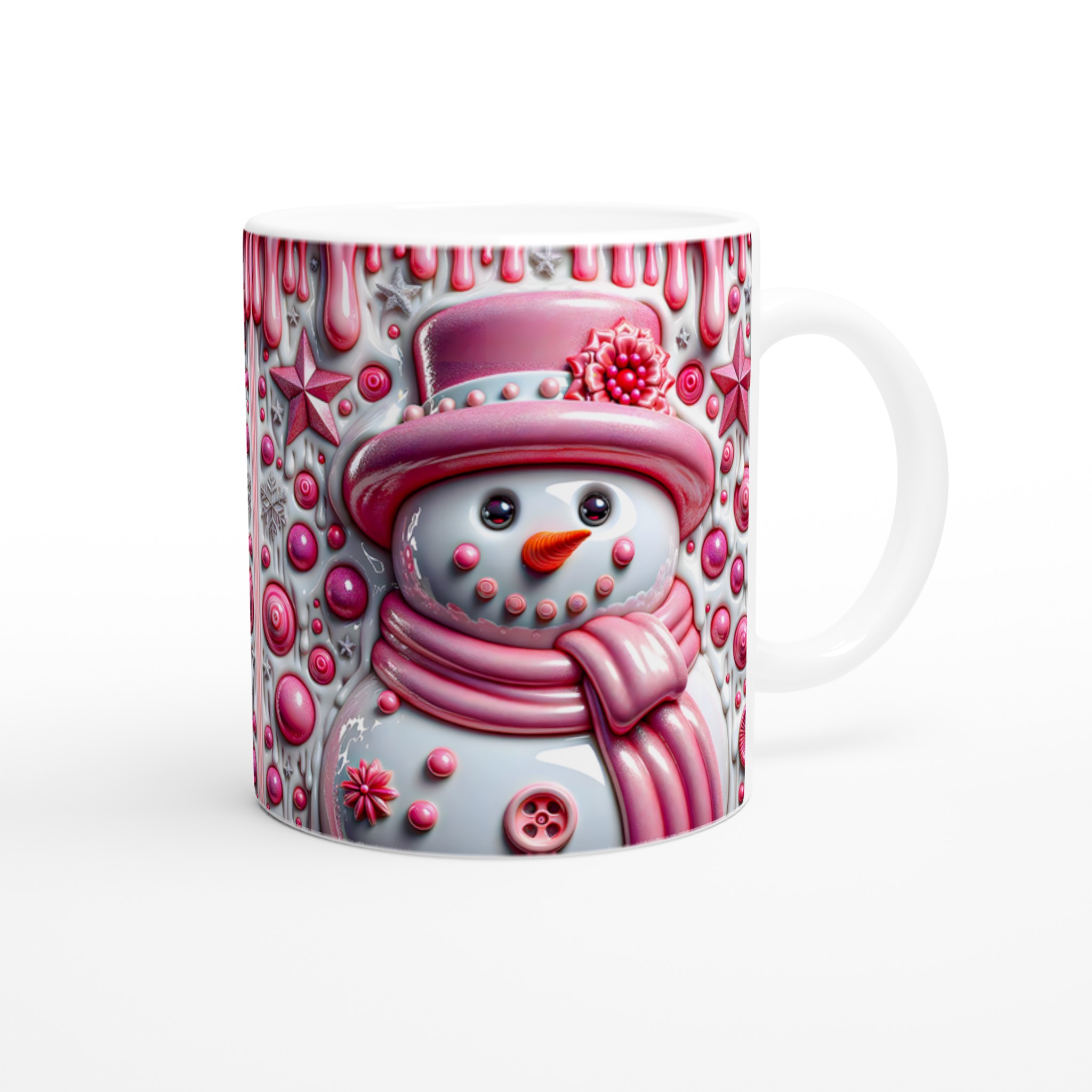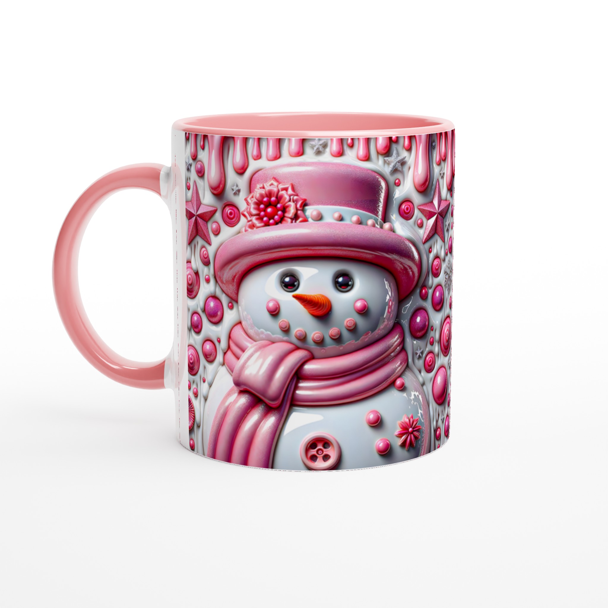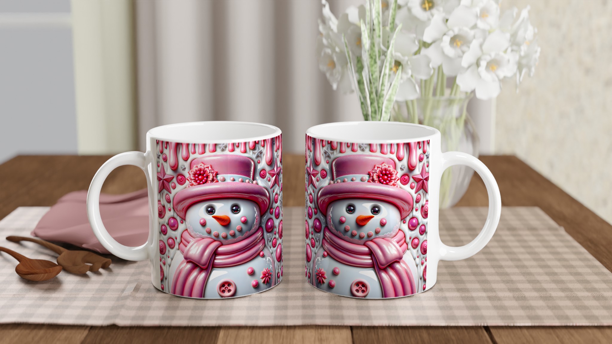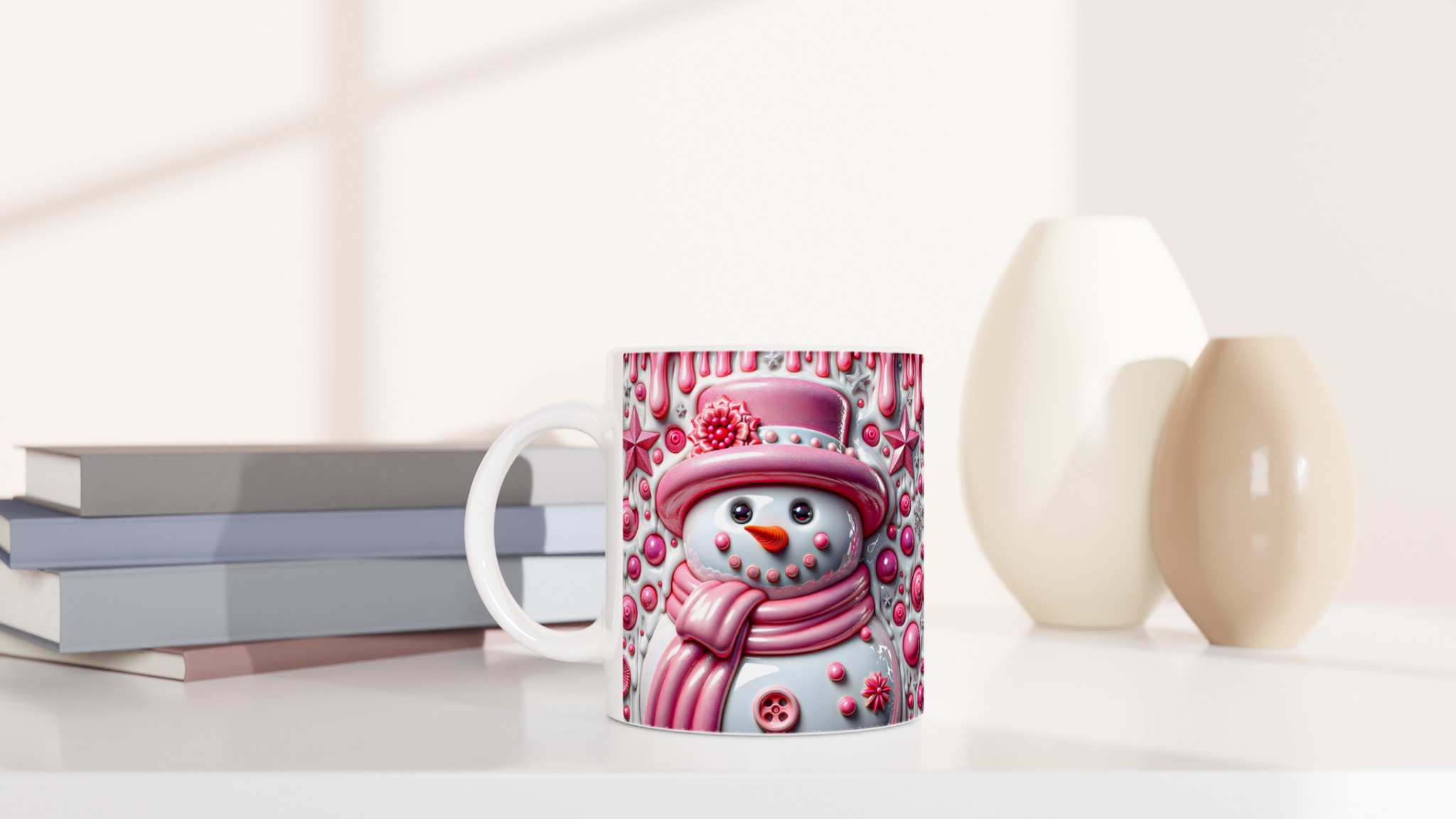 Charming Pink Frosty Friend 11oz Ceramic Mug – A Sweet Winter Wonderland in Your Hand