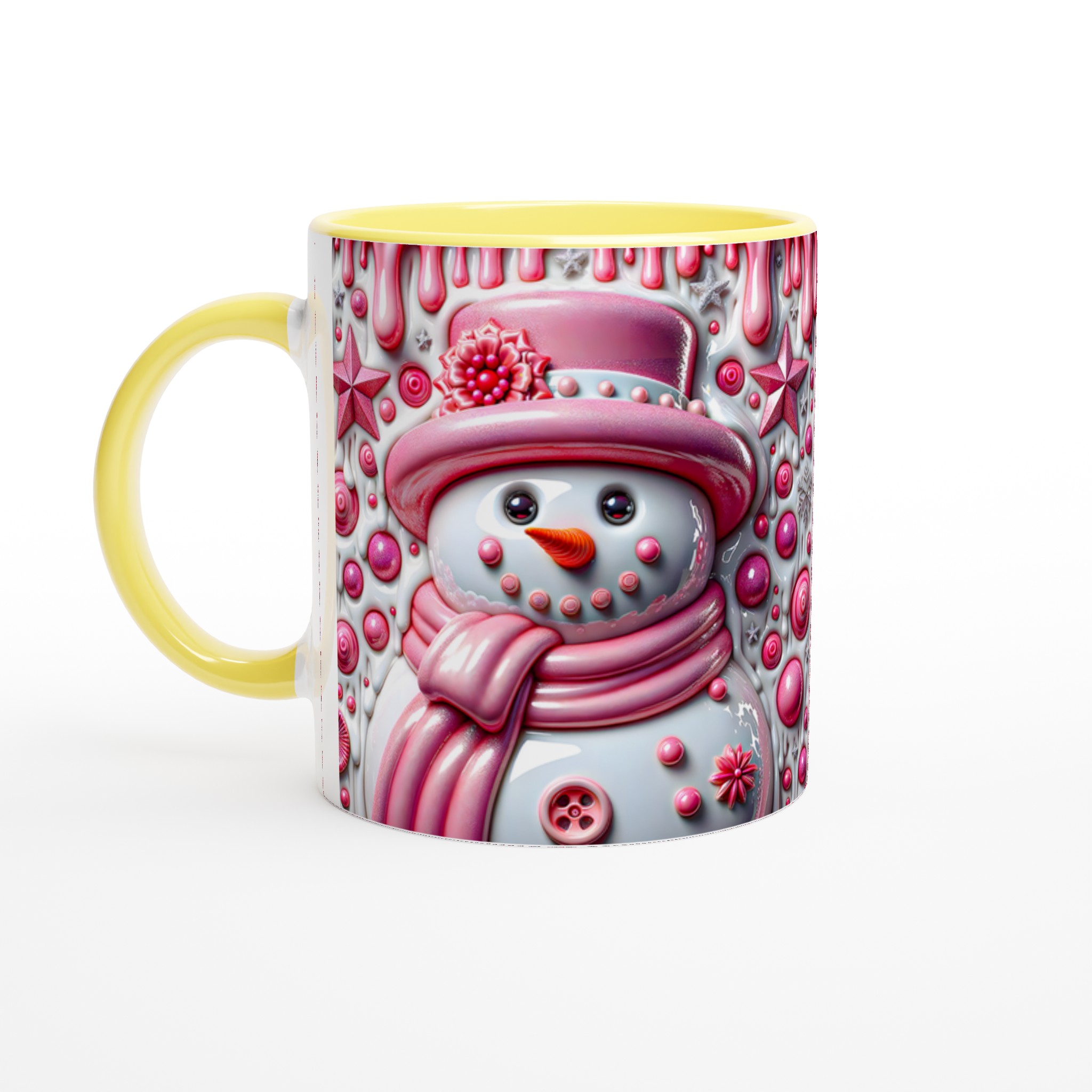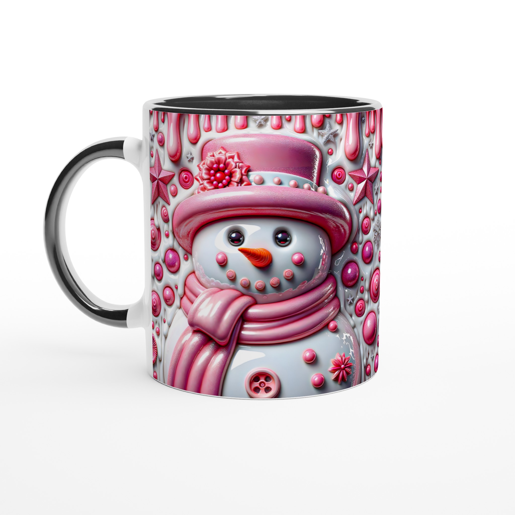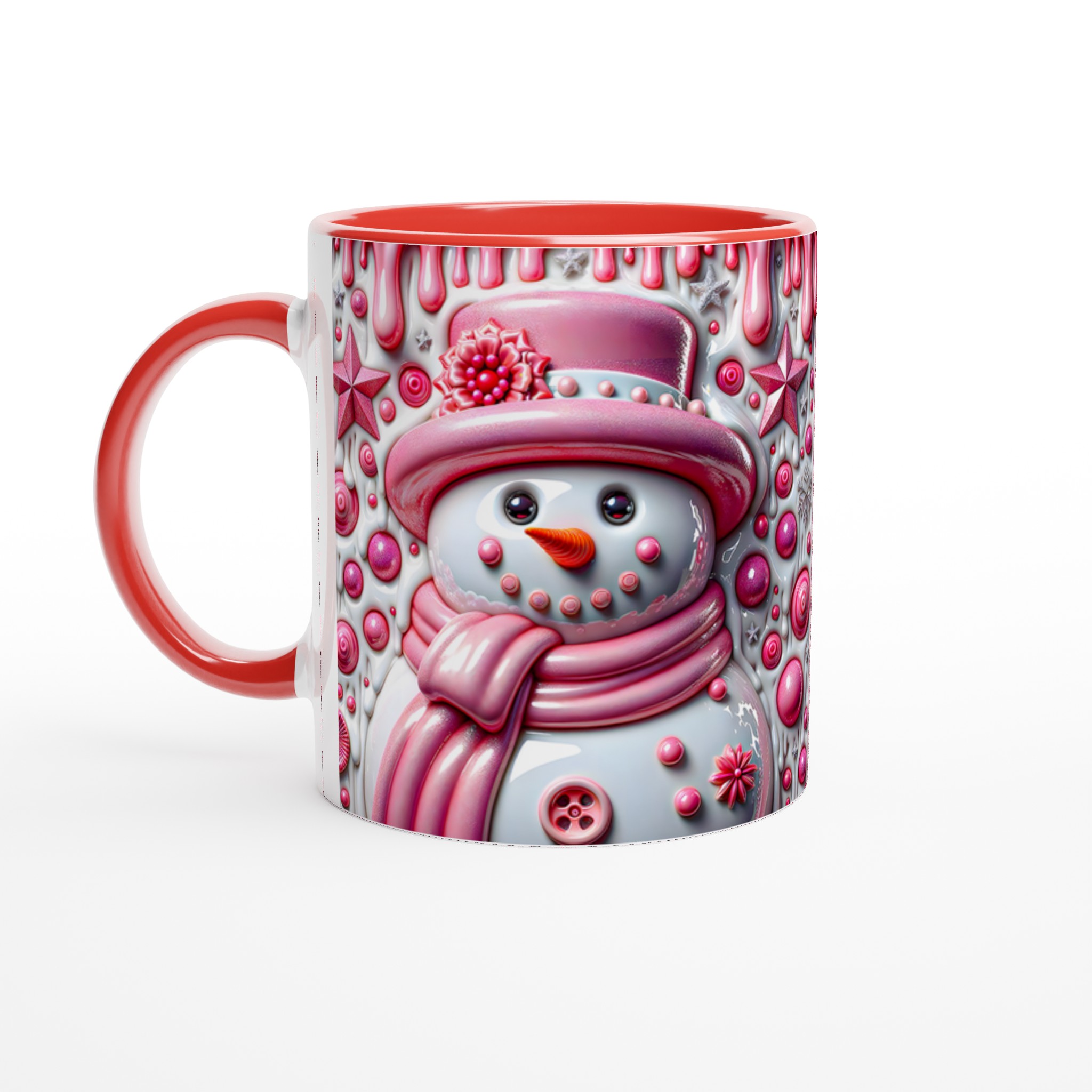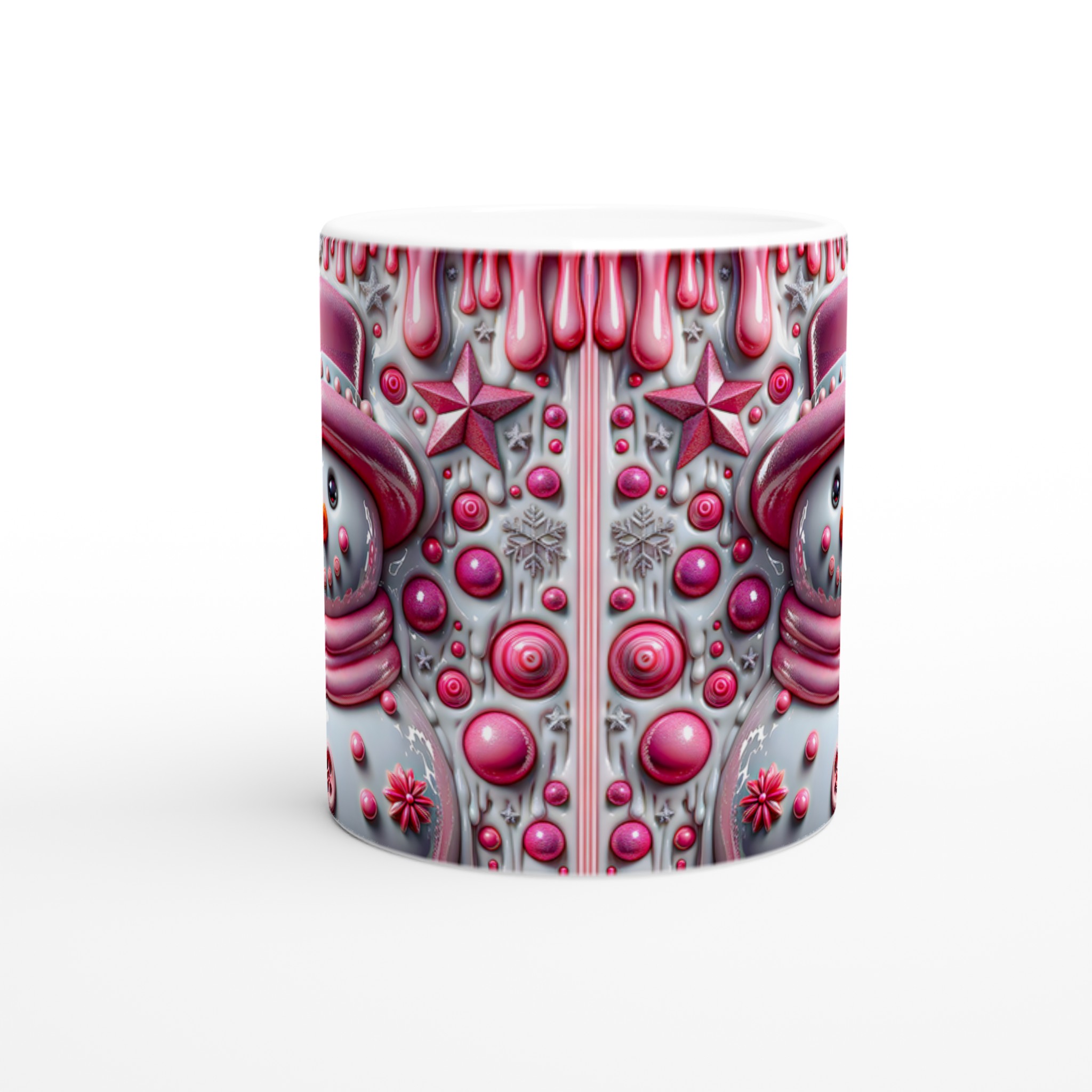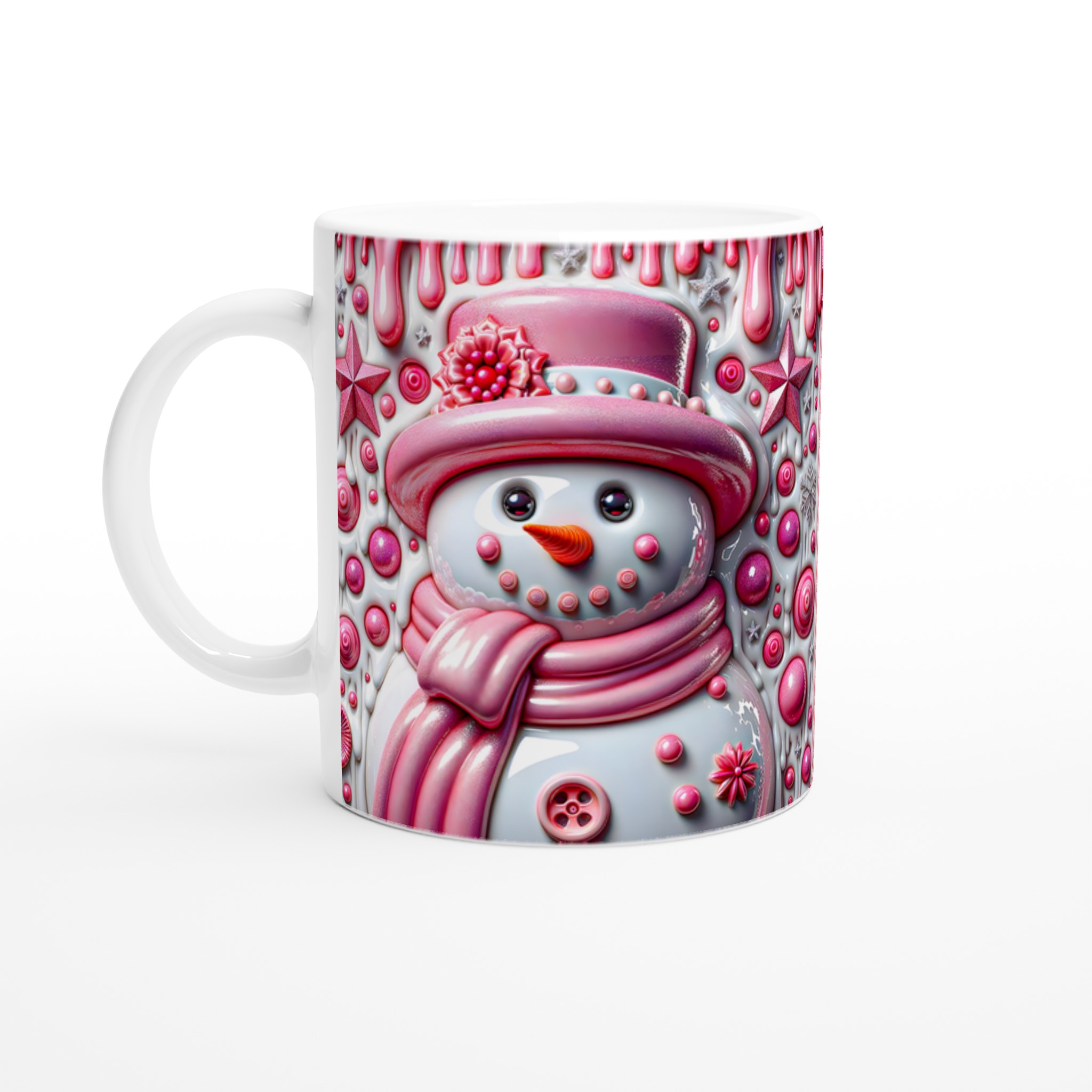 Charming Pink Frosty Friend 11oz Ceramic Mug – A Sweet Winter Wonderland in Your Hand