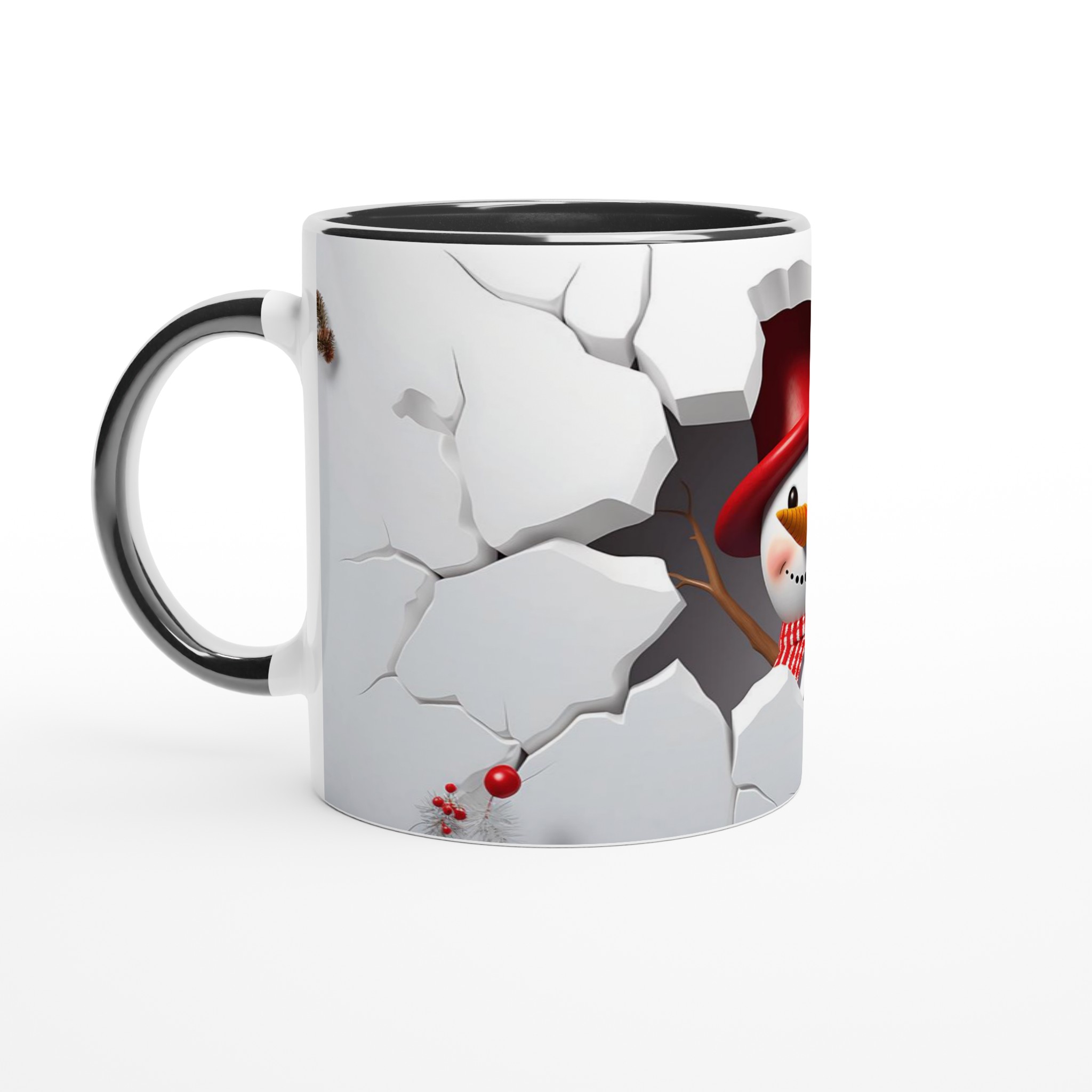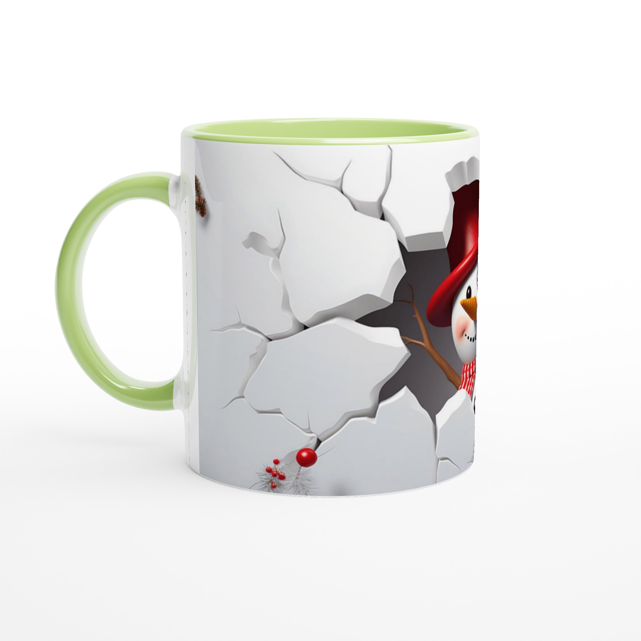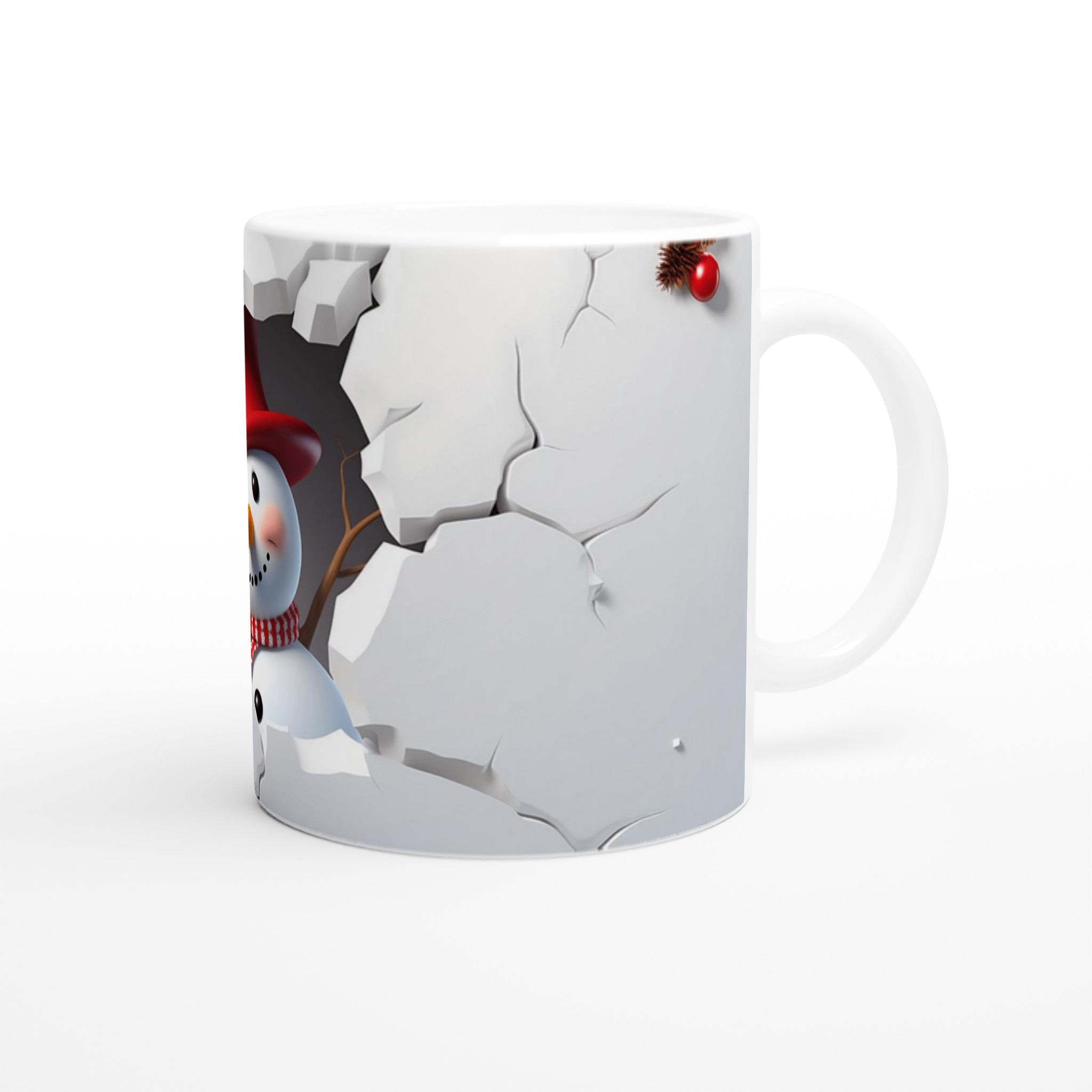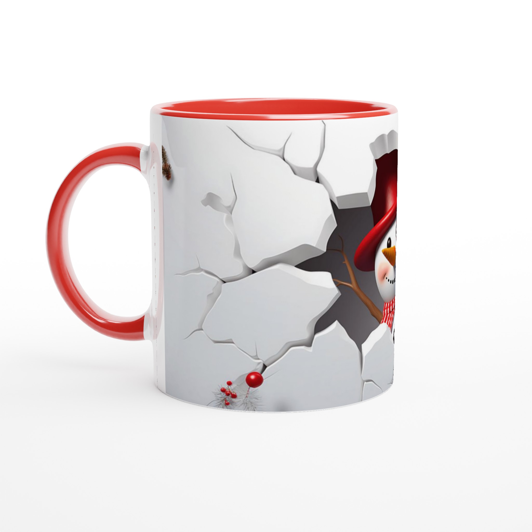 Festive Snowman Peeking 11oz Ceramic Mug – Choose Your Holiday Hue