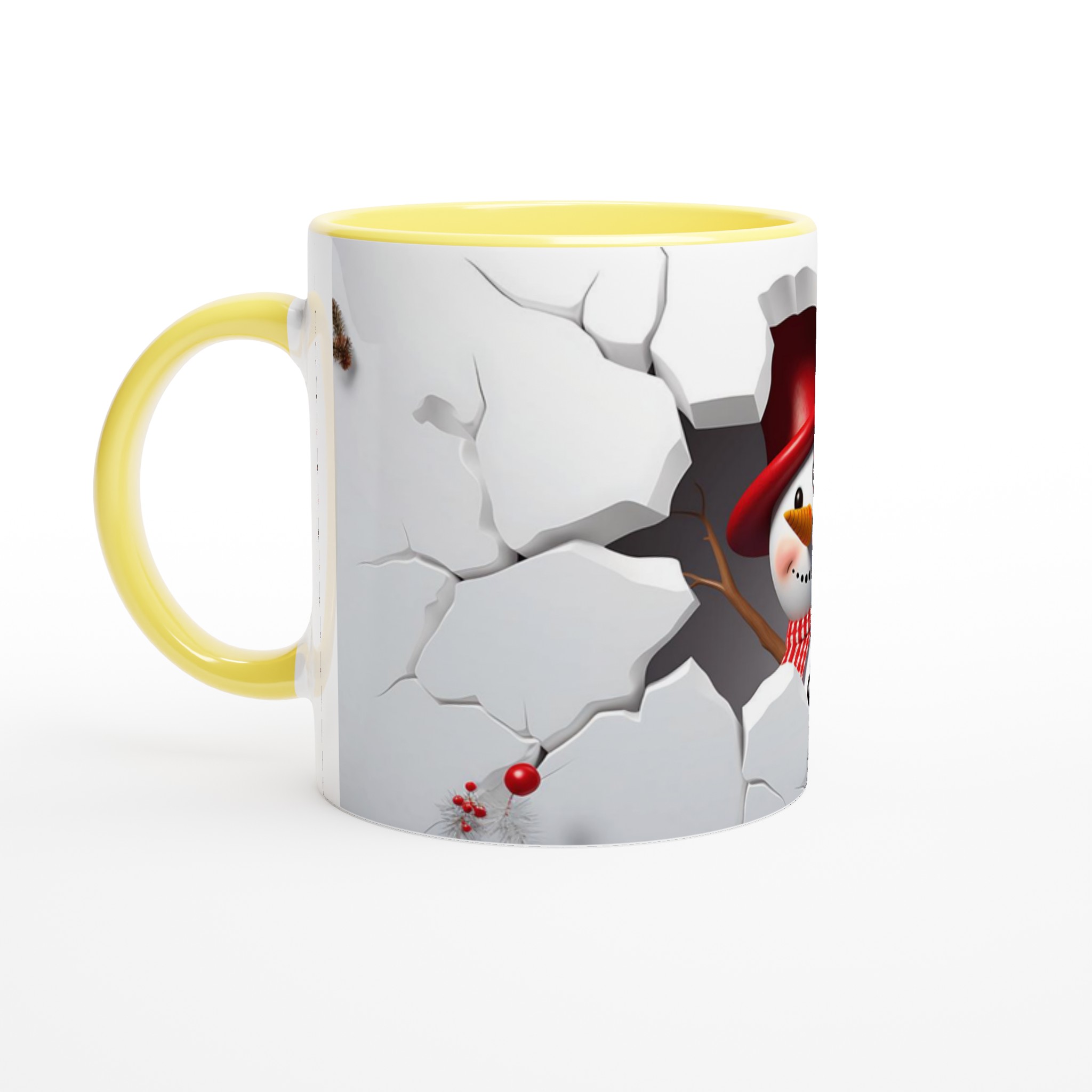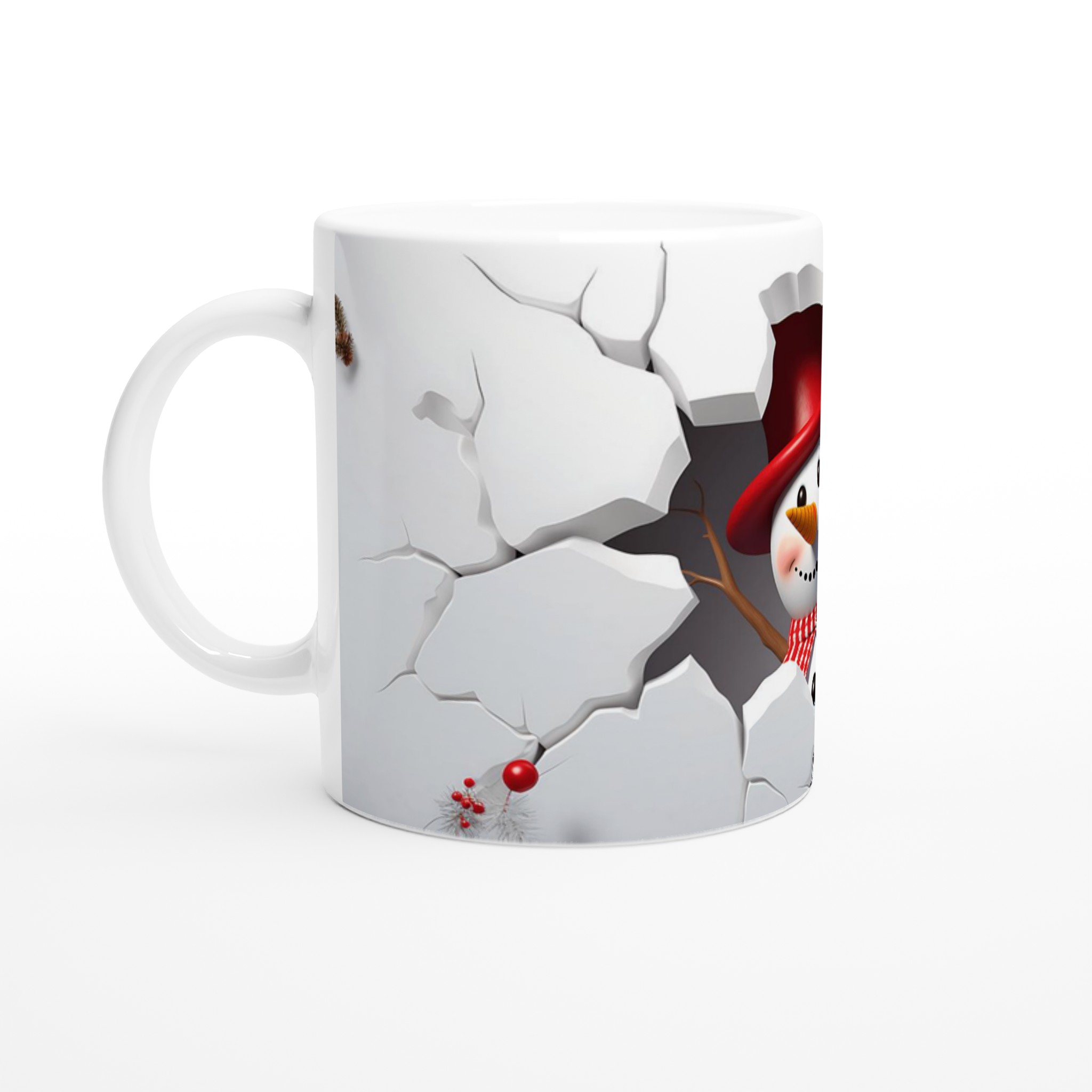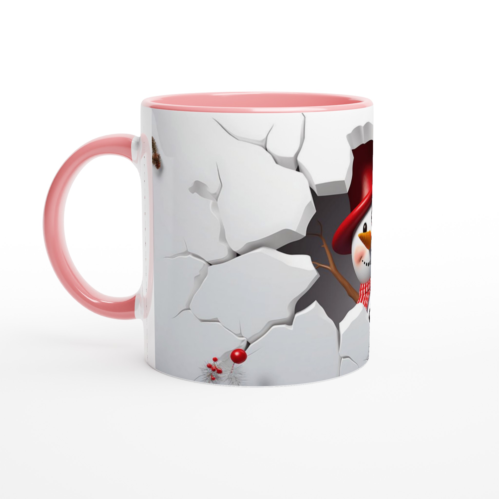 Festive Snowman Peeking 11oz Ceramic Mug – Choose Your Holiday Hue