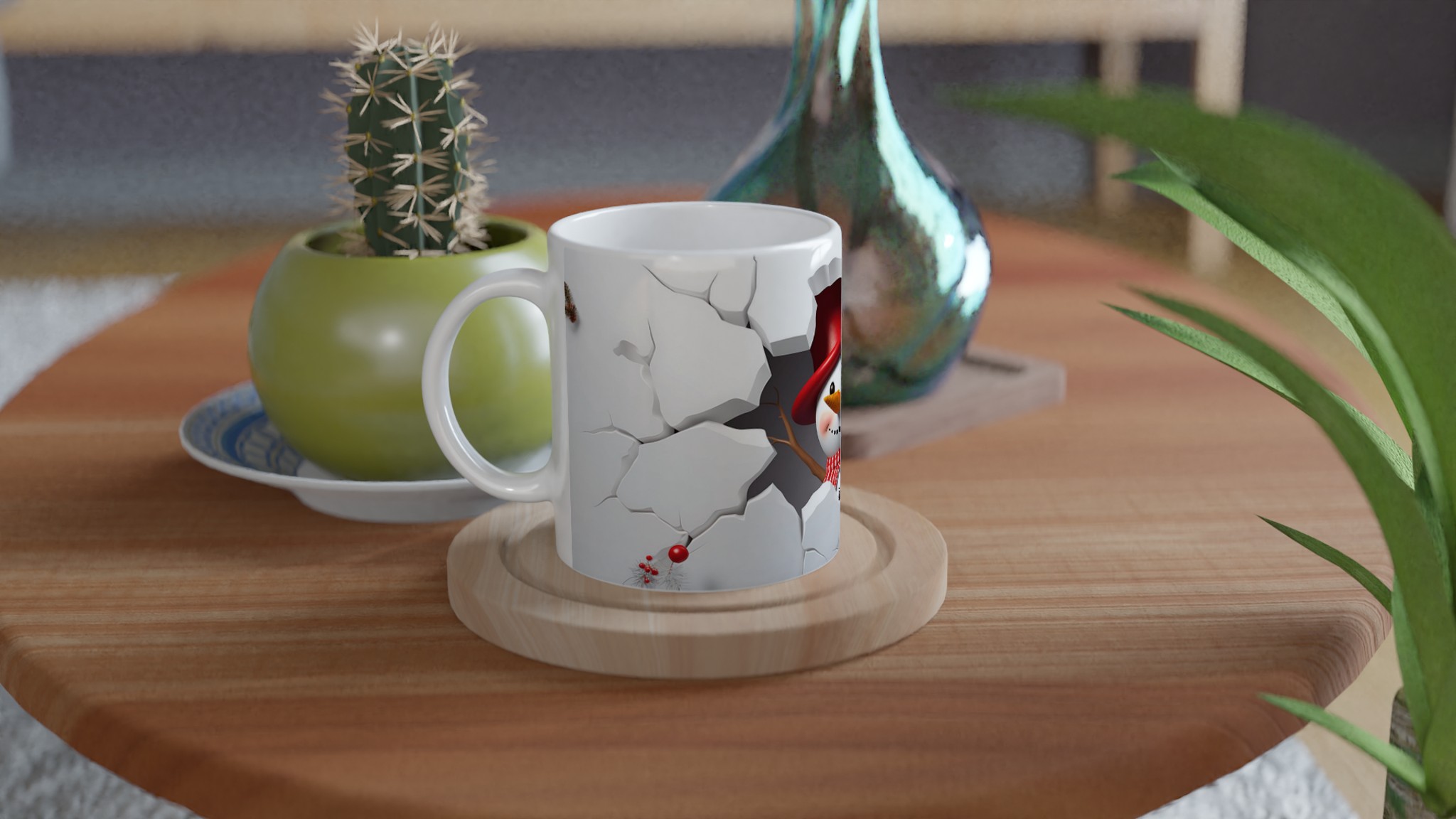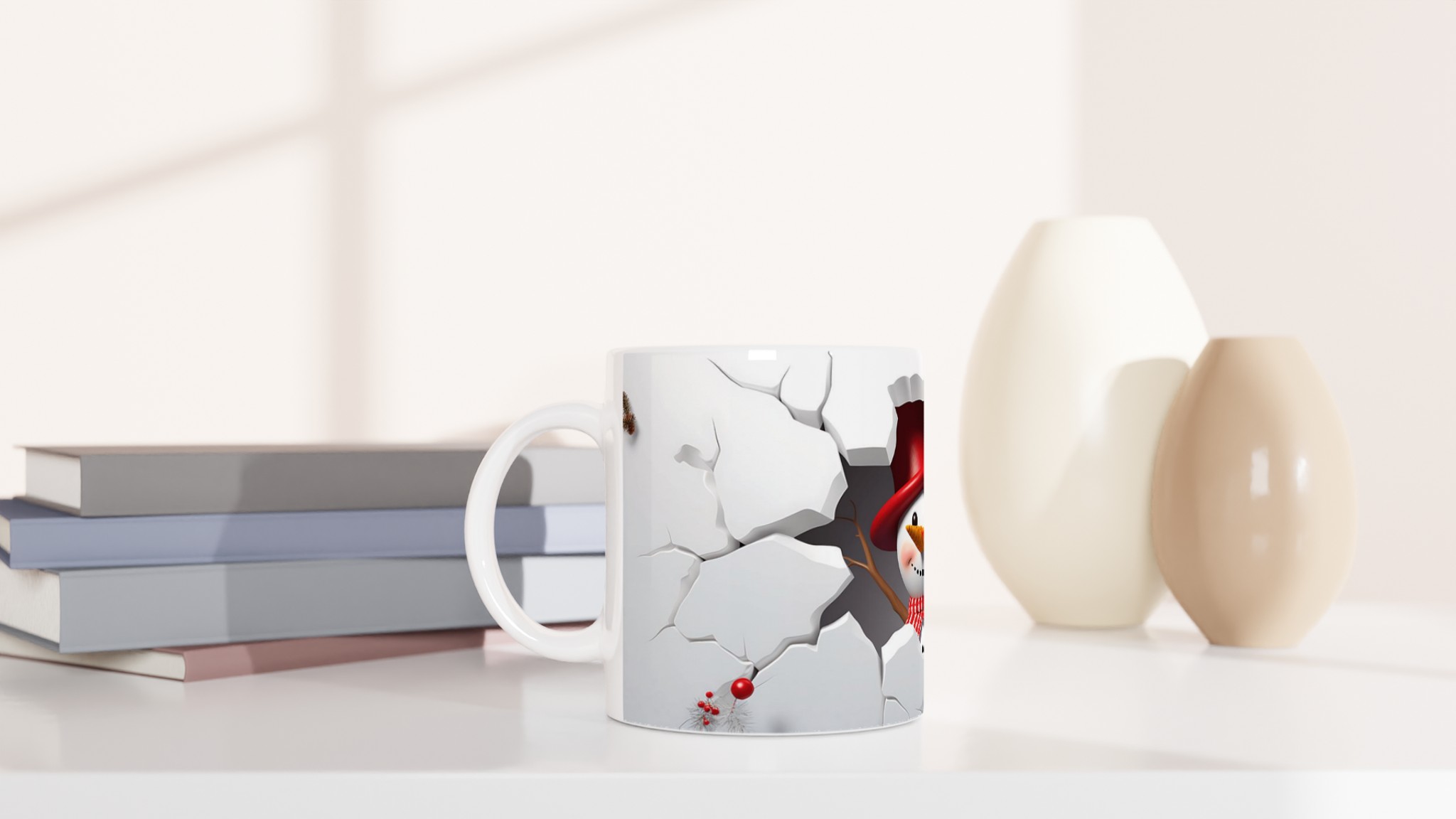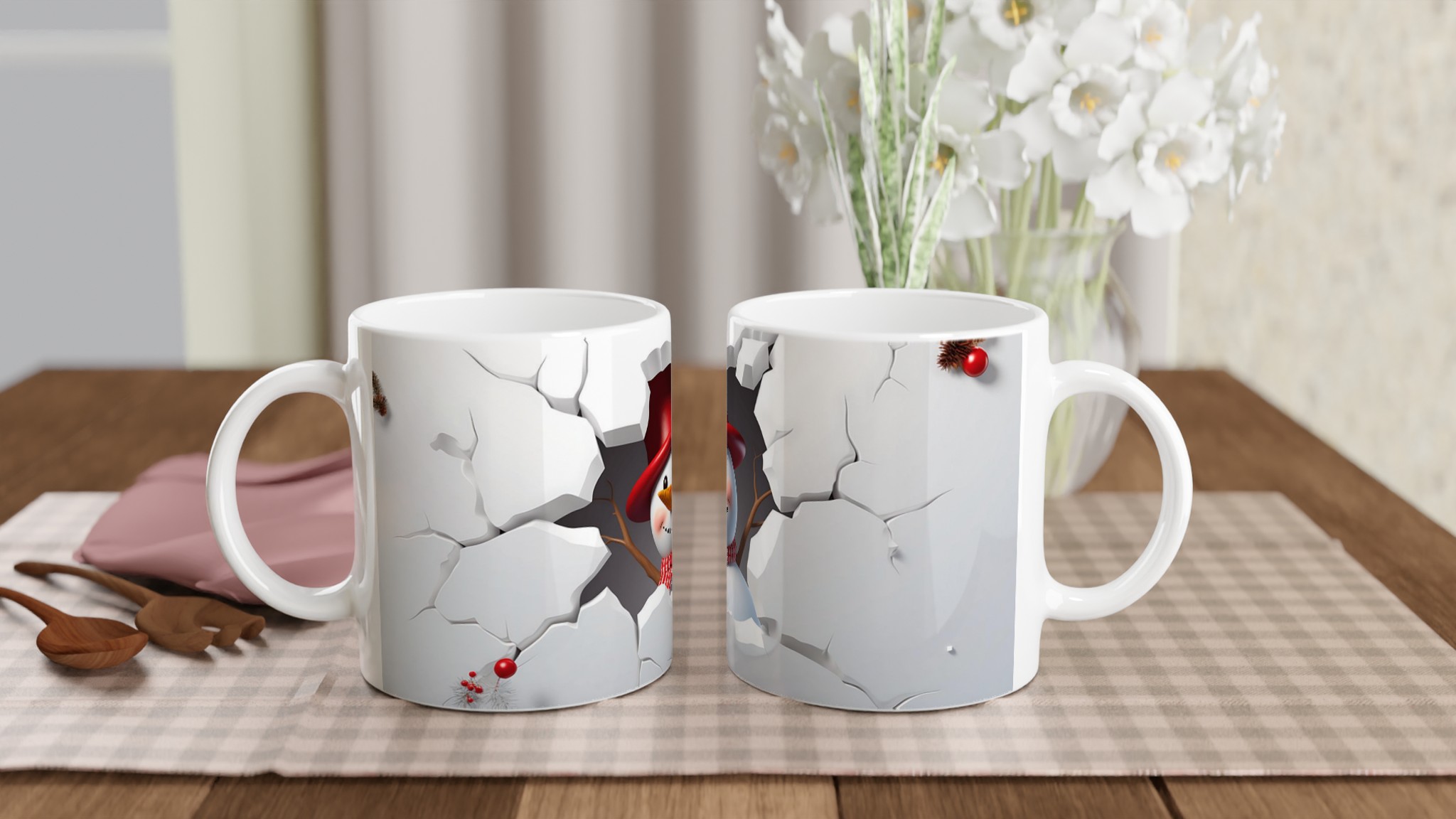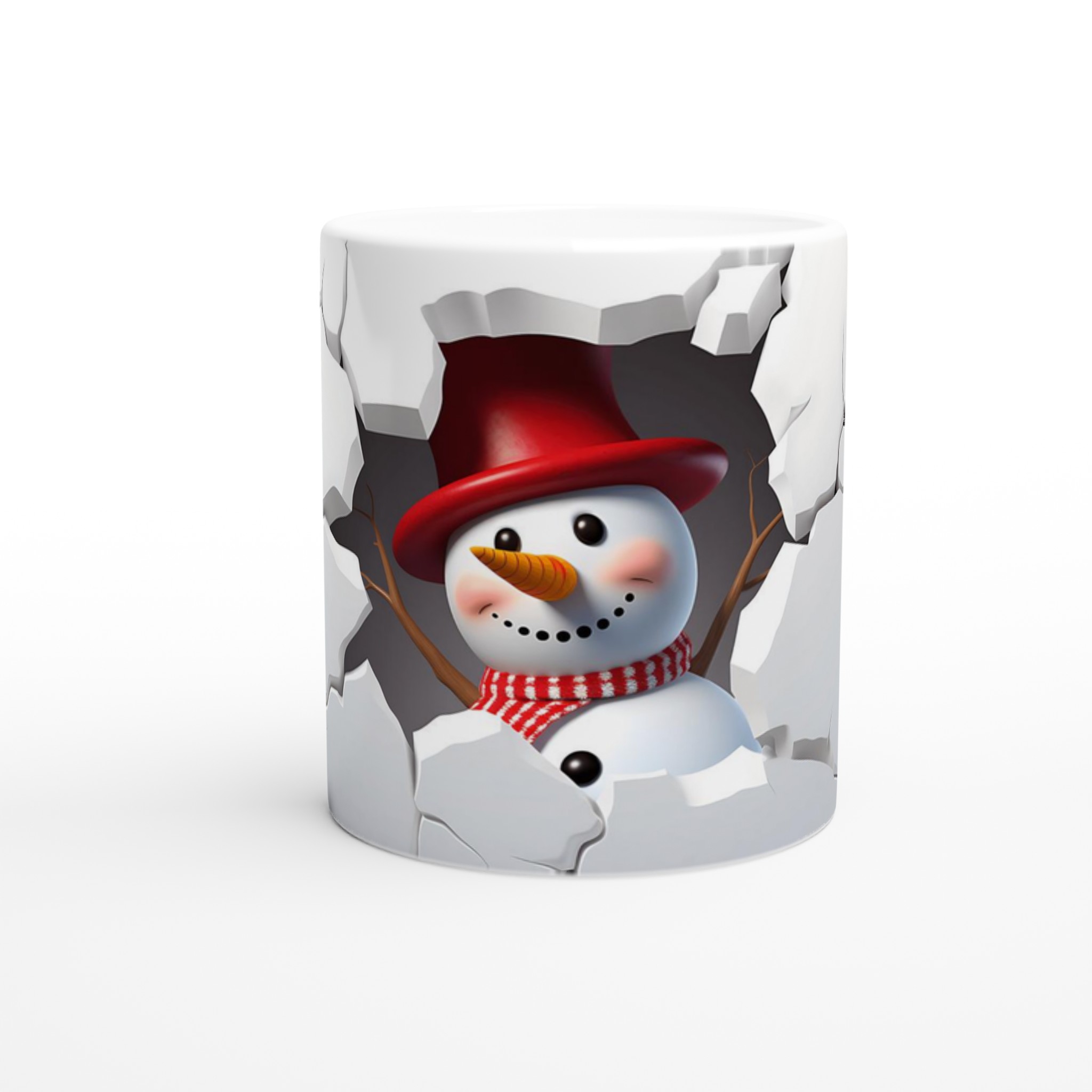 Festive Snowman Peeking 11oz Ceramic Mug – Choose Your Holiday Hue