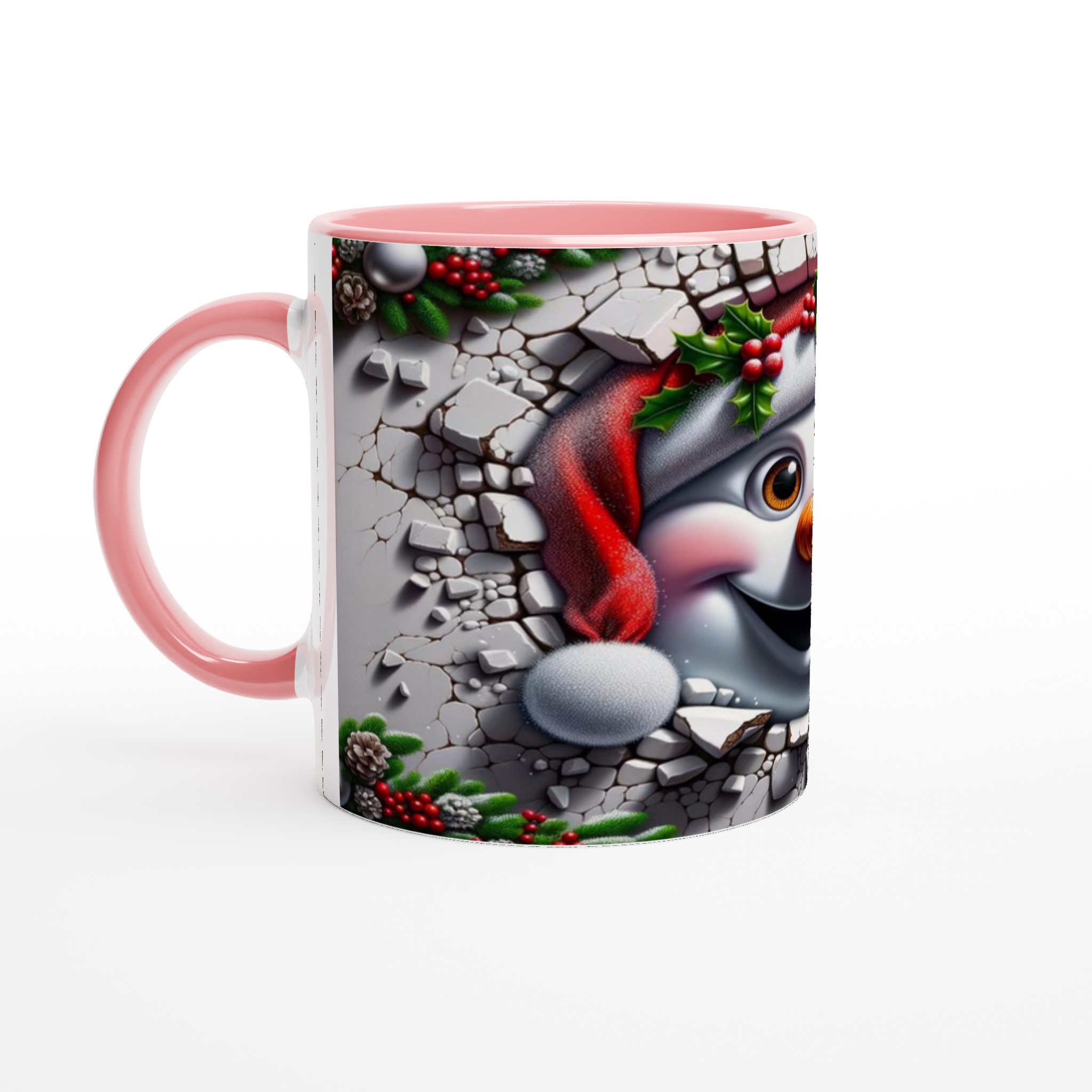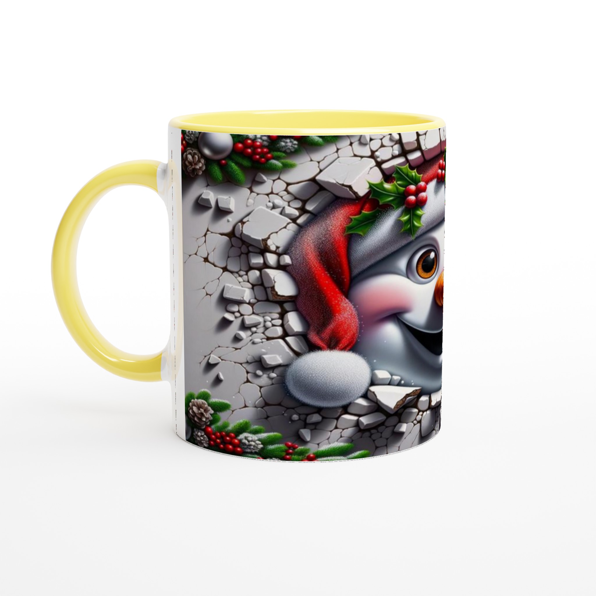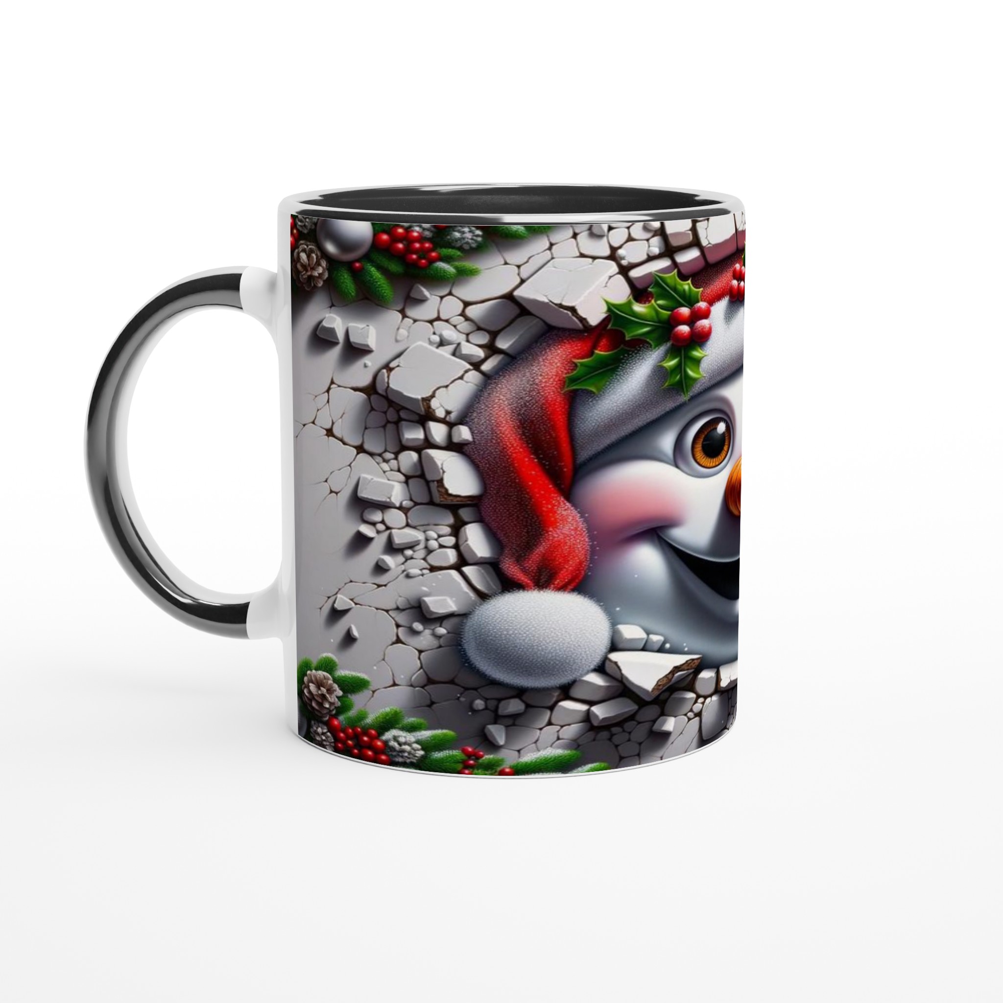 Jolly Snowman Christmas Cheer 11oz Ceramic Mug in Your Choice of Seven Vibrant Hues