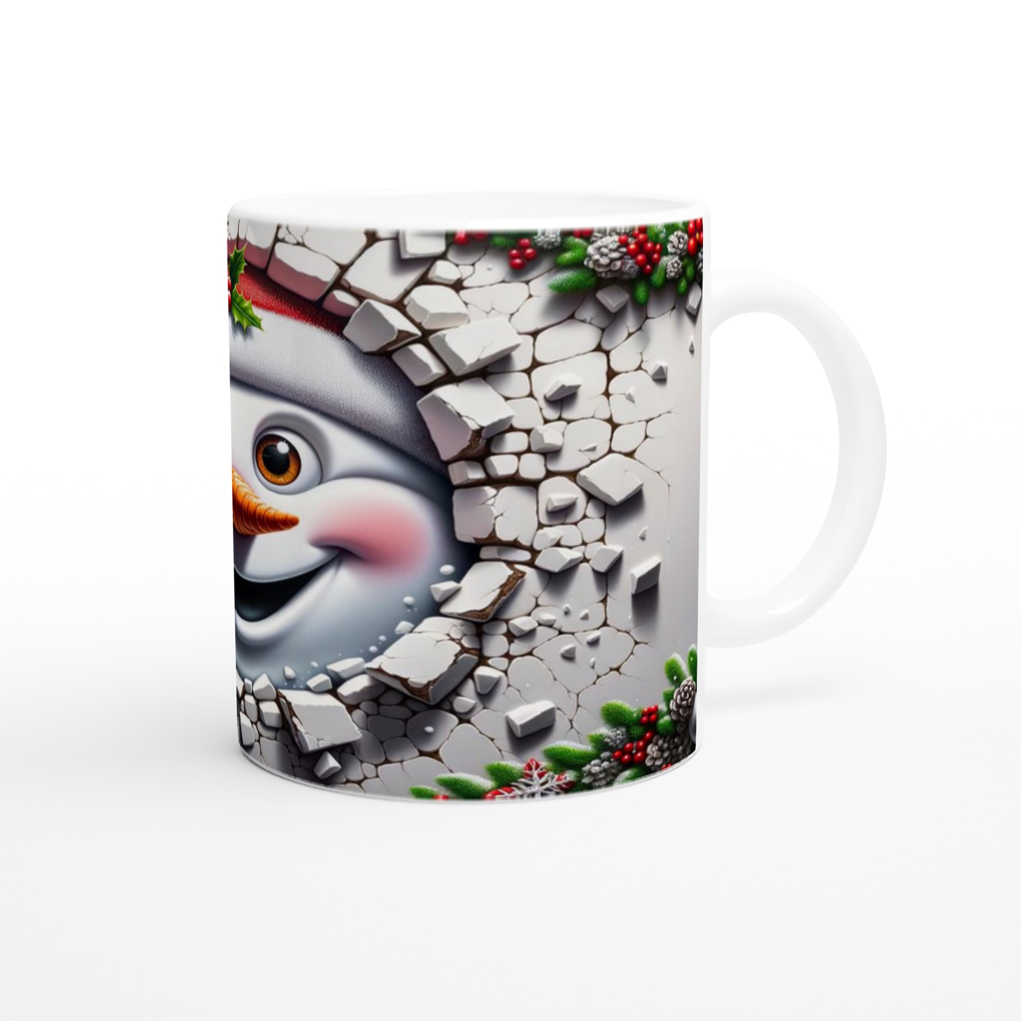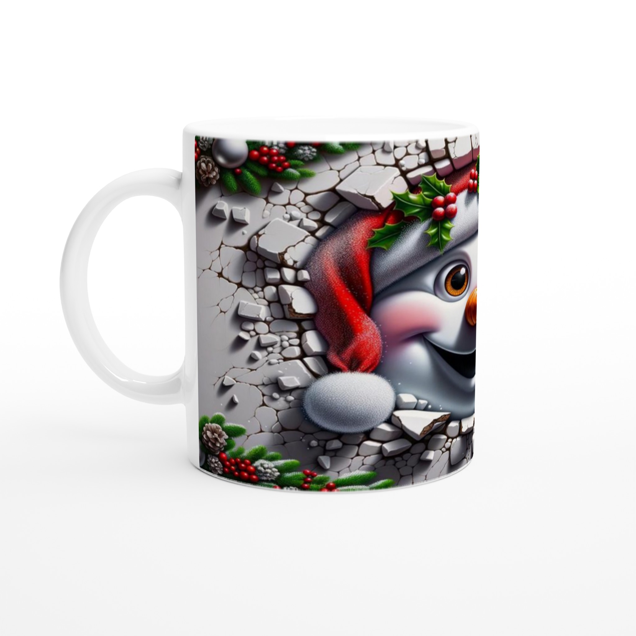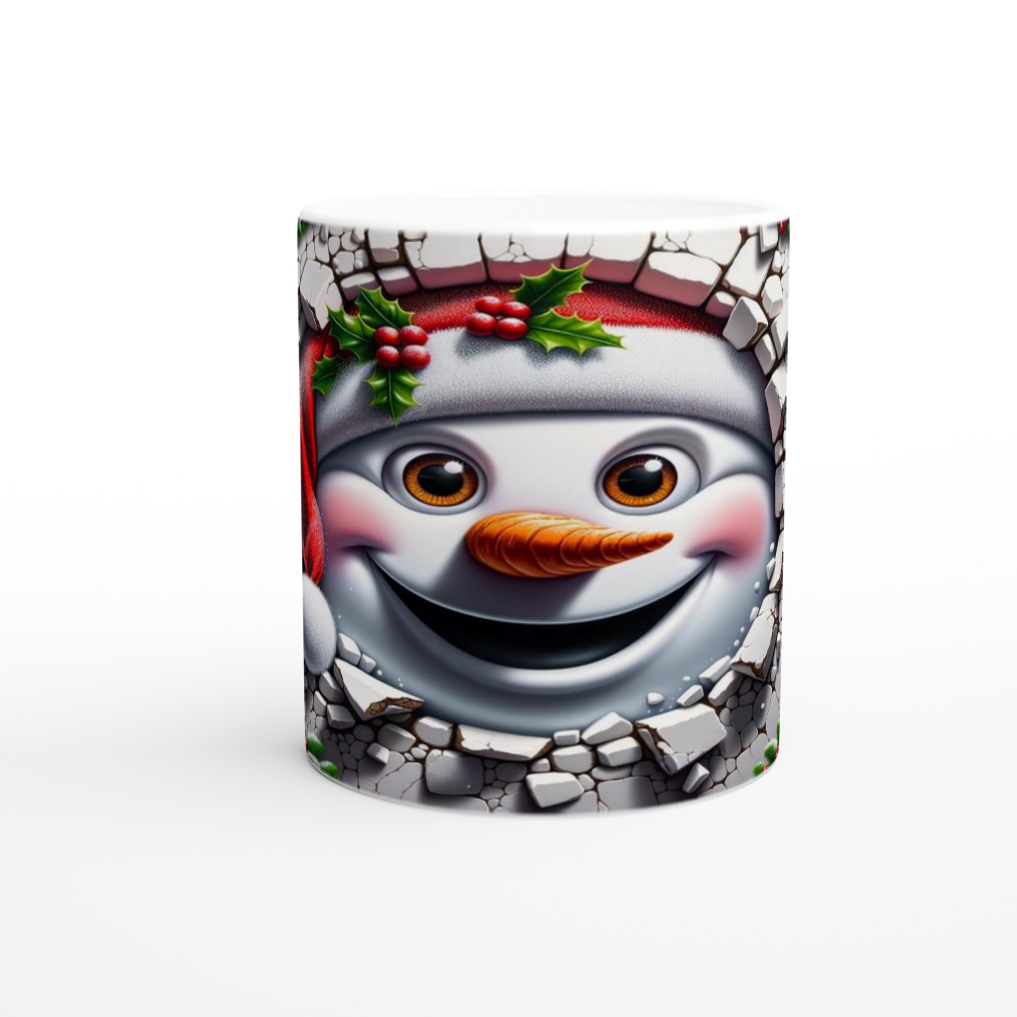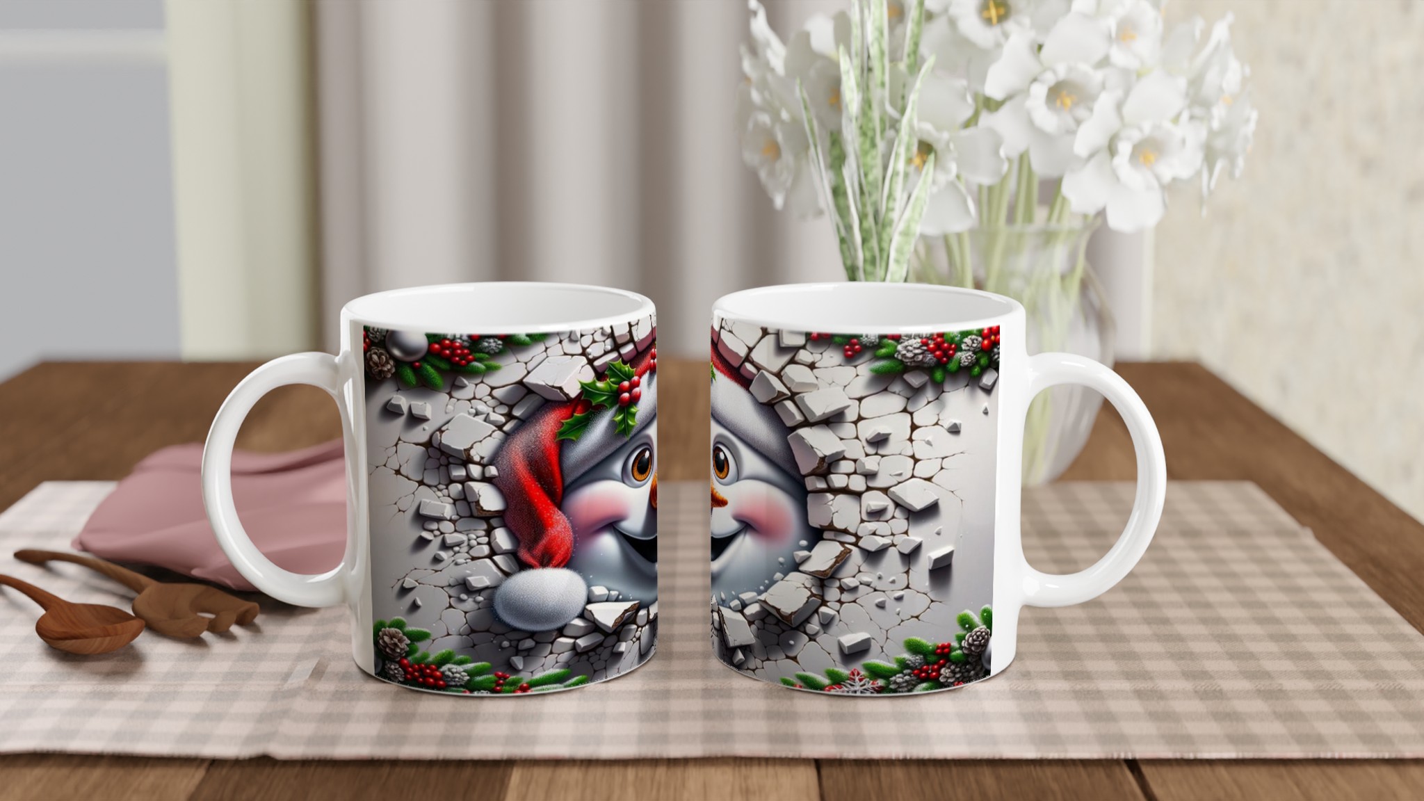 Jolly Snowman Christmas Cheer 11oz Ceramic Mug in Your Choice of Seven Vibrant Hues