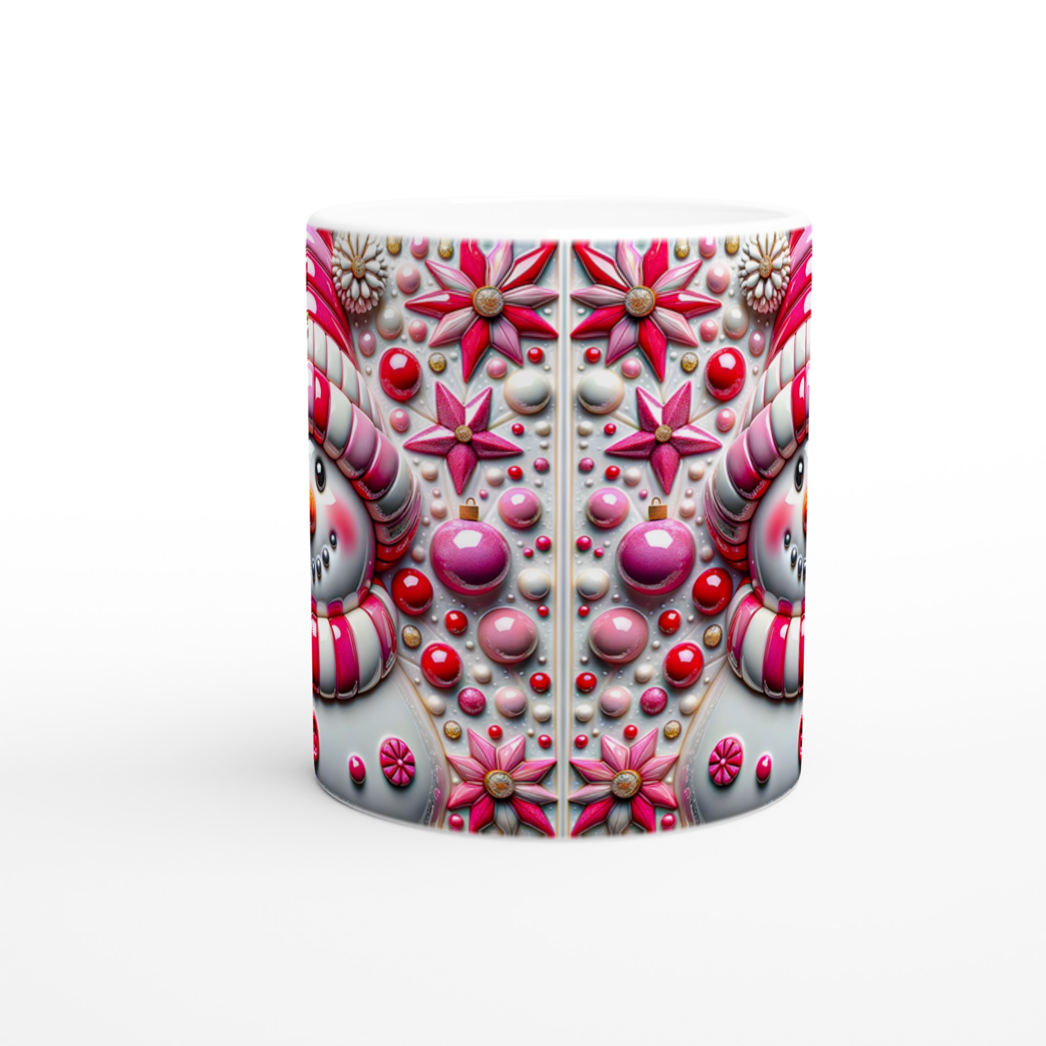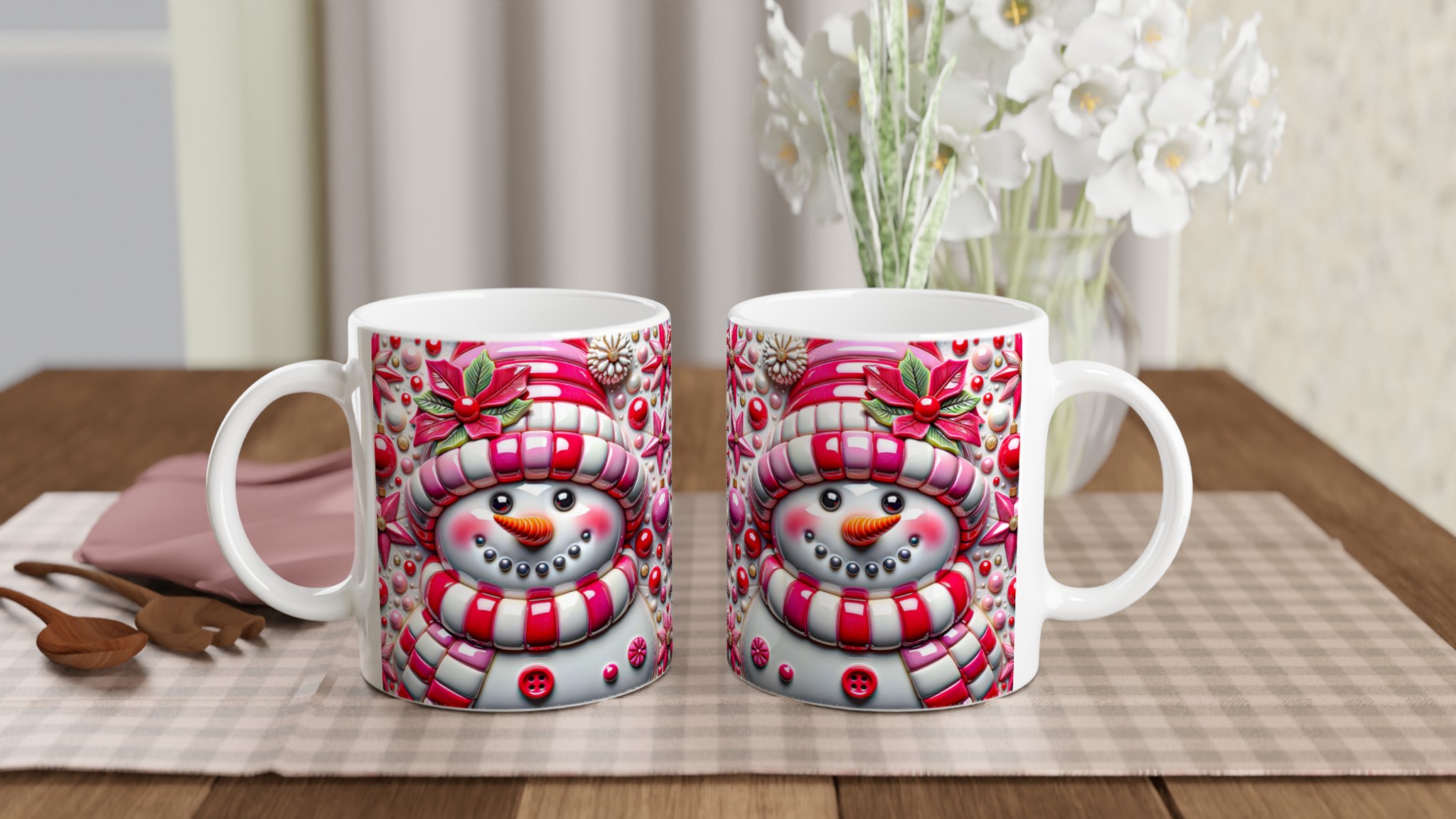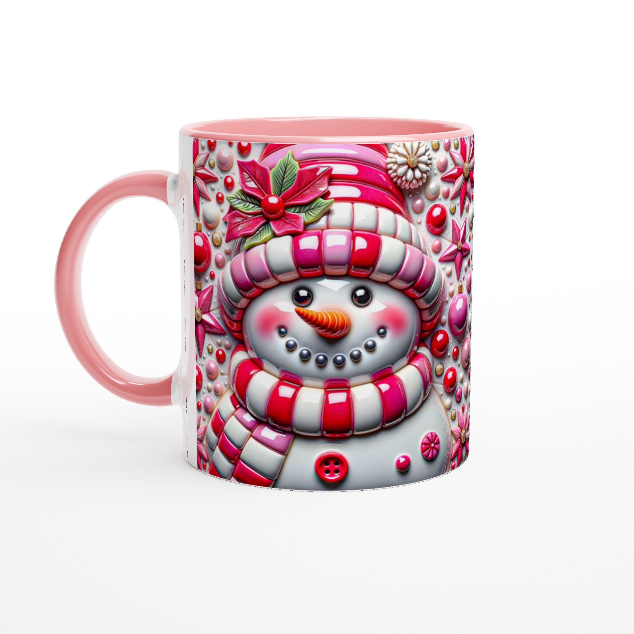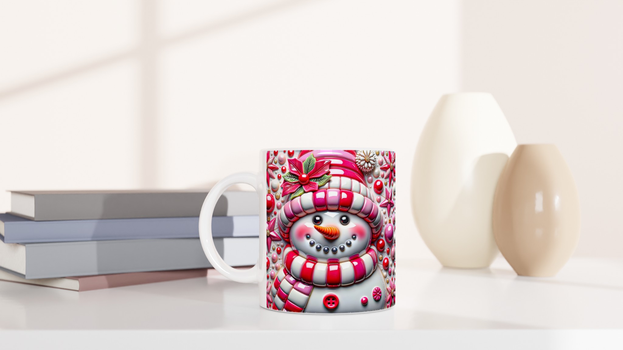 Sparkling Pink Snowman Winter Wonderland Mug – White 11oz Ceramic Mug