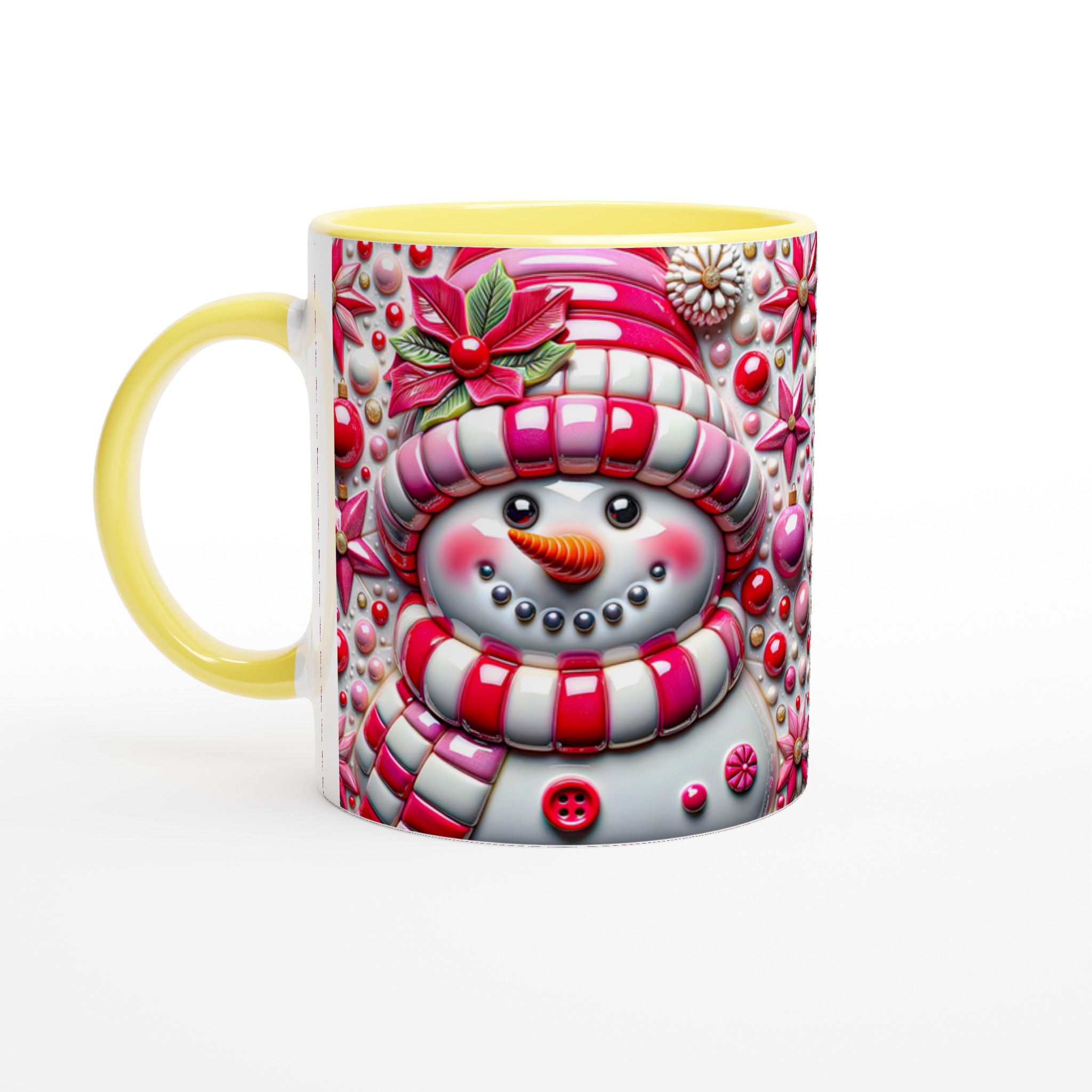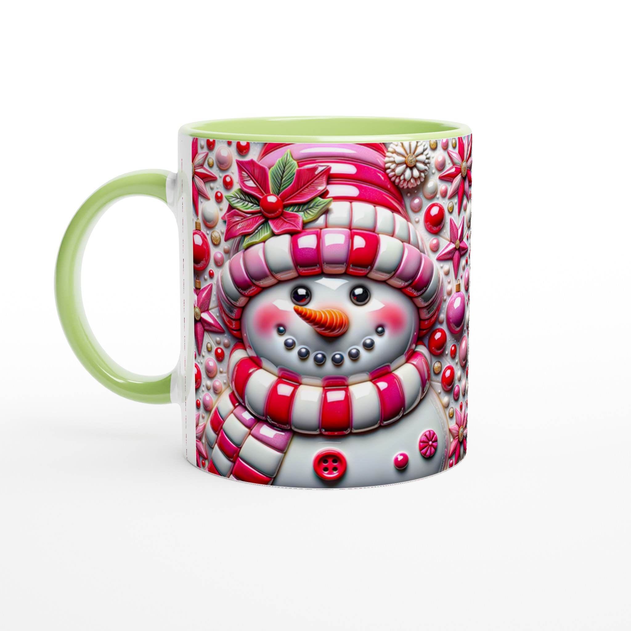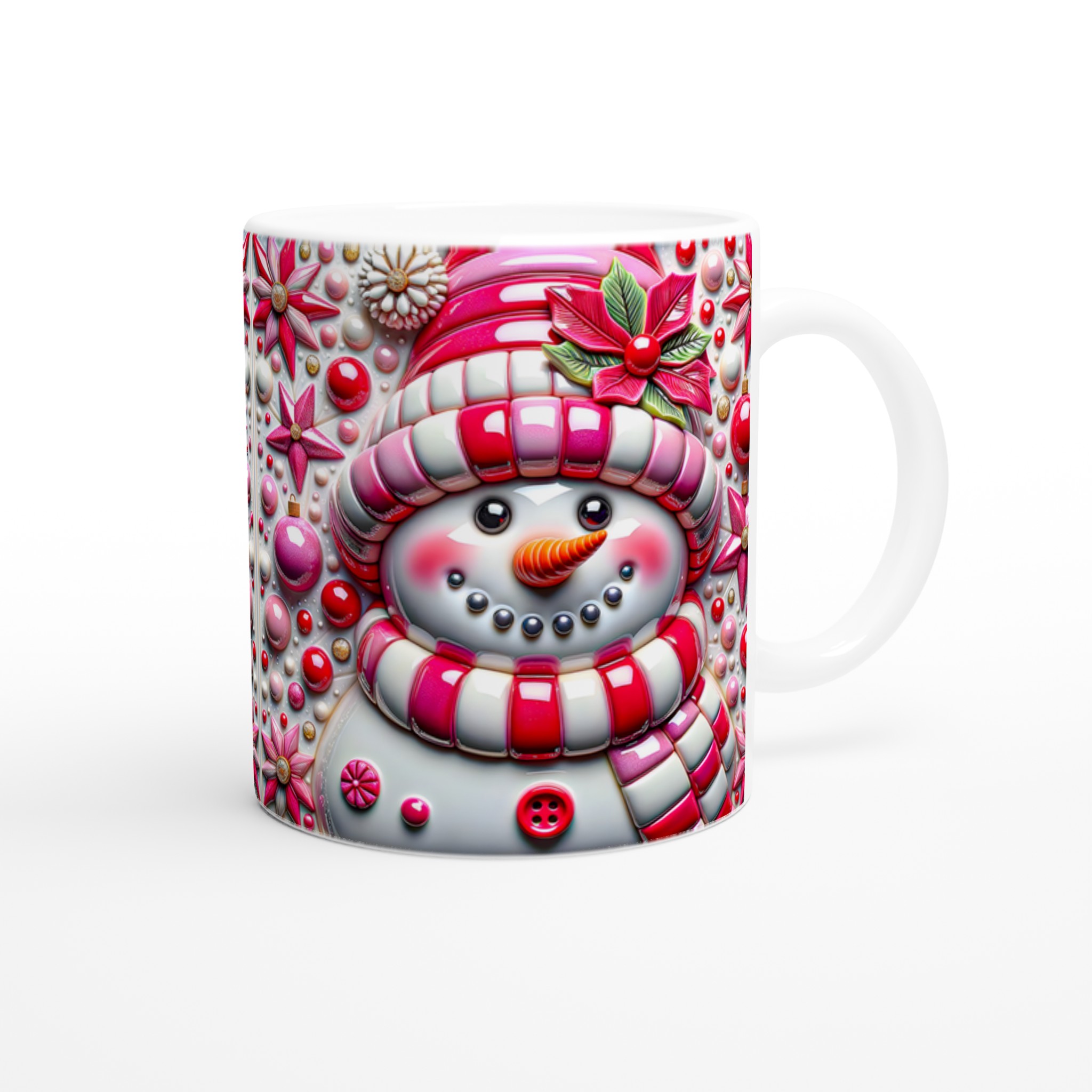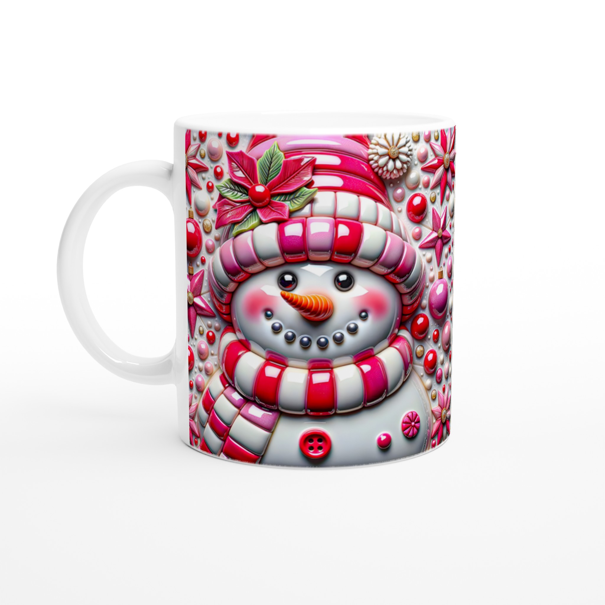Sparkling Pink Snowman Winter Wonderland Mug – White 11oz Ceramic Mug
