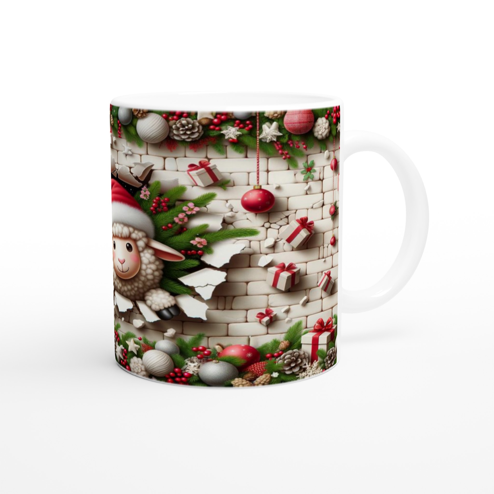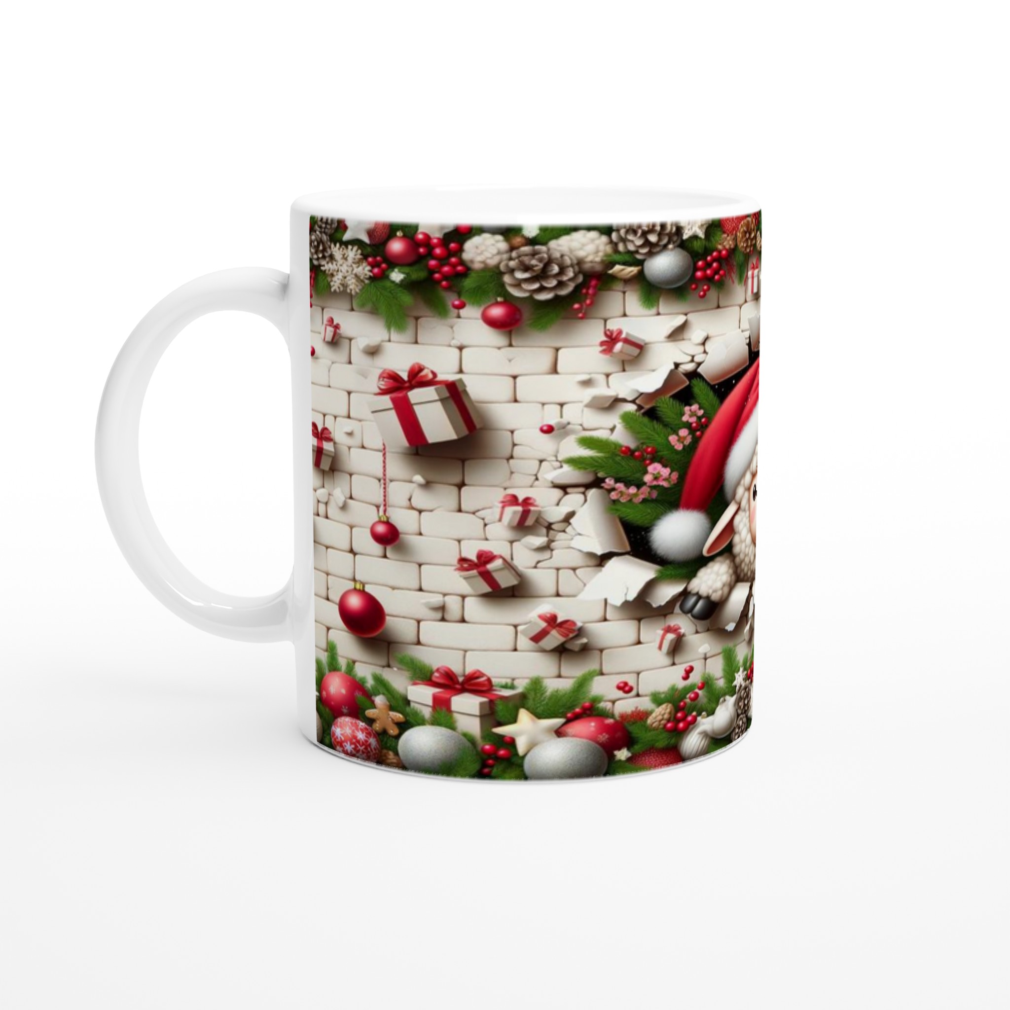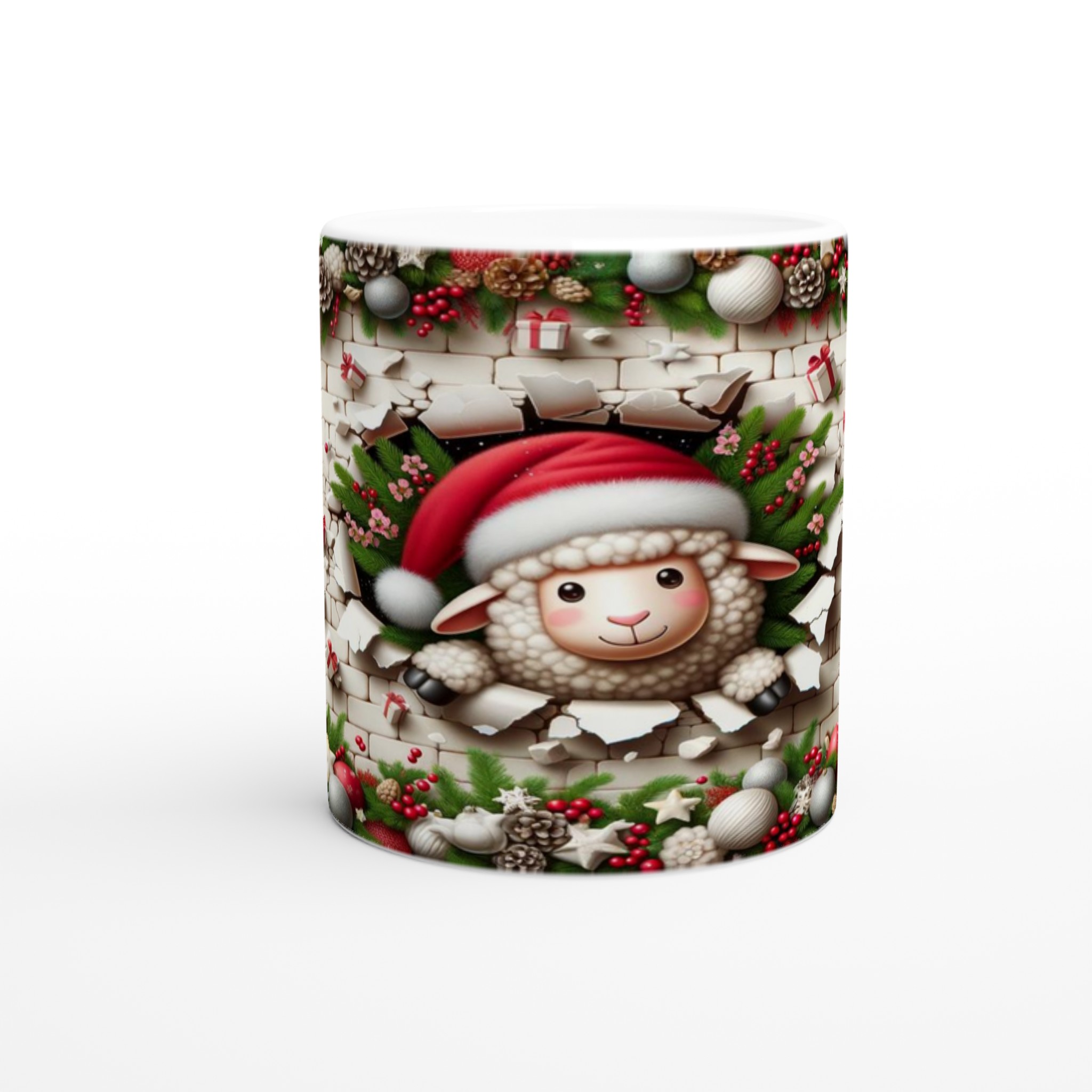 Festive Christmas Santa Sheep 11oz Ceramic Mug – Perfect Holiday Gift in Your Choice of Seven Colors