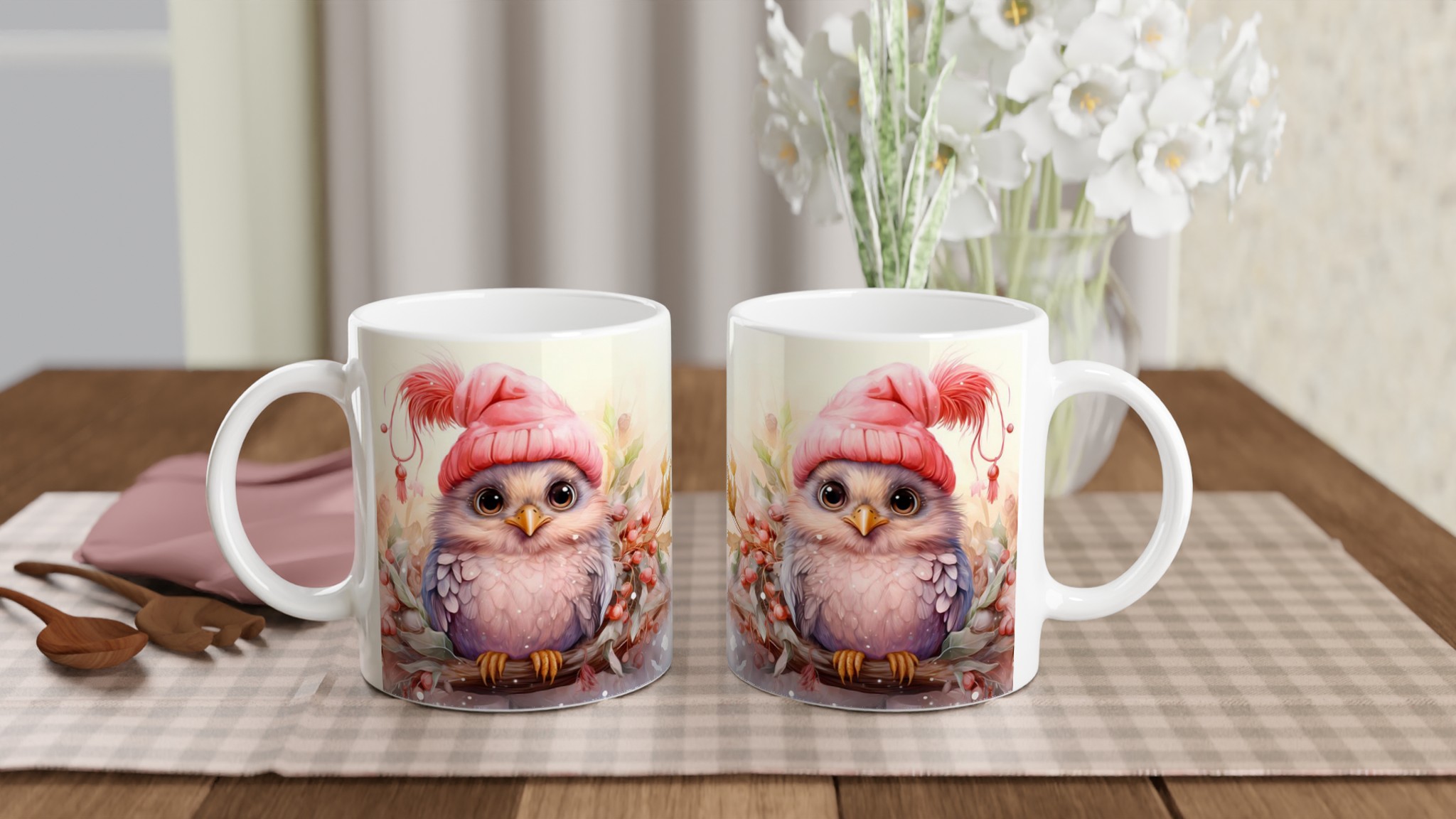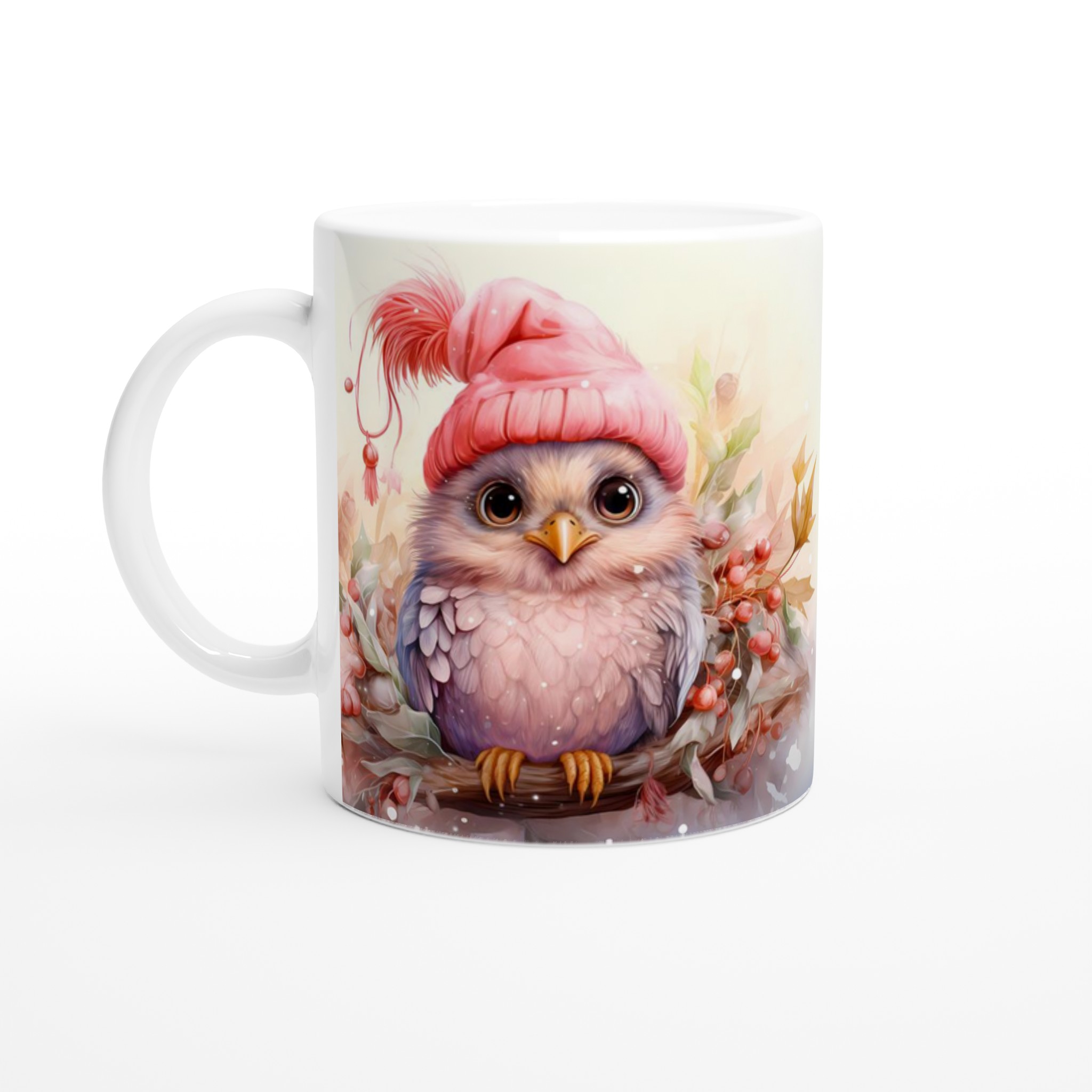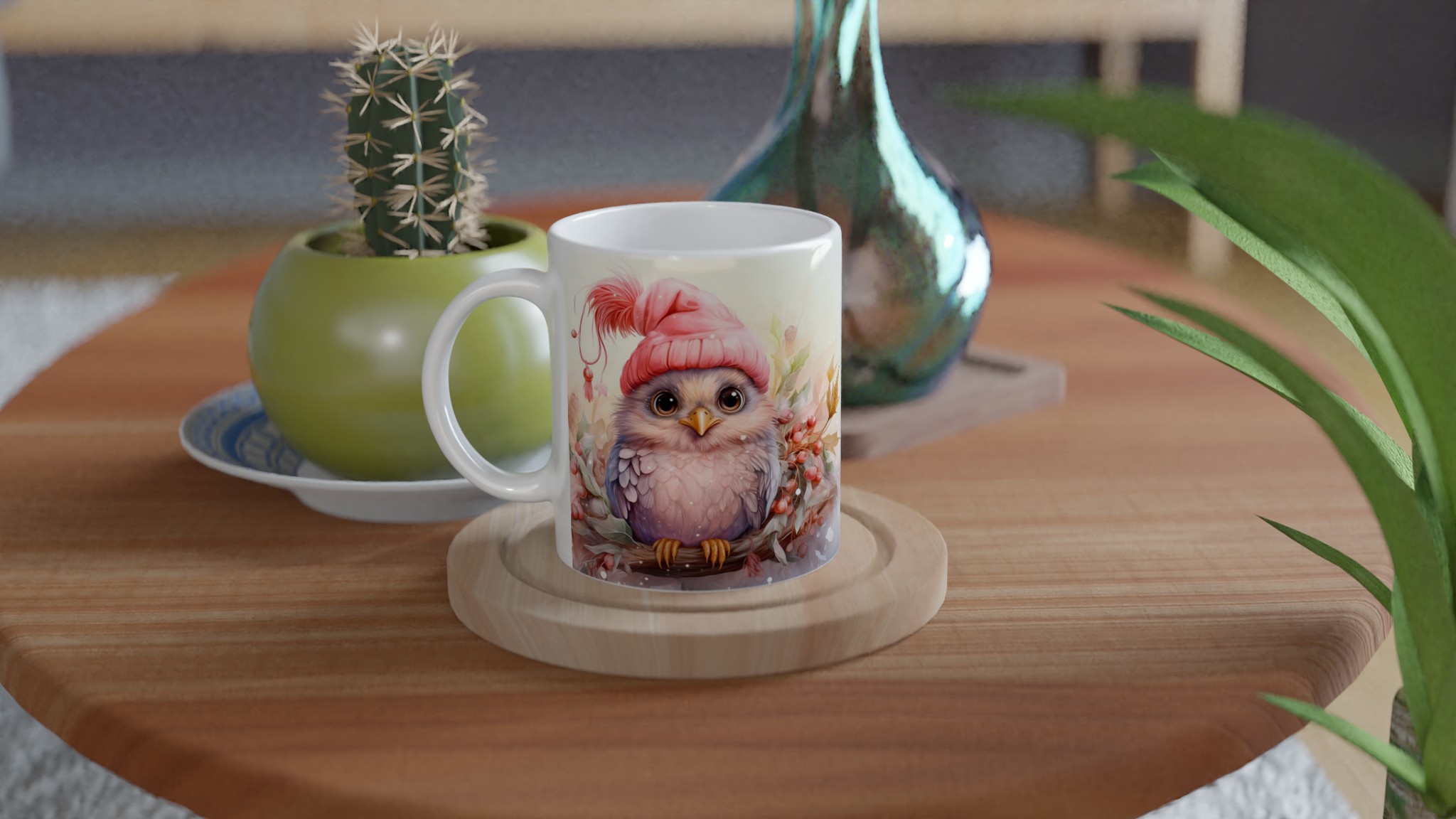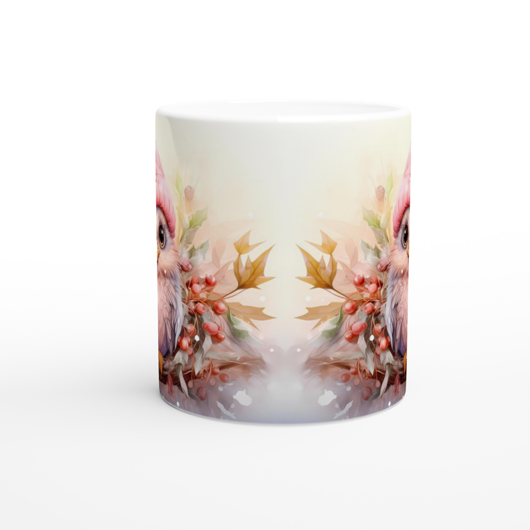 Charming Winter Owl 11oz Ceramic Mug – Adorable & Cozy Beverage Companion in Your Choice of 7 Hues