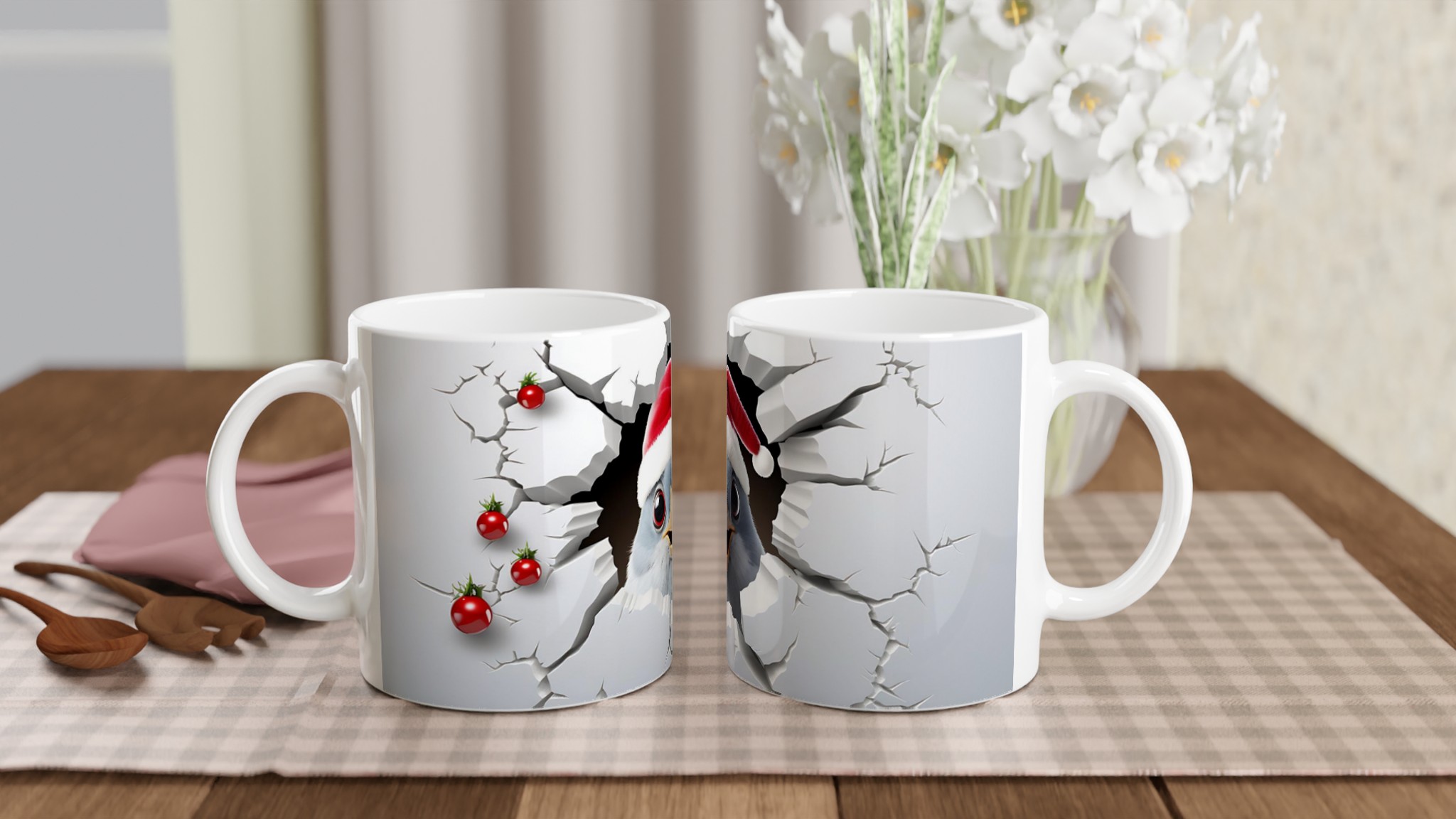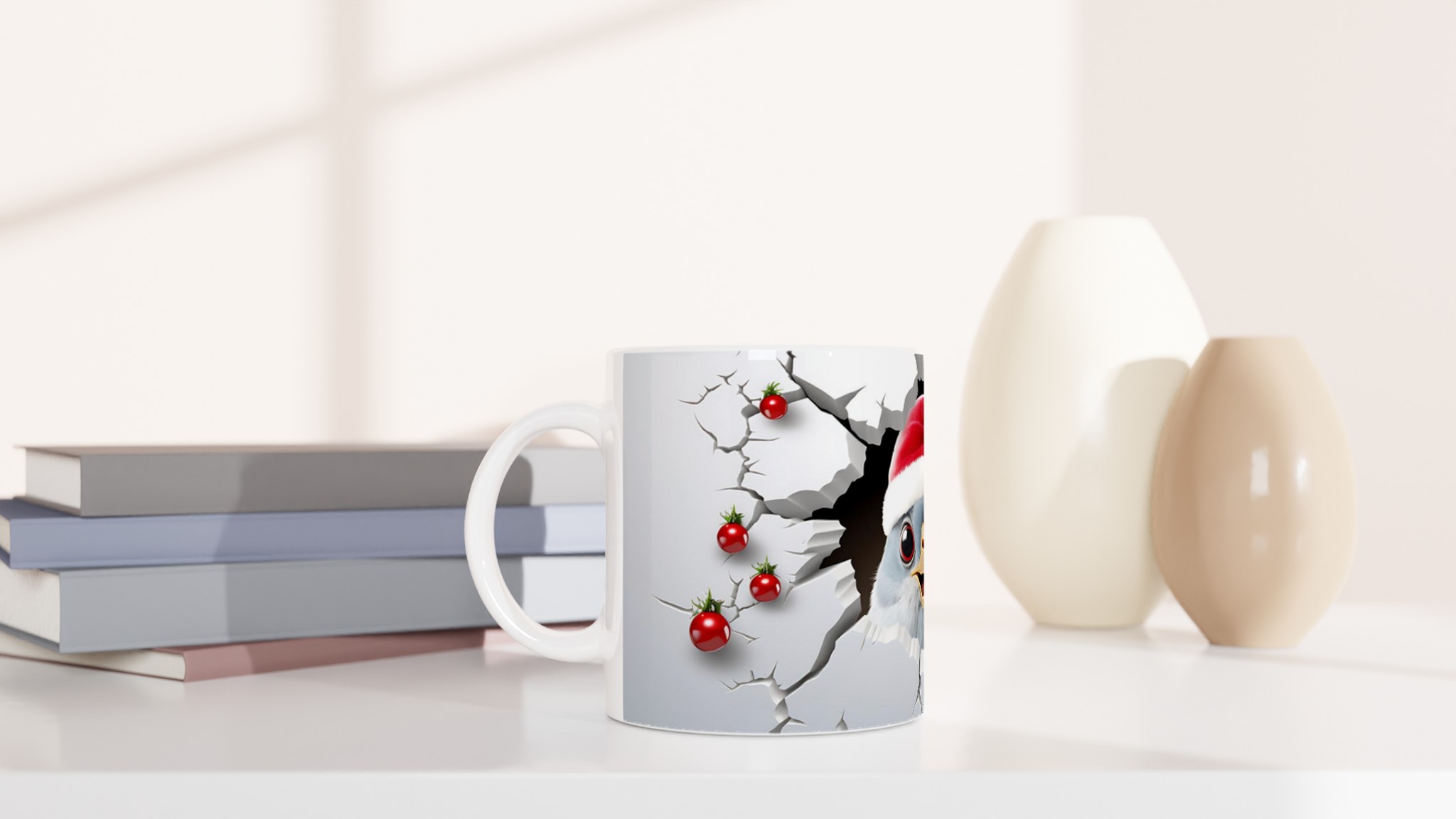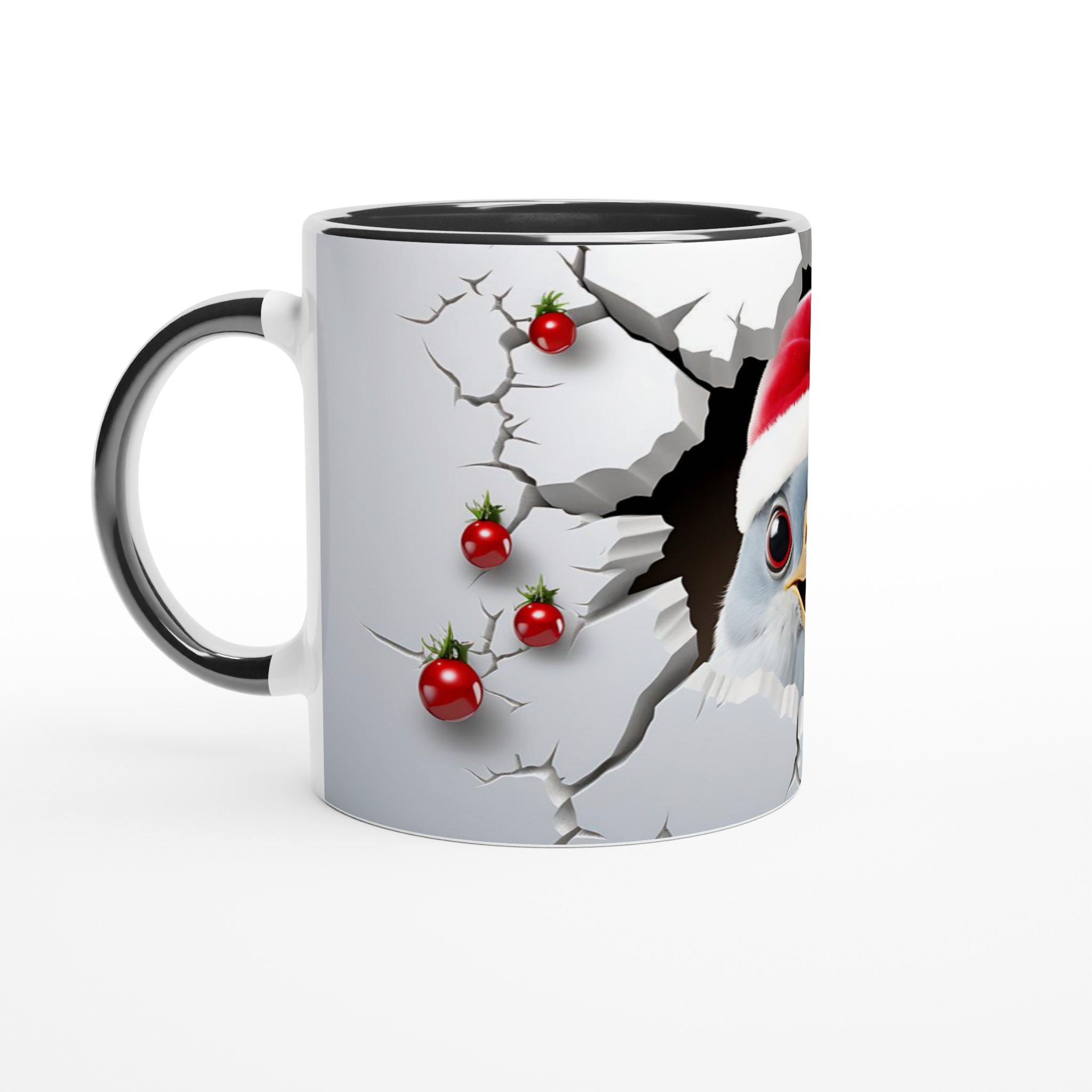 Festive Peeking Bird 11oz Ceramic Mug – Holiday Cheer in Your Choice of Seven Vibrant Hues