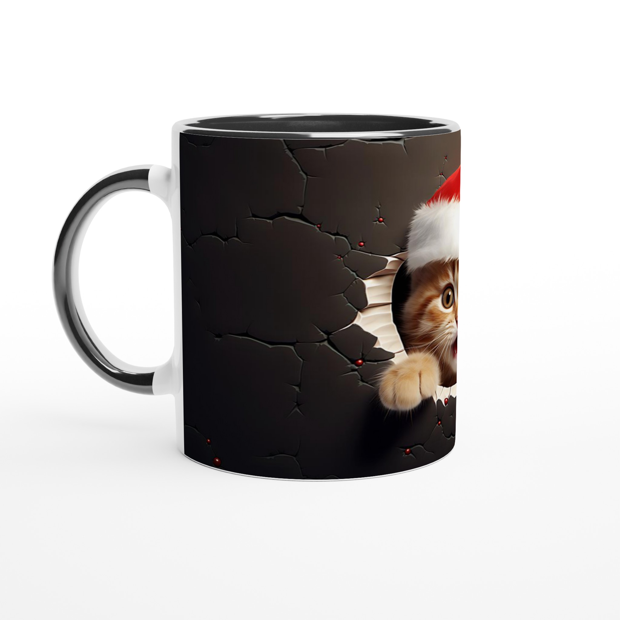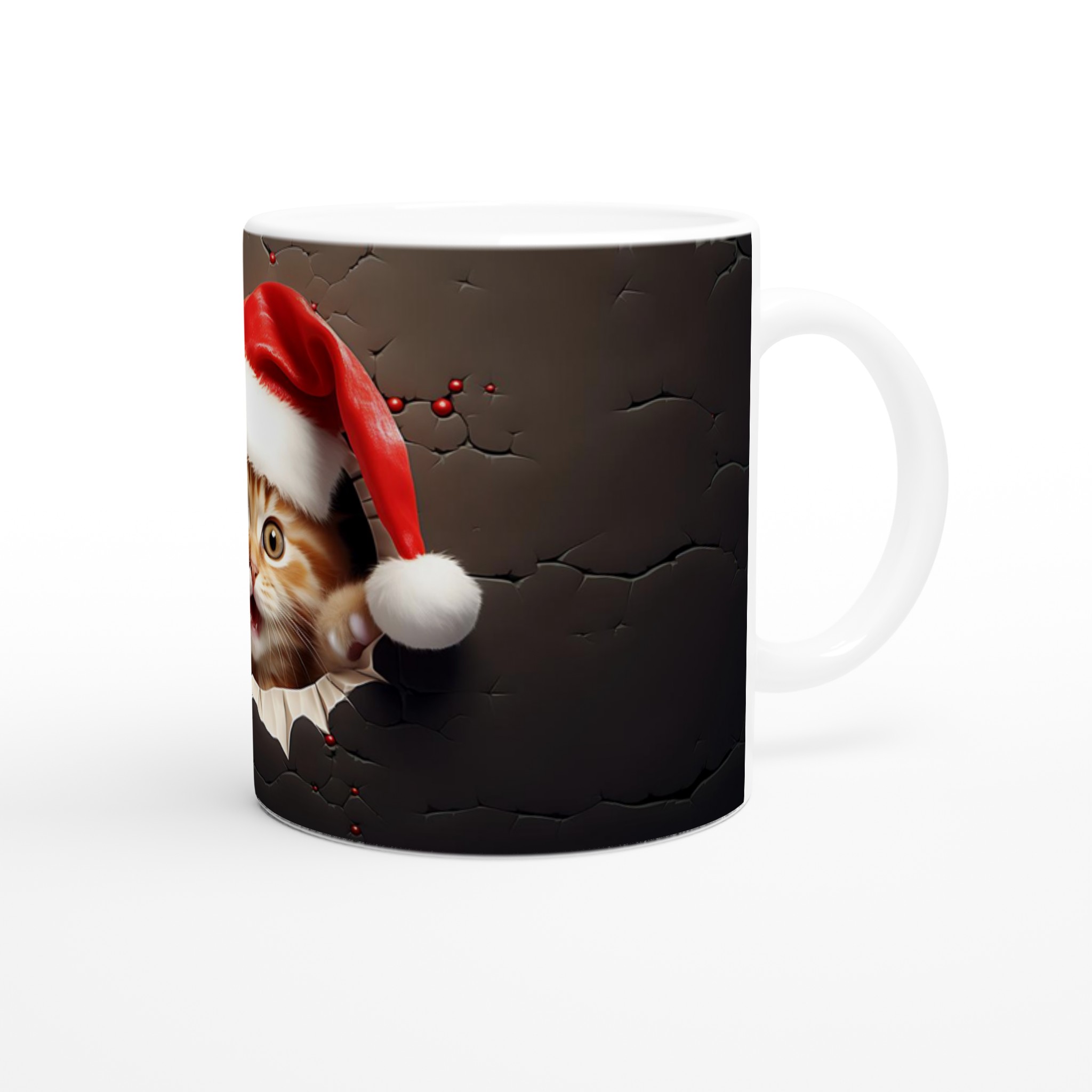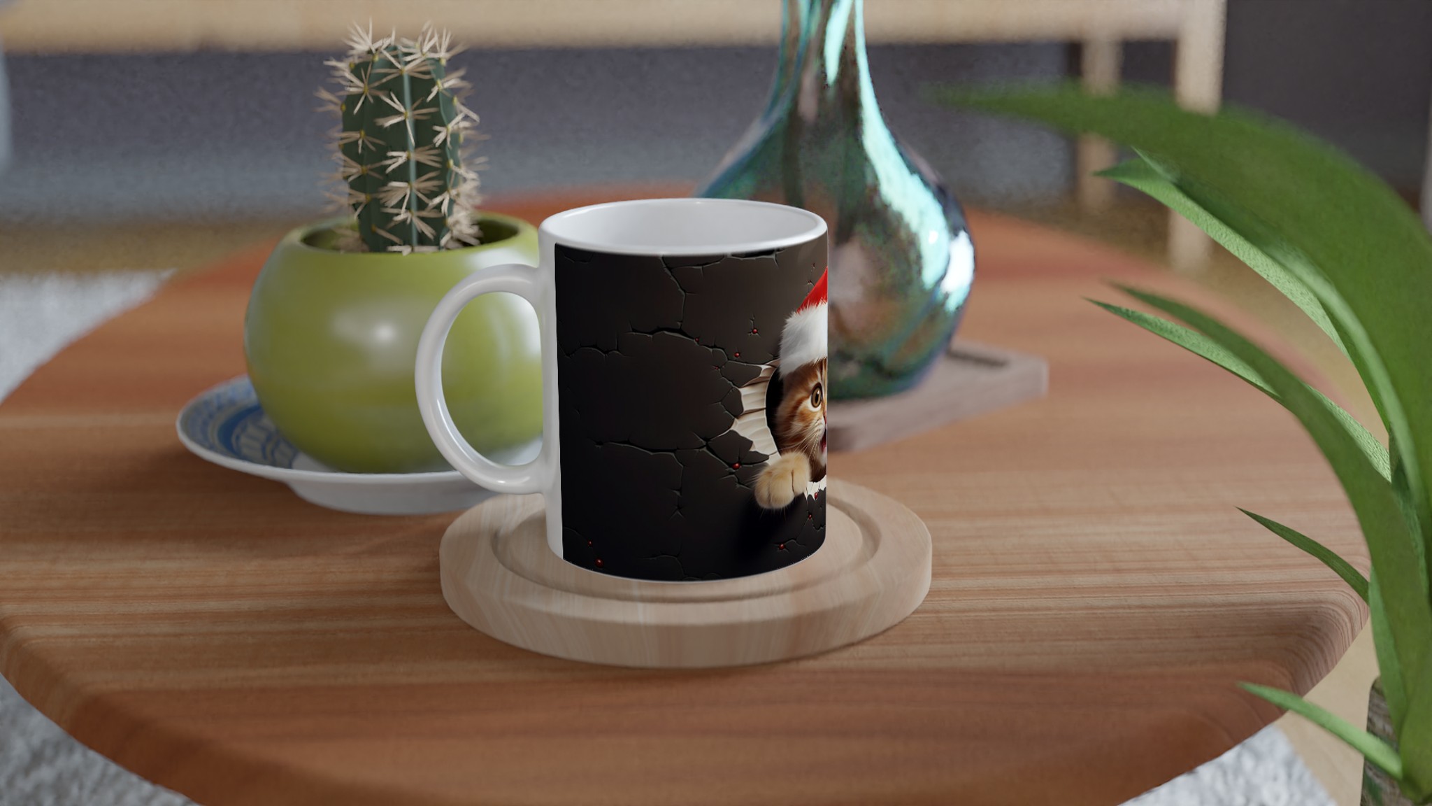 Festive Peeking Kitten 11oz Ceramic Mug – Your Holiday Cheer, Your Color!
