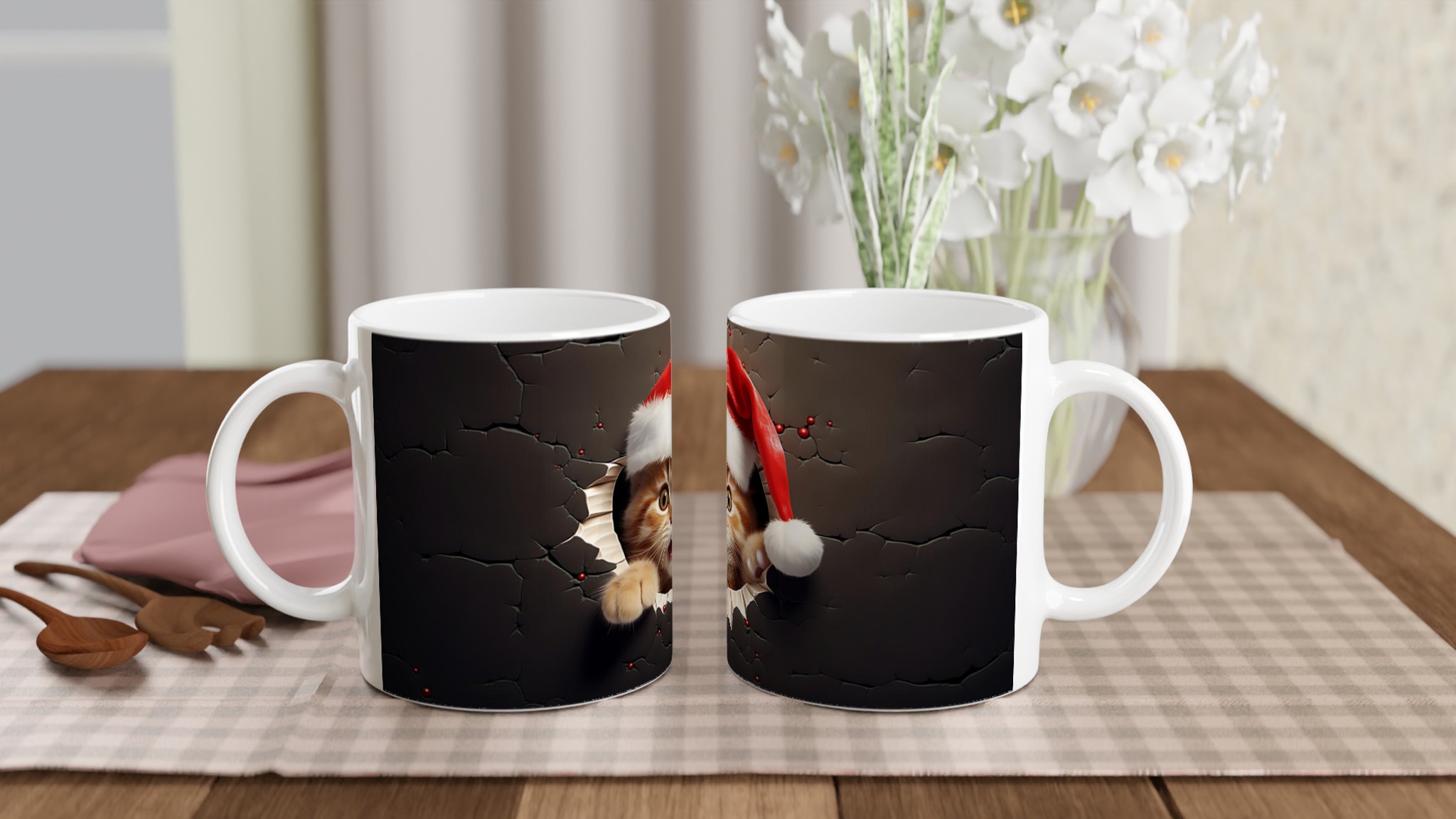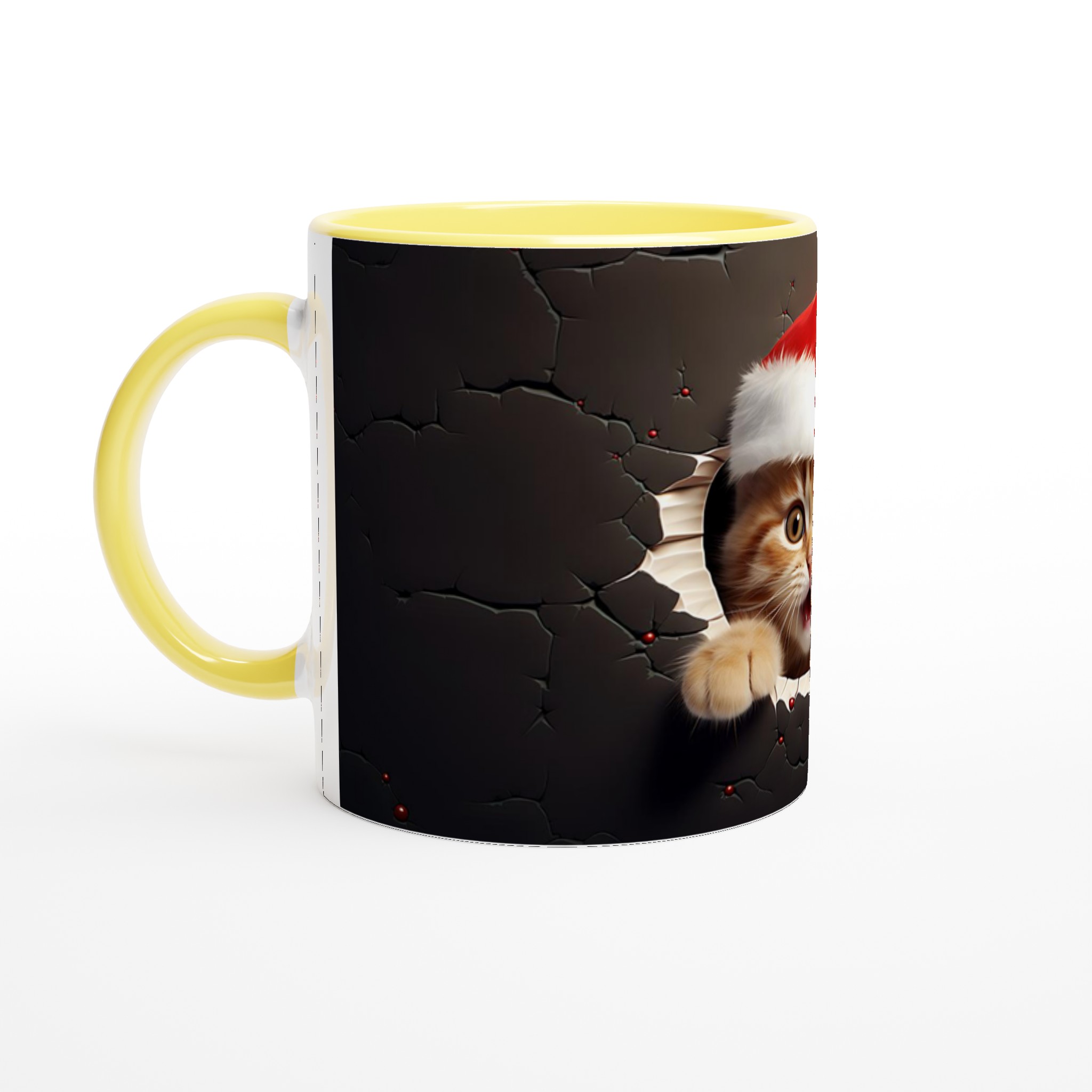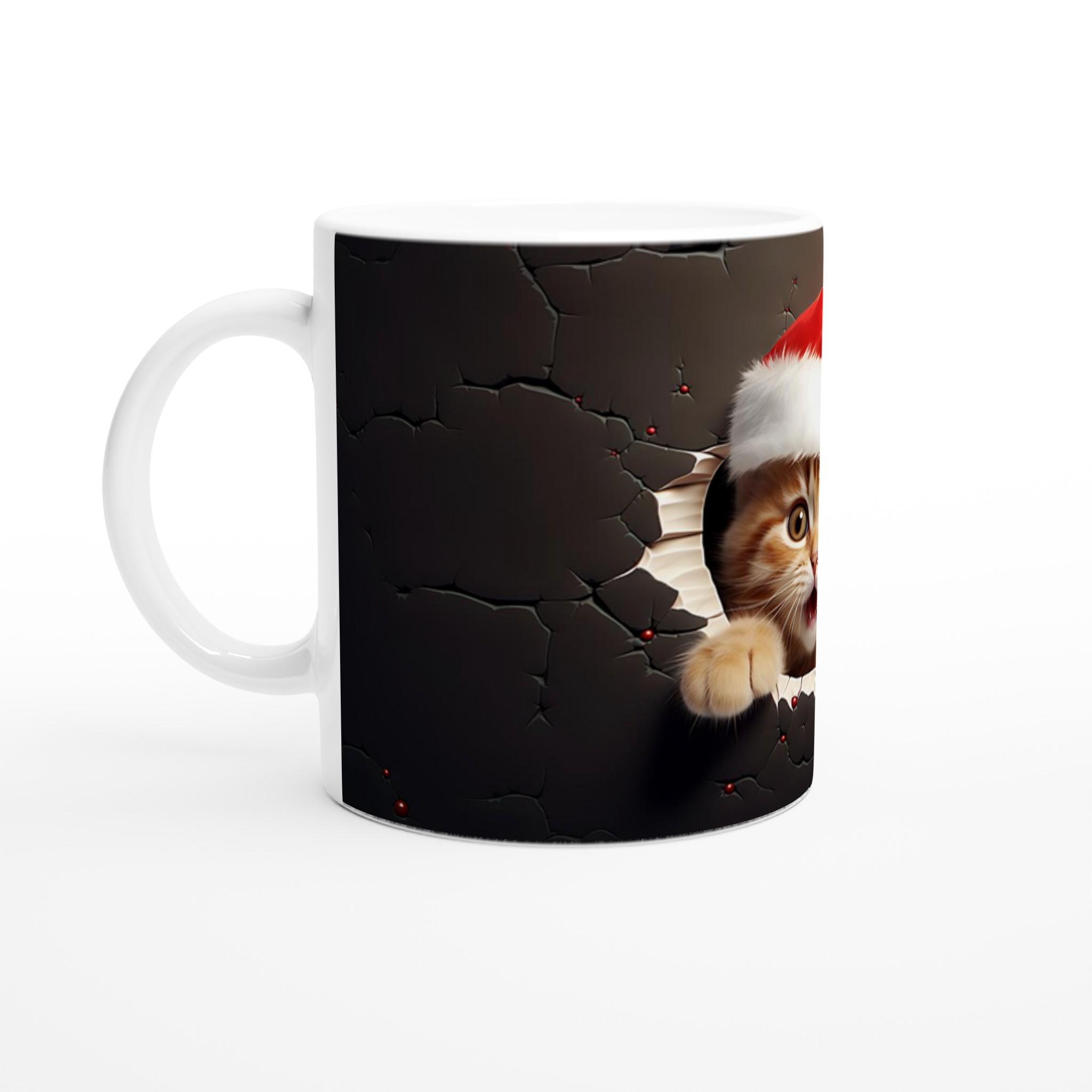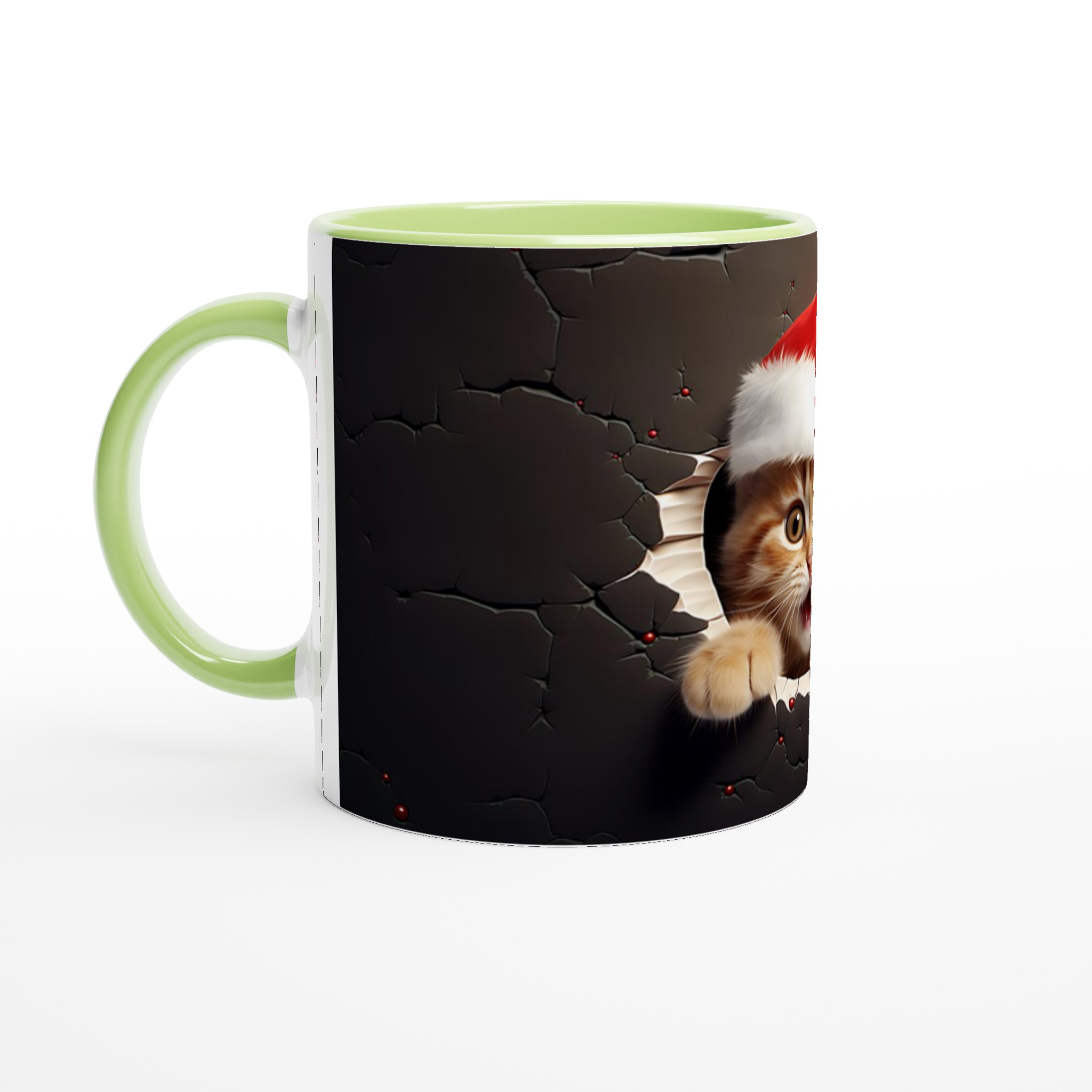 Festive Peeking Kitten 11oz Ceramic Mug – Your Holiday Cheer, Your Color!