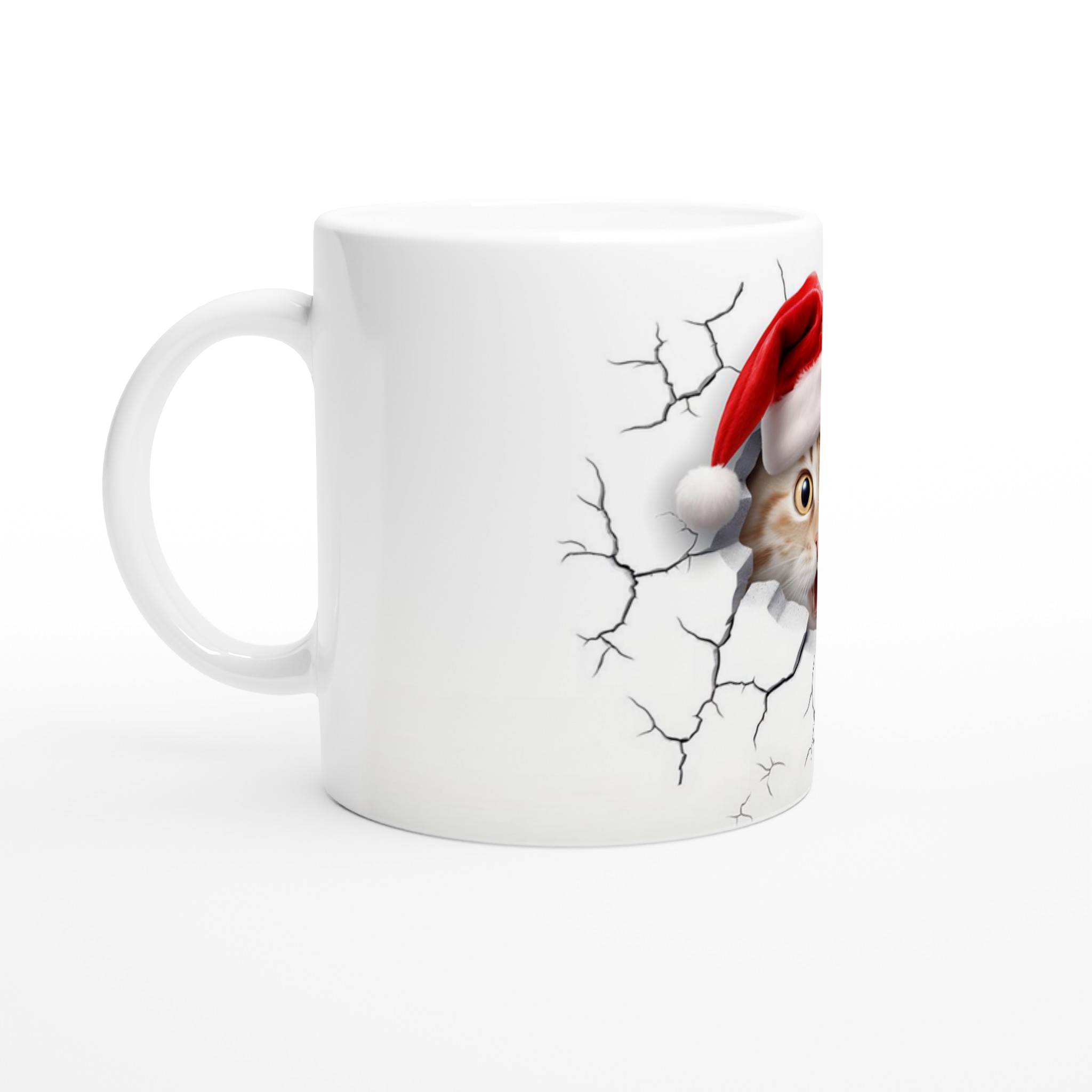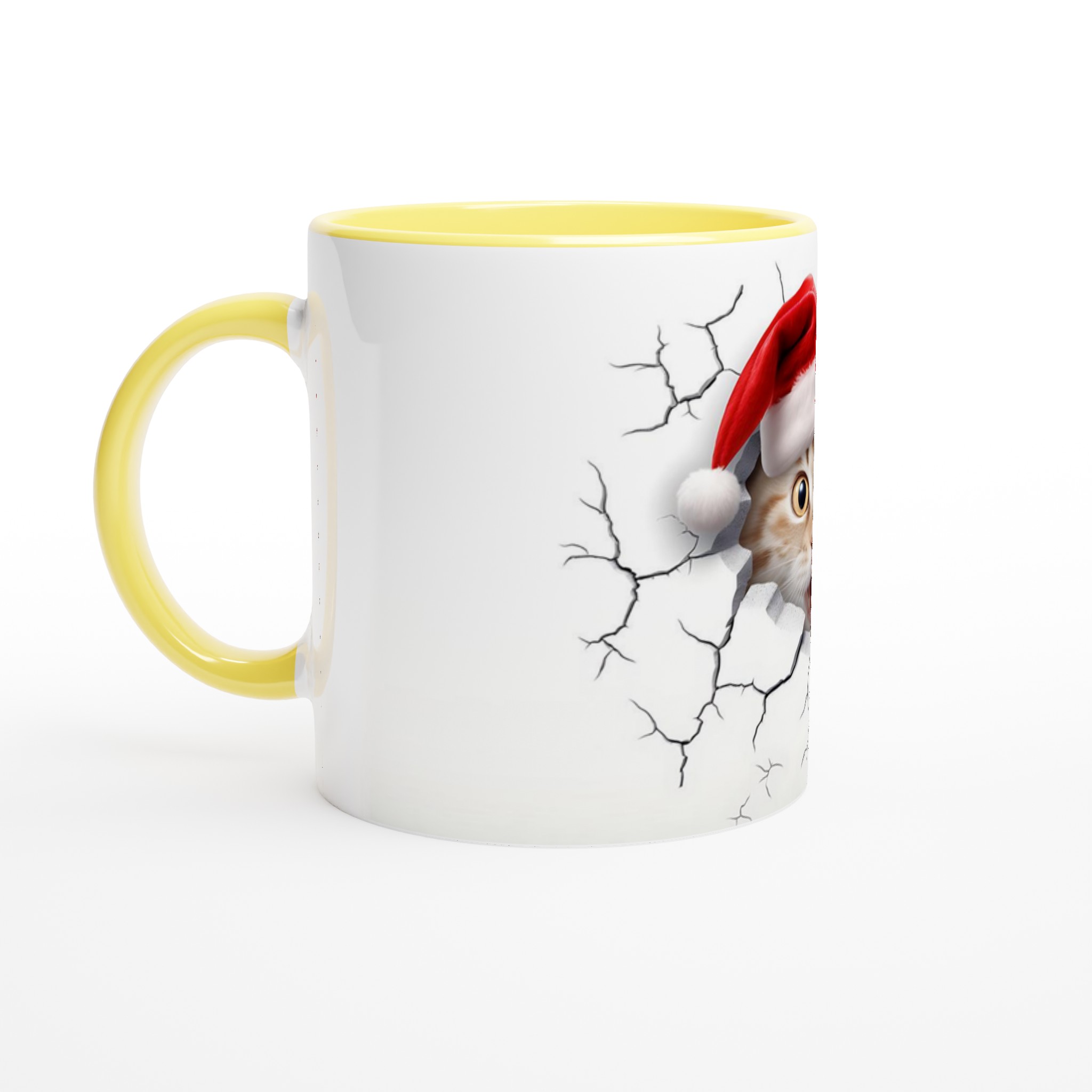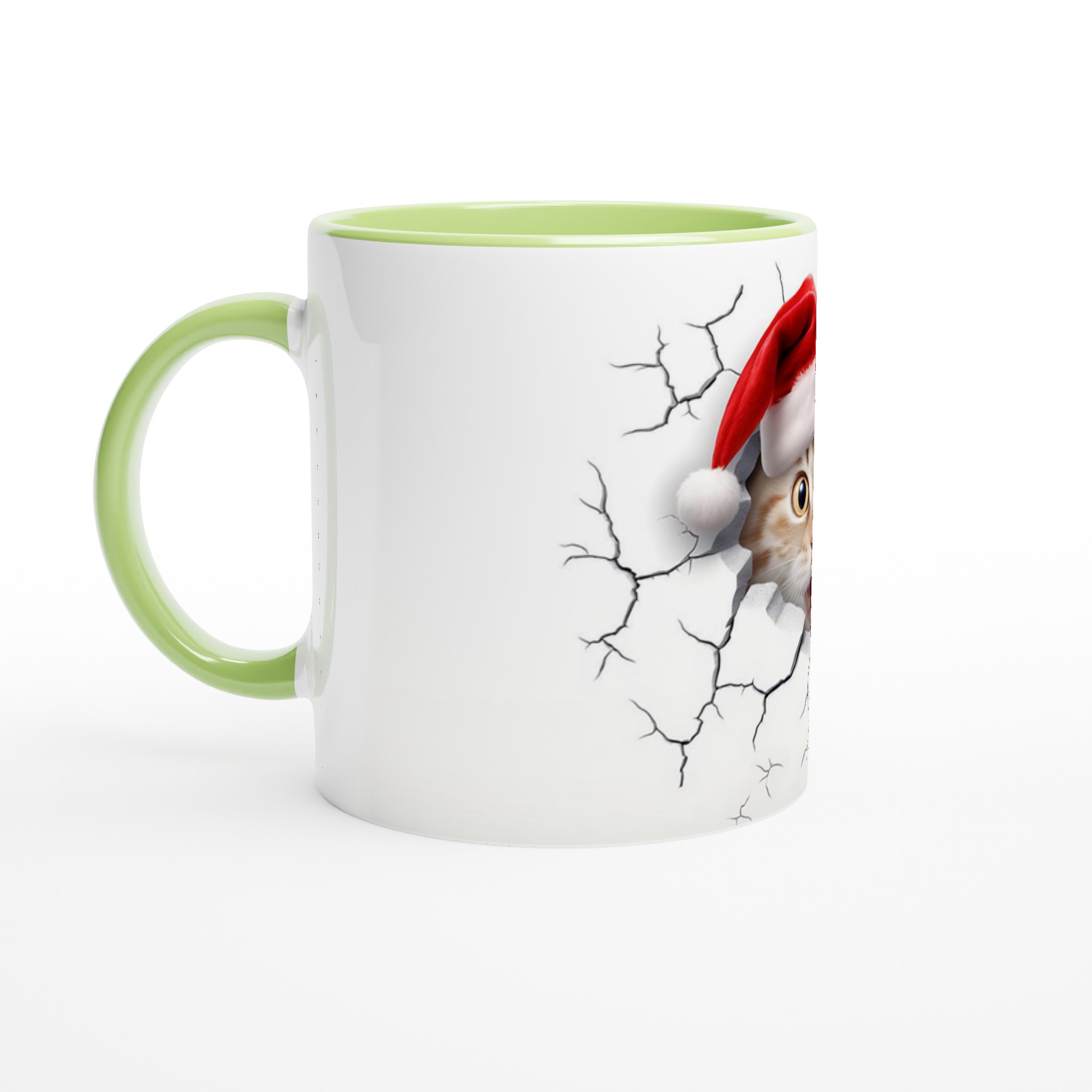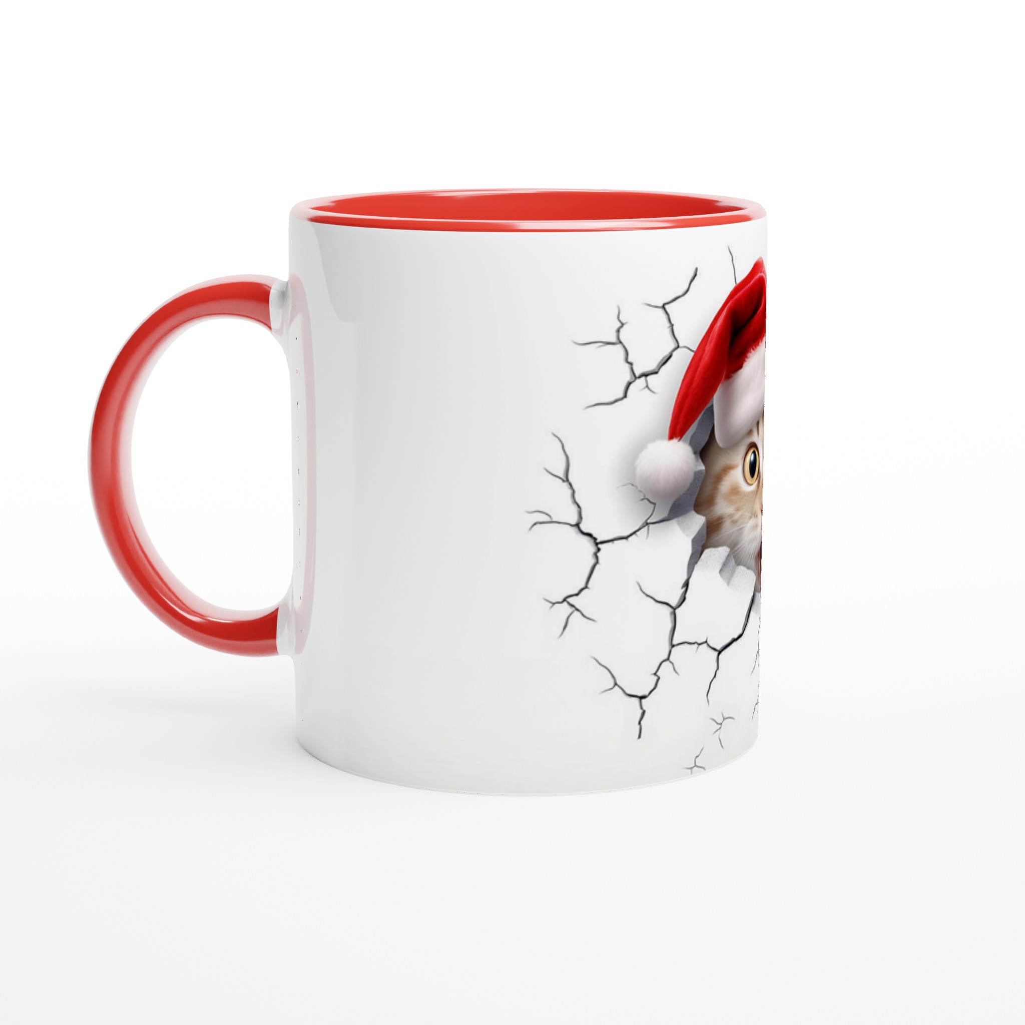 Festive Feline Santa Hat Mug – Adorable Cat Peeking Ceramic Mug in Your Choice of Seven Vibrant Hues