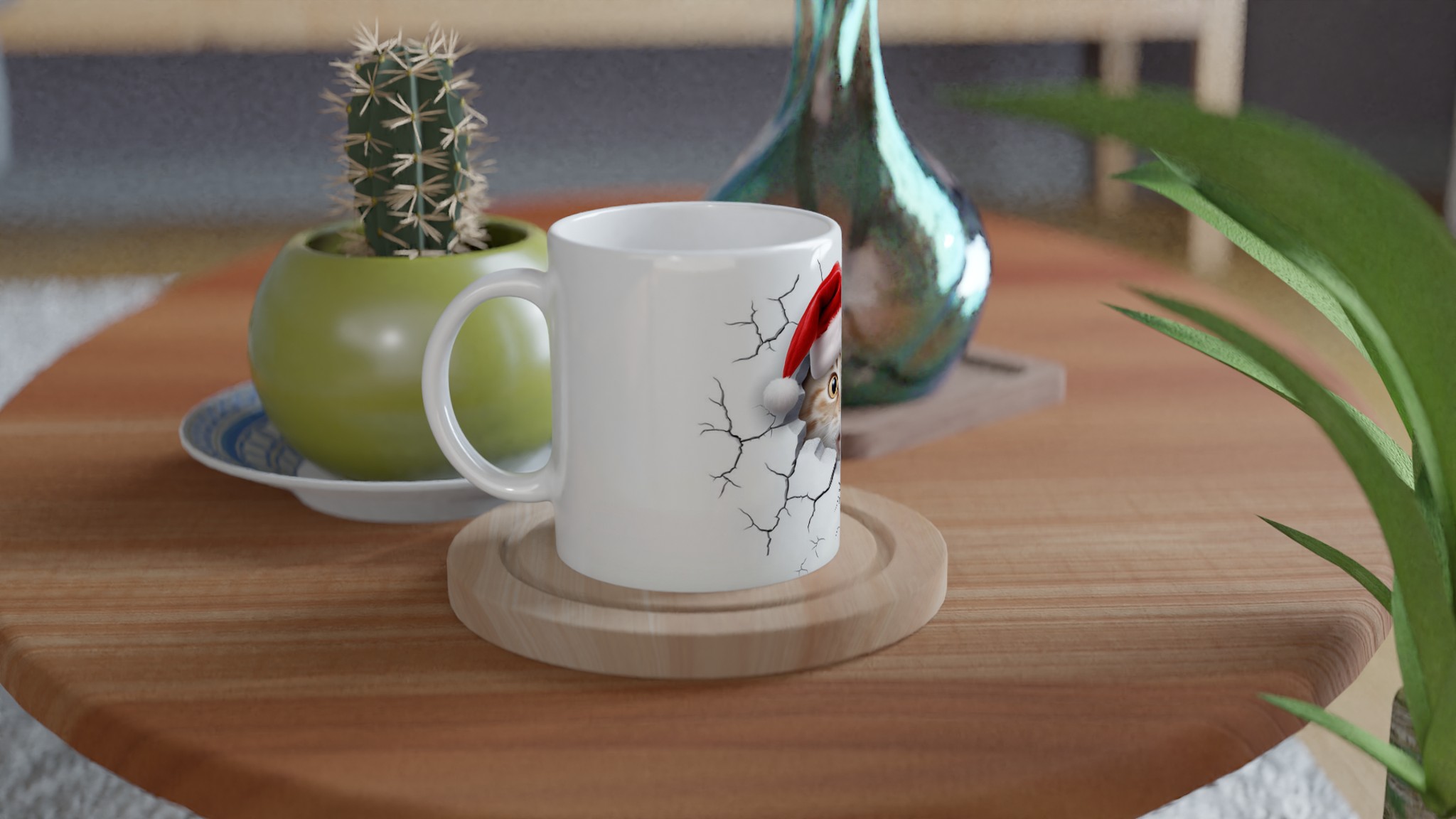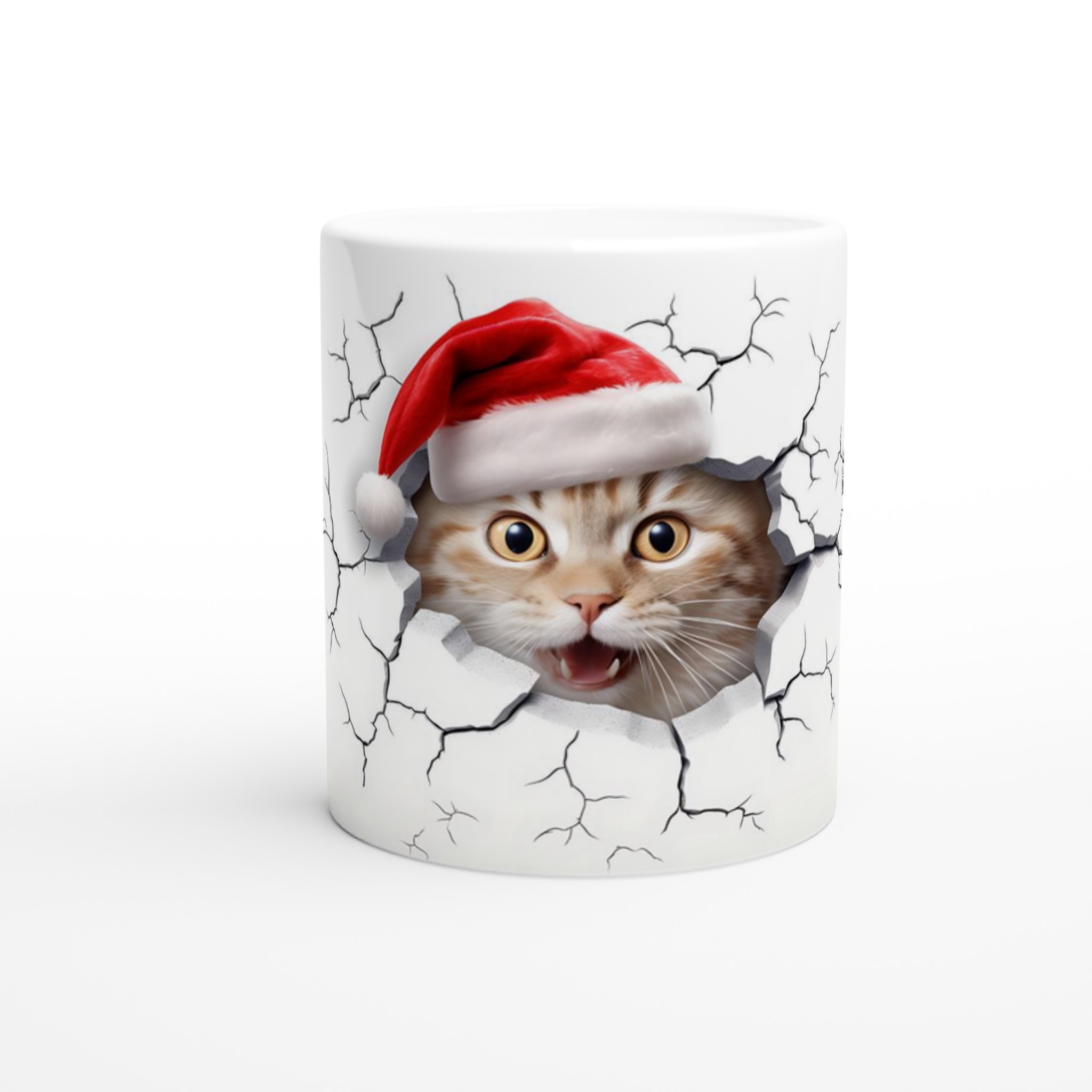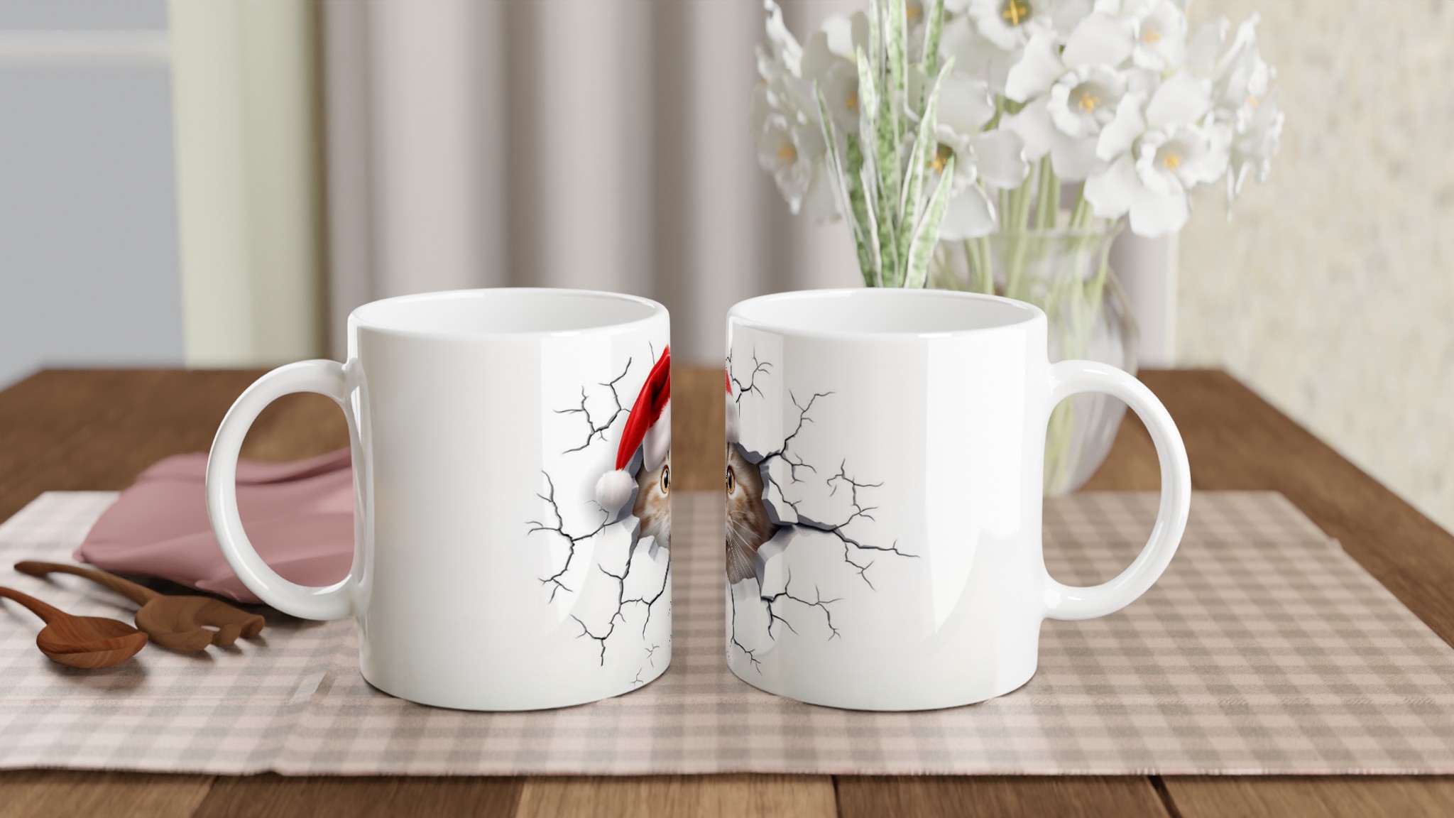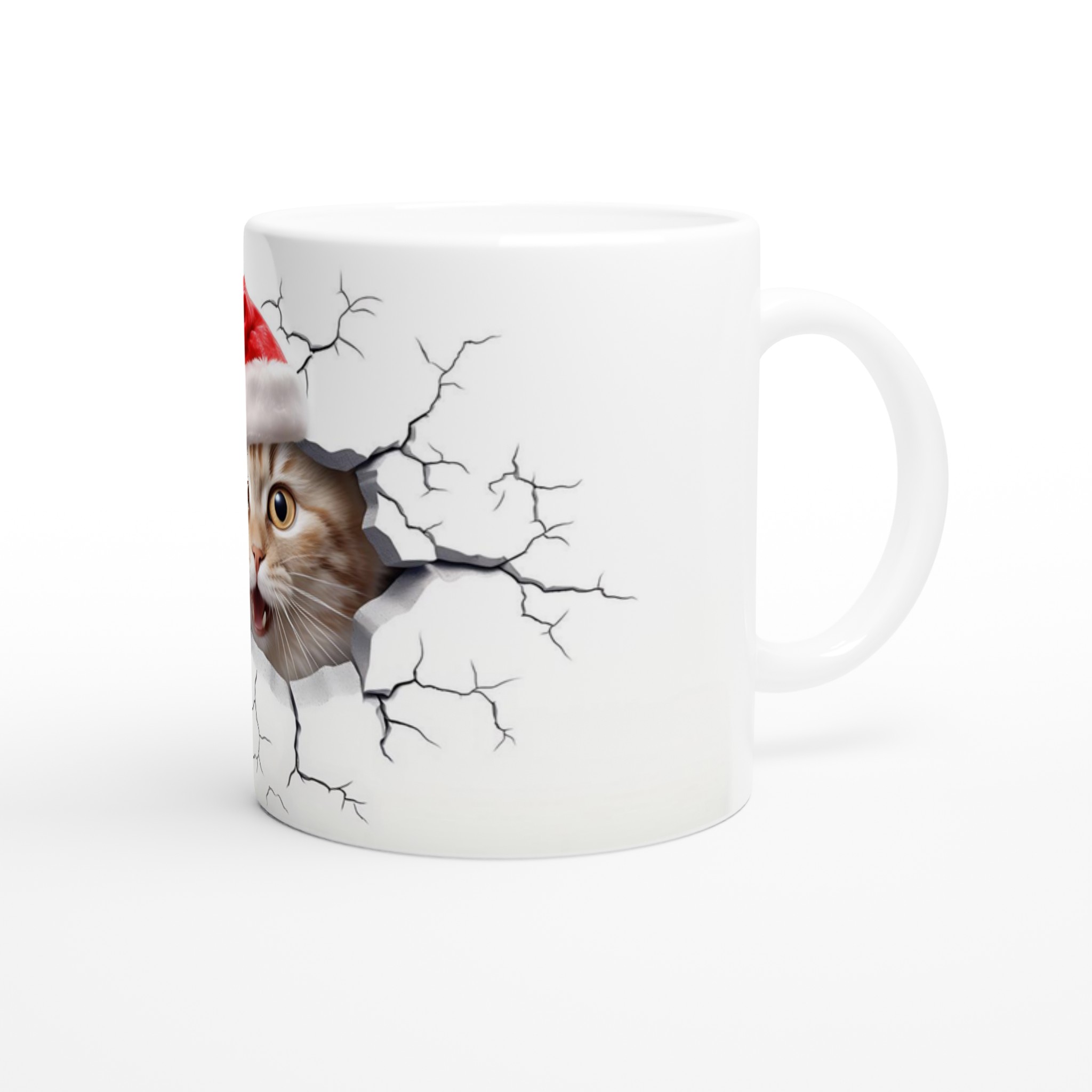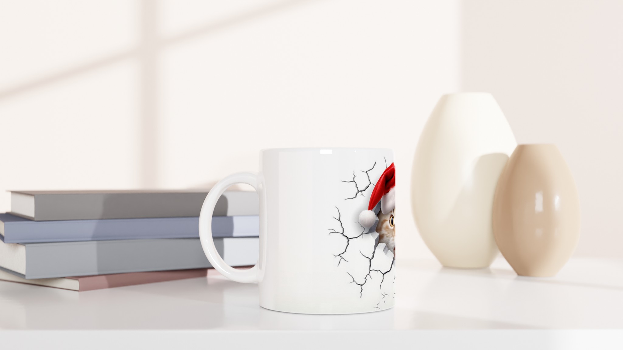 Festive Feline Santa Hat Mug – Adorable Cat Peeking Ceramic Mug in Your Choice of Seven Vibrant Hues