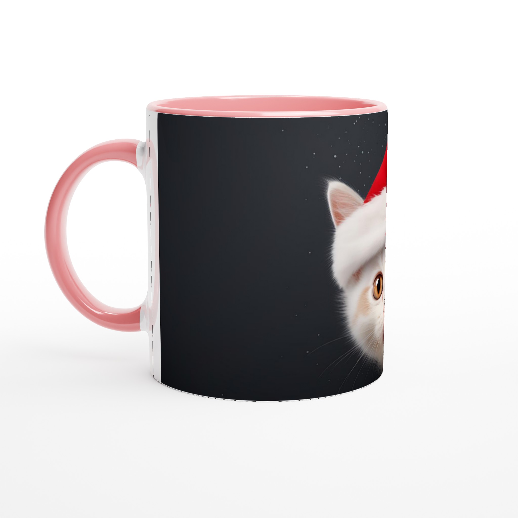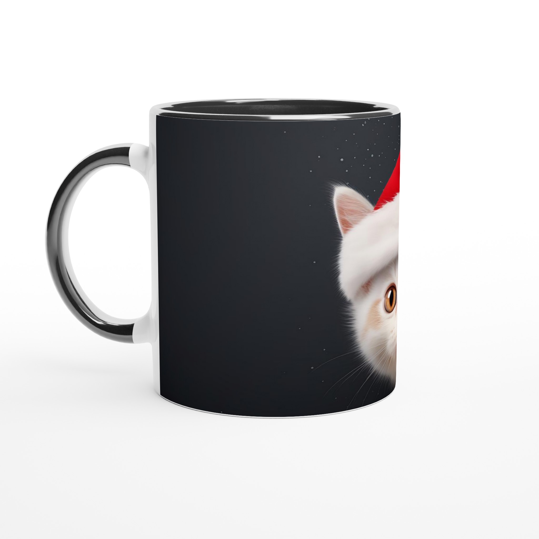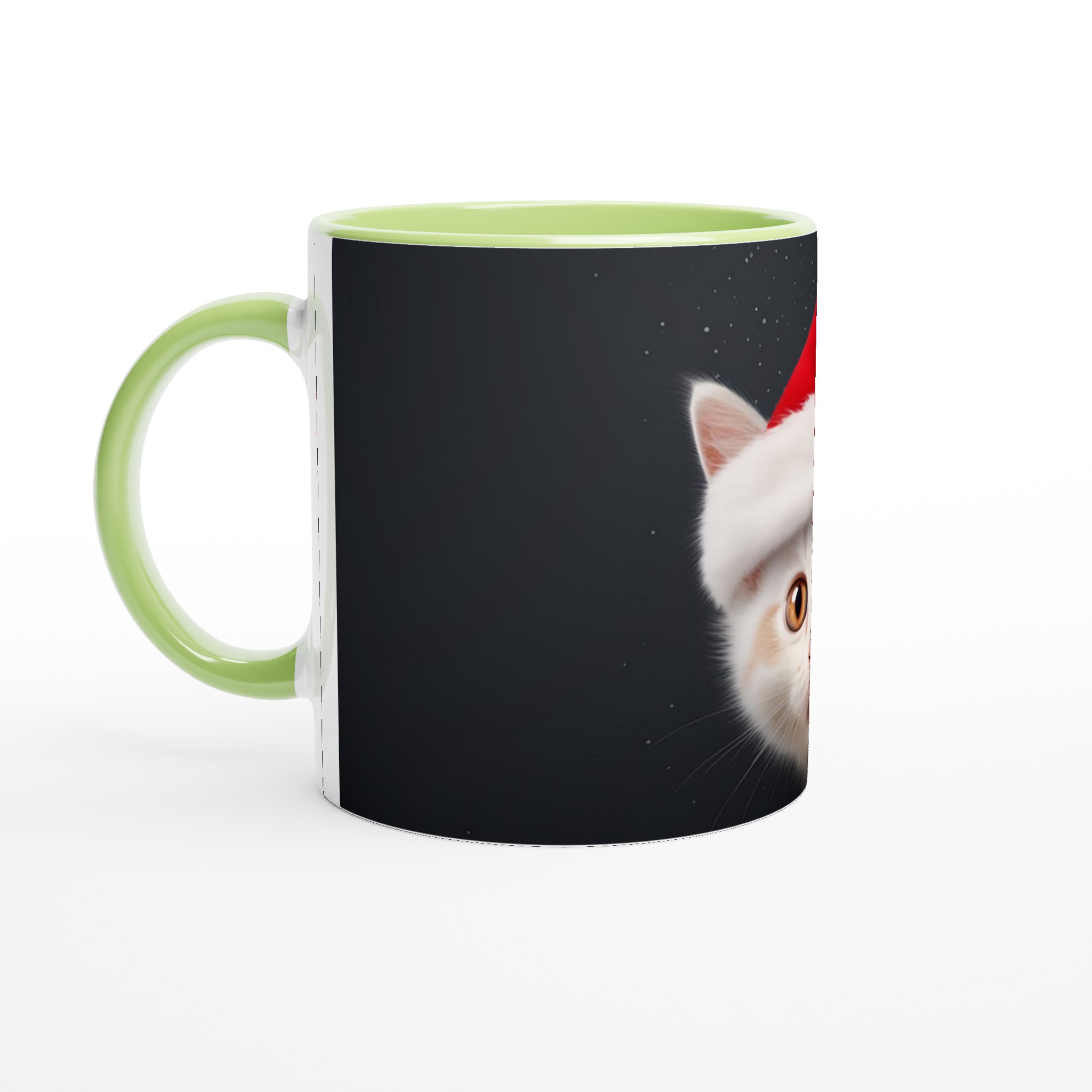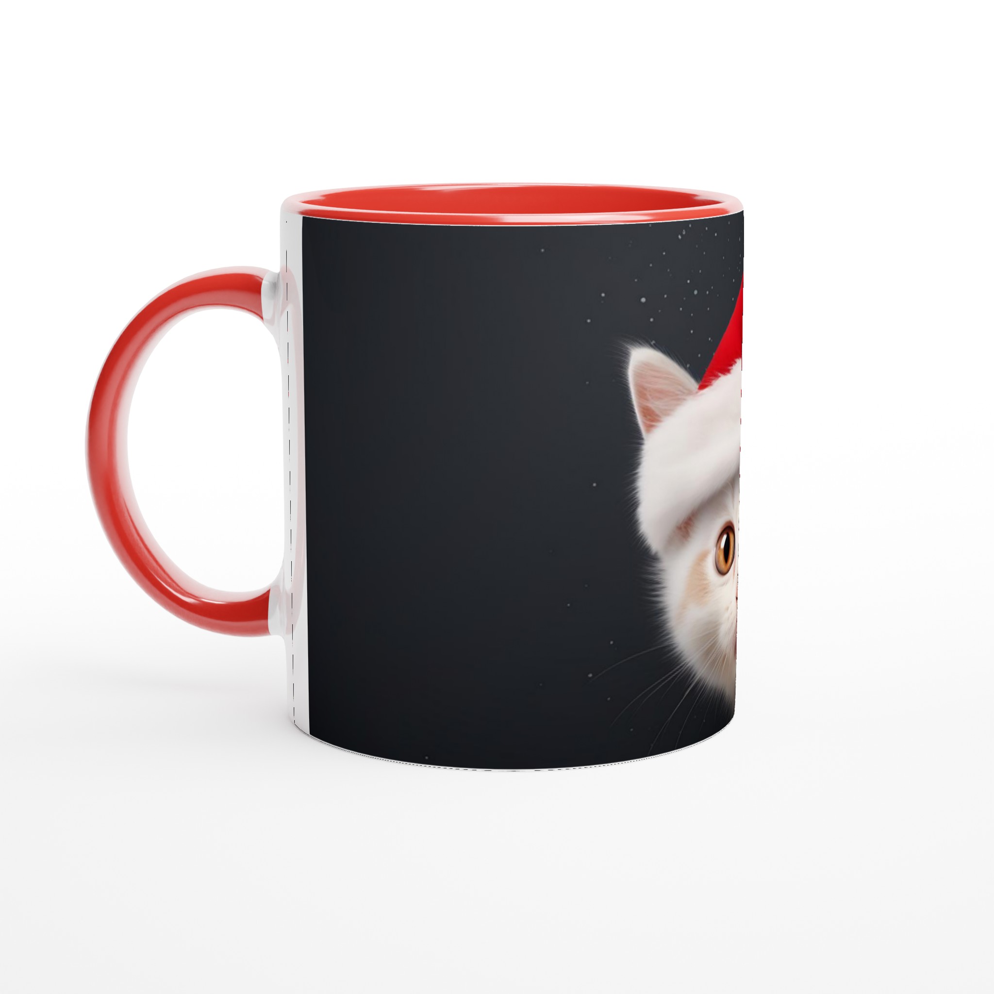 Festive Peeking Kitten 11oz Ceramic Mug – Adorable Holiday Pet Design in Your Choice of 7 Vibrant Colors