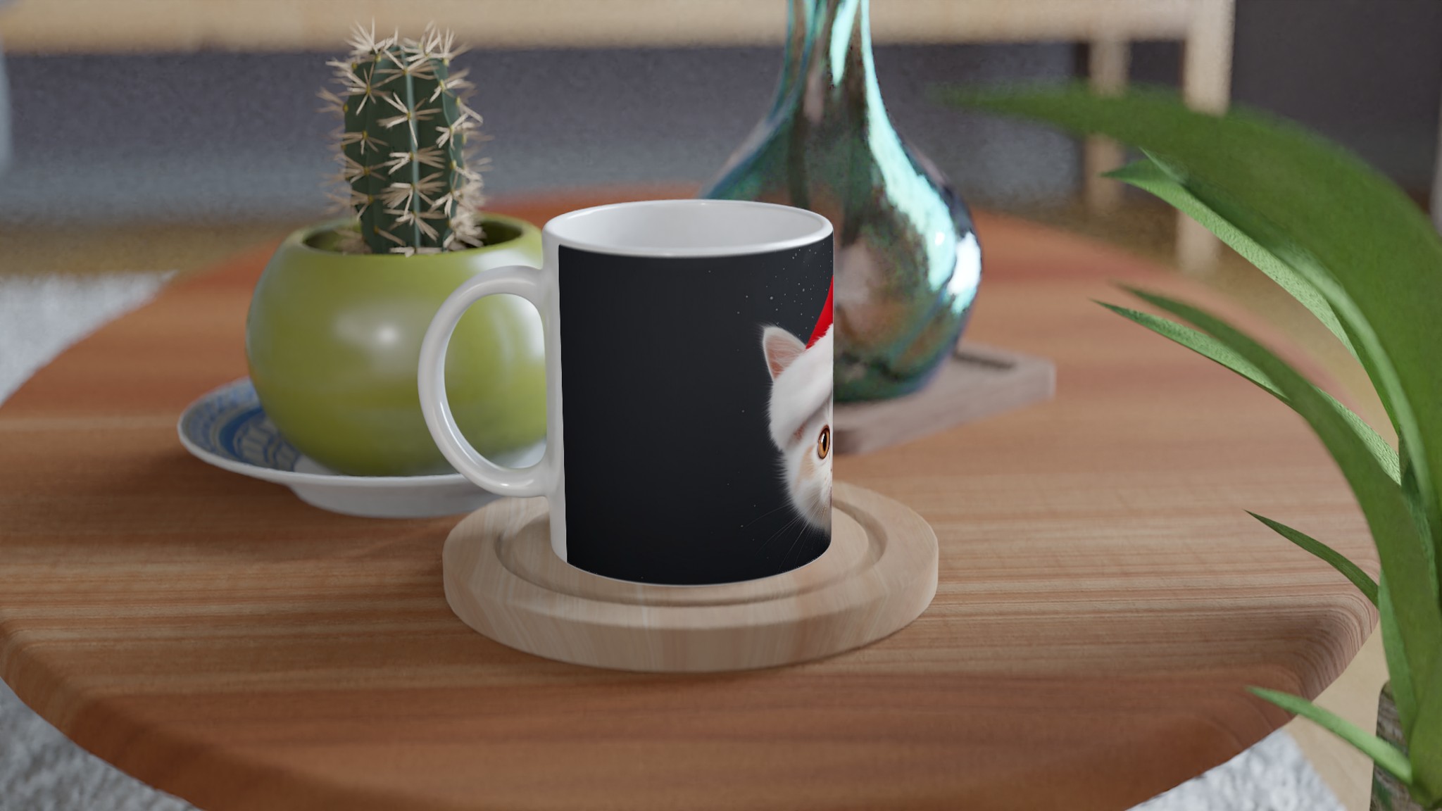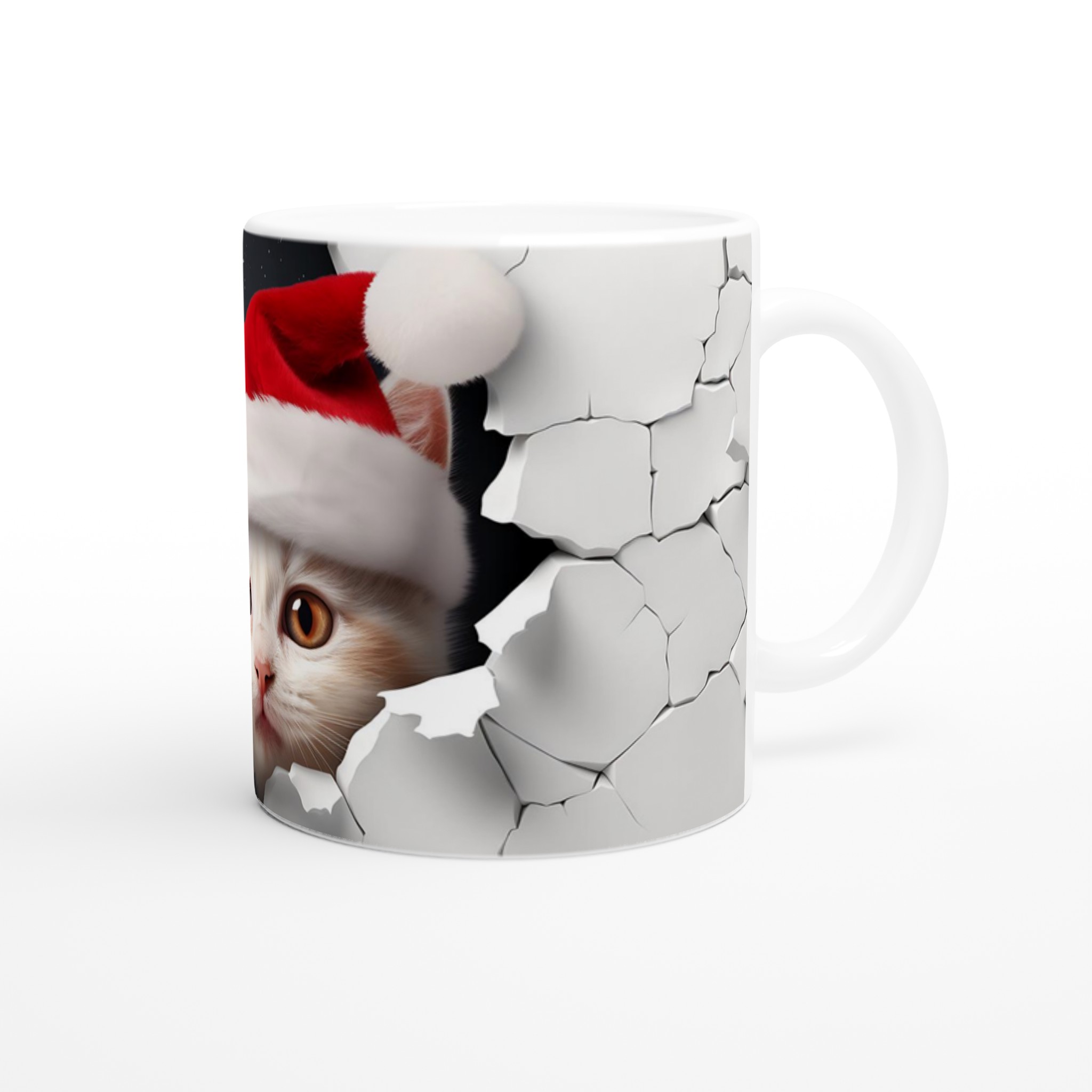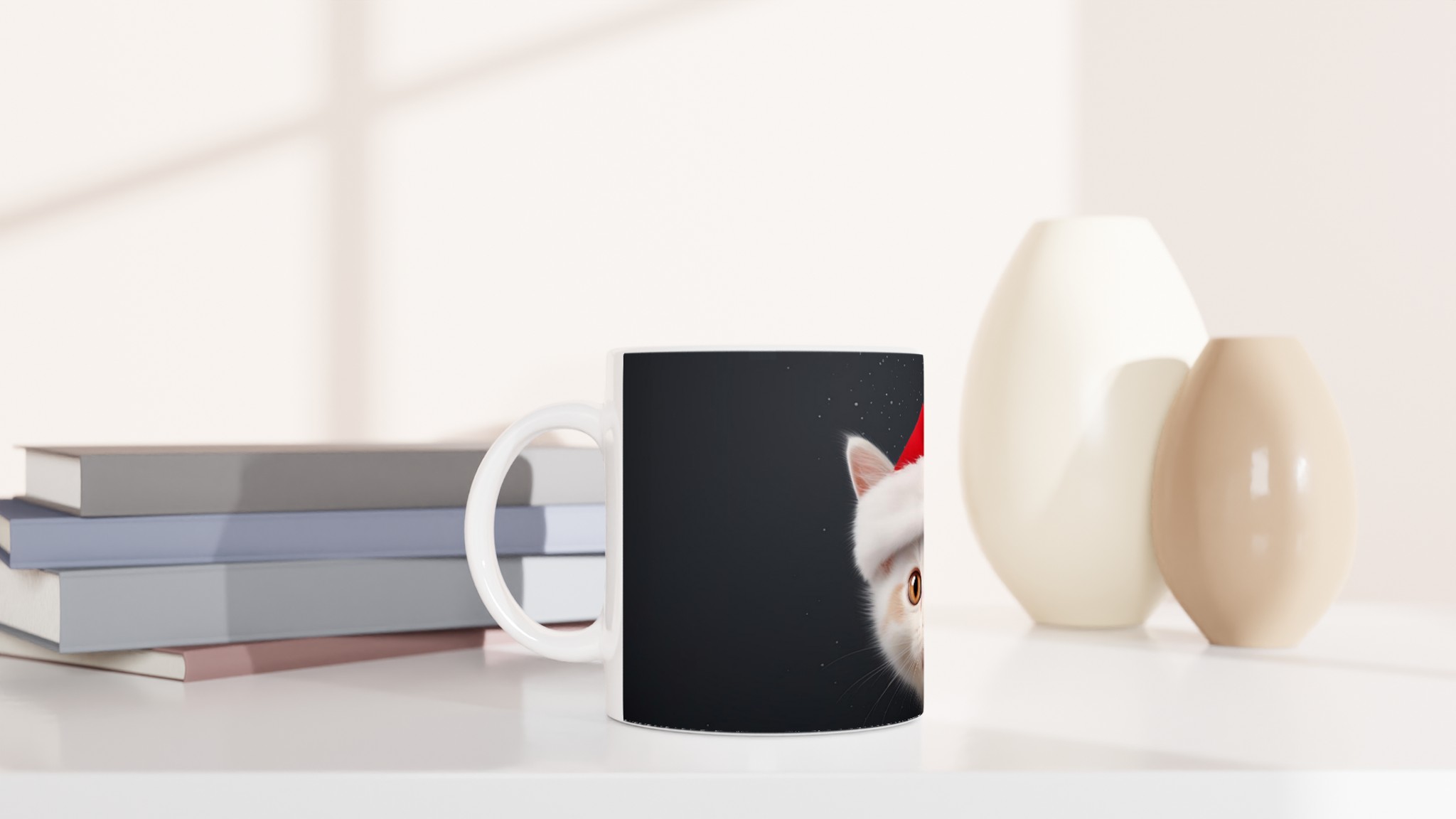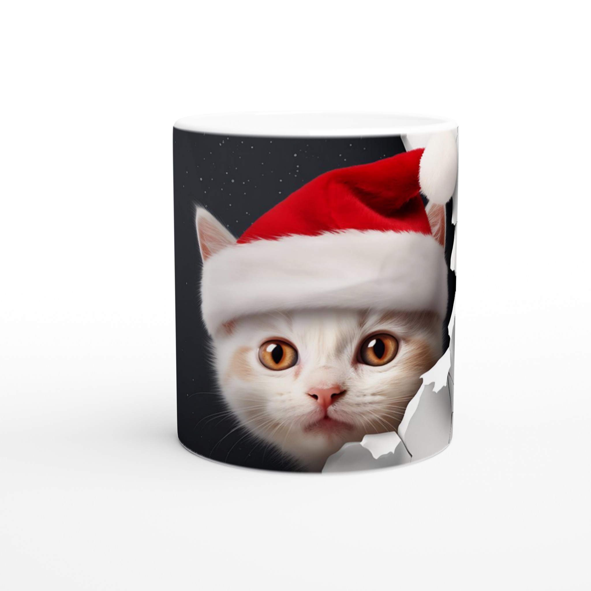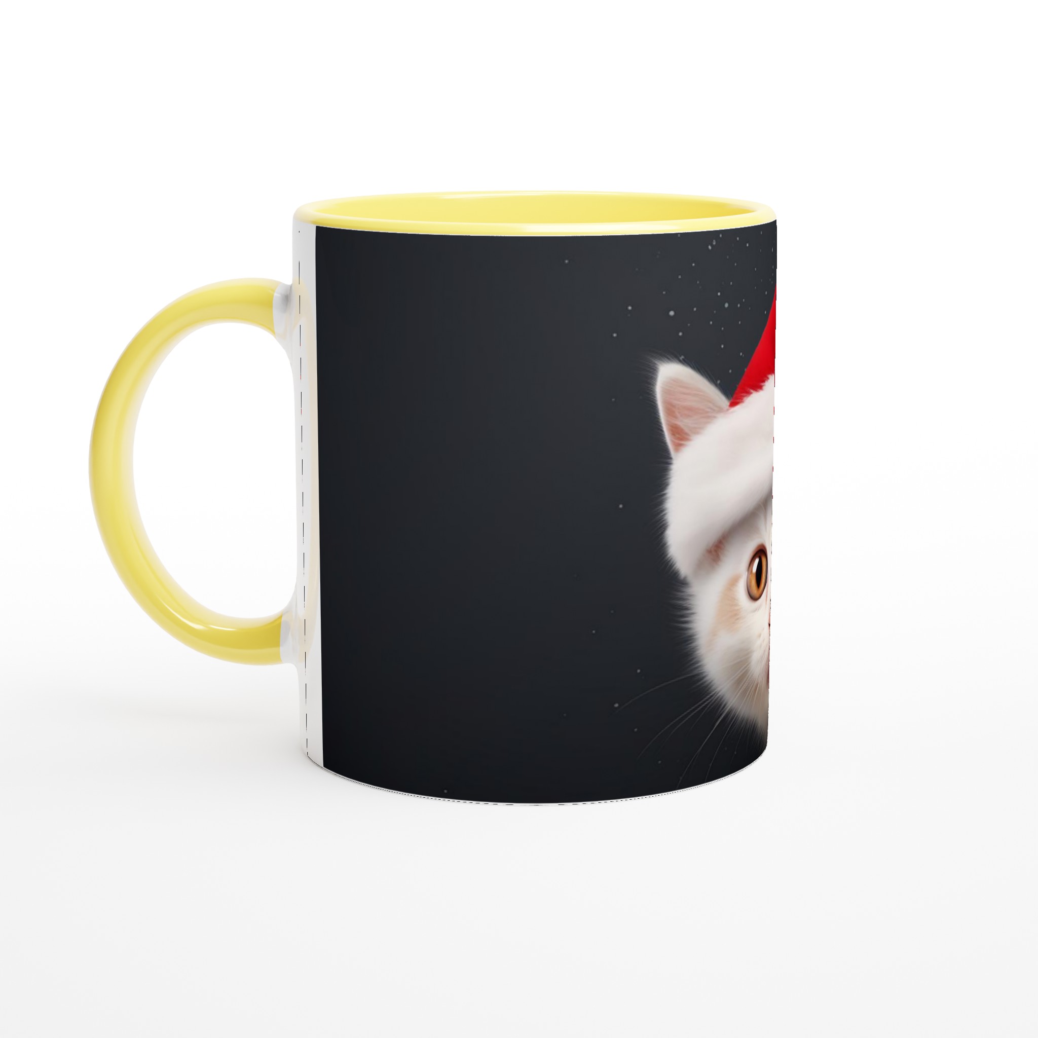 Festive Peeking Kitten 11oz Ceramic Mug – Adorable Holiday Pet Design in Your Choice of 7 Vibrant Colors
