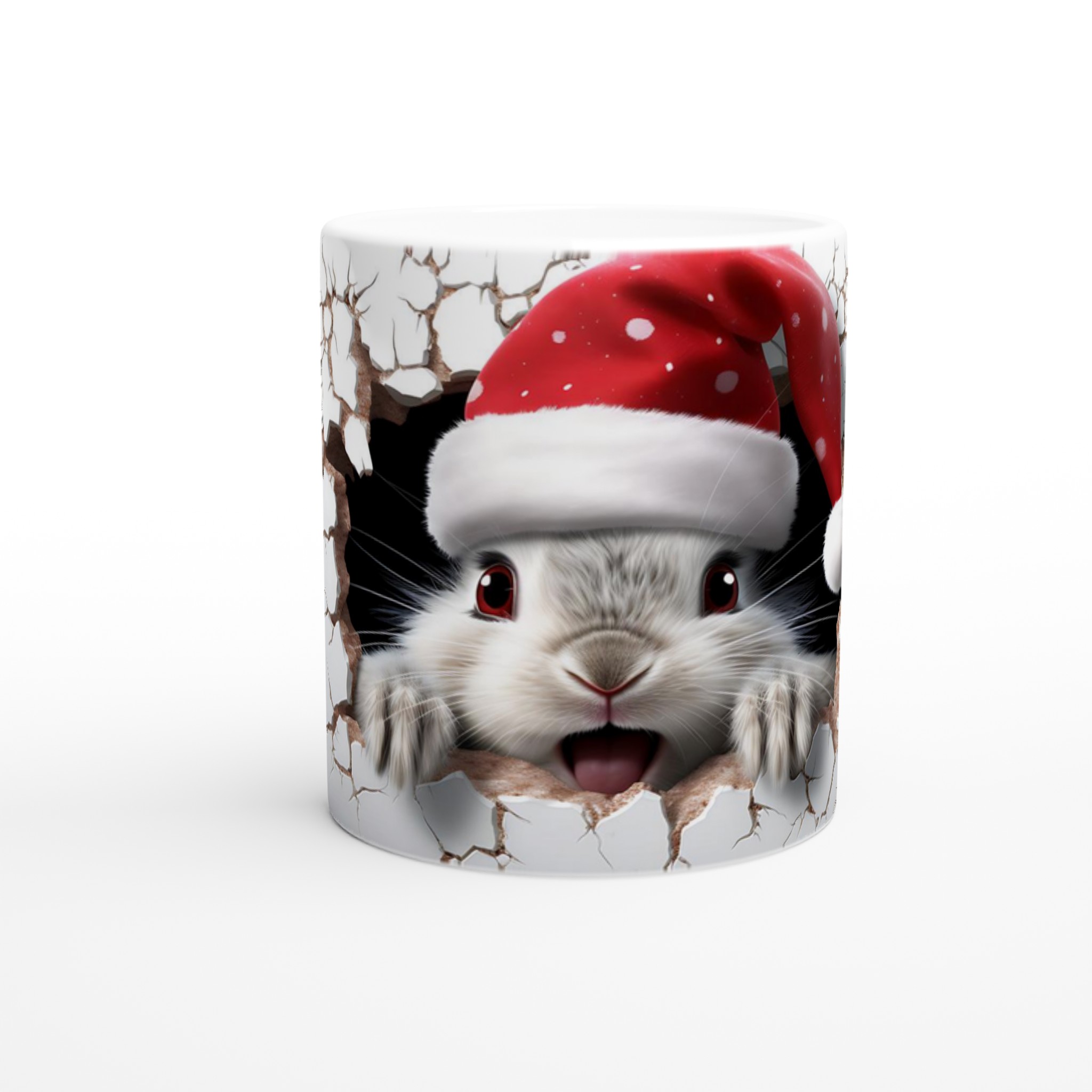 Charming Christmas Bunny 11oz Ceramic Mug – Whimsical Holiday Cheer in Your Choice of 7 Colors