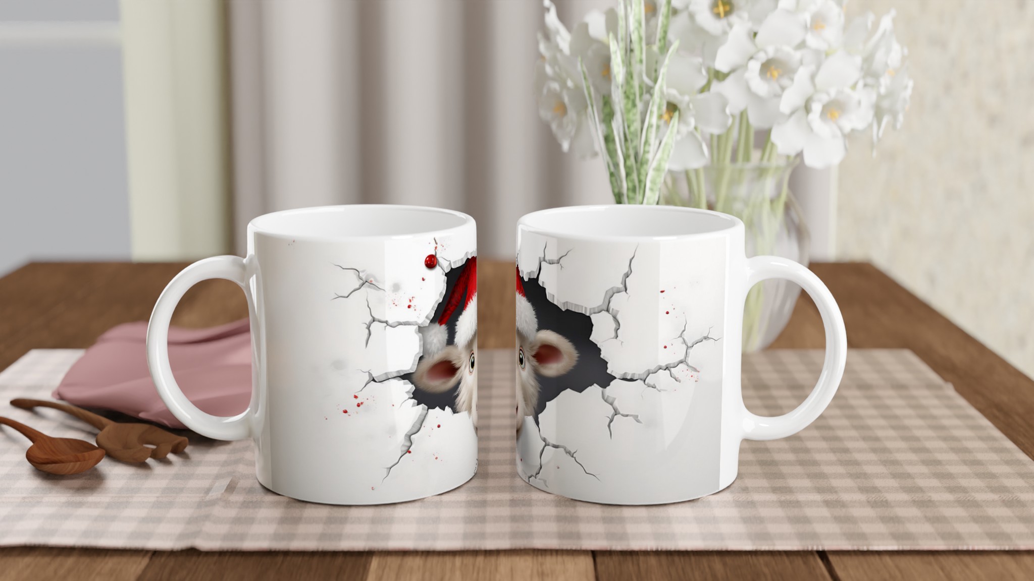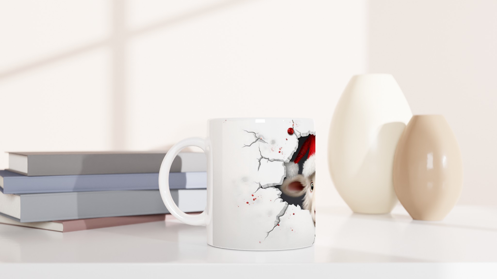 Charming Santa Lamb Christmas 11oz Ceramic Mug – Choose Your Festive Hue!