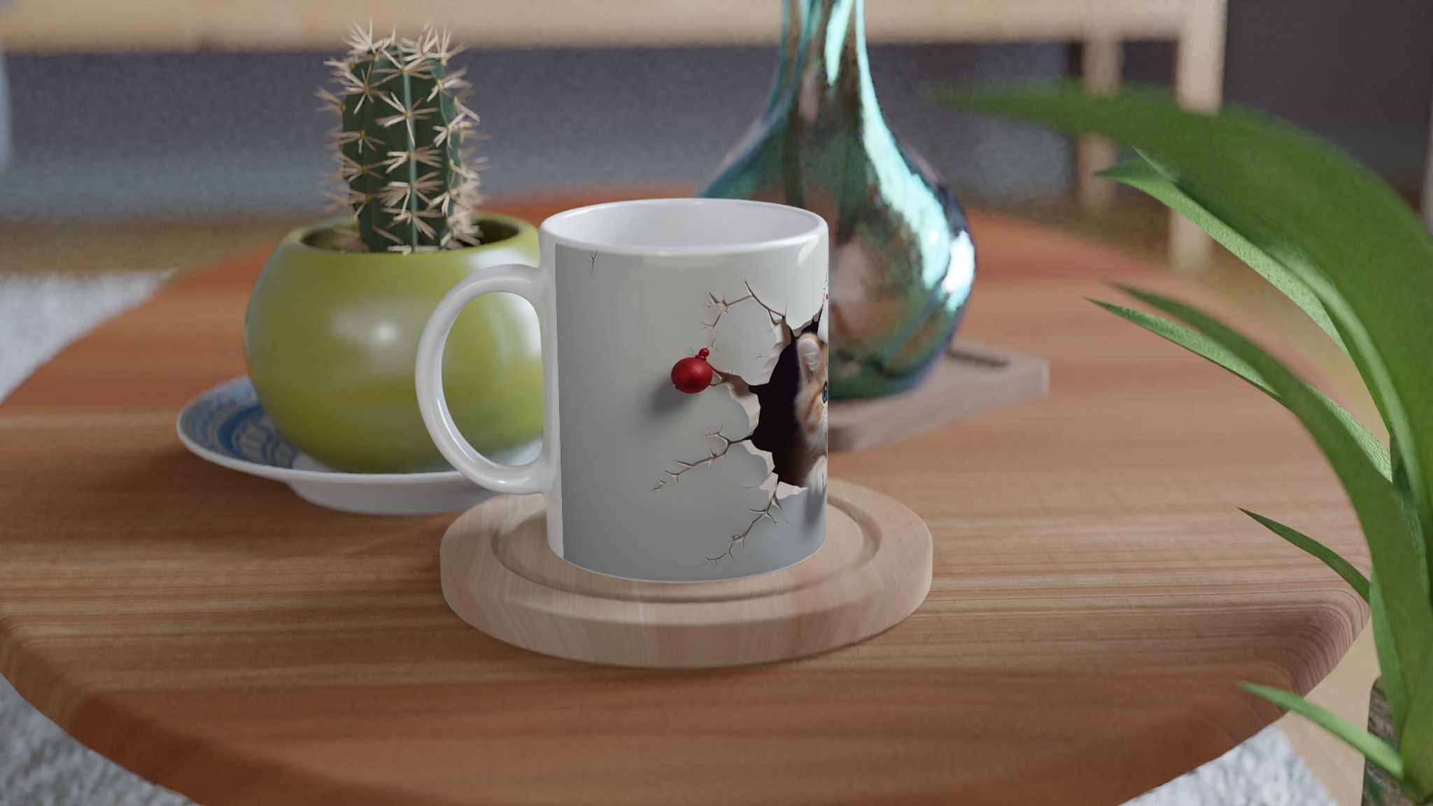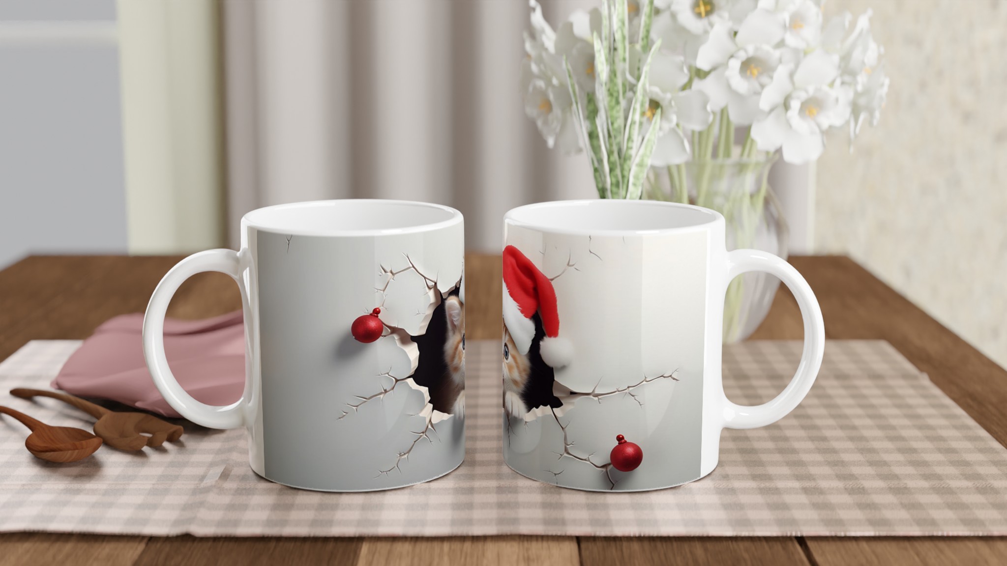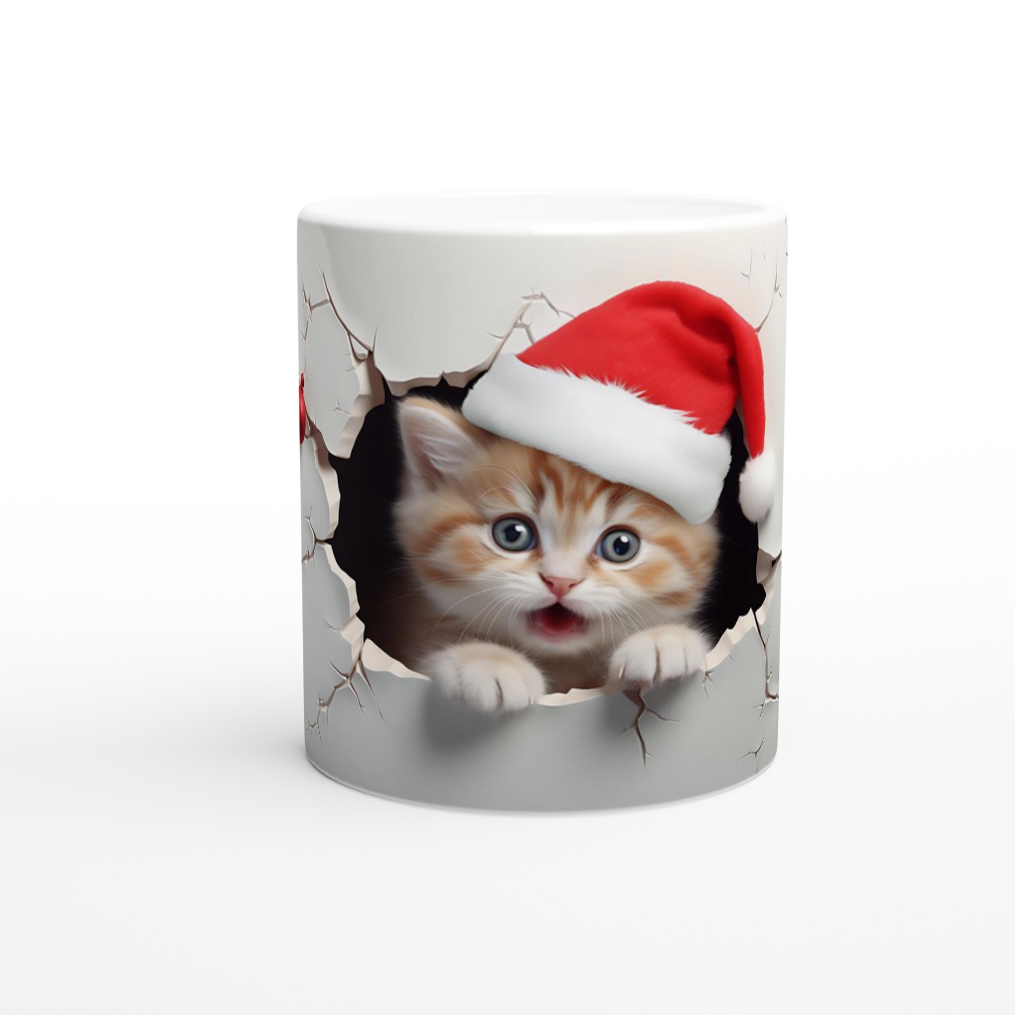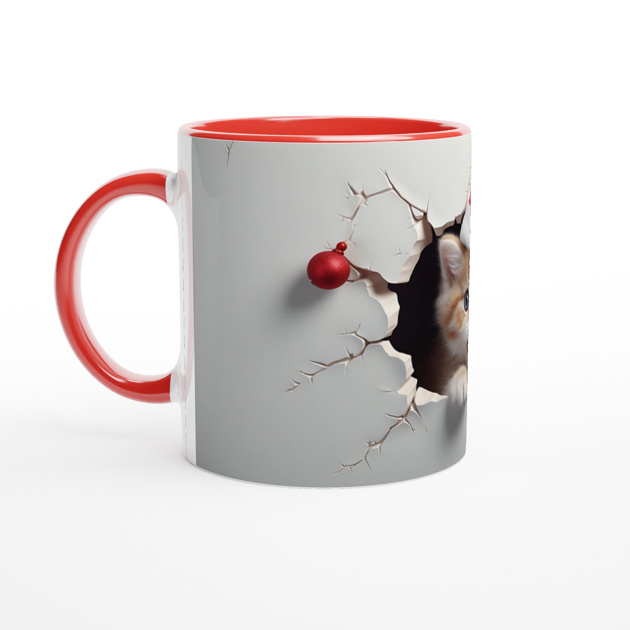 Festive Peeking Kitten 11oz Ceramic Mug – Perfect for Holiday Cheer in Your Favorite Hue!