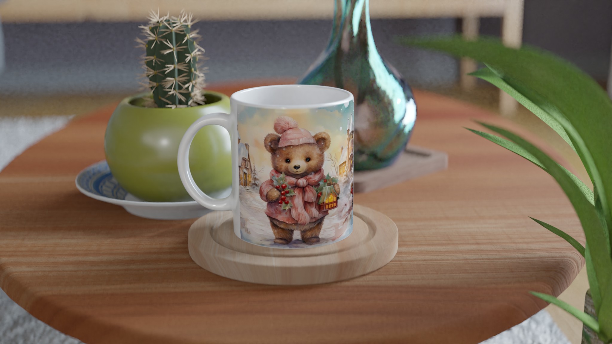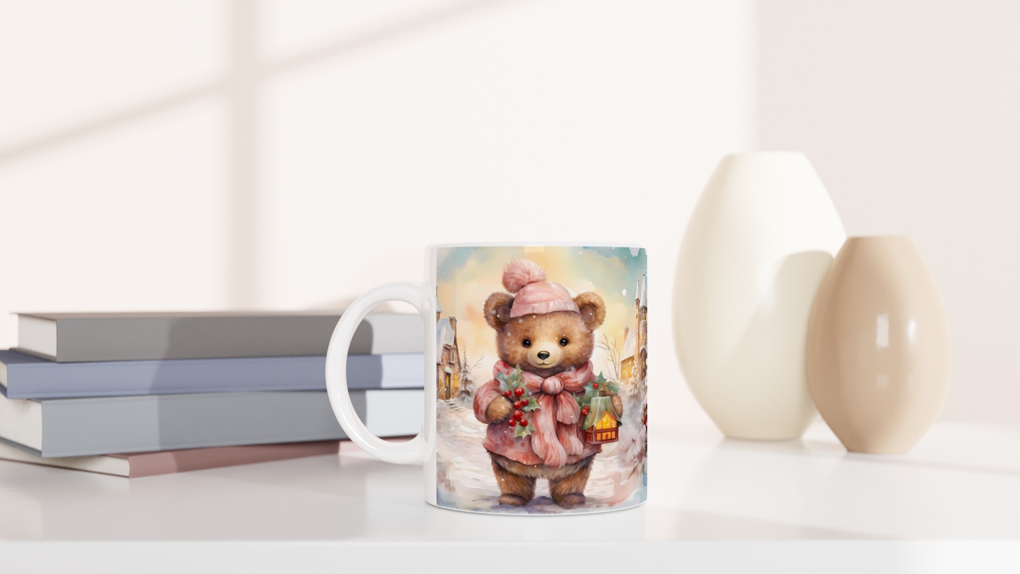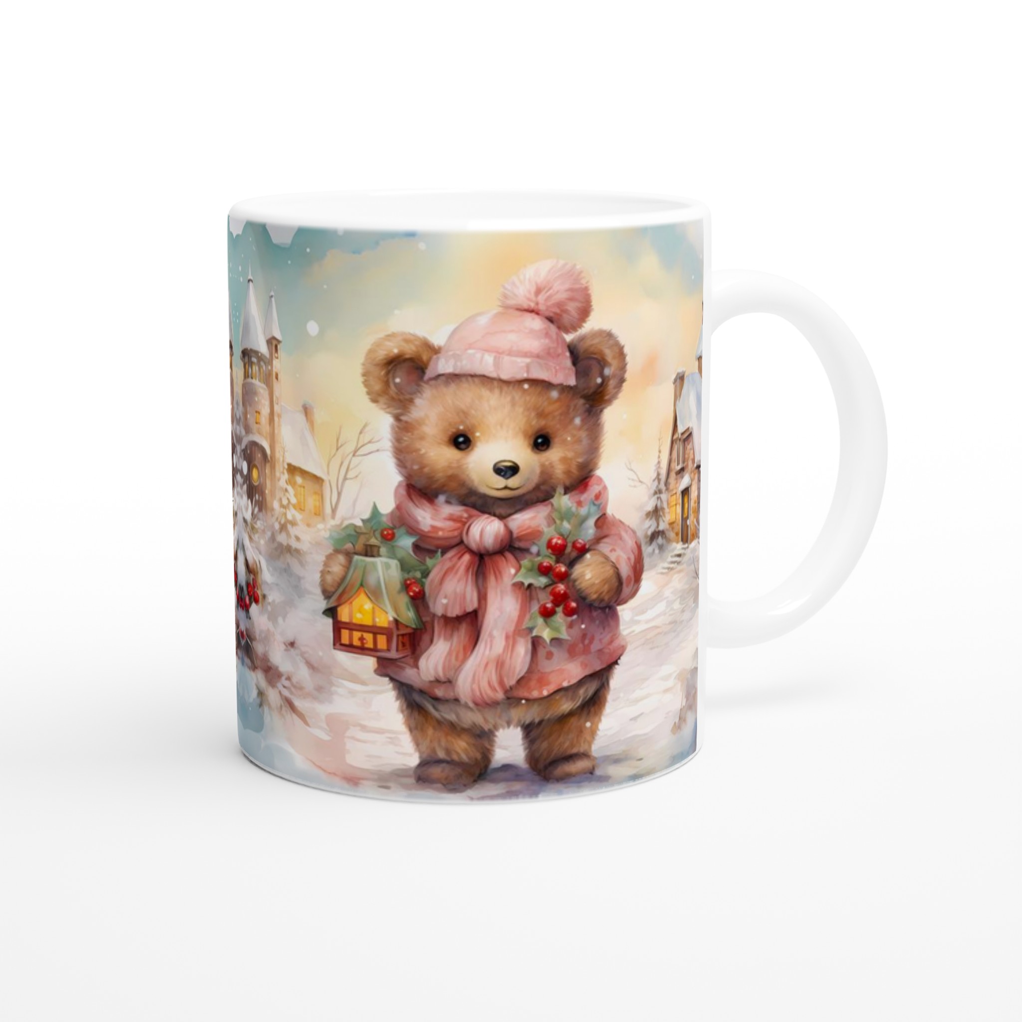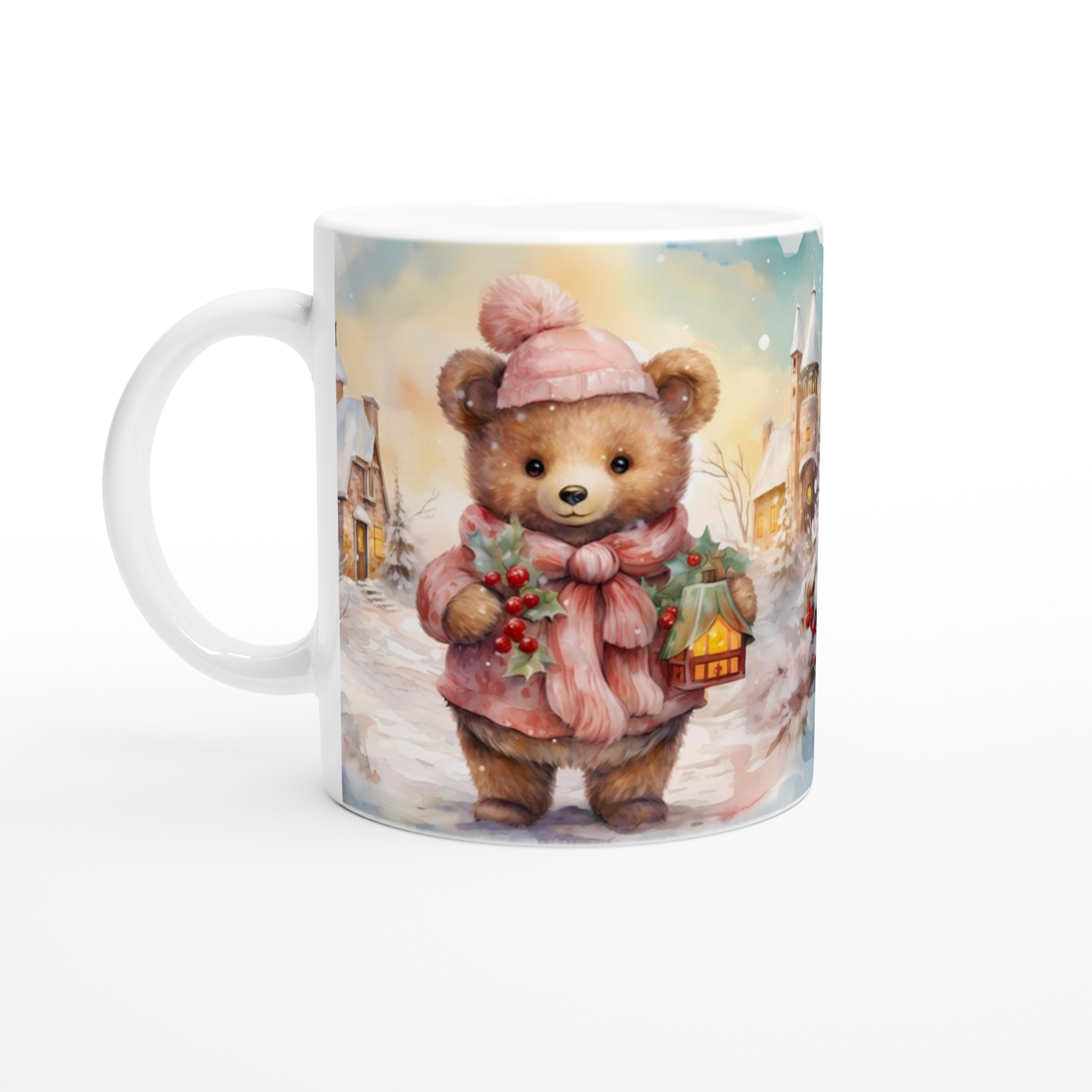 Cozy Winter Bear 11oz Ceramic Mug – Perfect for Hot Beverages in Your Favorite Hue