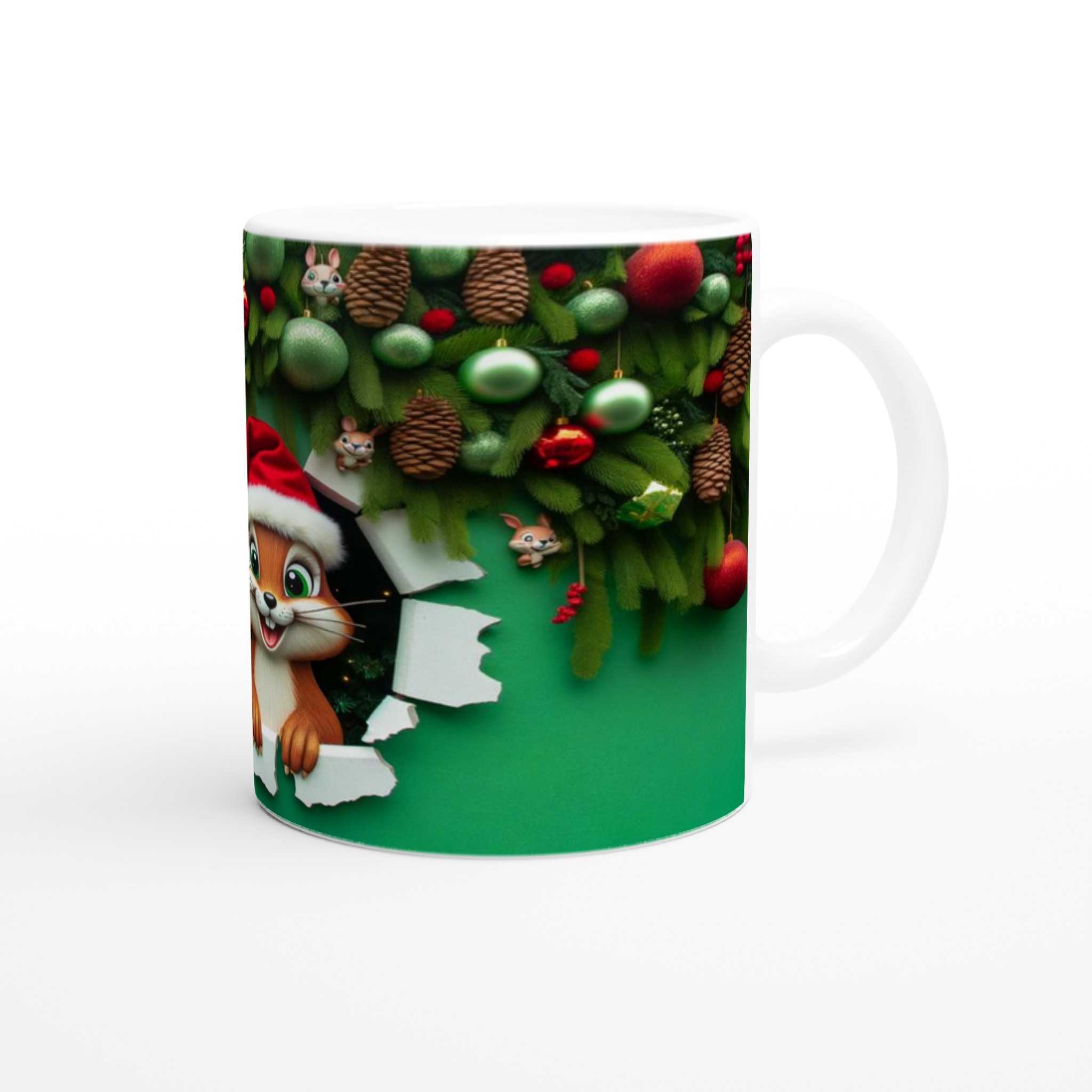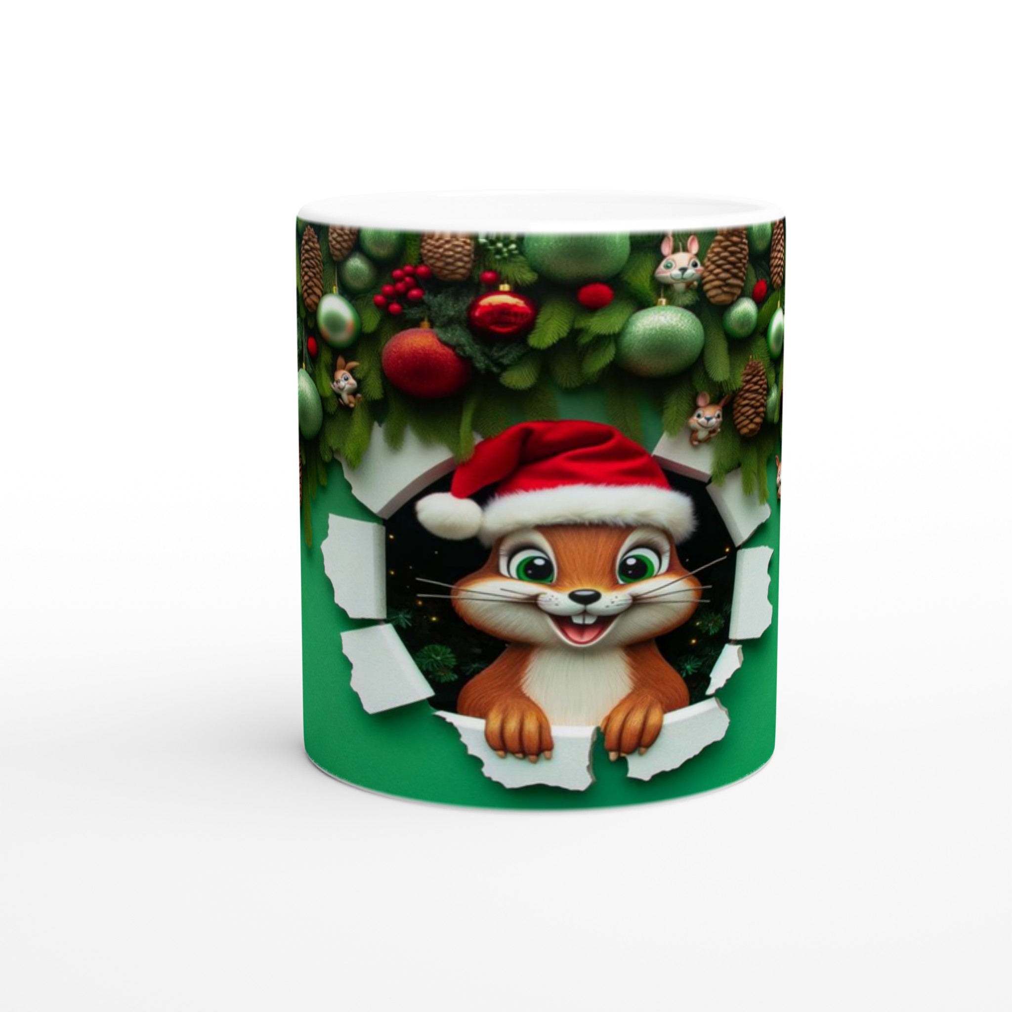 Charming Christmas Squirrel 11oz Ceramic Mug – Festive Holiday Fun in Your Choice of Seven Hues