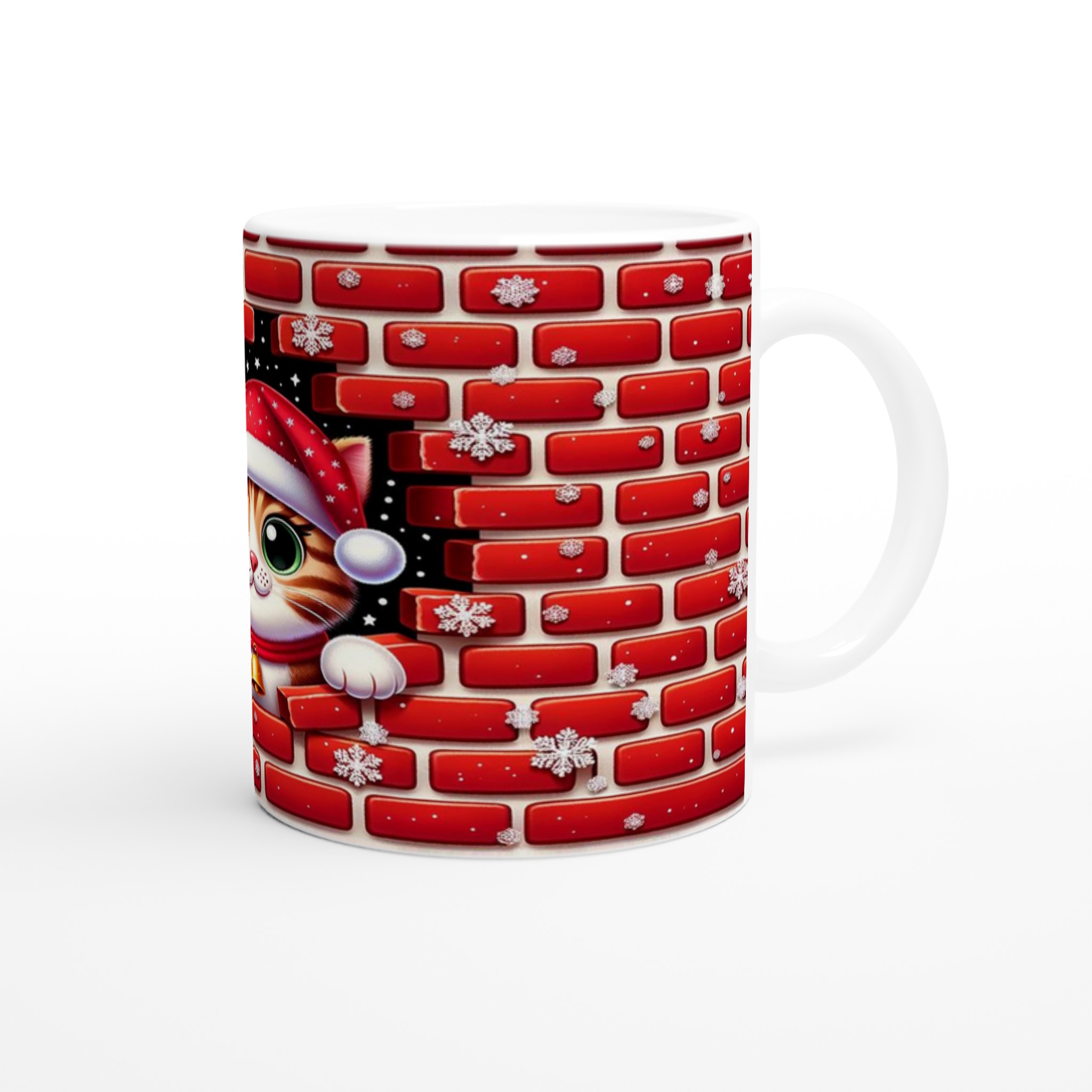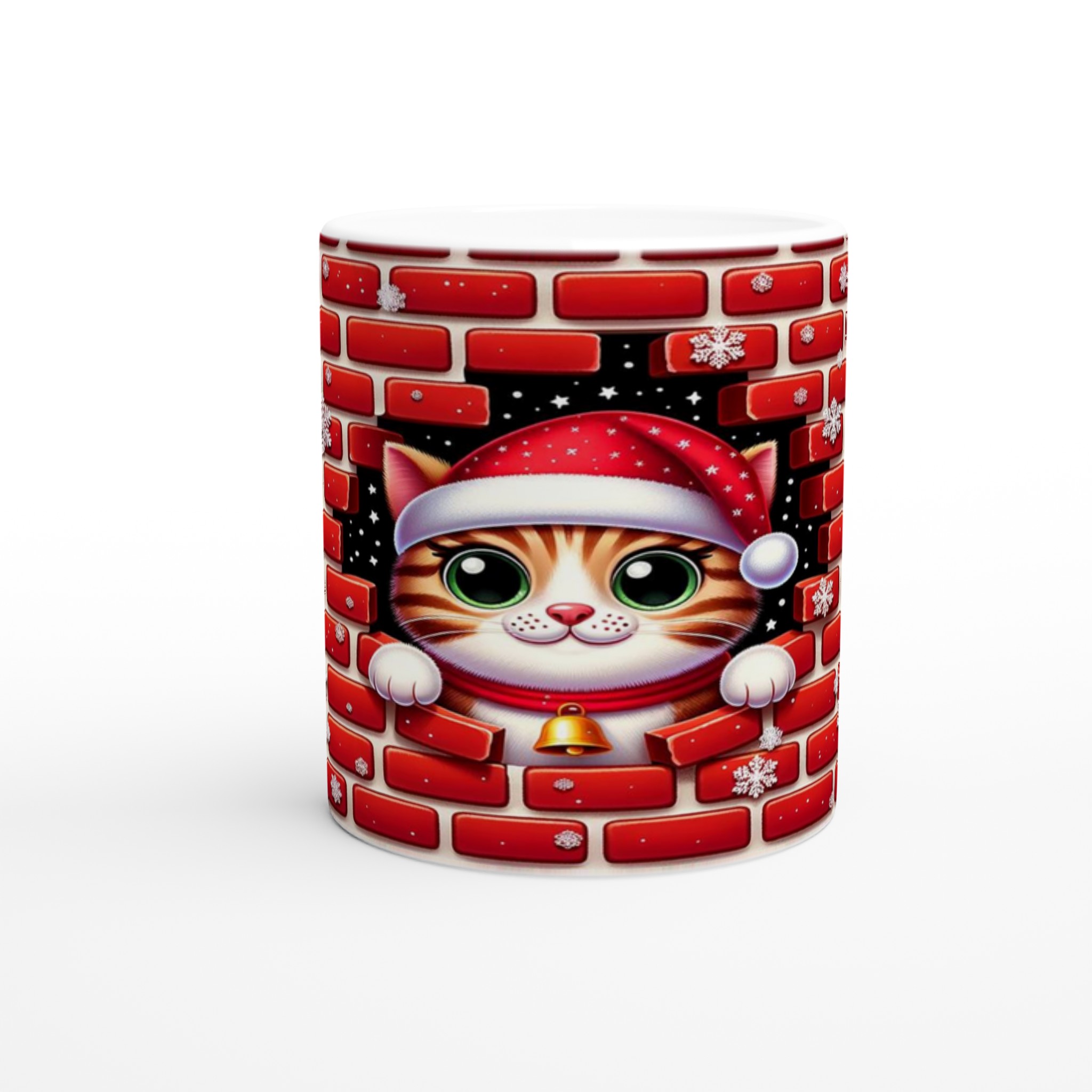 Charming Christmas Kitty 11oz Ceramic Mug – Festive Fun in Your Choice of Seven Hues