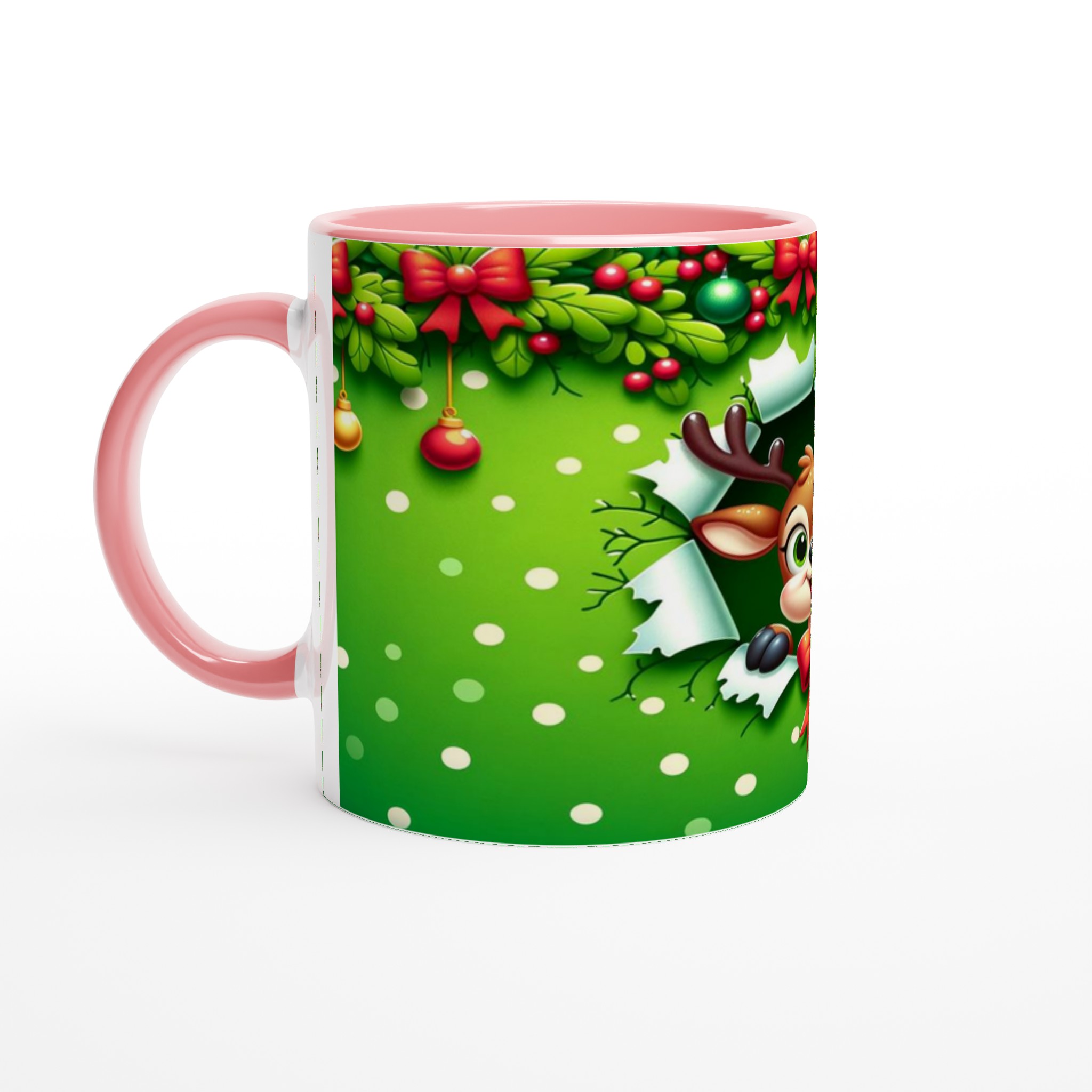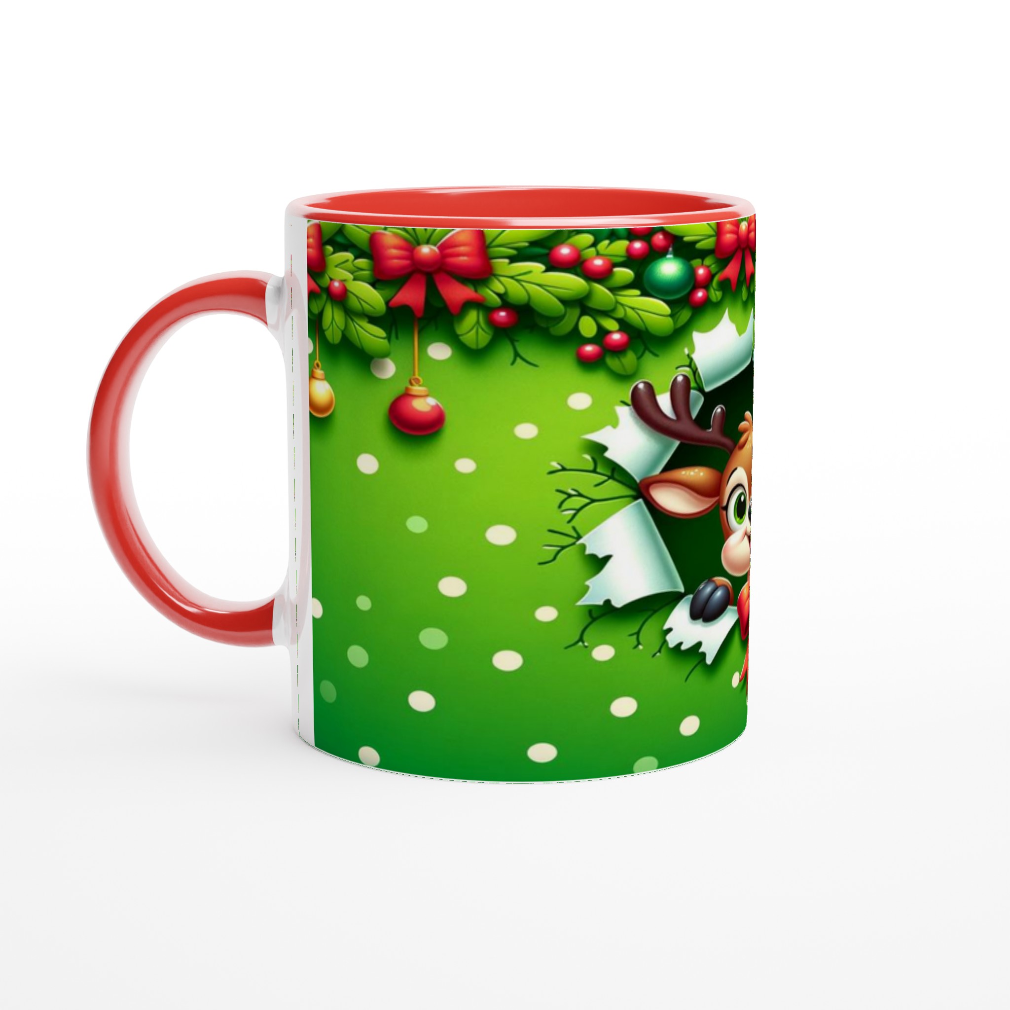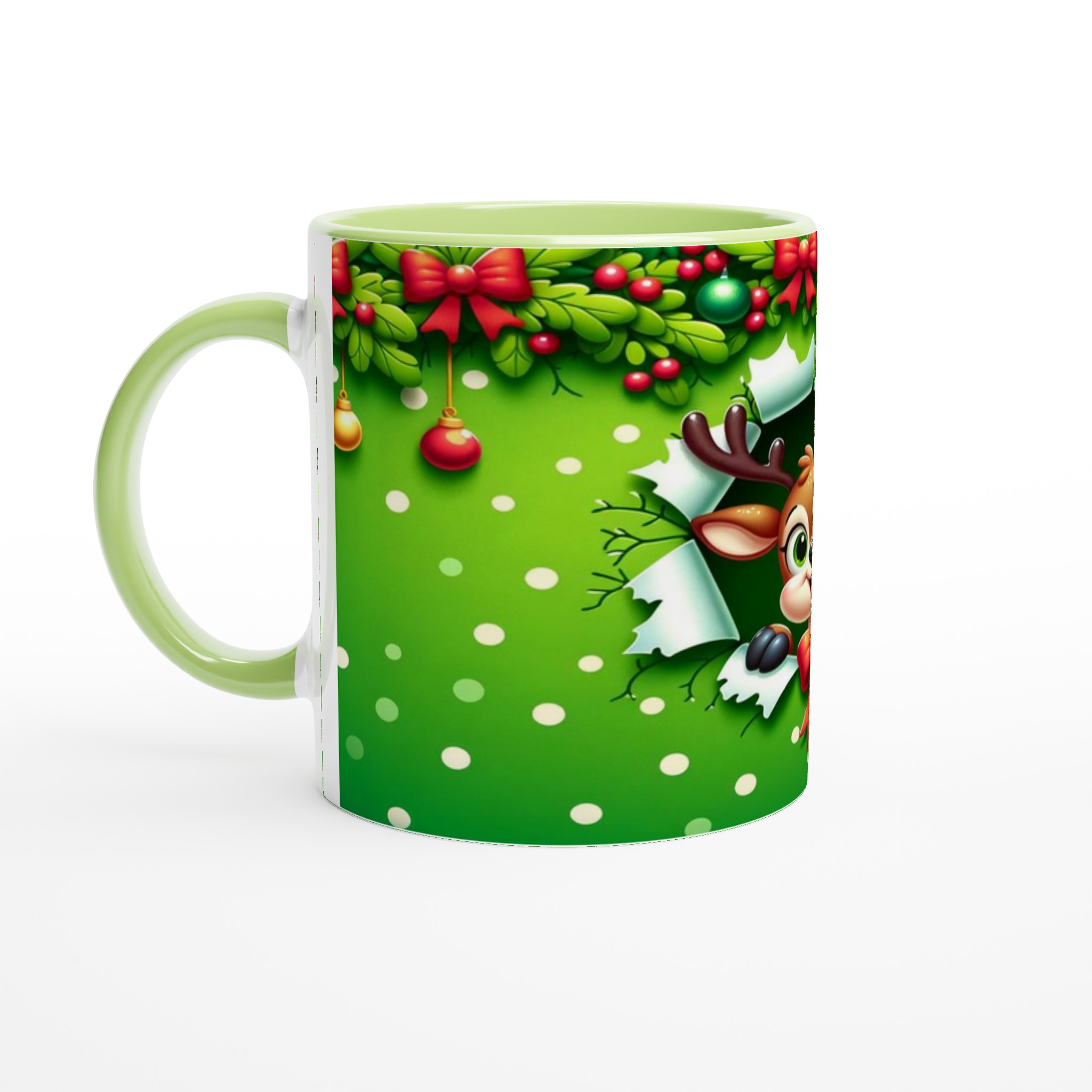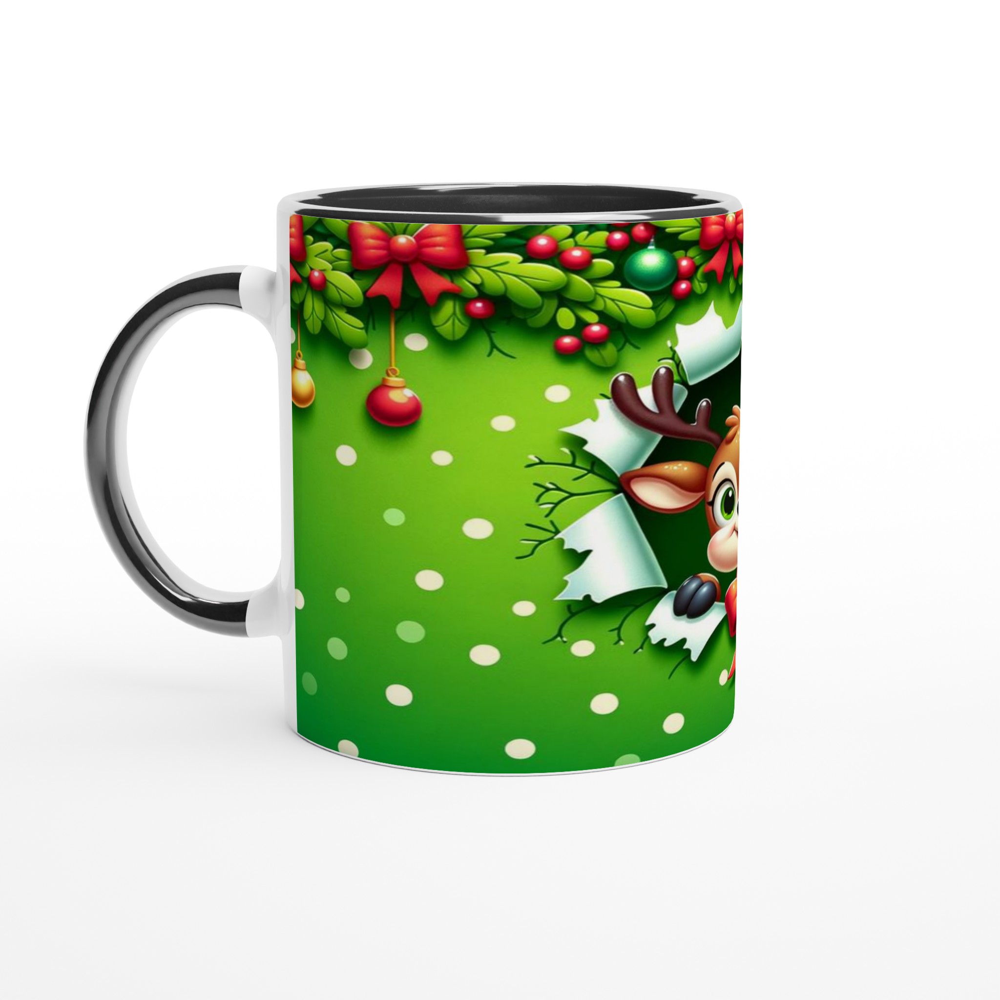 Charming Reindeer Christmas Mug – Festive 11oz Ceramic Mug in Your Choice of Seven Vibrant Hues