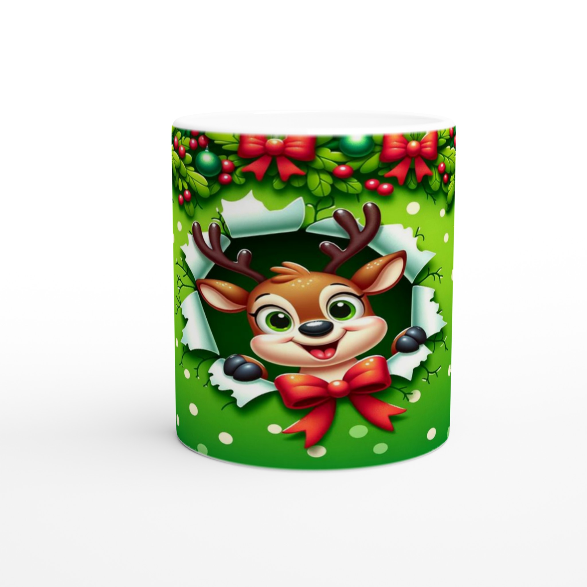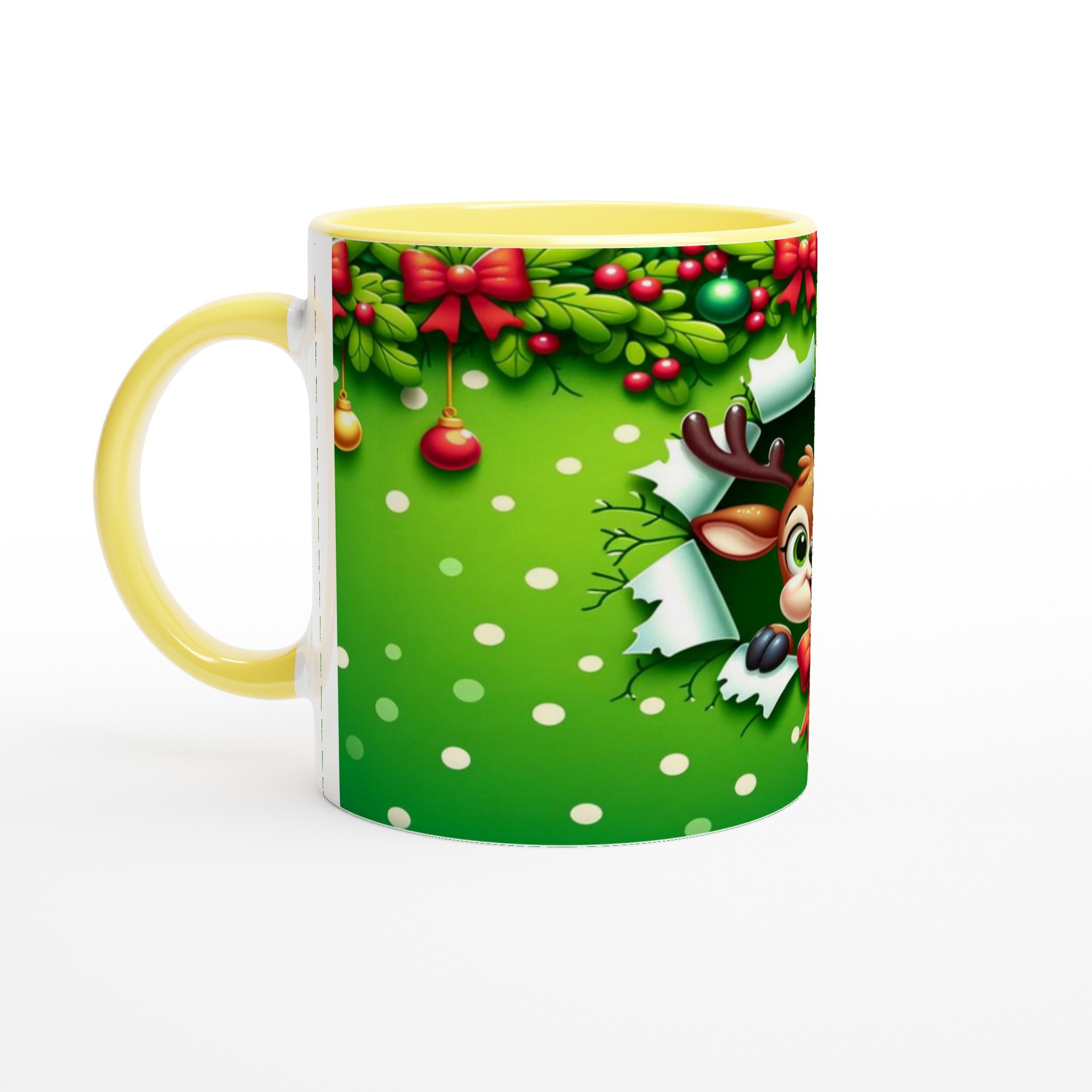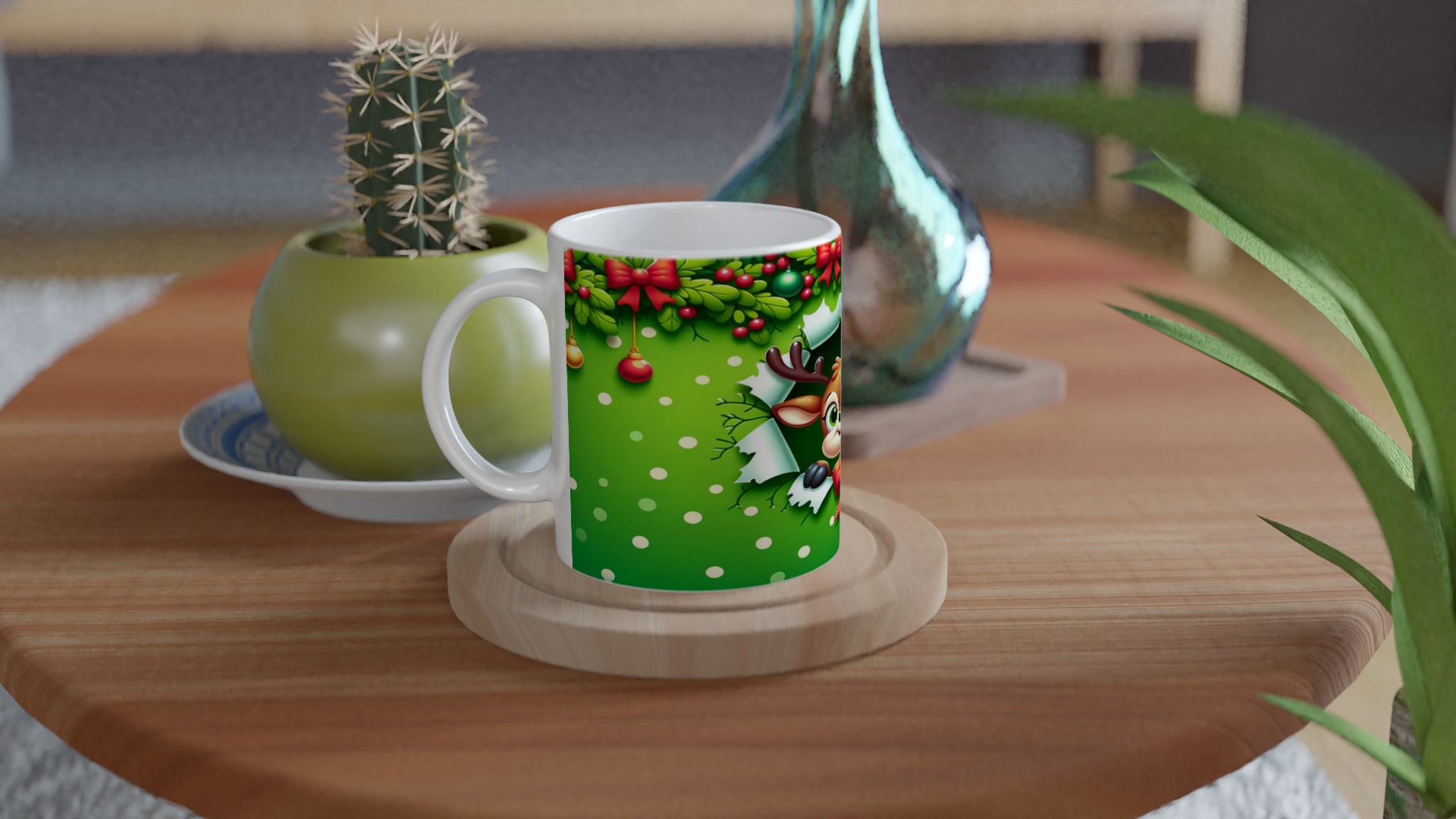 Charming Reindeer Christmas Mug – Festive 11oz Ceramic Mug in Your Choice of Seven Vibrant Hues