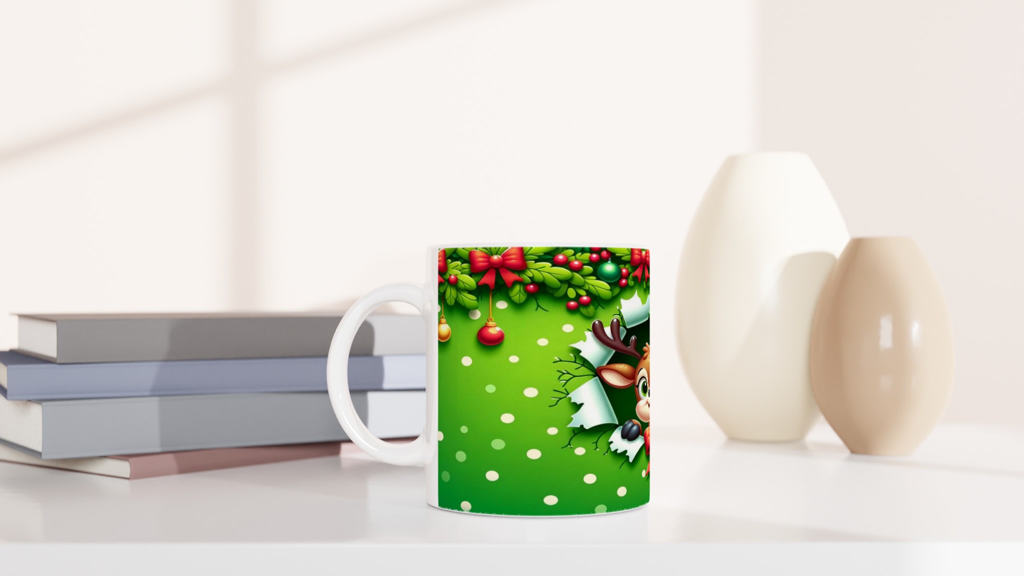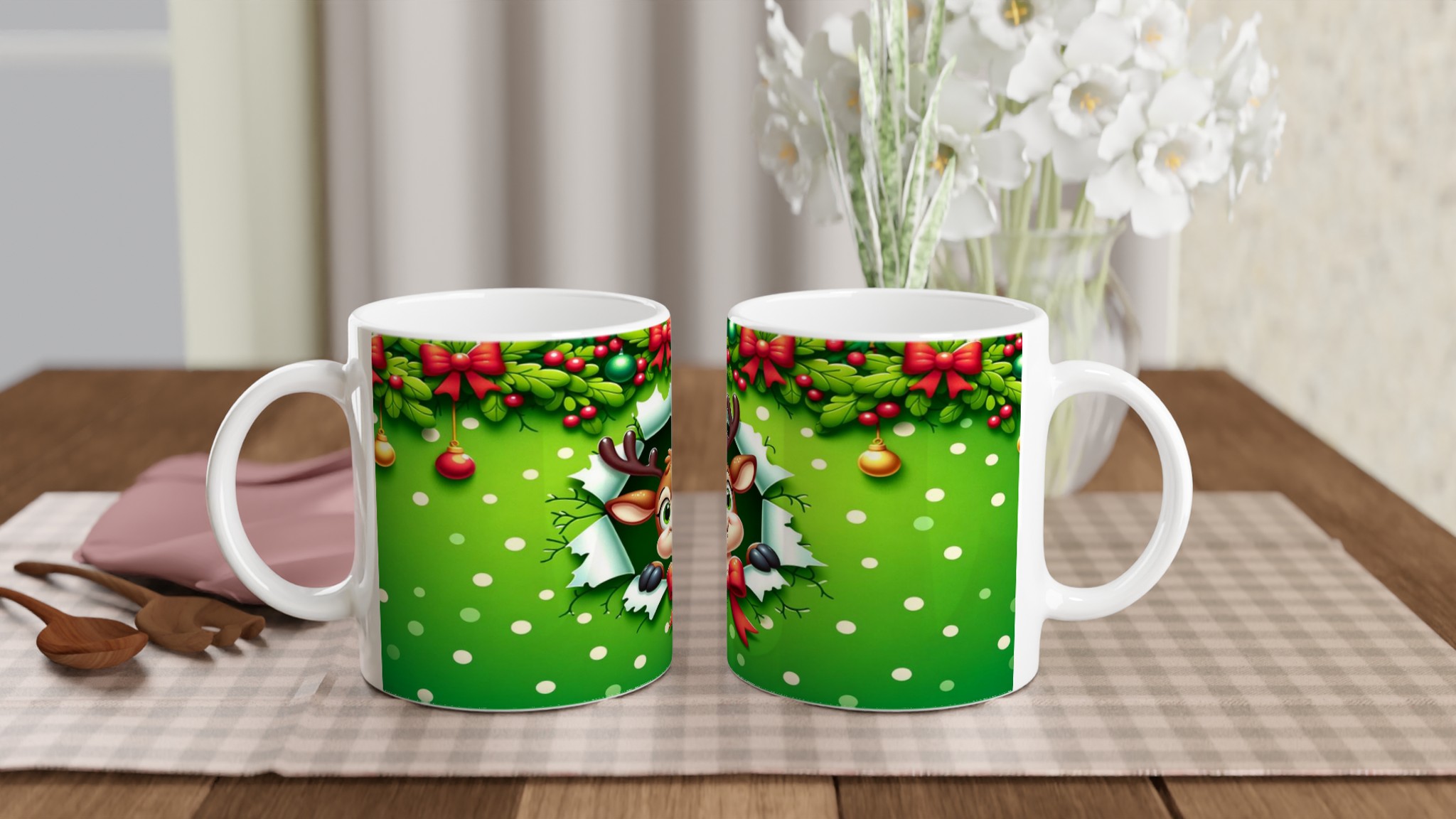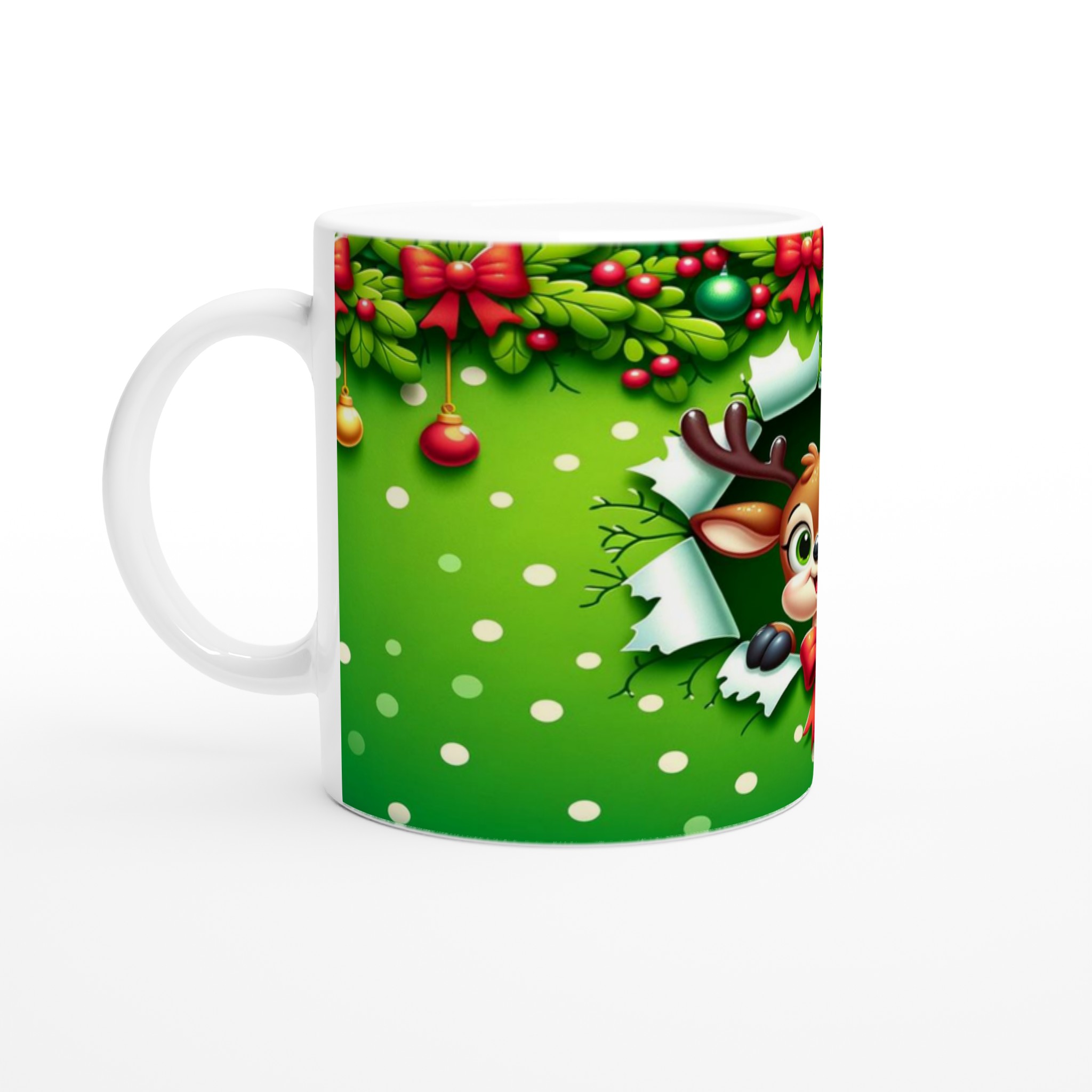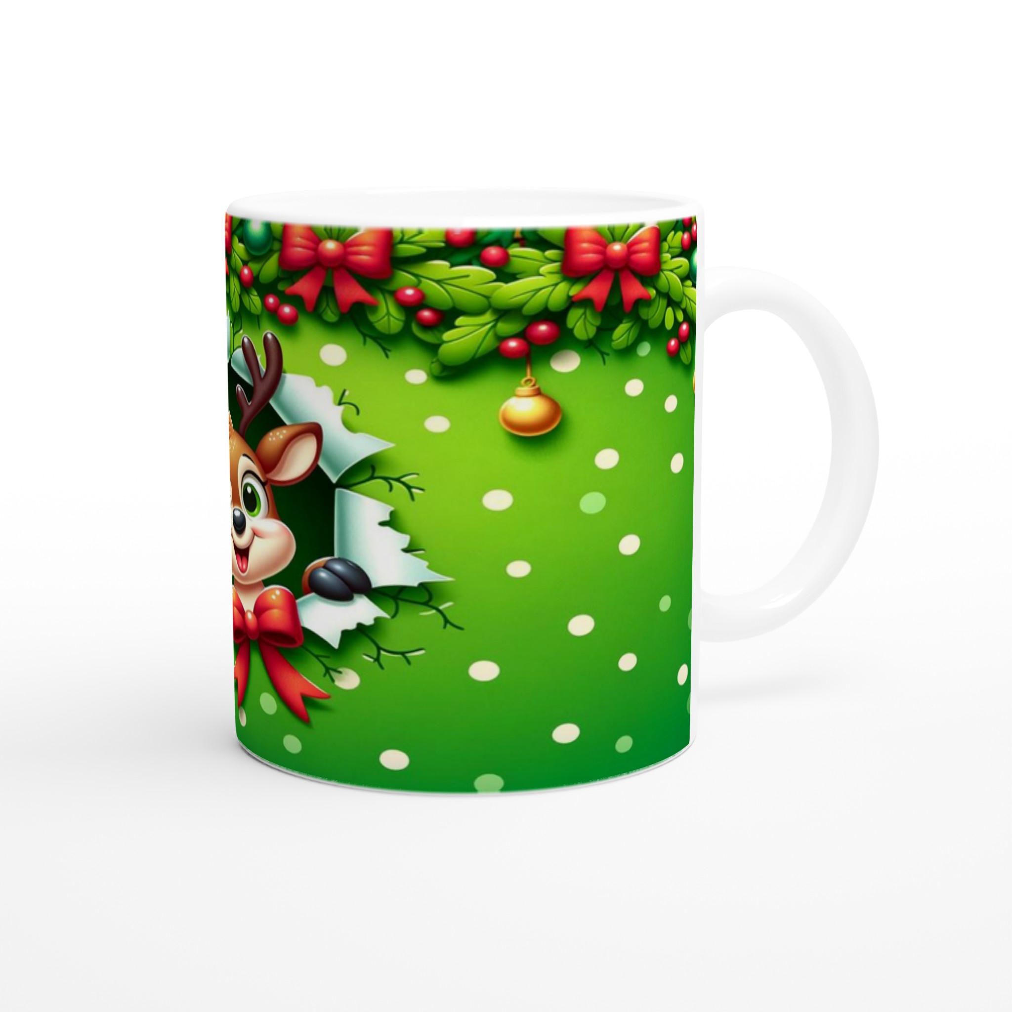 Charming Reindeer Christmas Mug – Festive 11oz Ceramic Mug in Your Choice of Seven Vibrant Hues